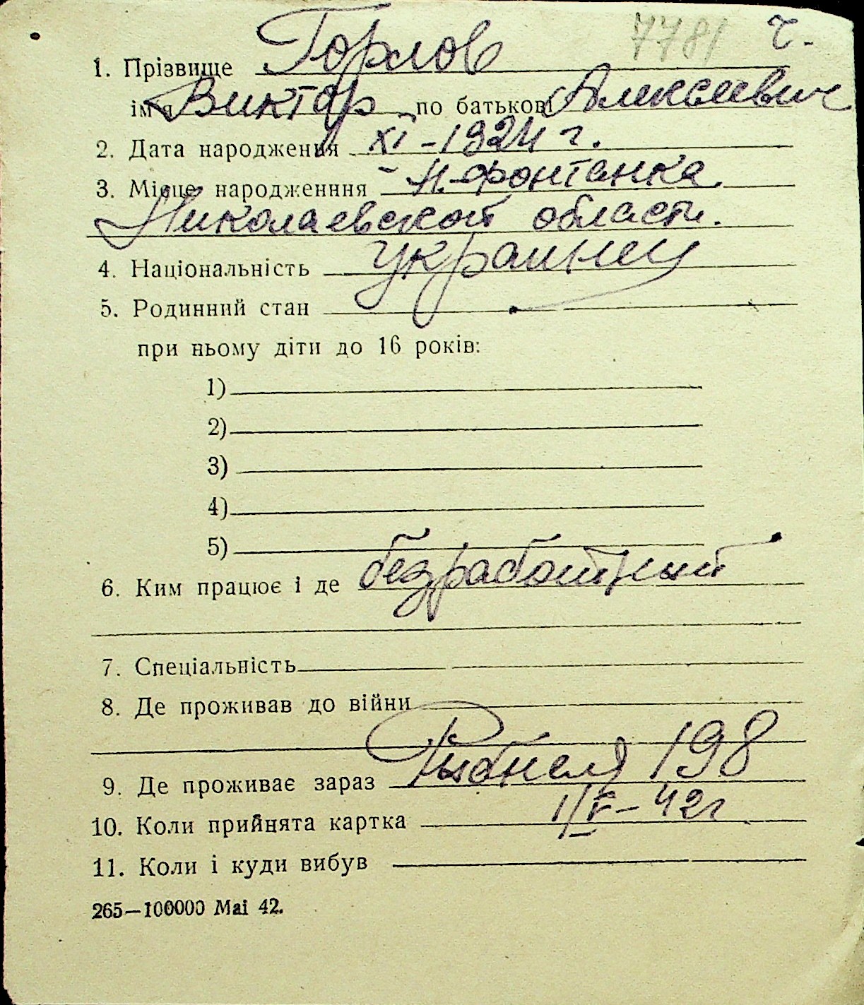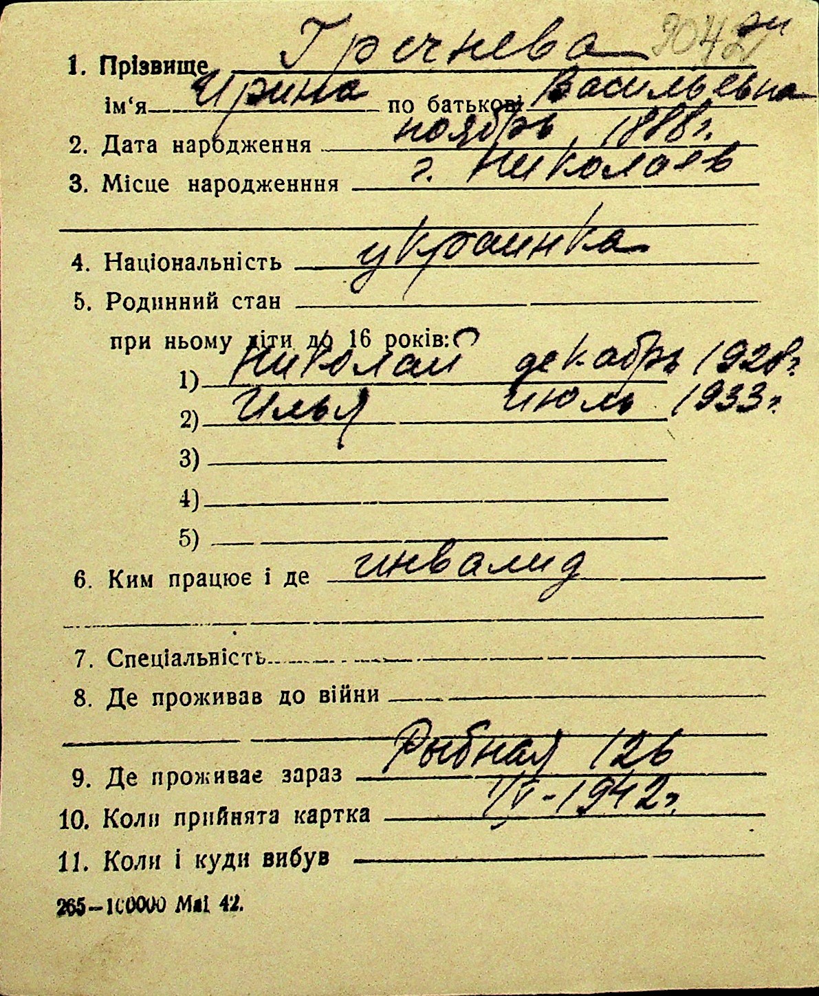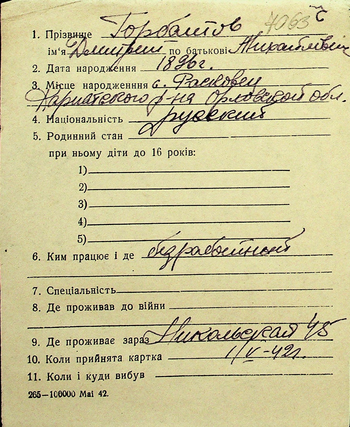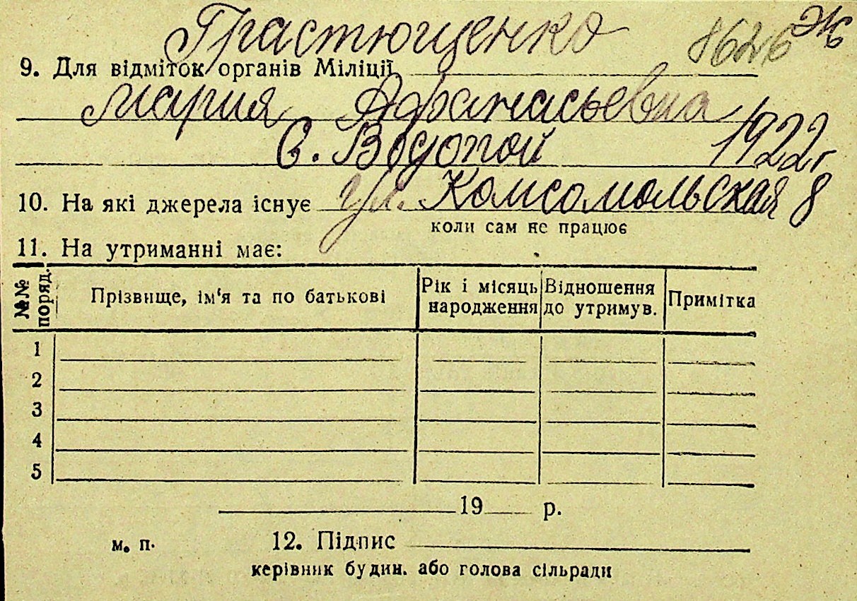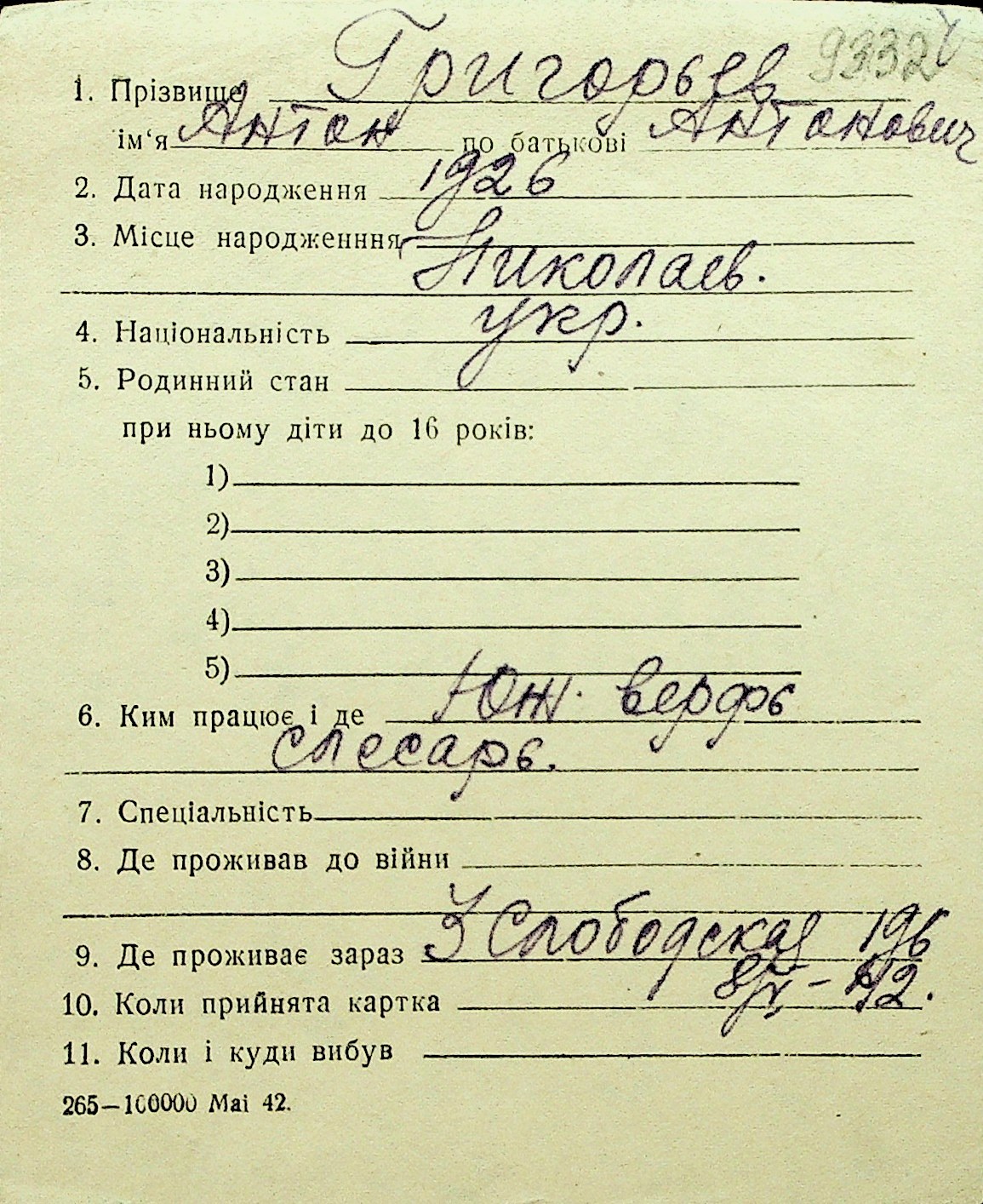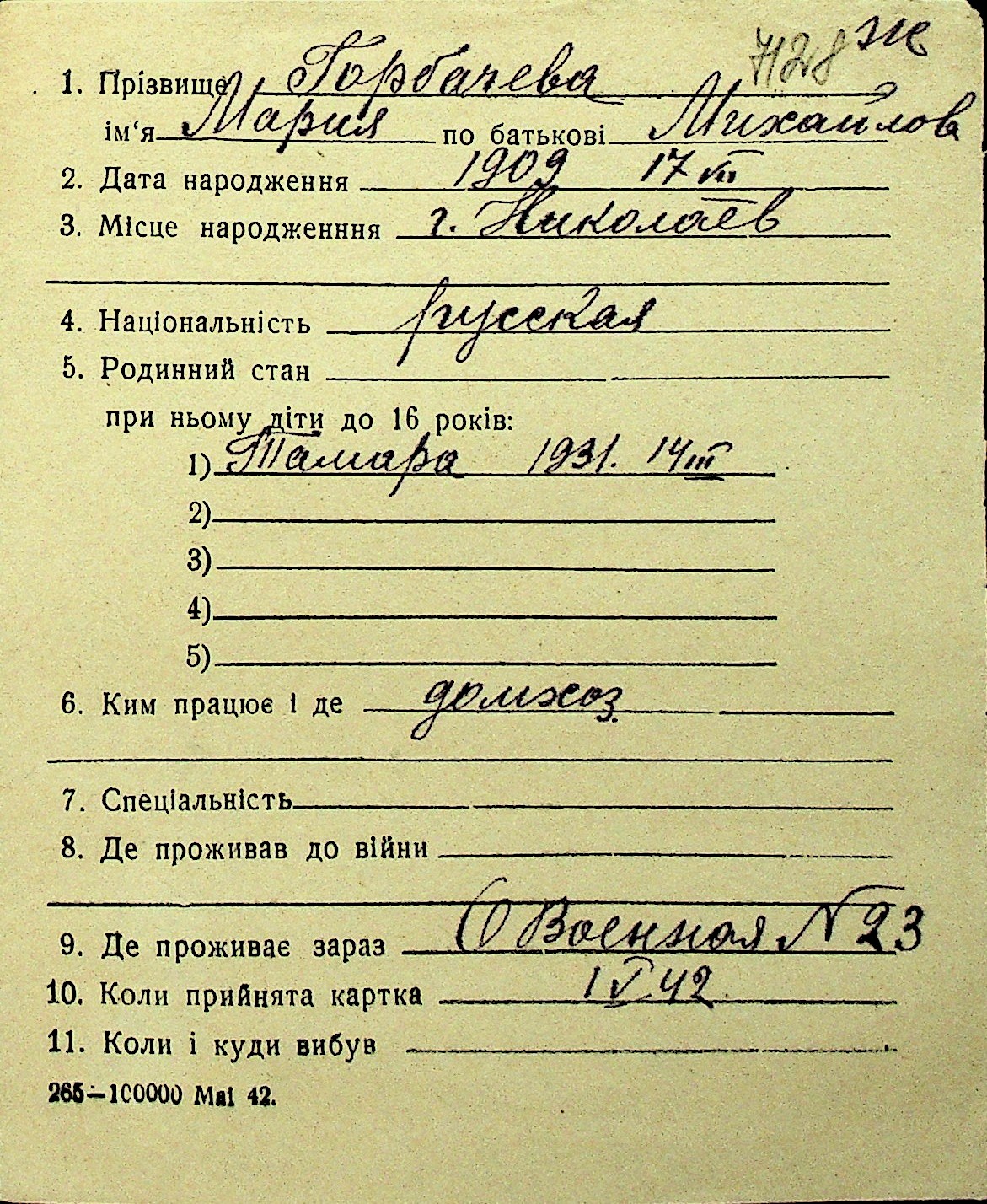 • • Перелік карток до фонду № Н-1016