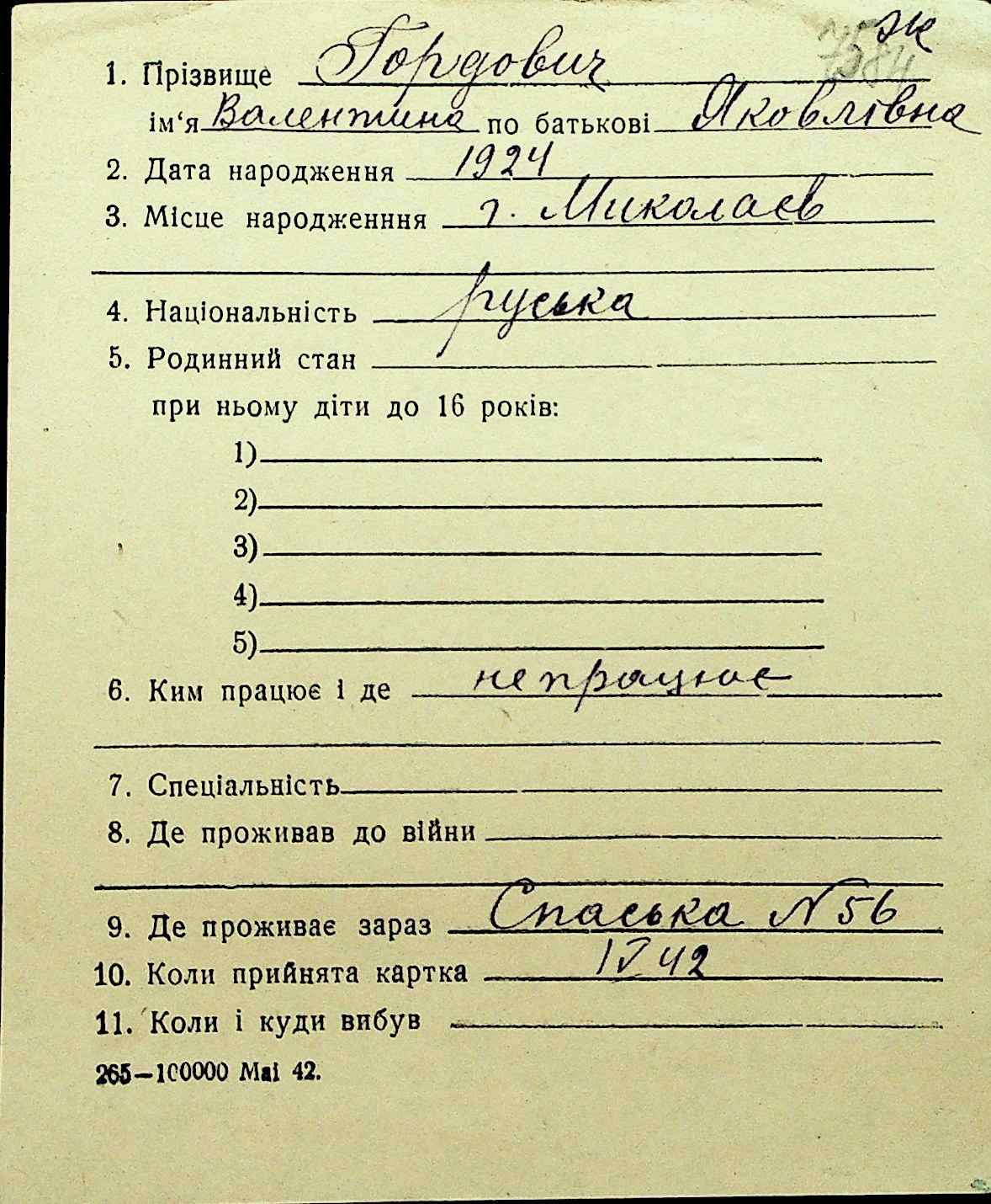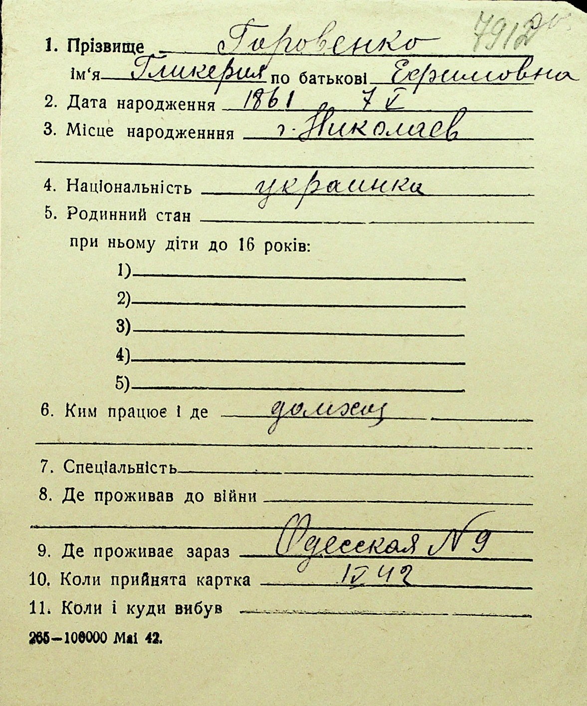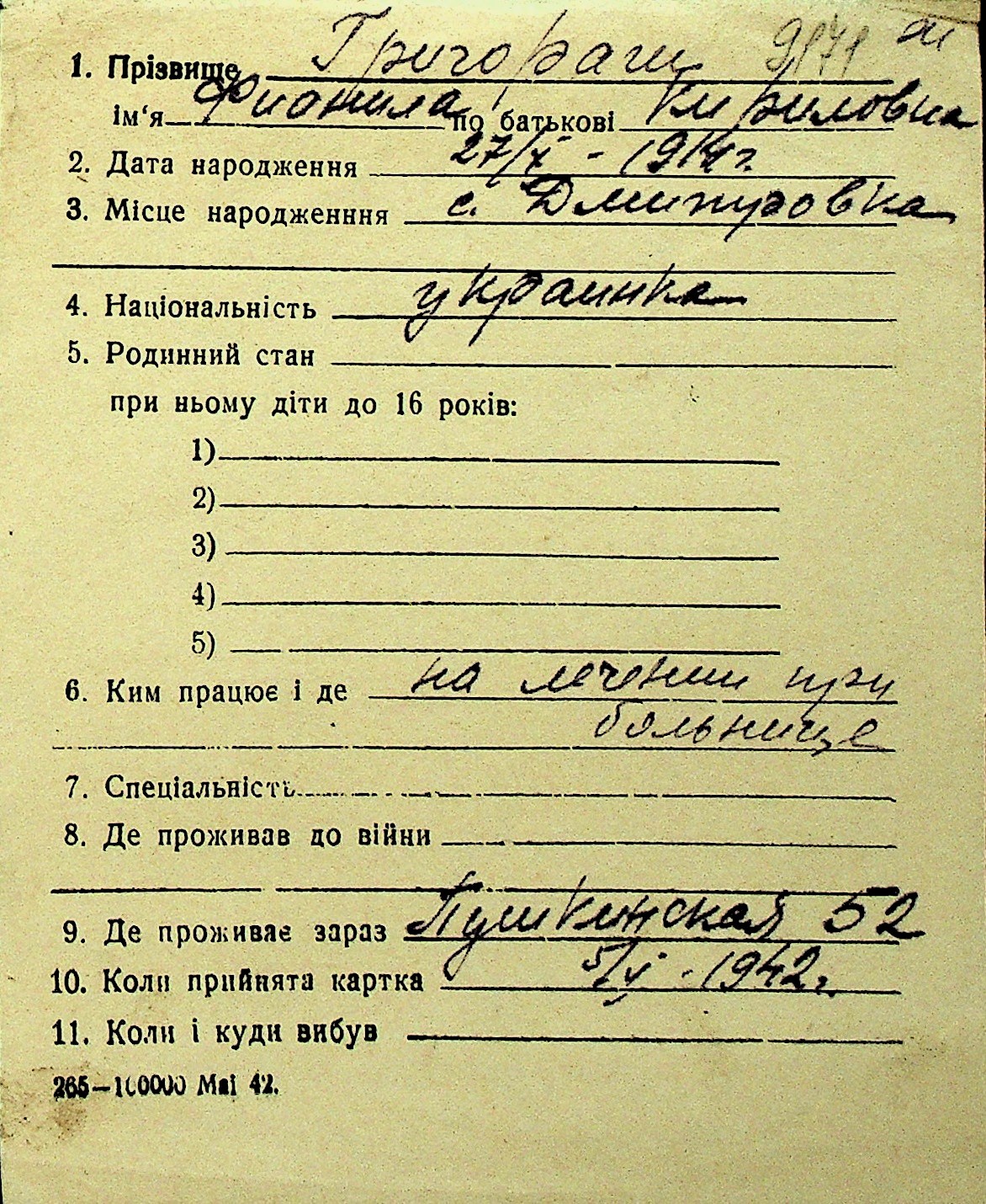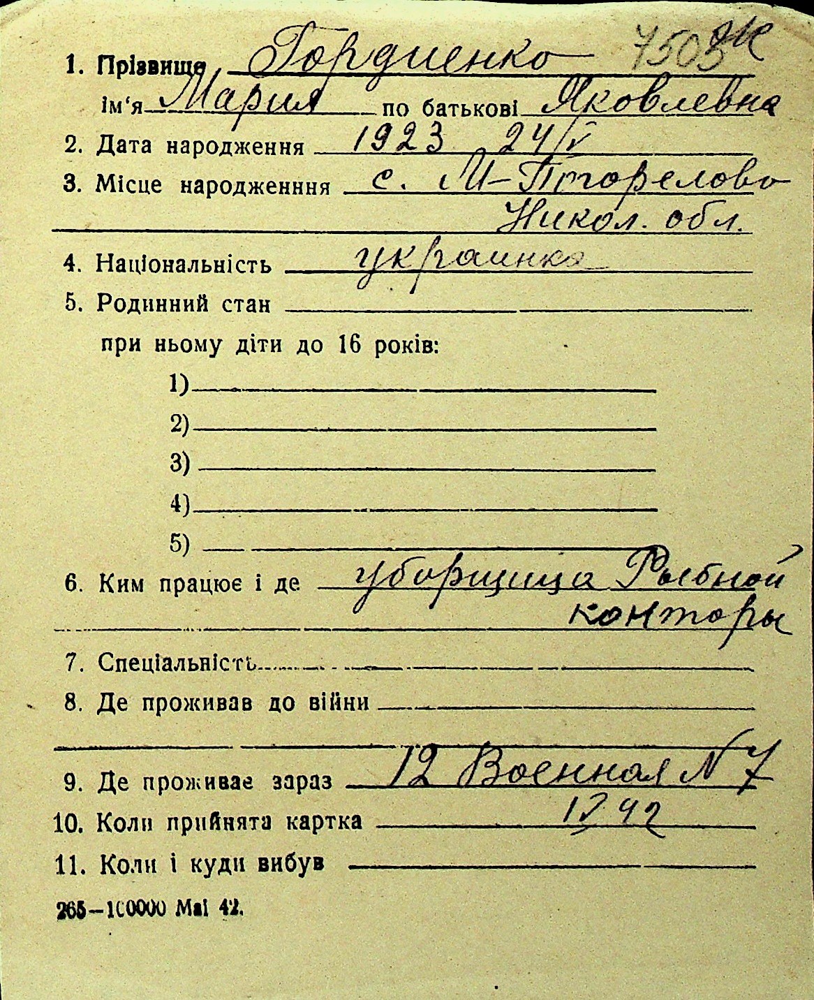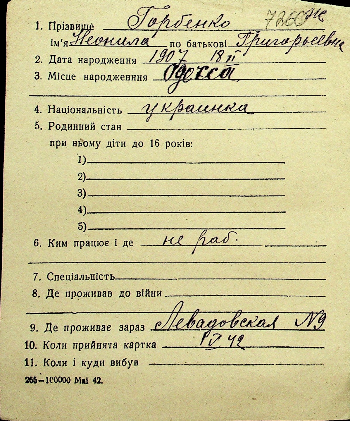 • • Перелік карток до фонду № Н-1016