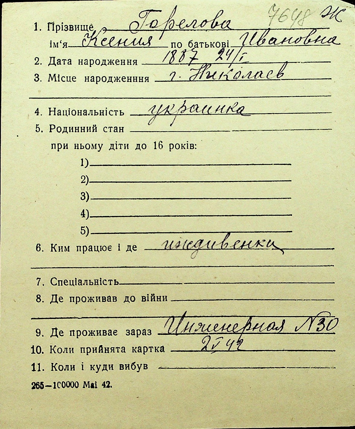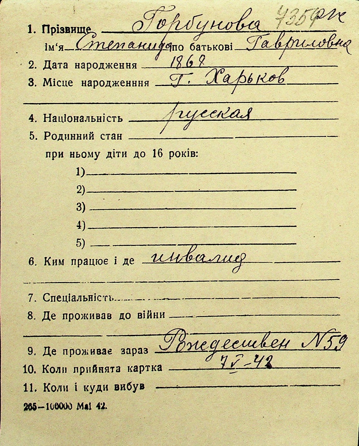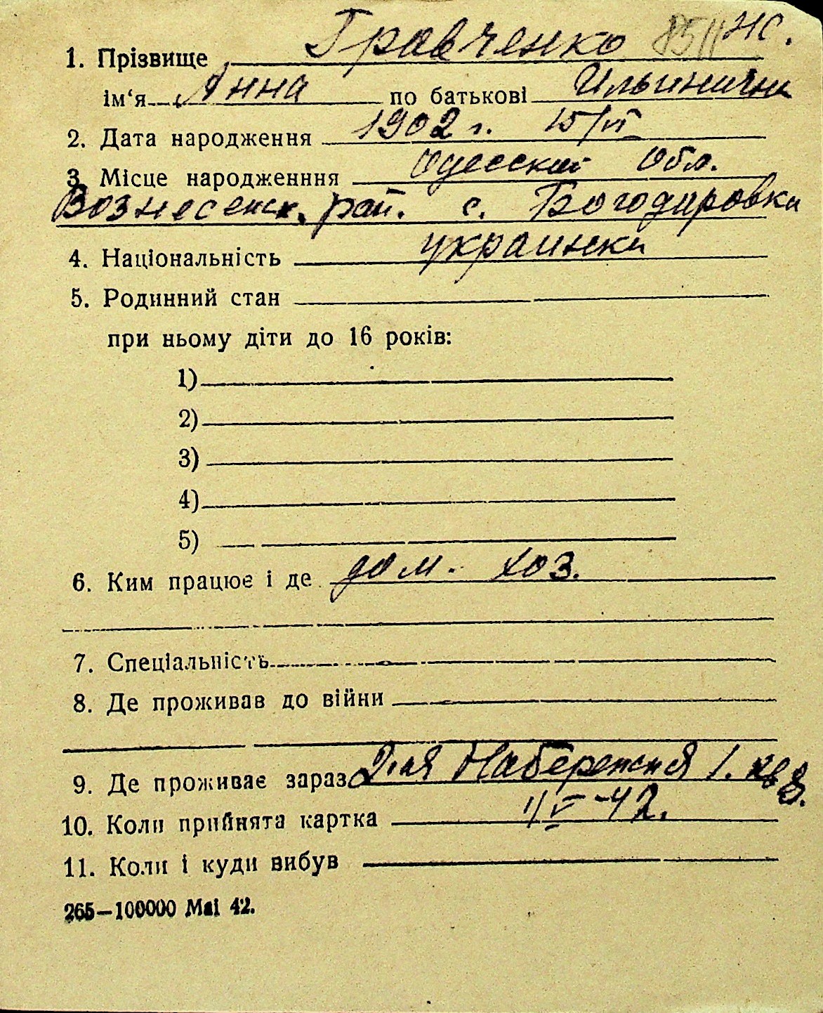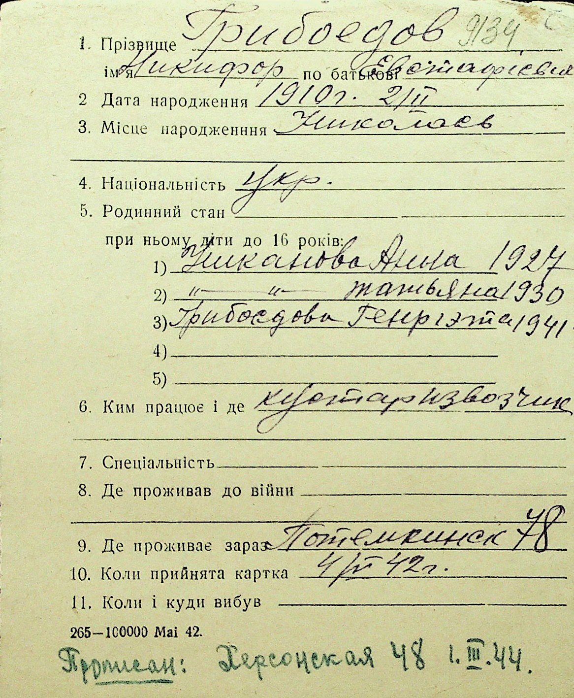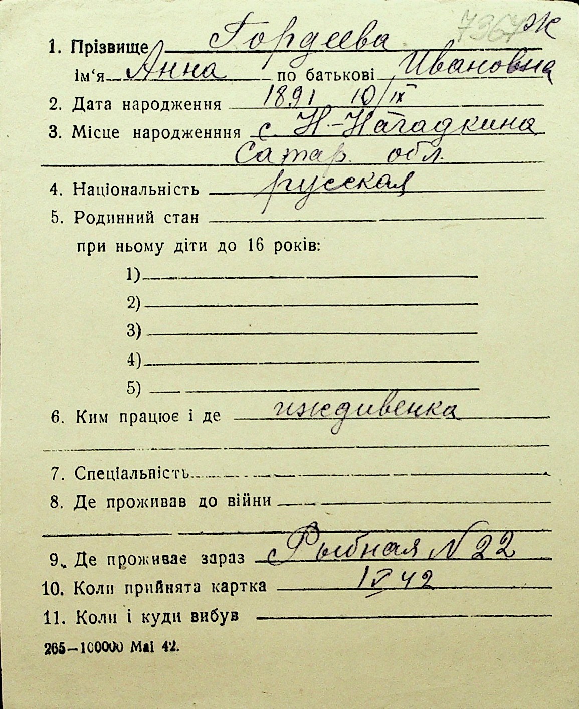 • • Перелік карток до фонду № Н-1016