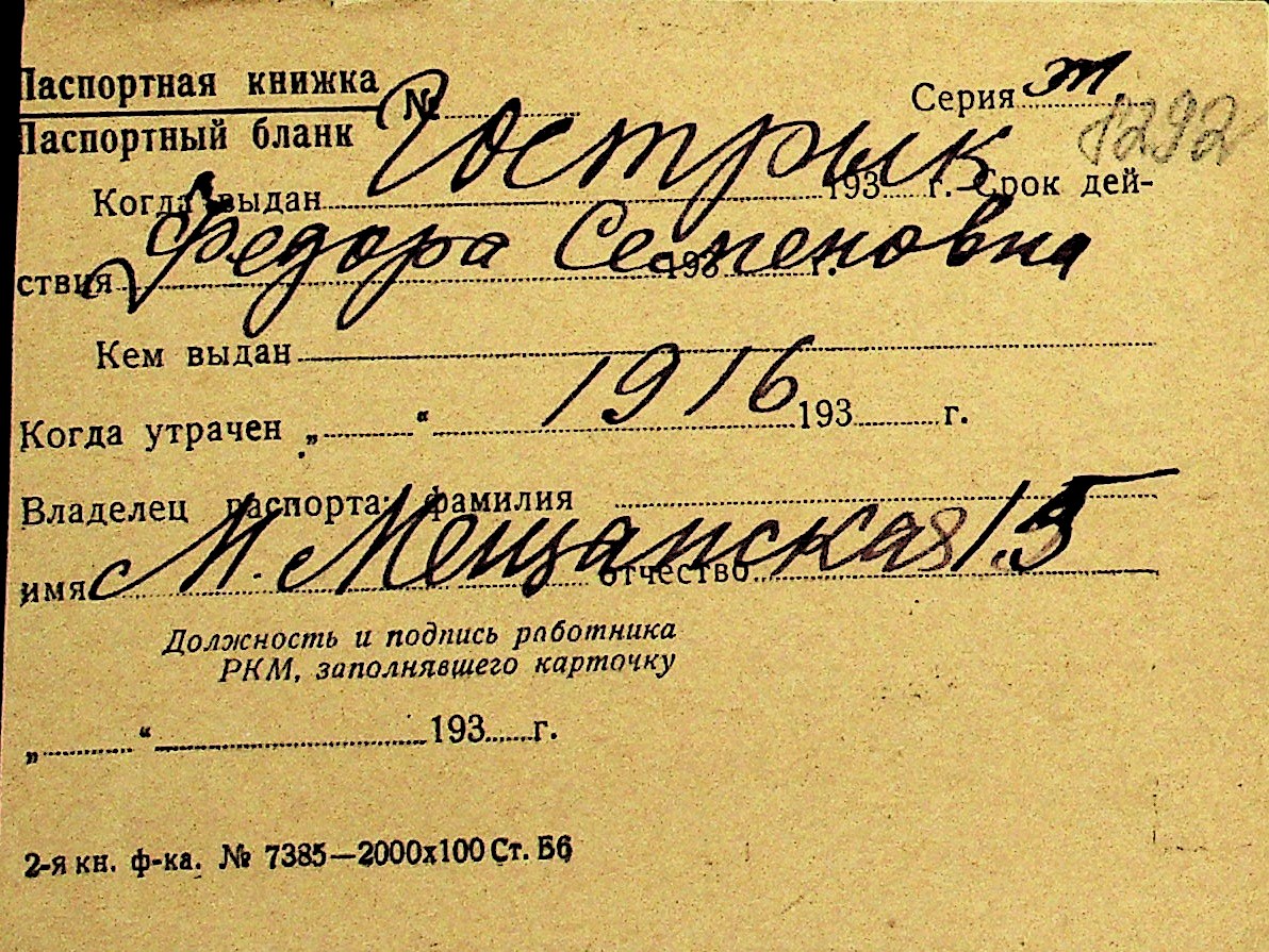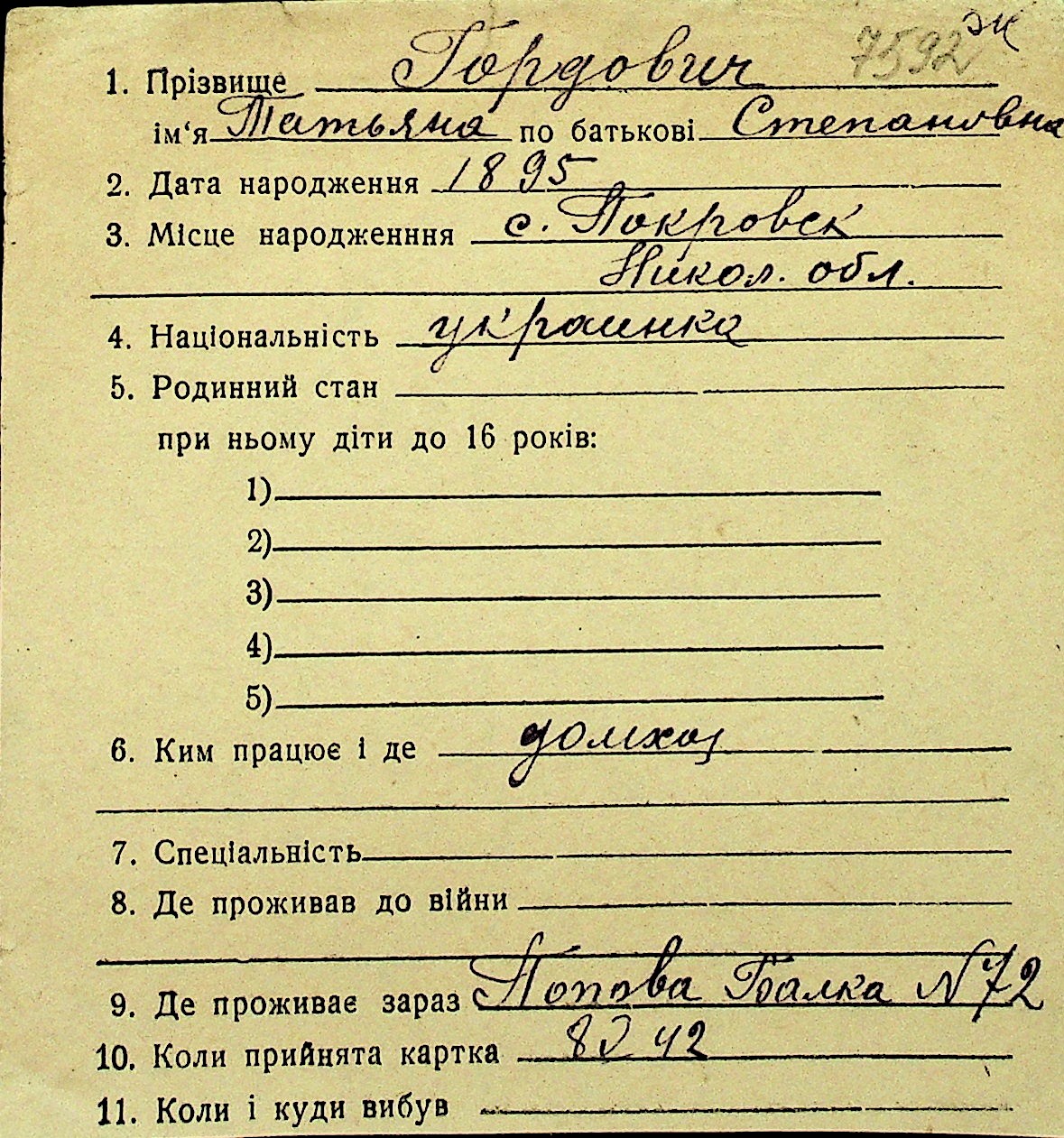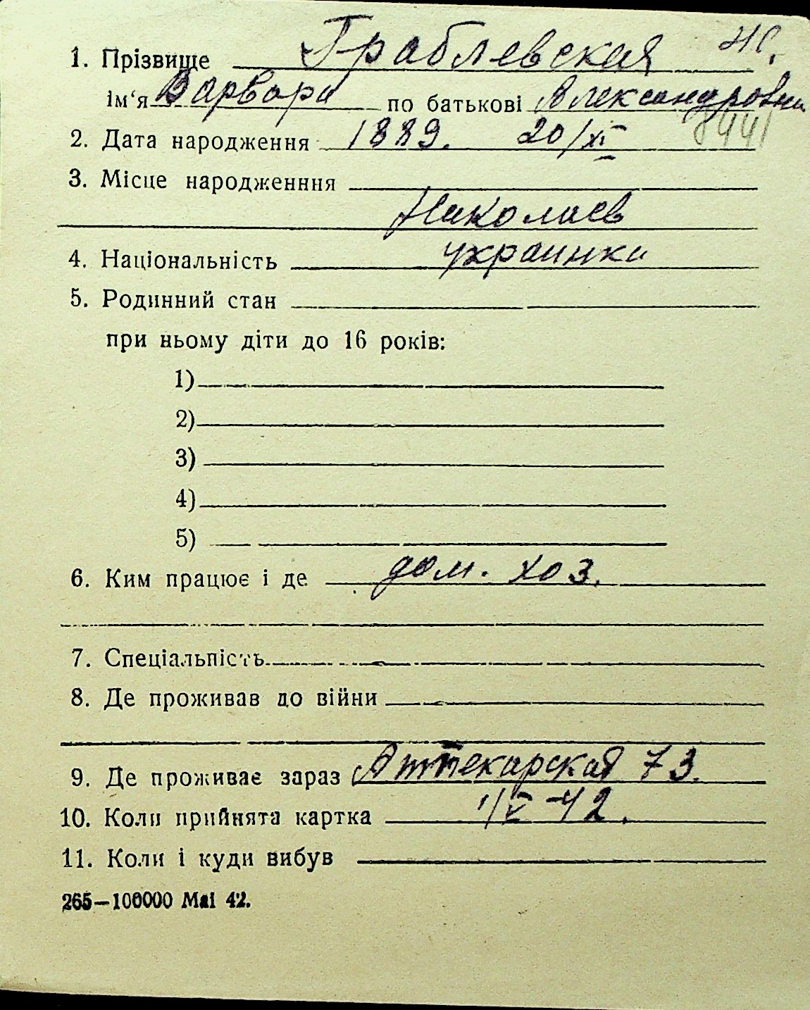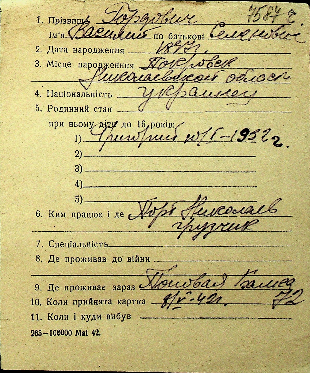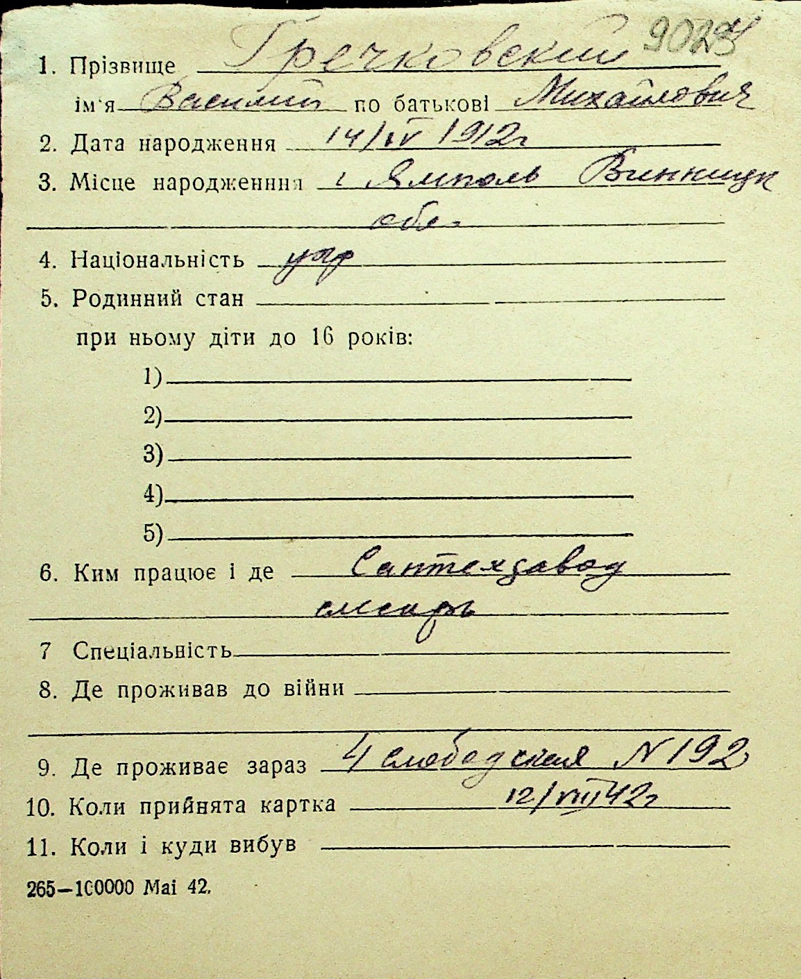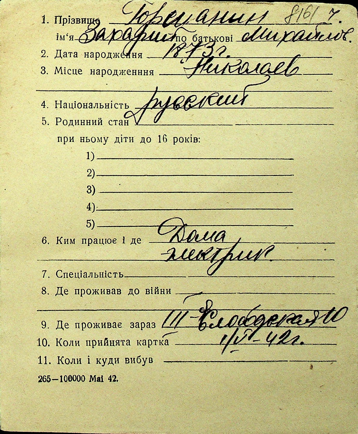 • • Перелік карток до фонду № Н-1016