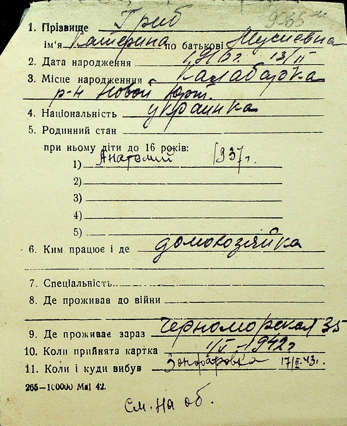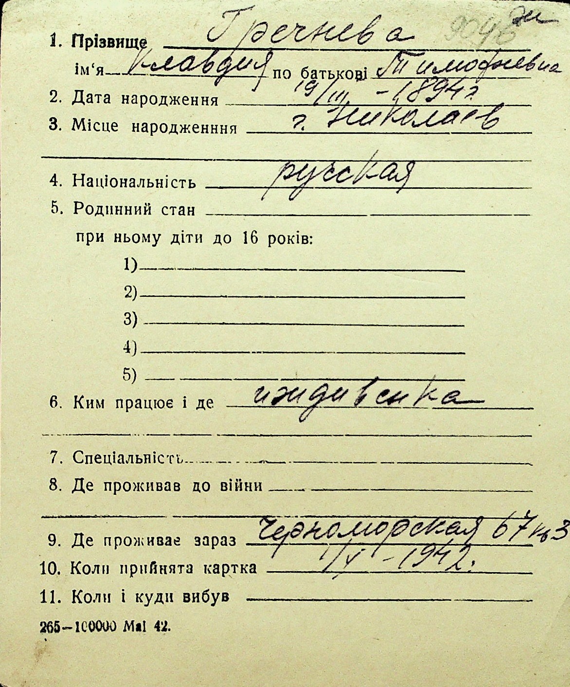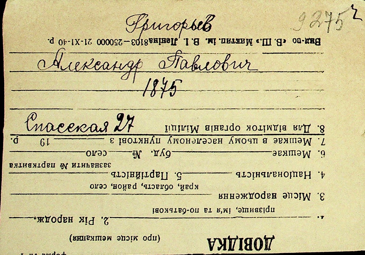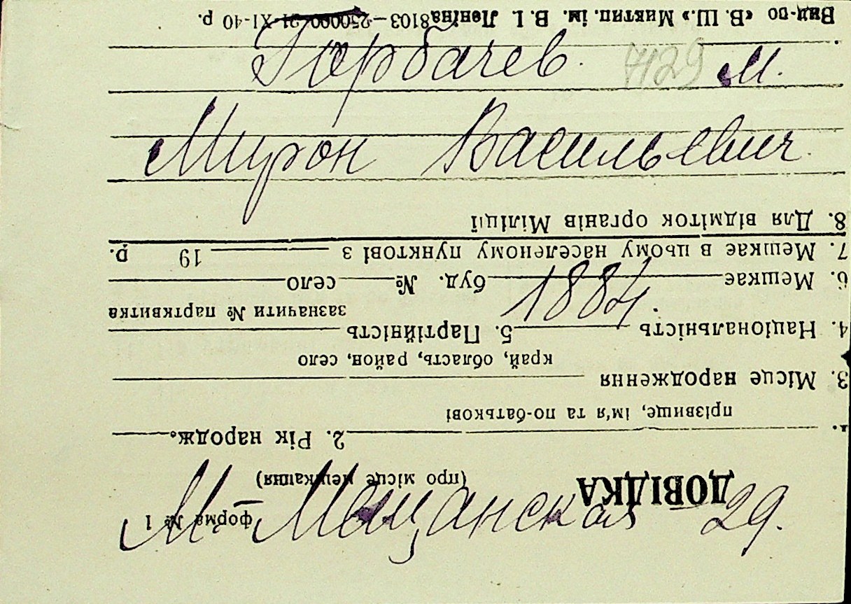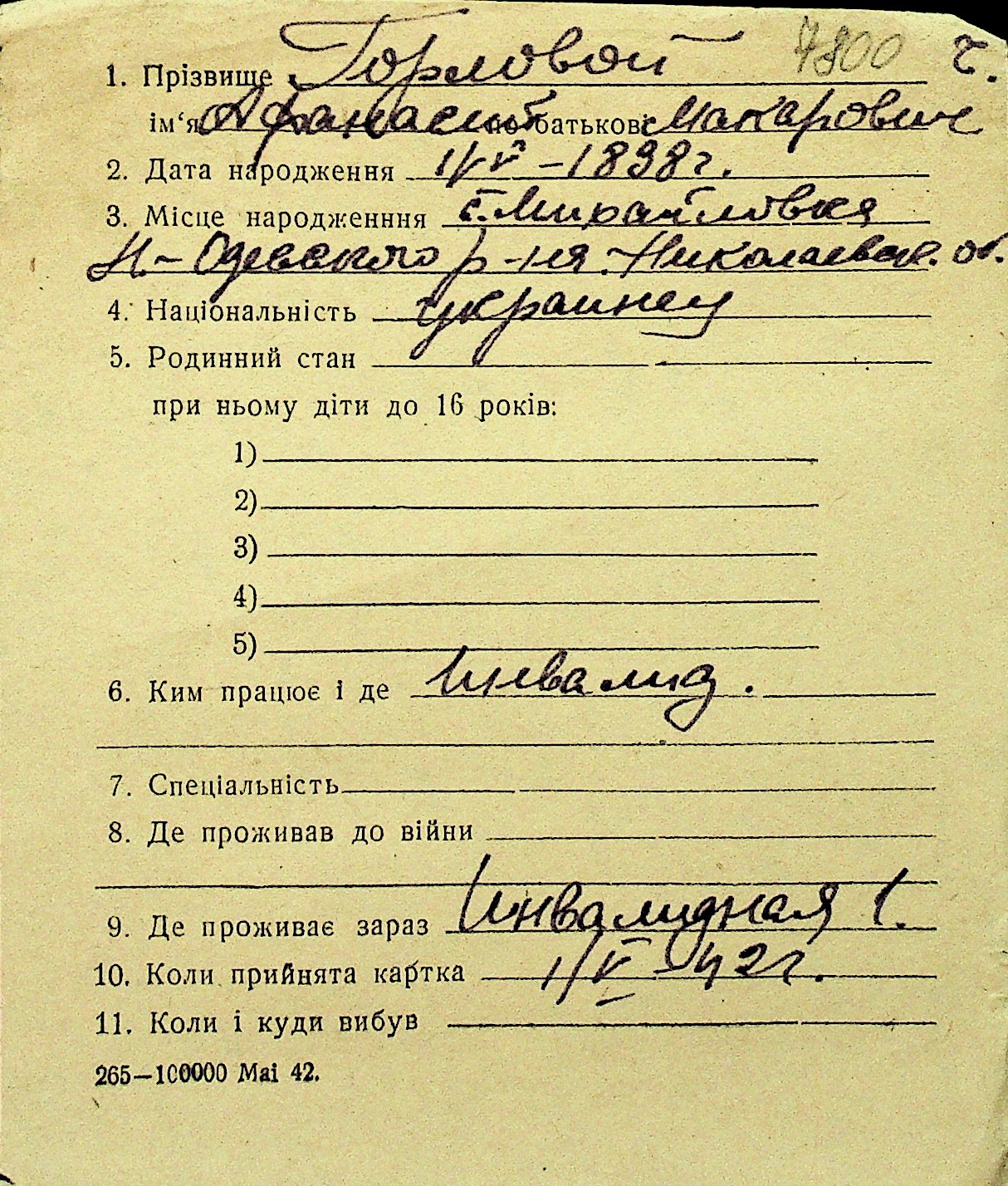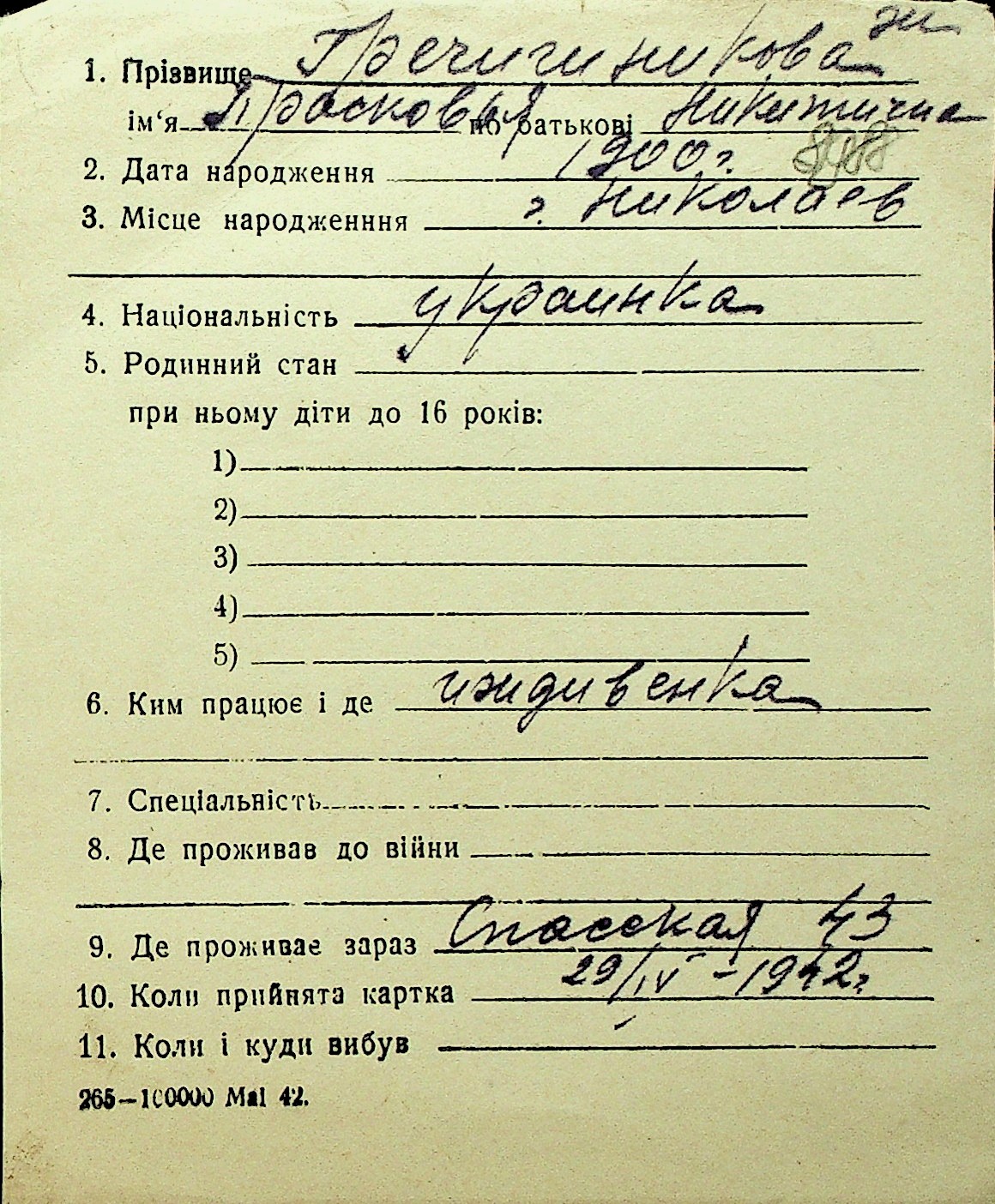 • • Перелік карток до фонду № Н-1016