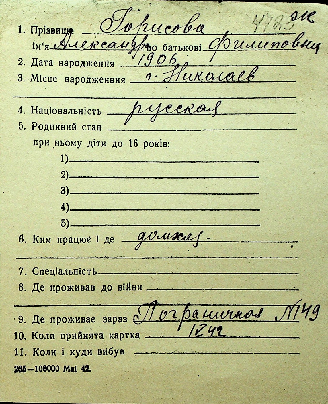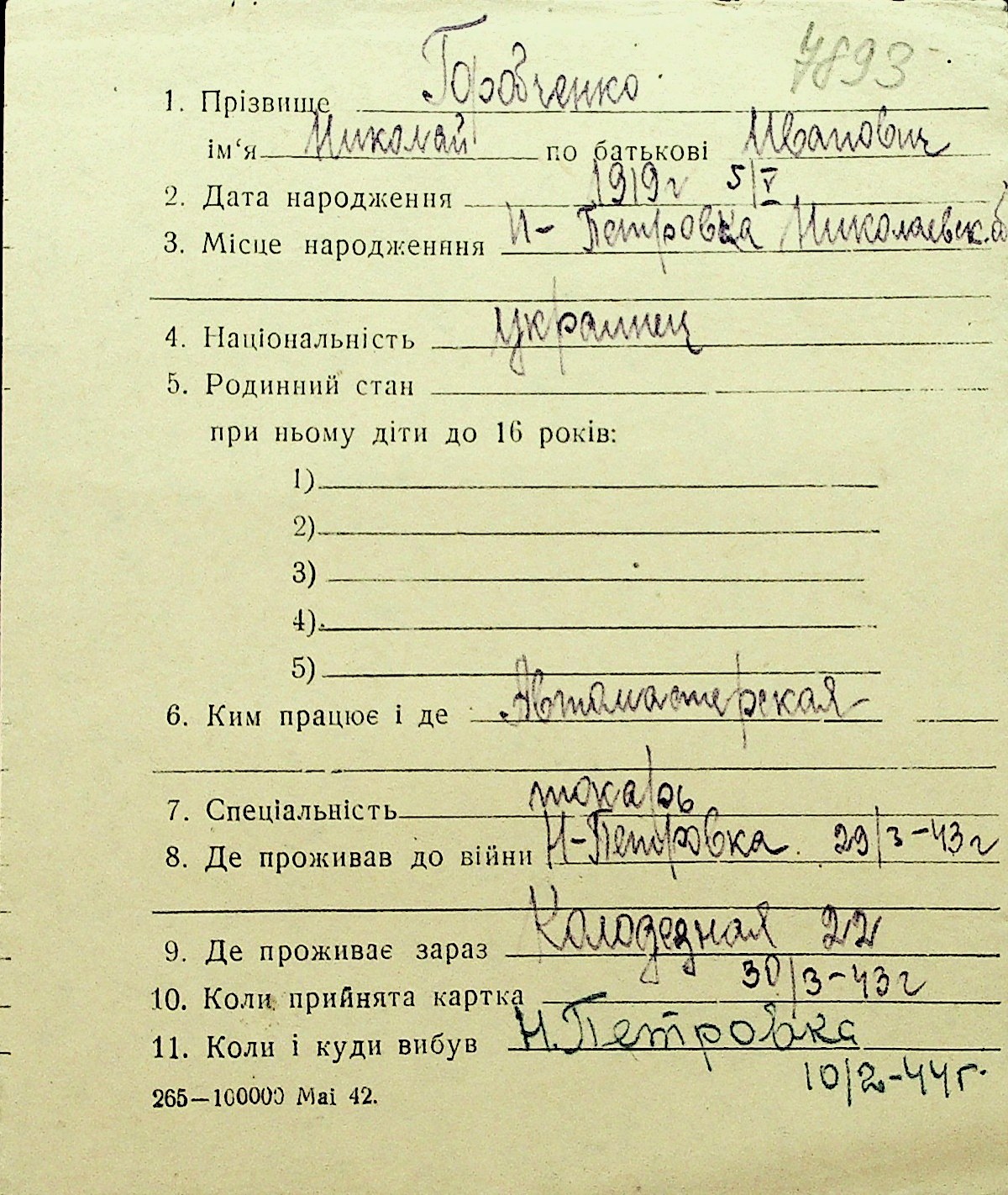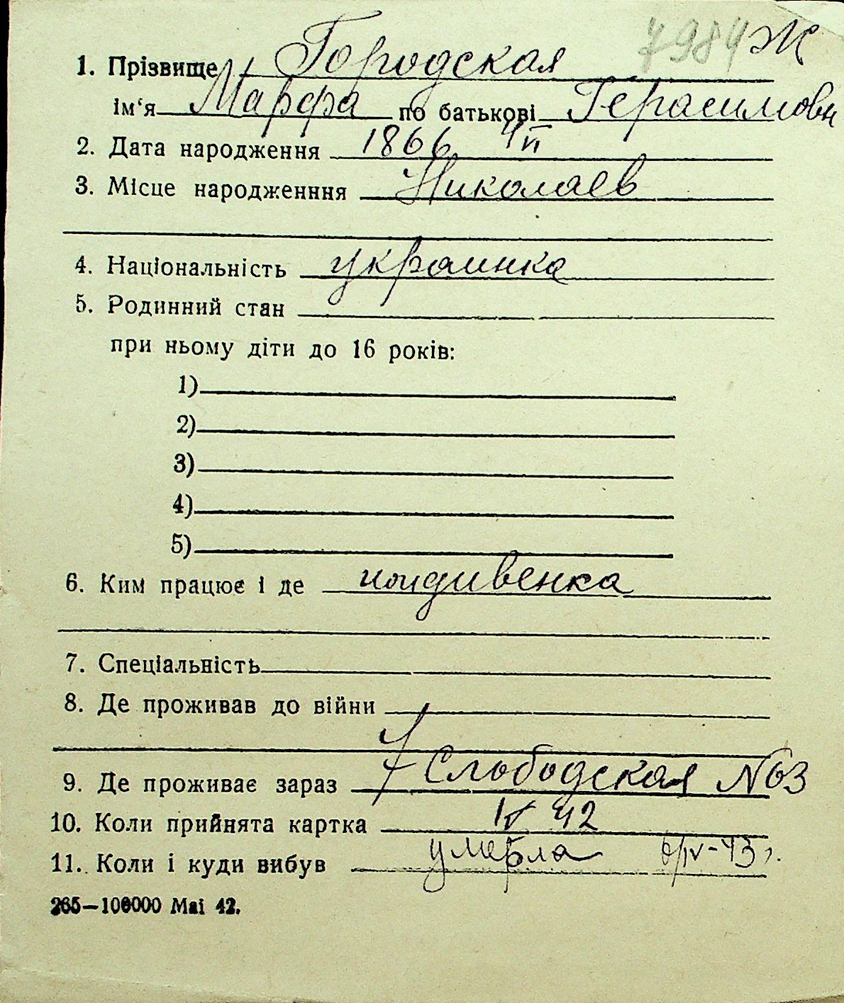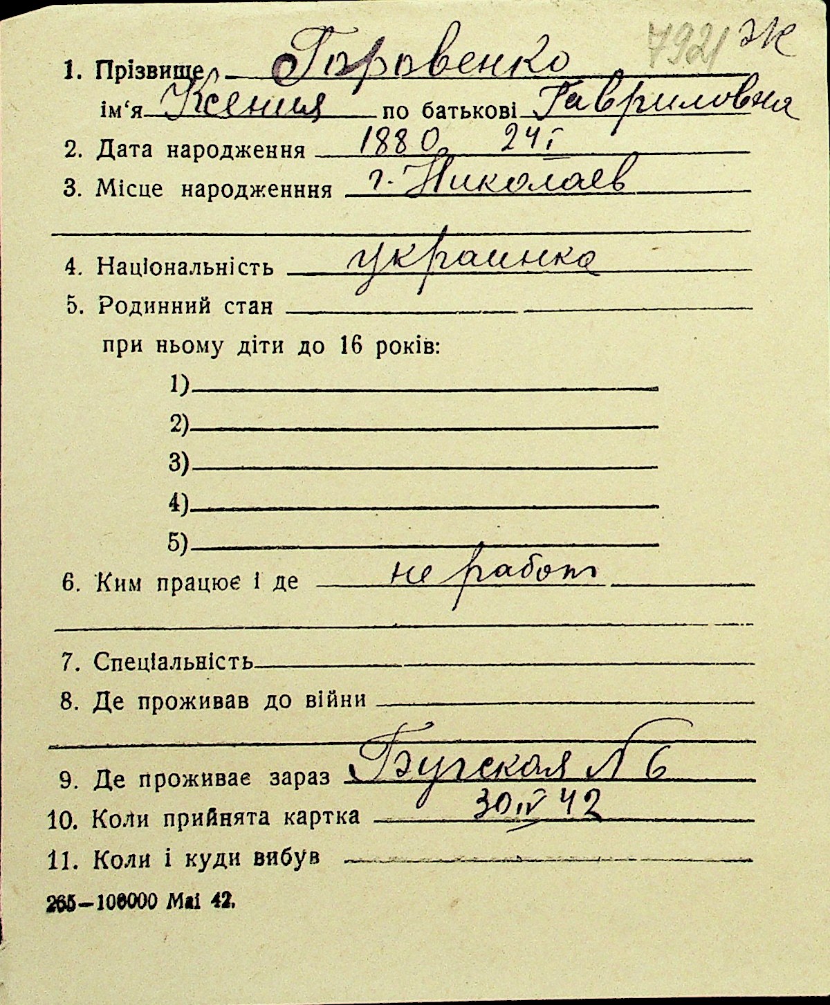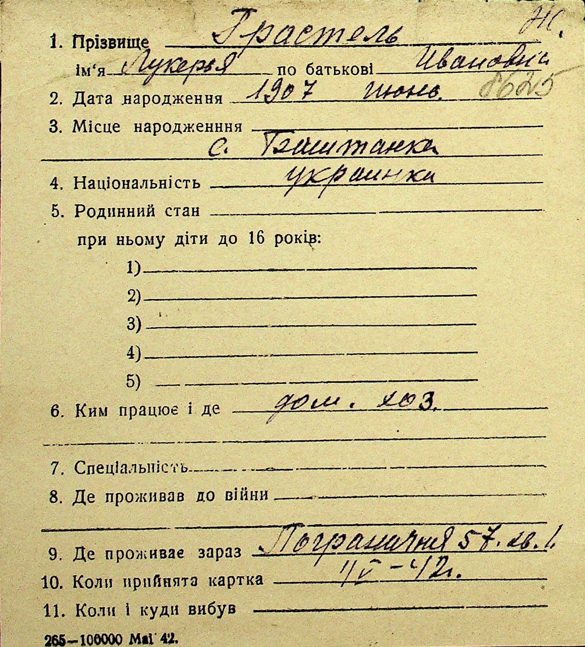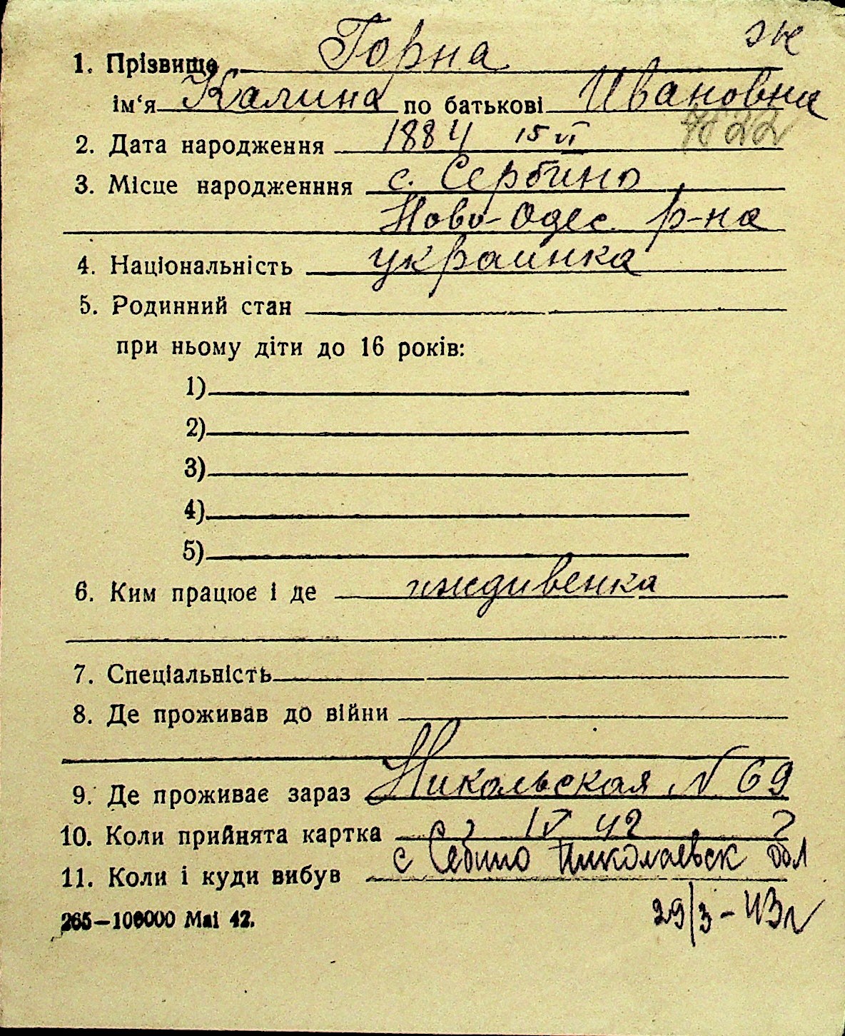 • • Перелік карток до фонду № Н-1016
