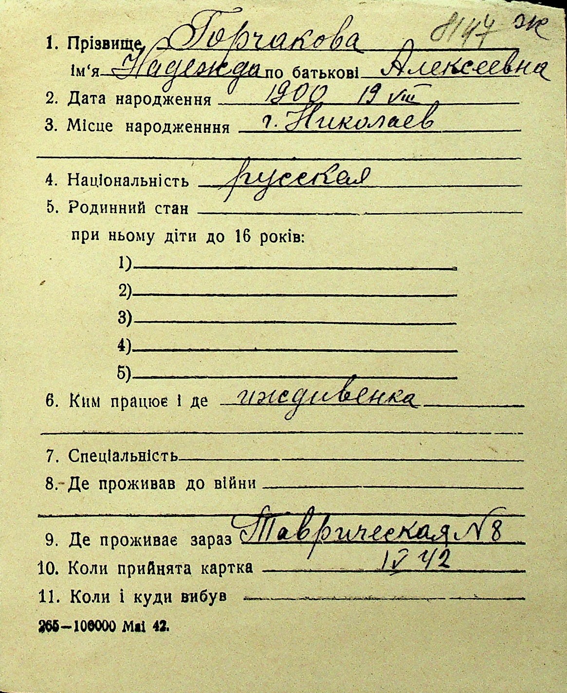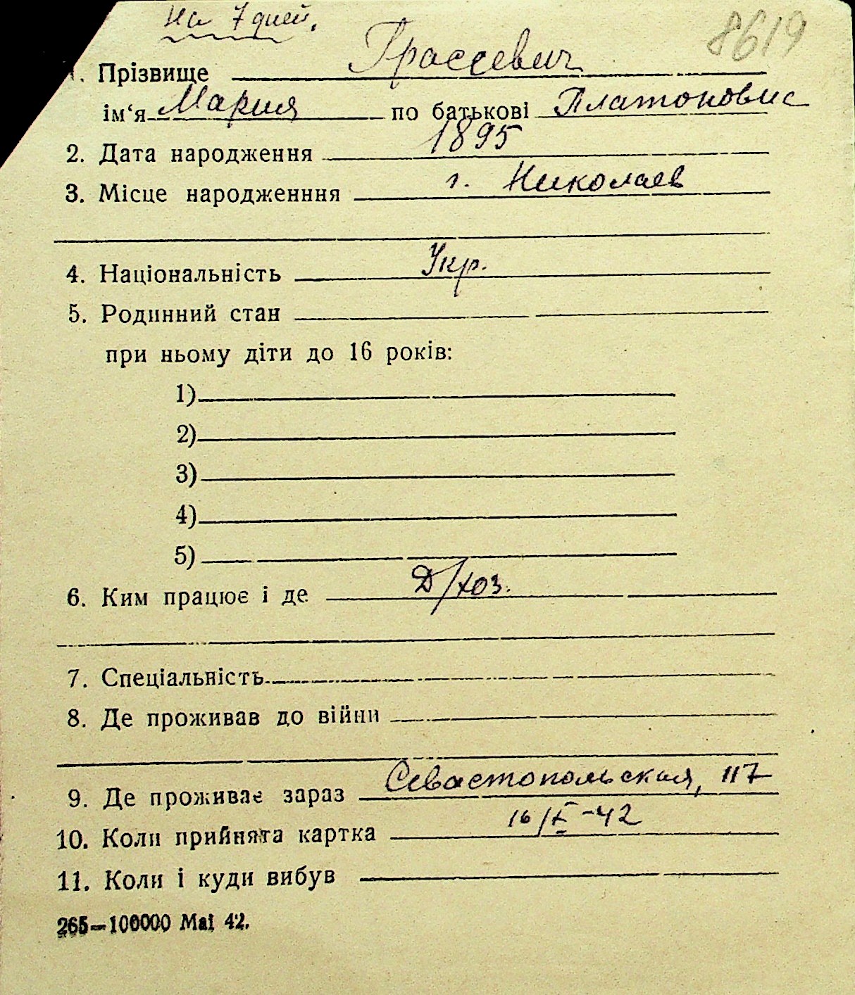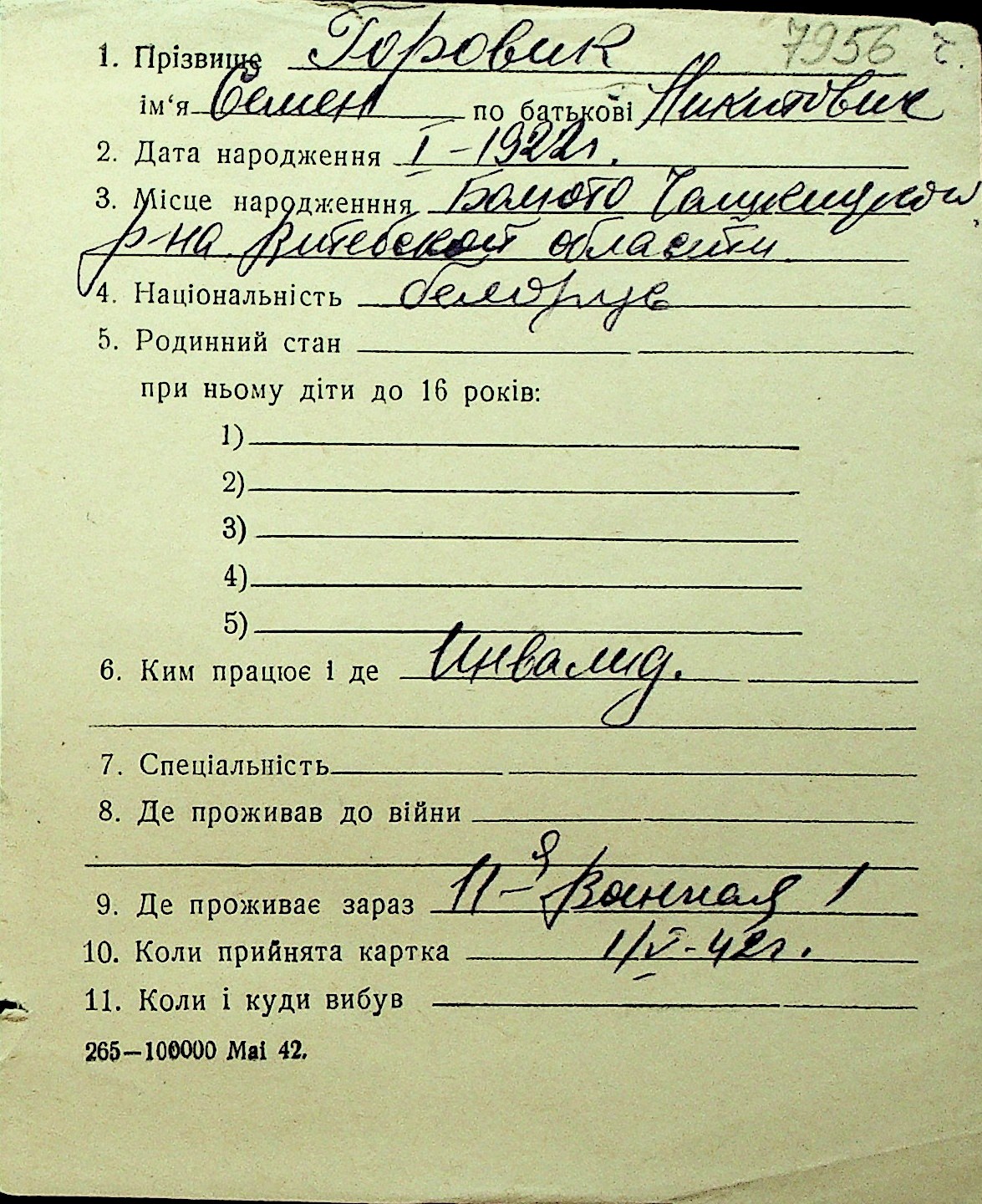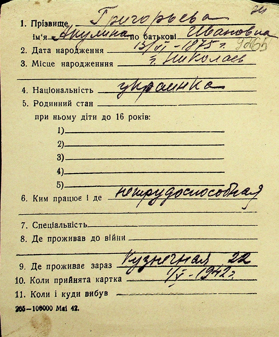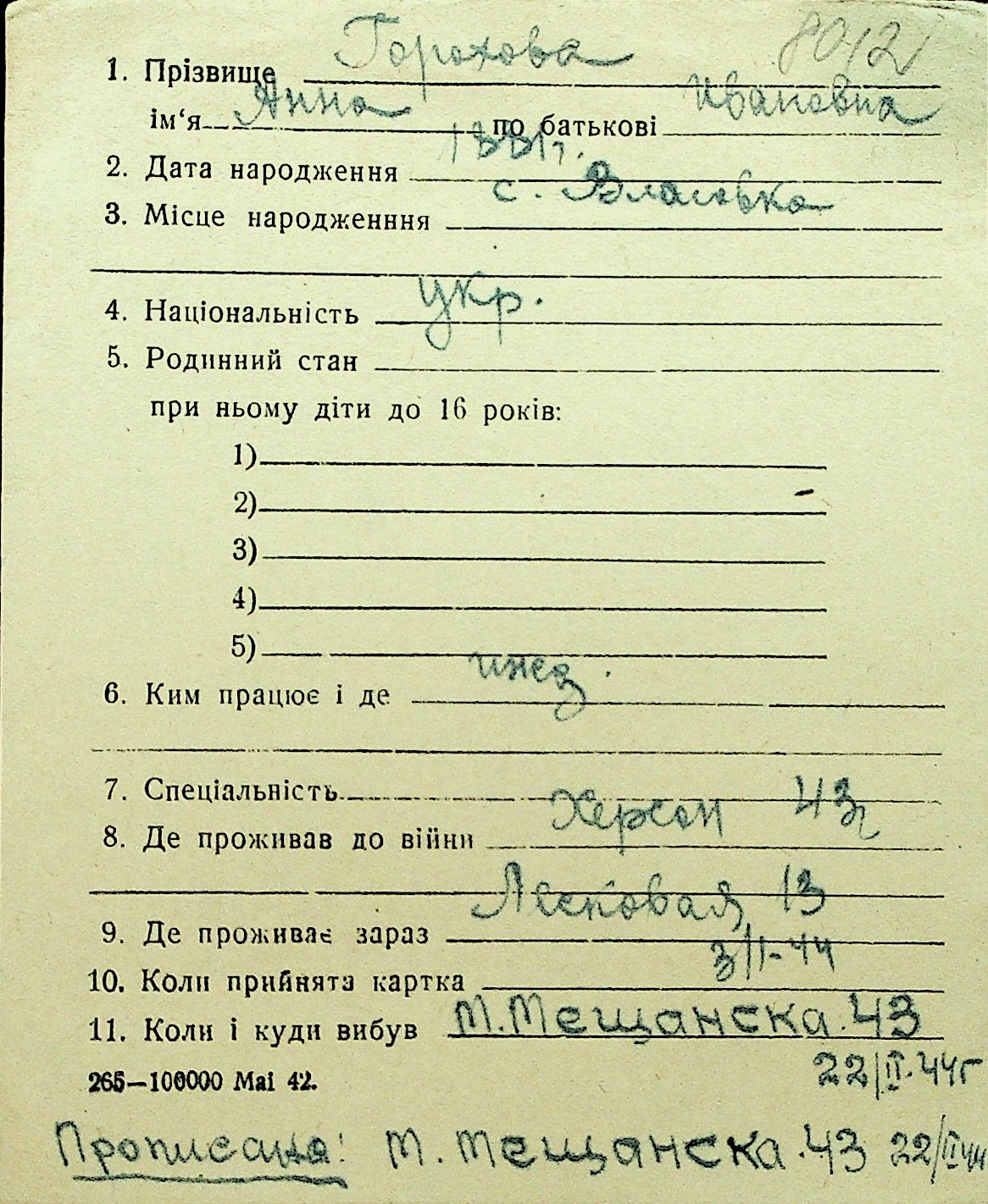 • • Перелік карток до фонду № Н-1016