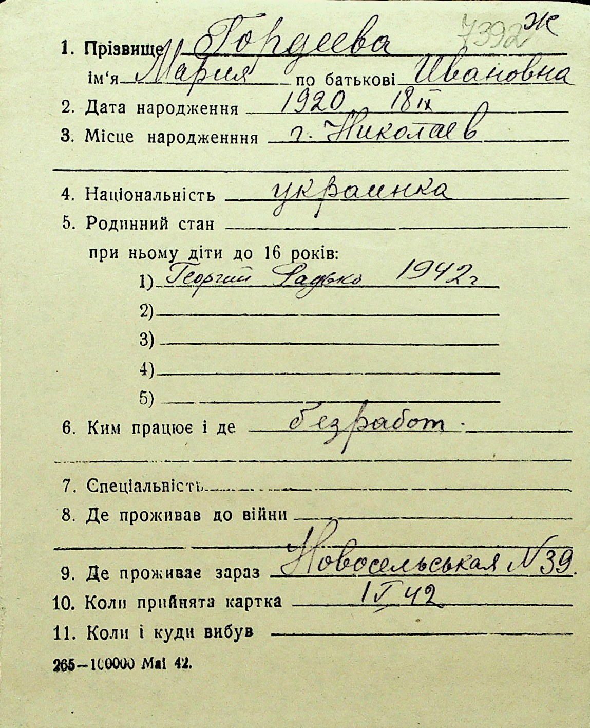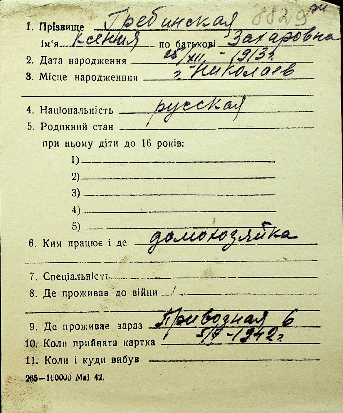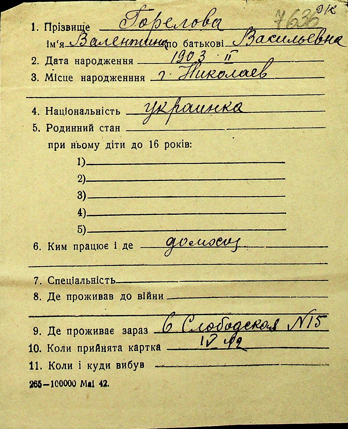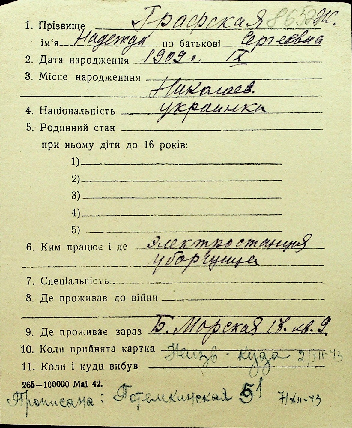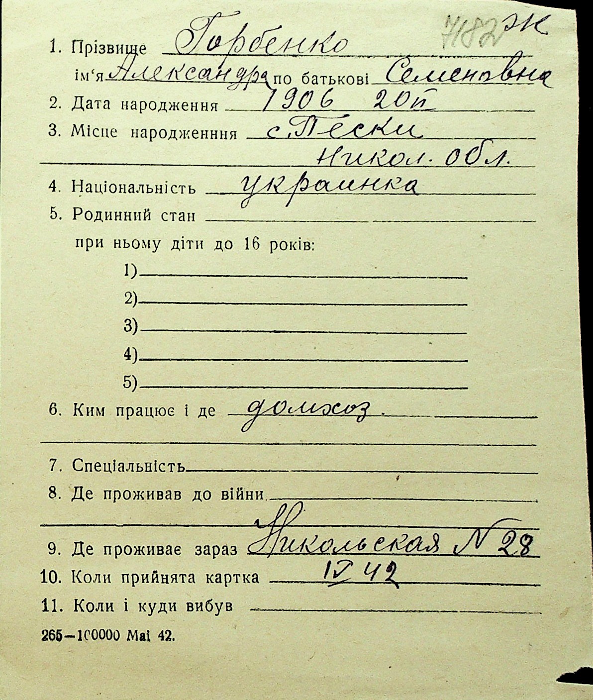 • • Перелік карток до фонду № Н-1016