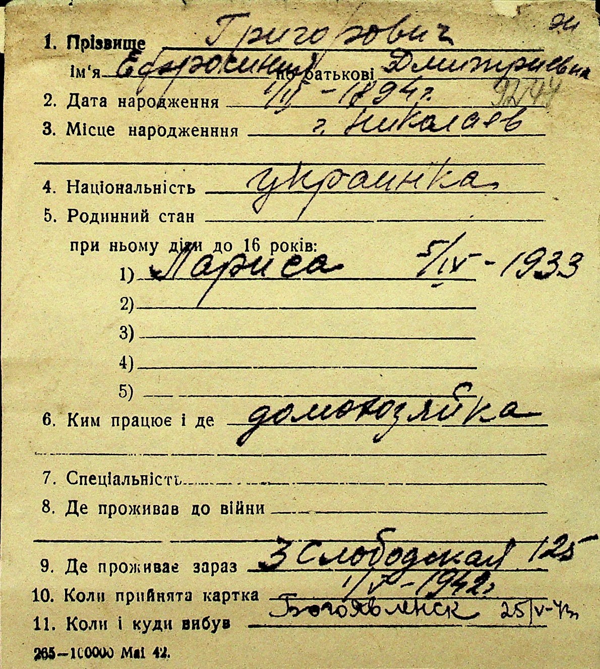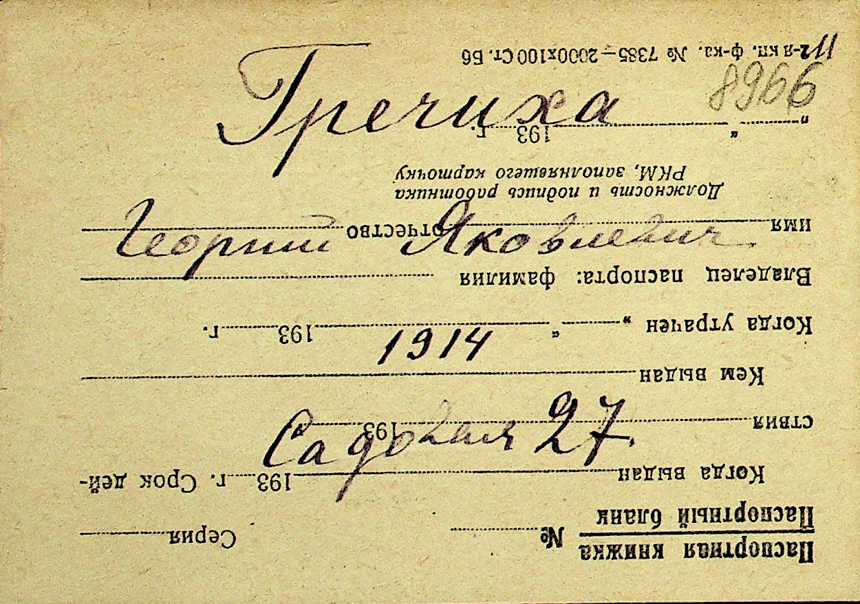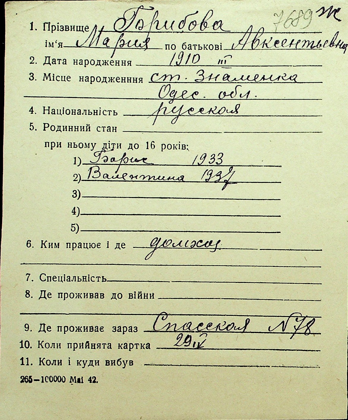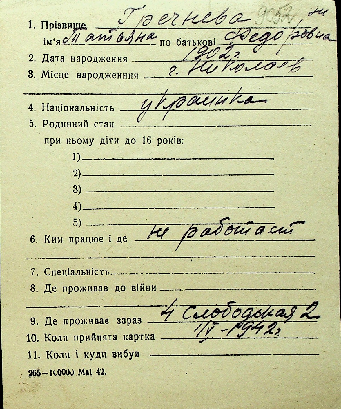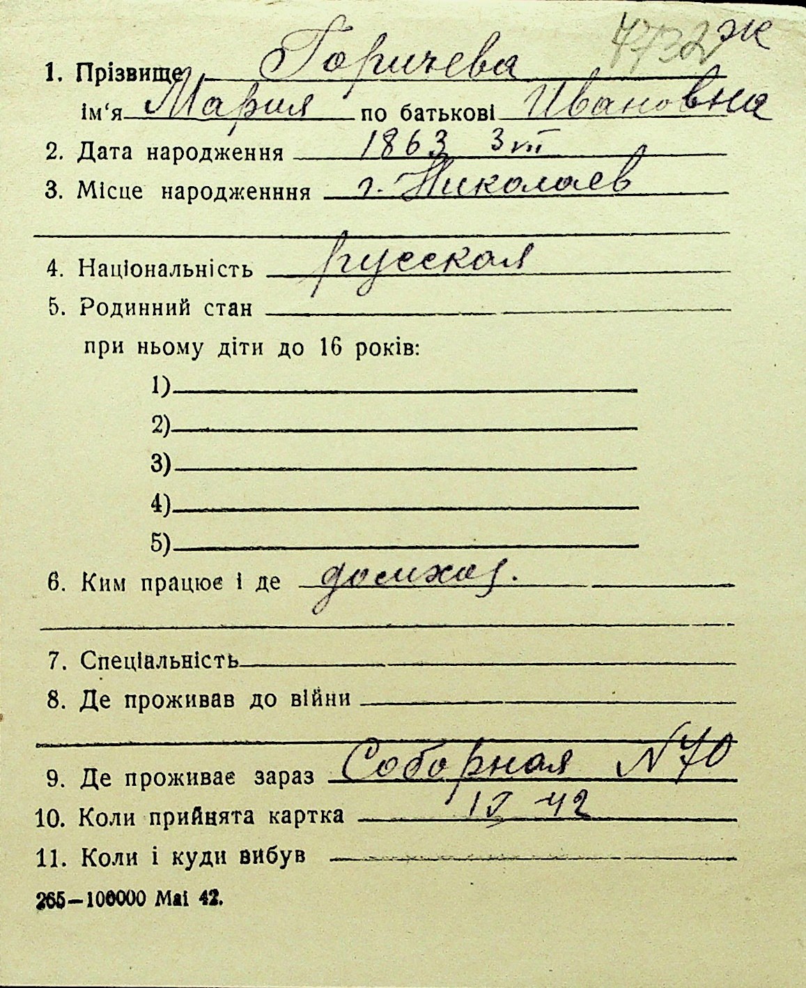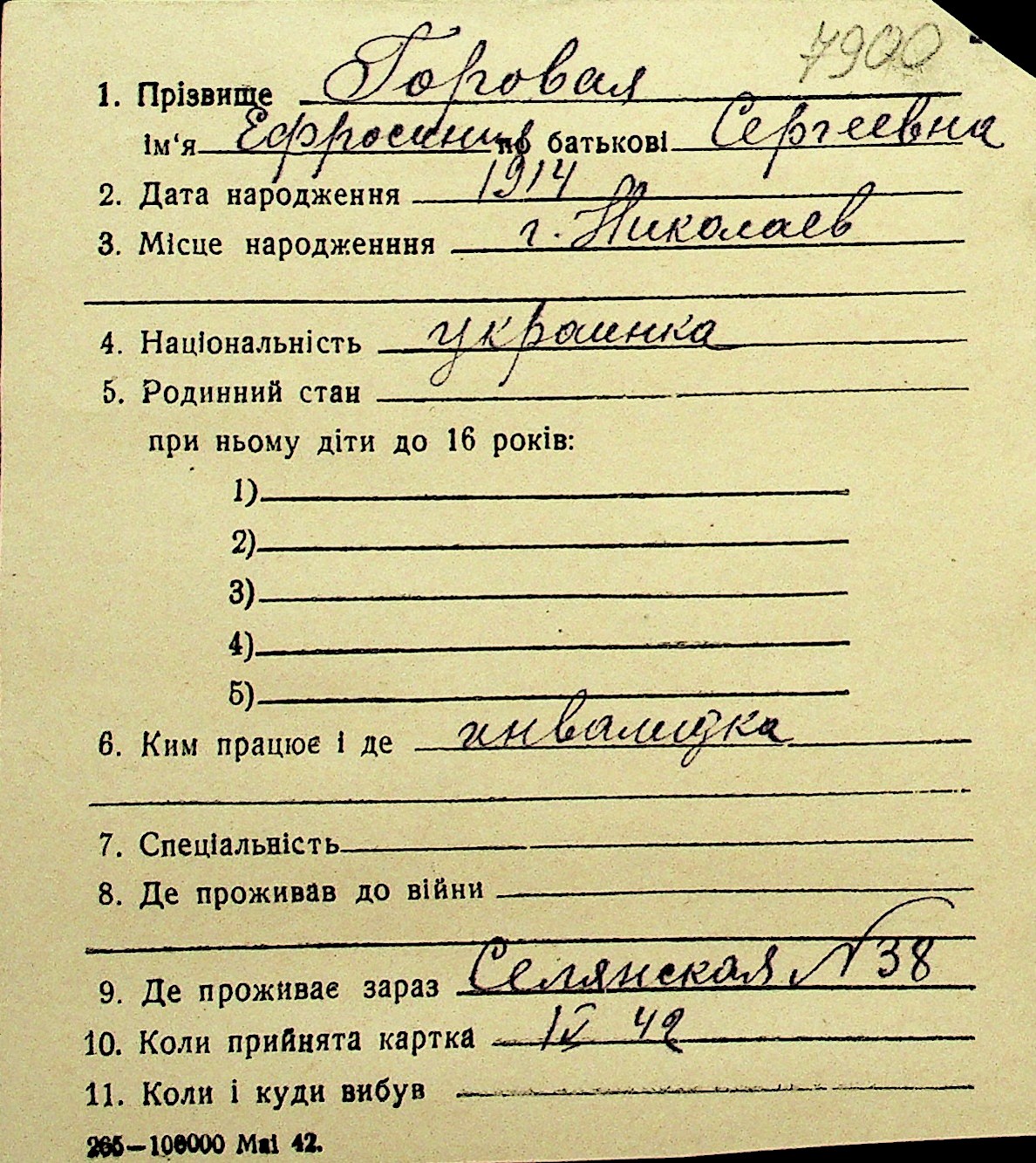 • • Перелік карток до фонду № Н-1016