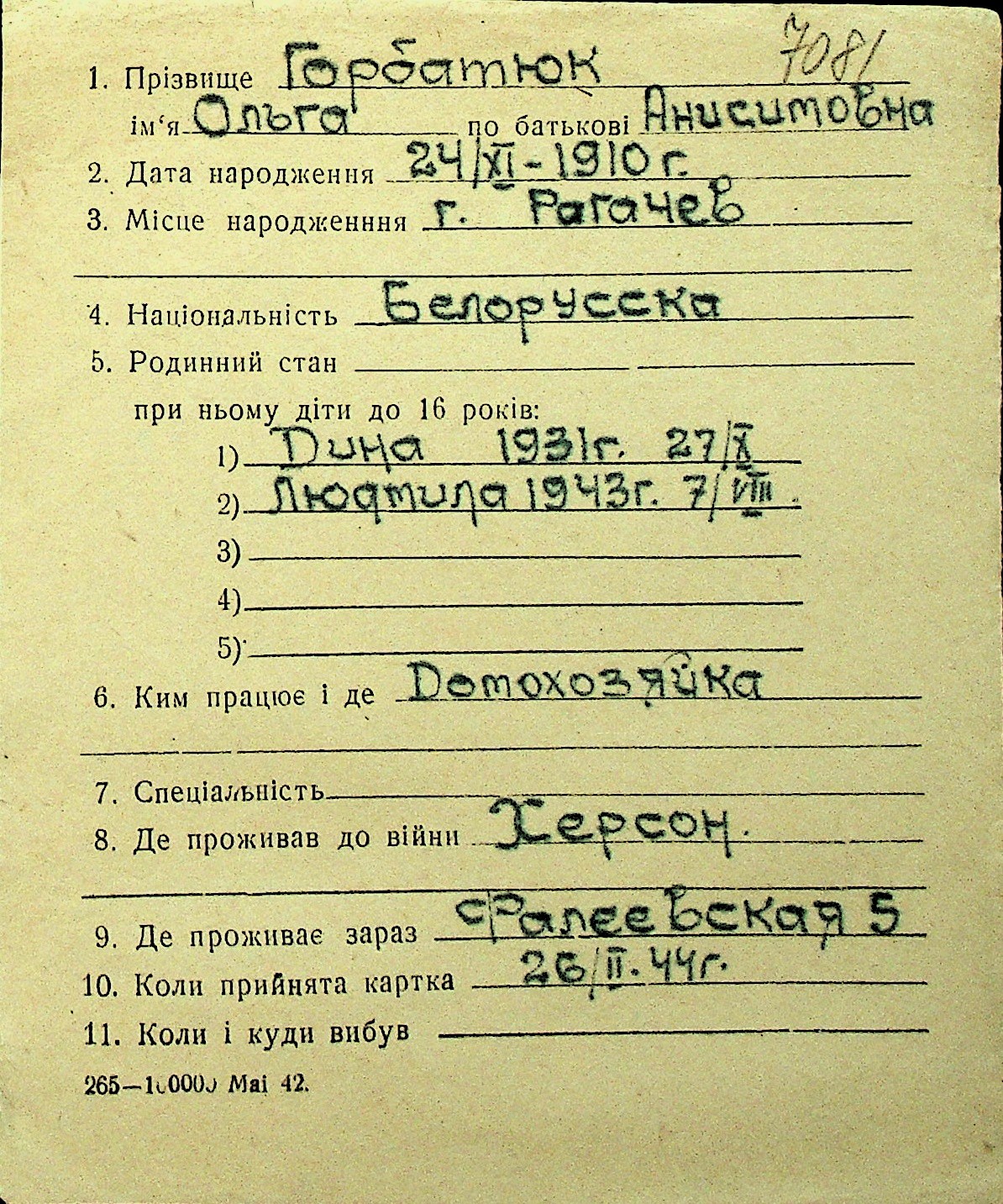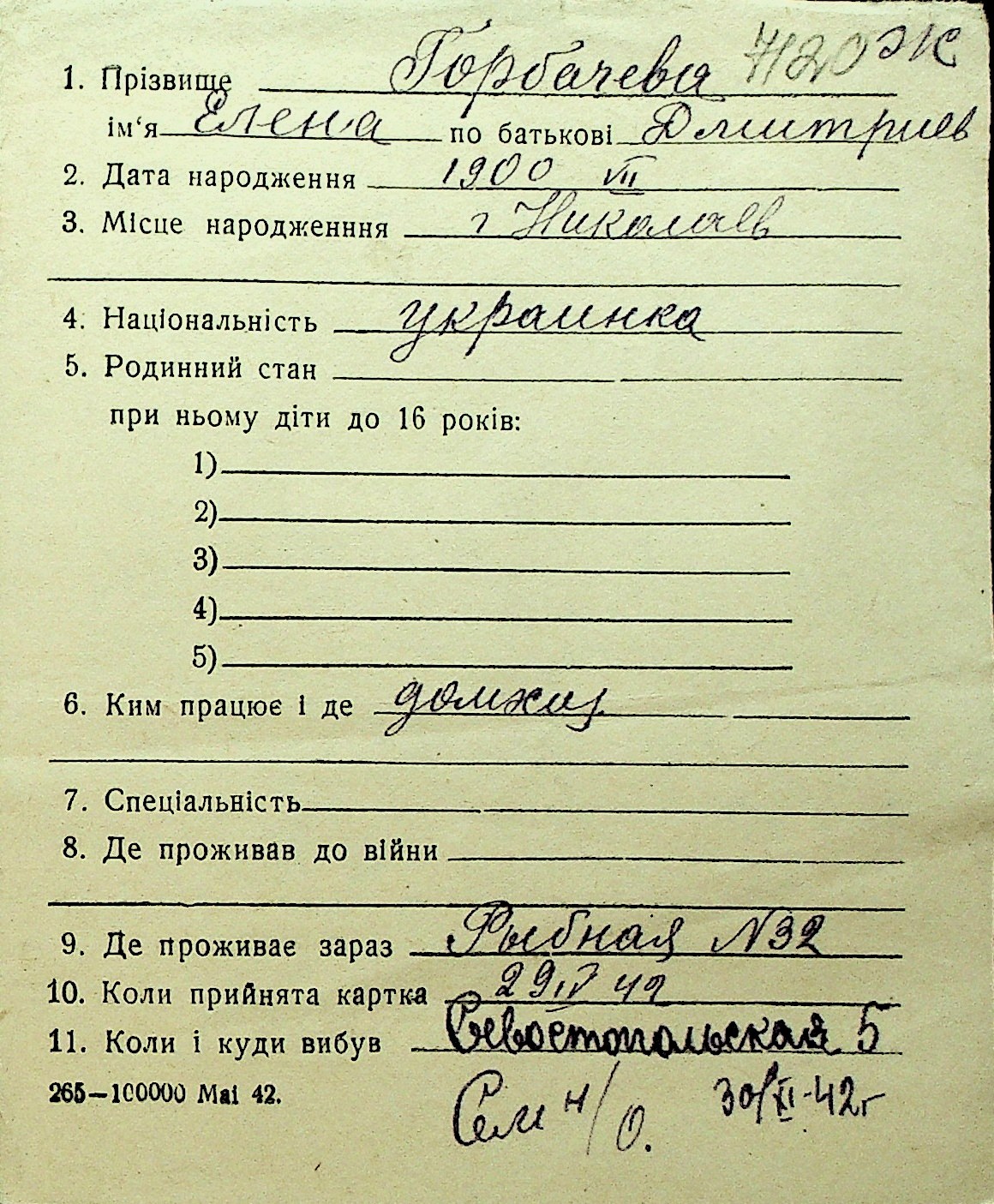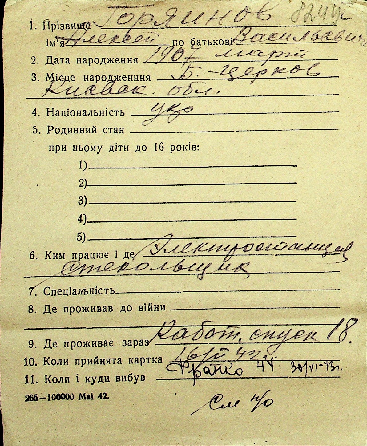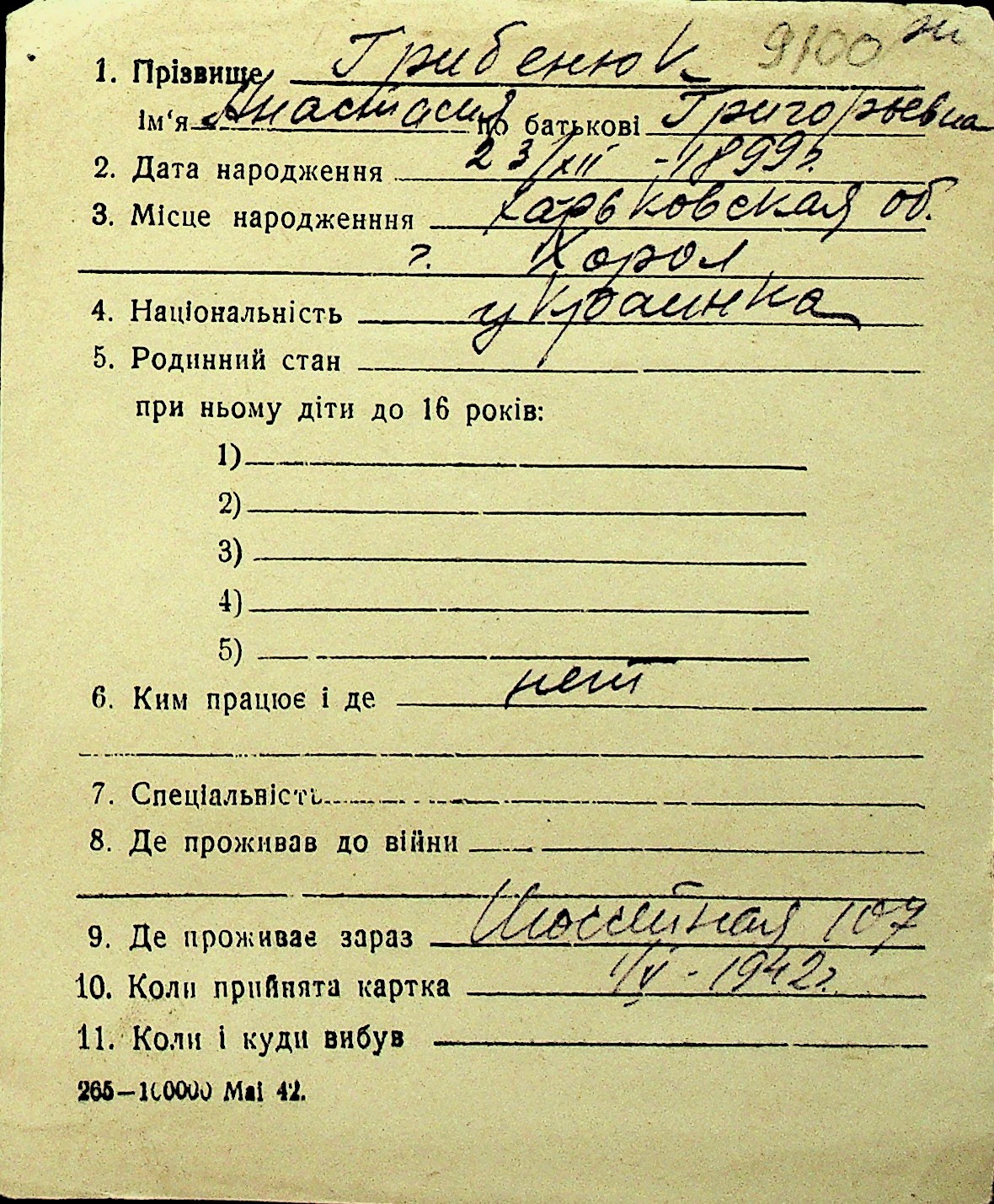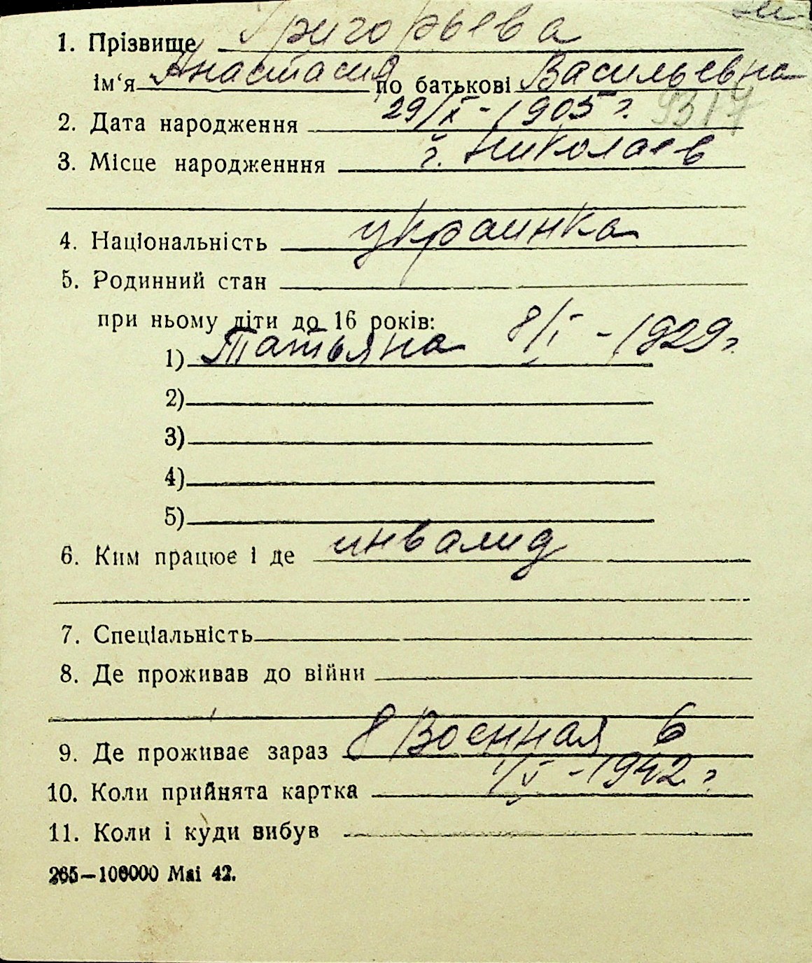 • • Перелік карток до фонду № Н-1016