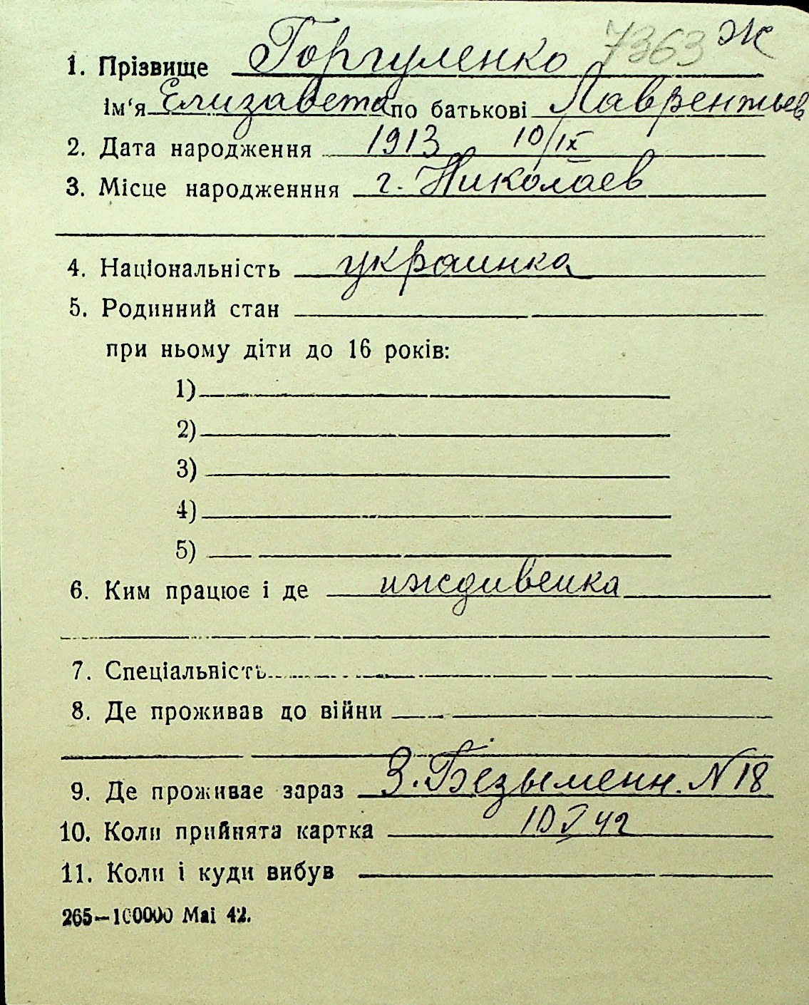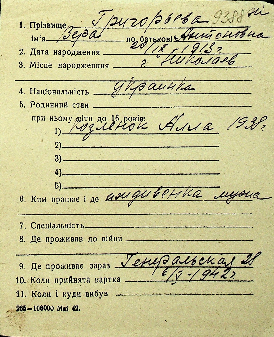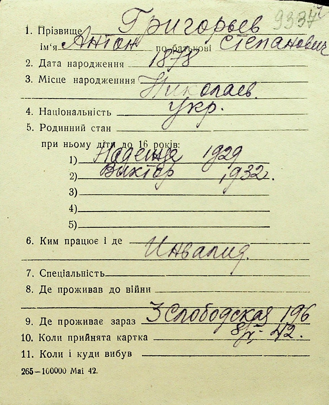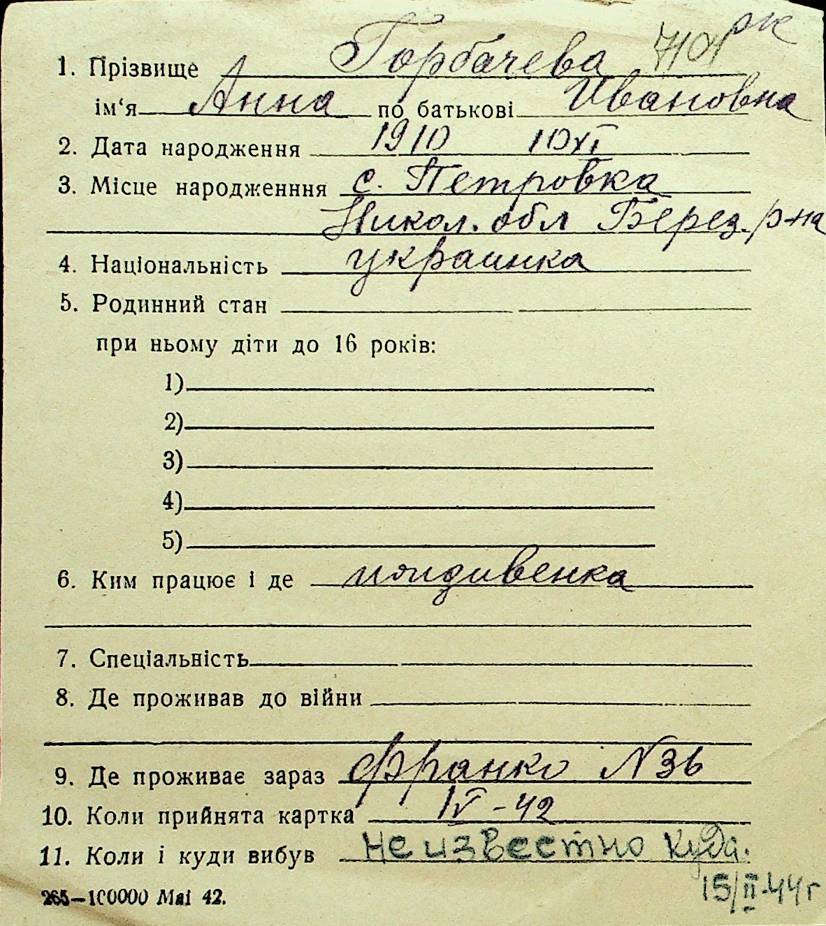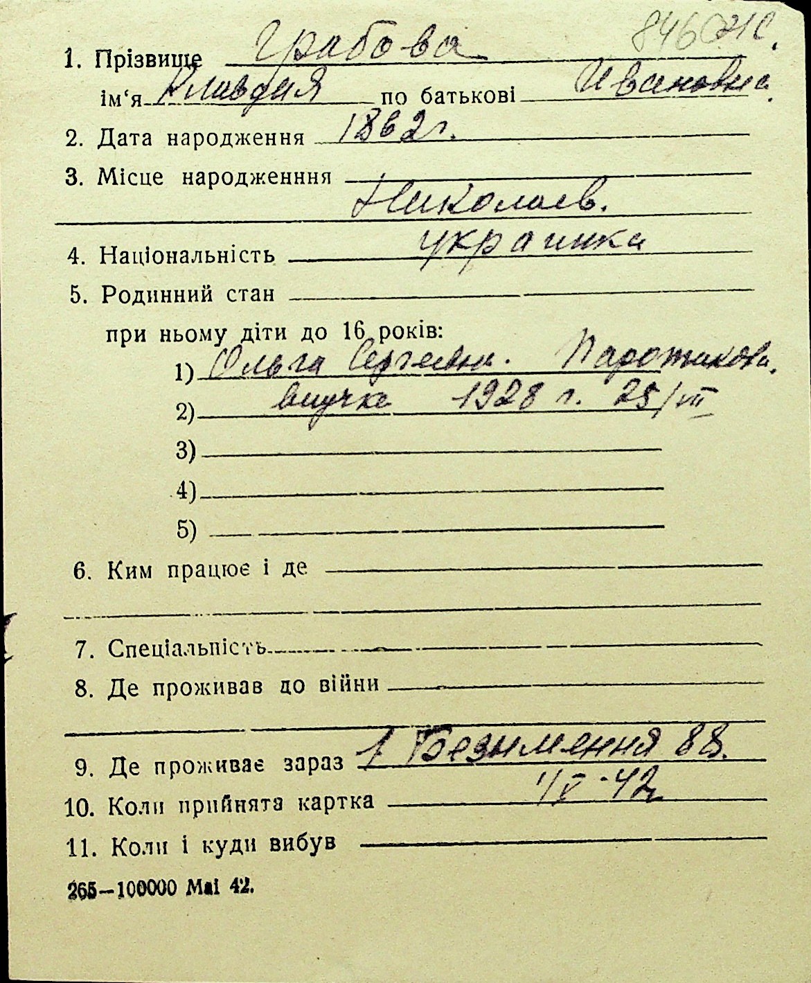 • • Перелік карток до фонду № Н-1016