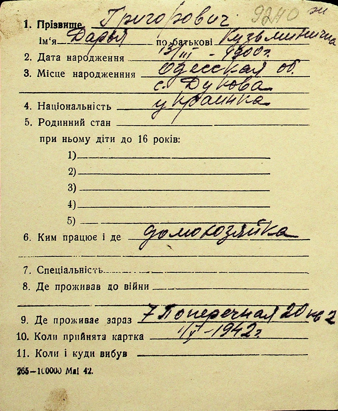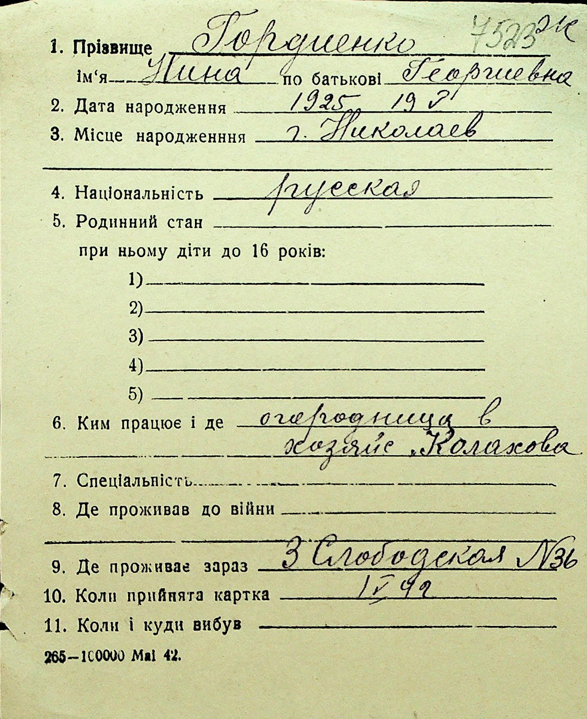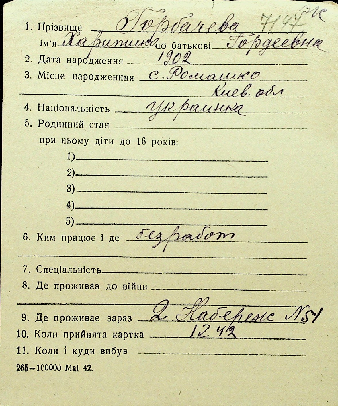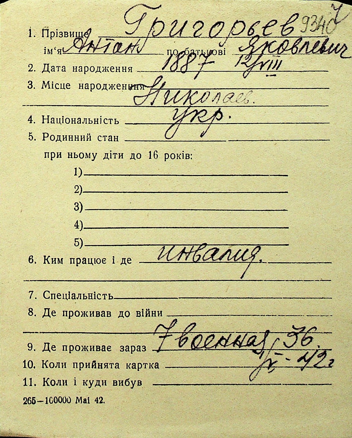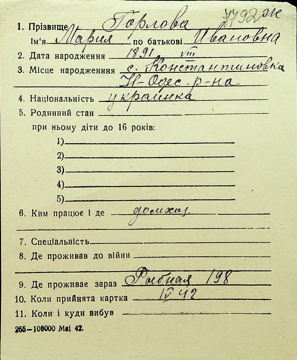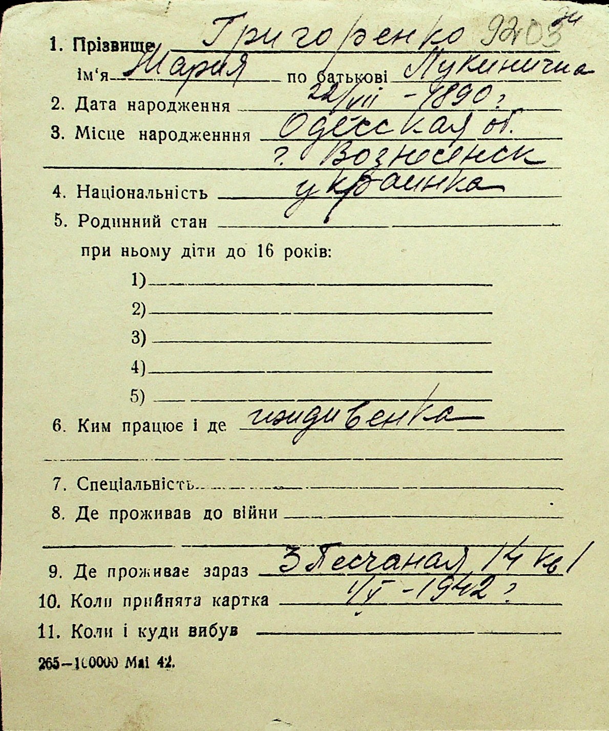 • • Перелік карток до фонду № Н-1016