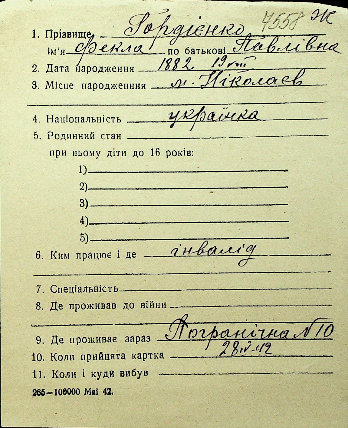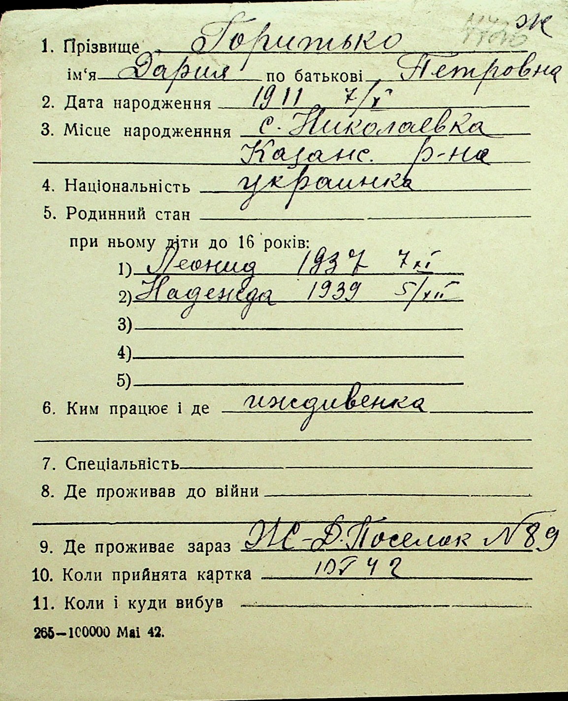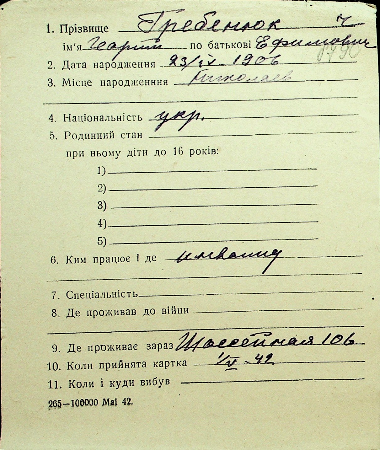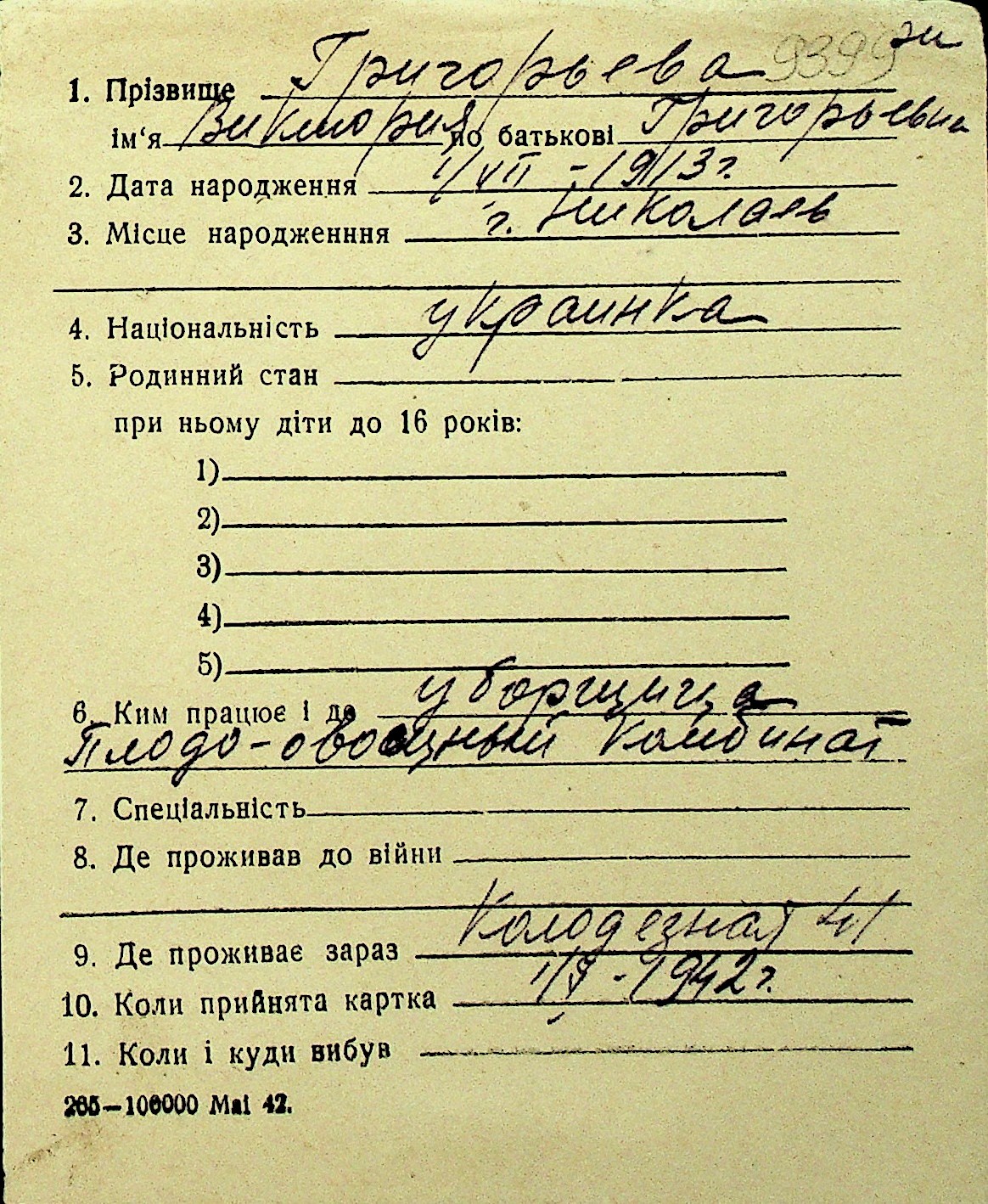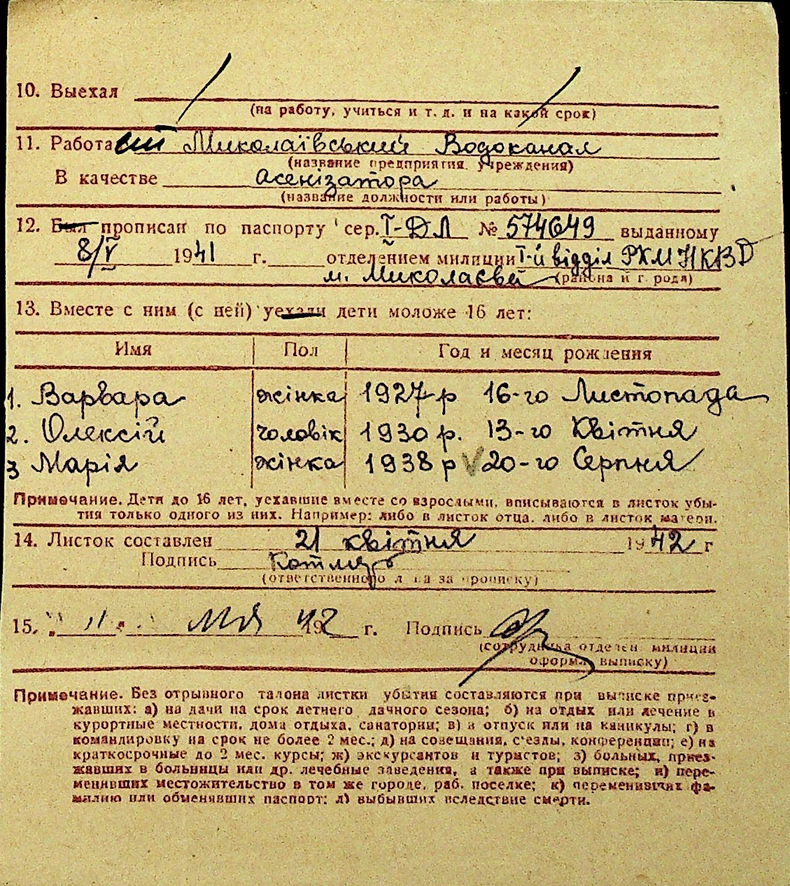 • • Перелік карток до фонду № Н-1016