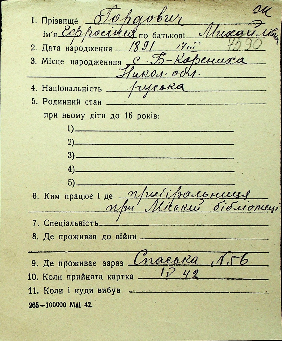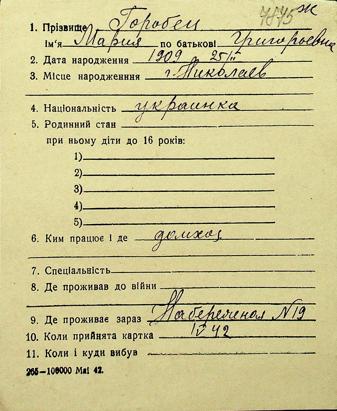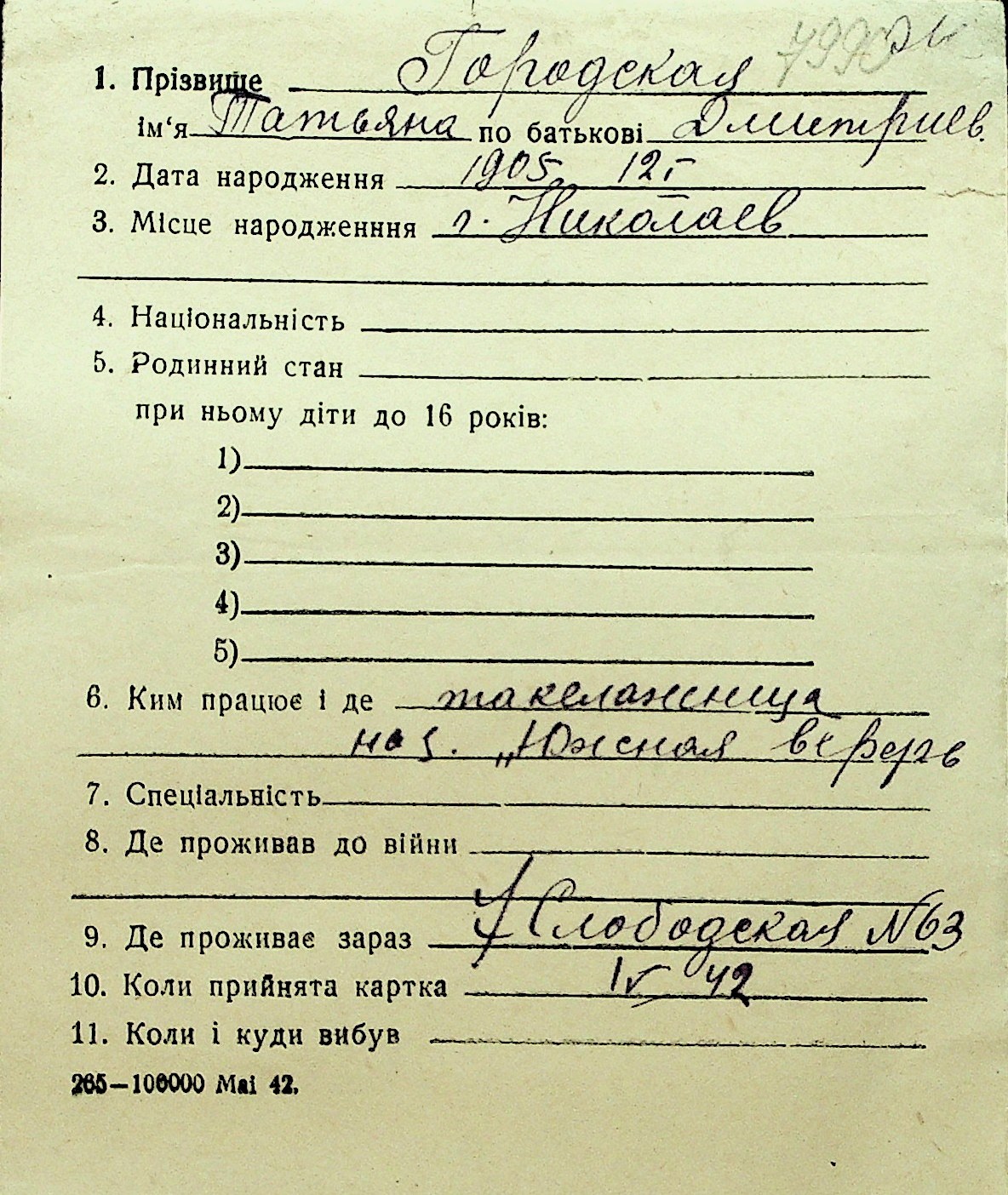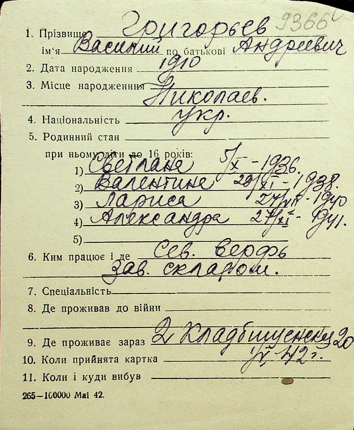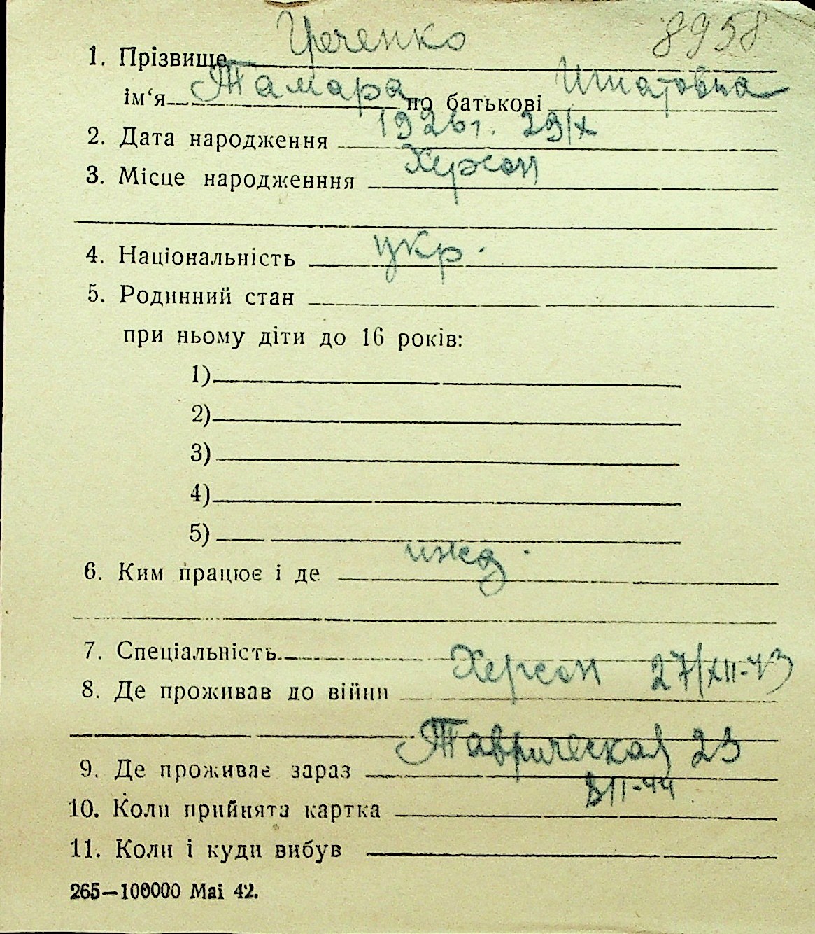 • • Перелік карток до фонду № Н-1016