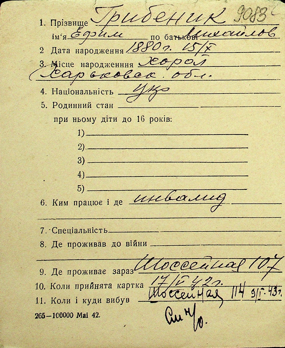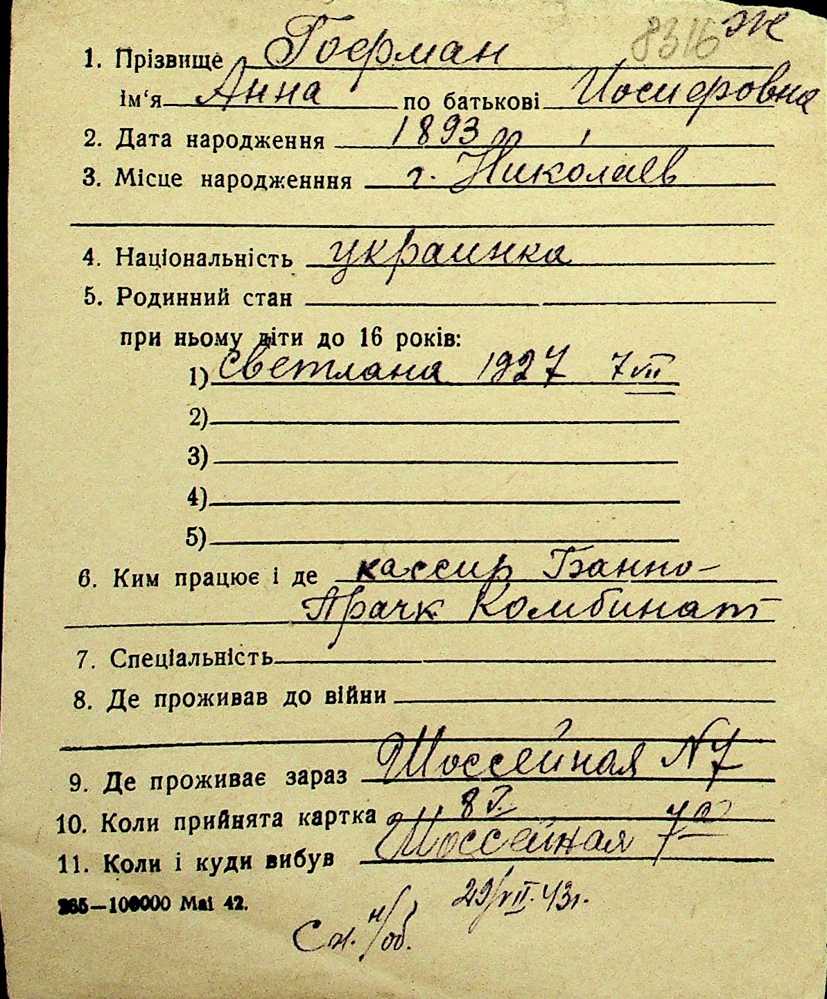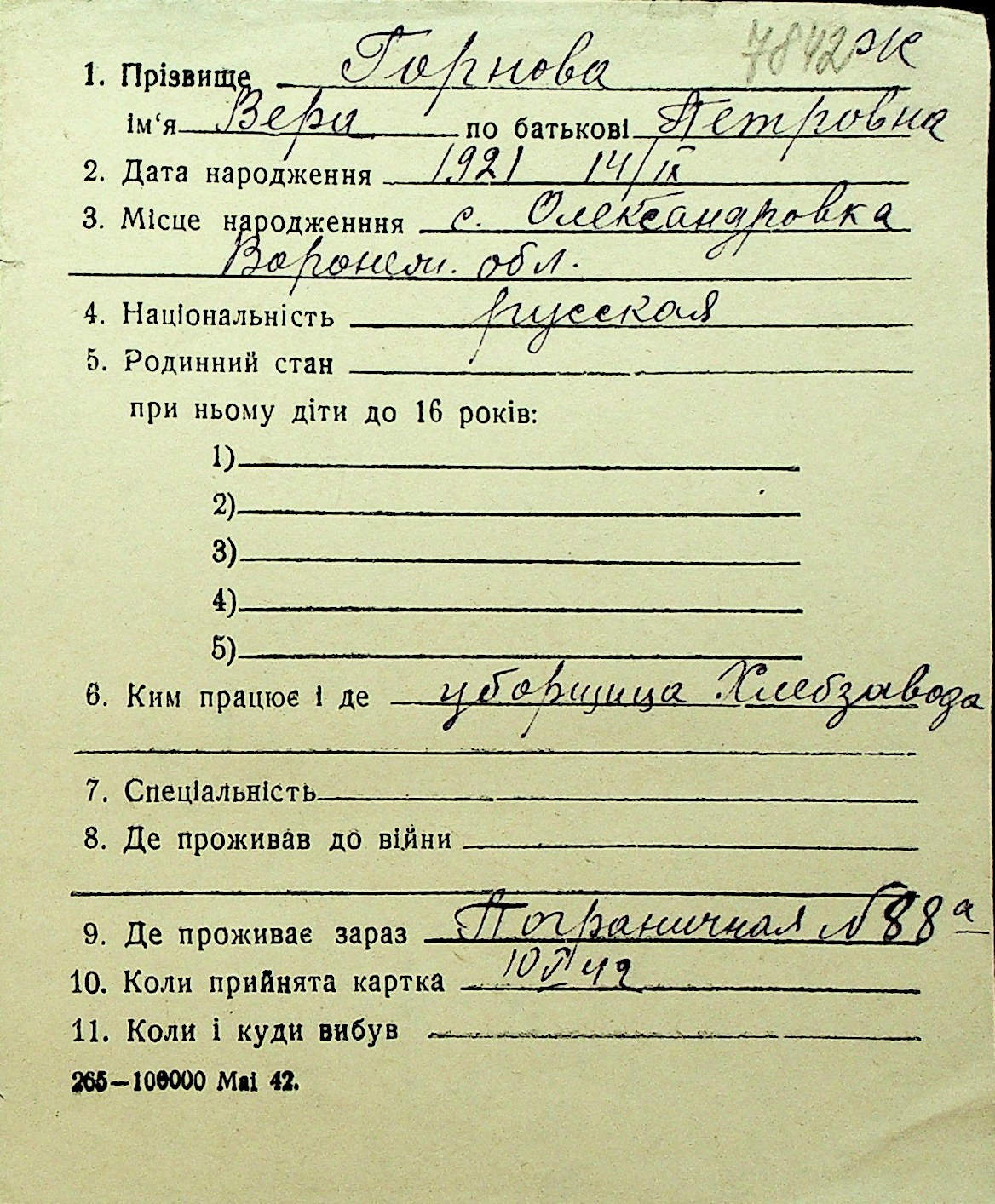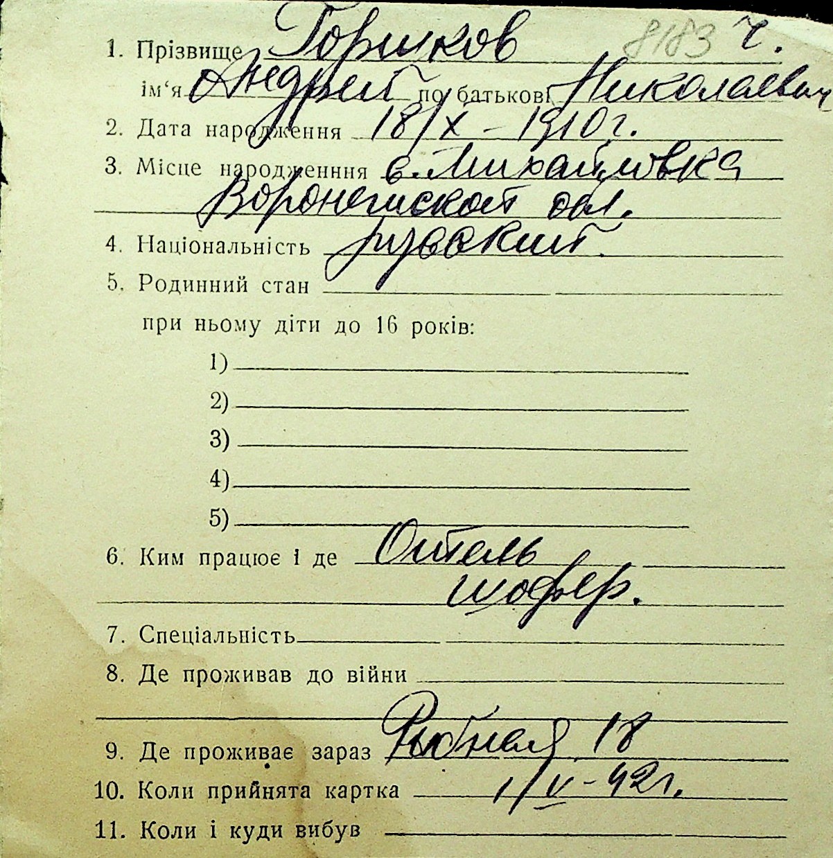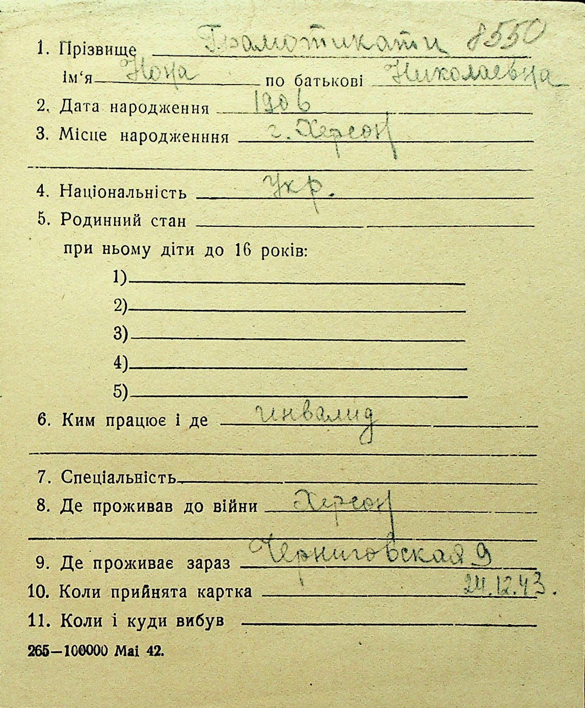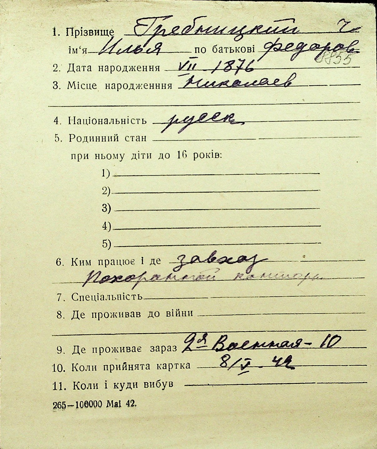 • • Перелік карток до фонду № Н-1016