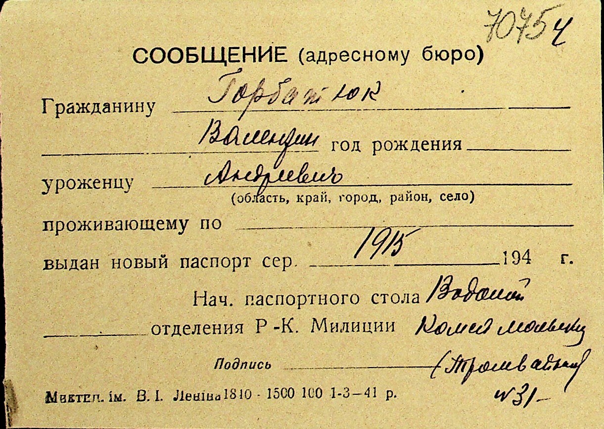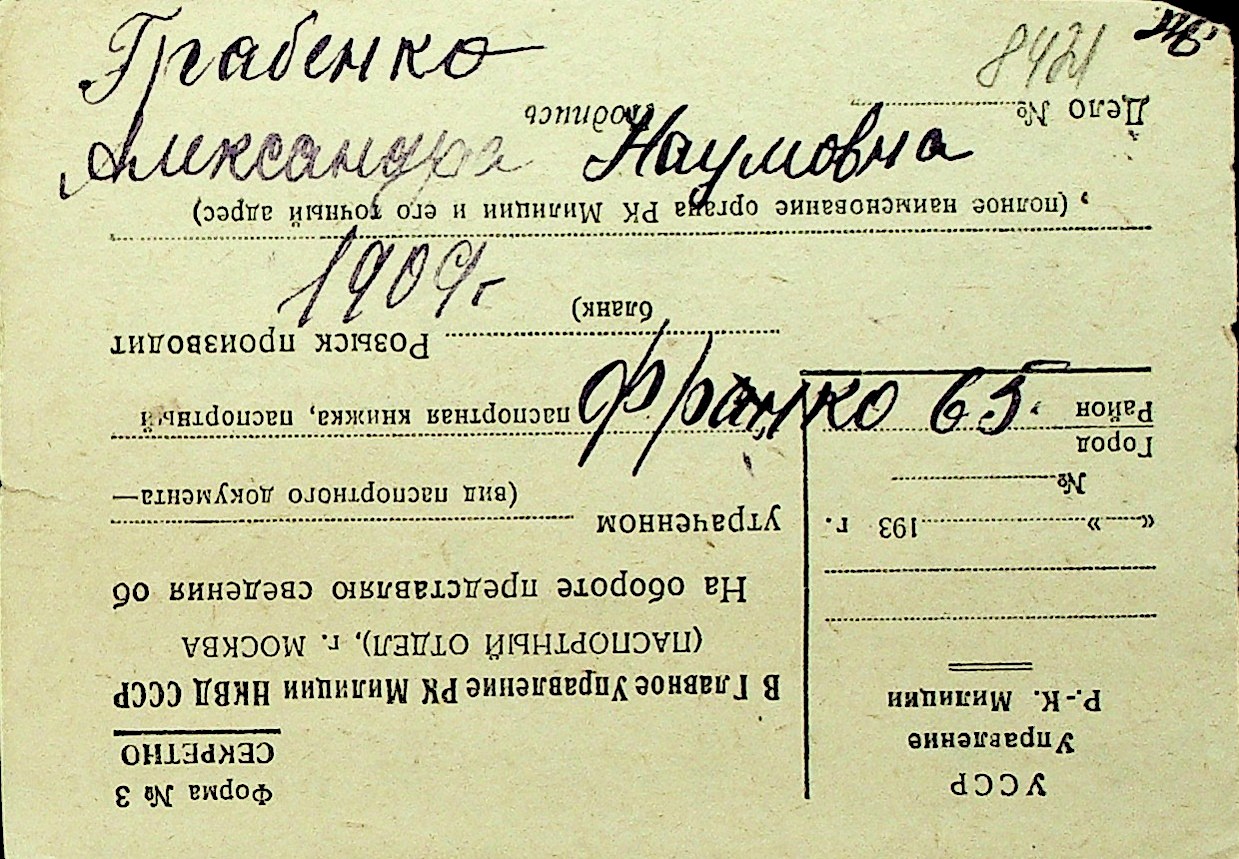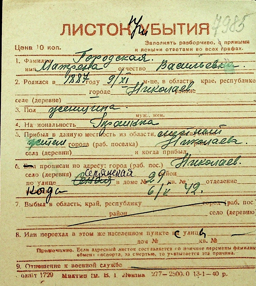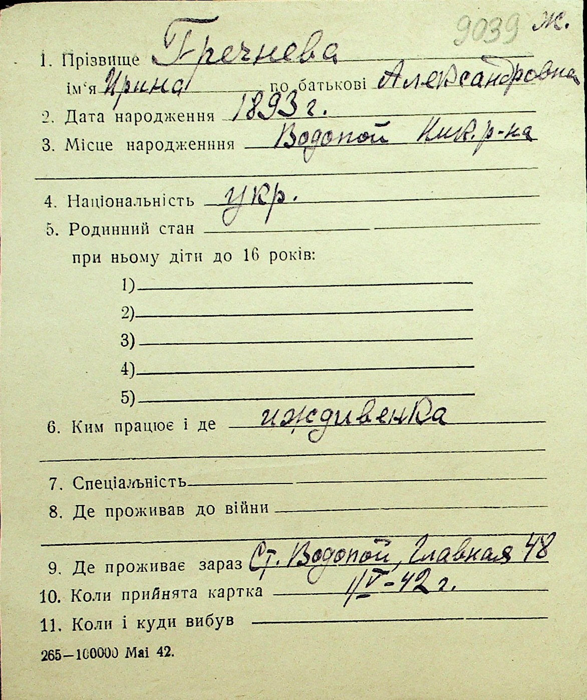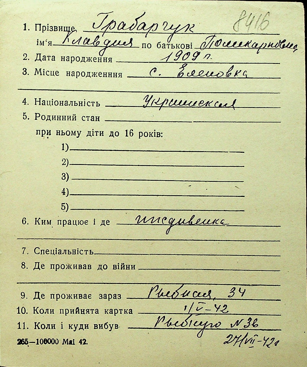 • • Перелік карток до фонду № Н-1016