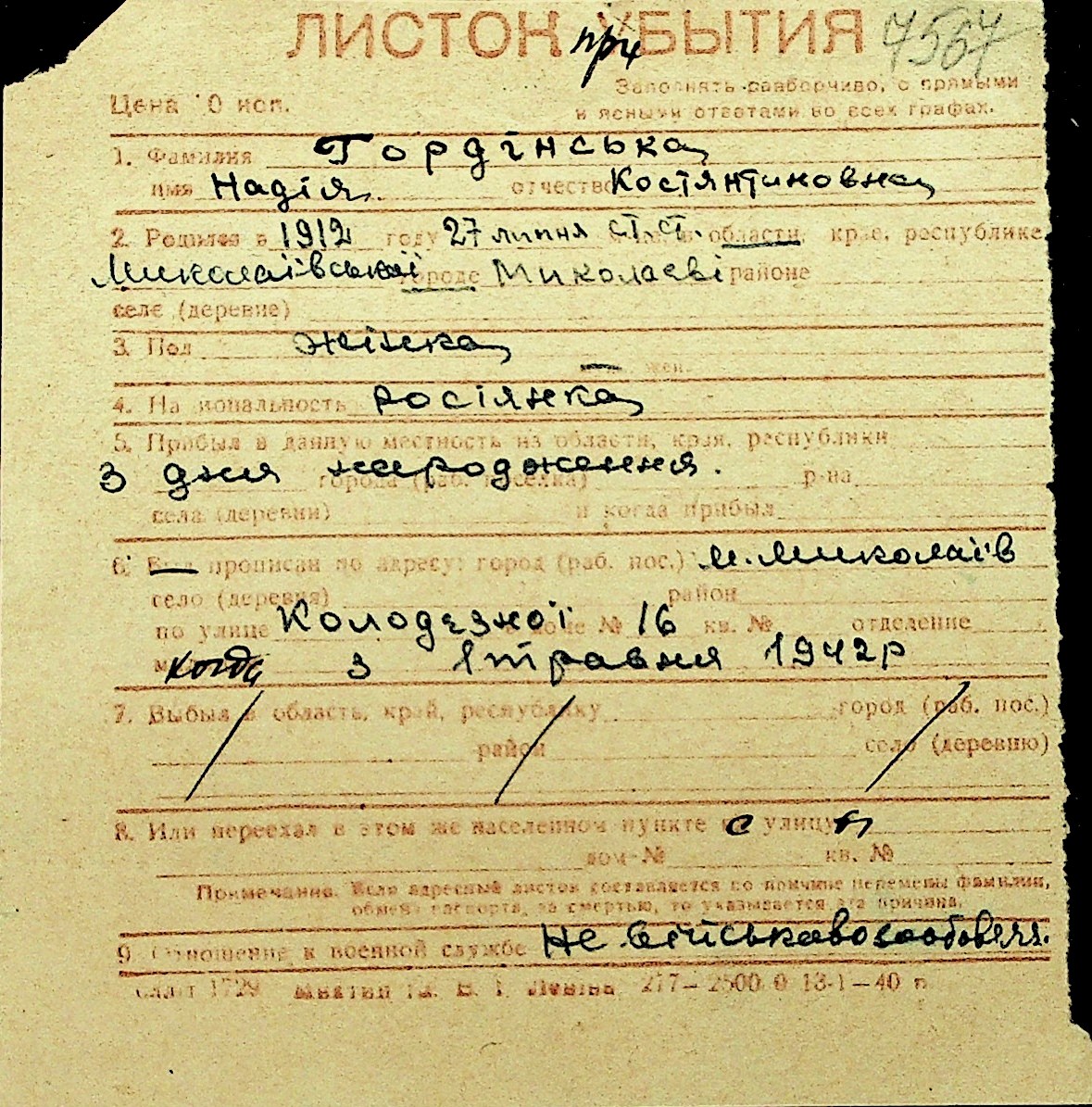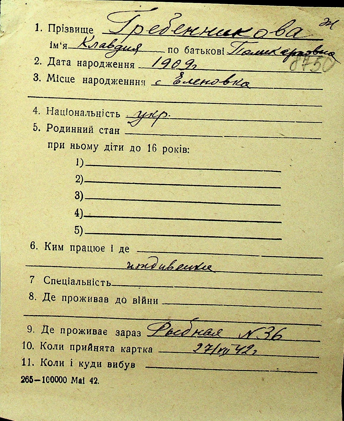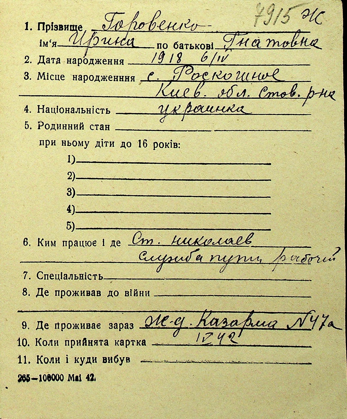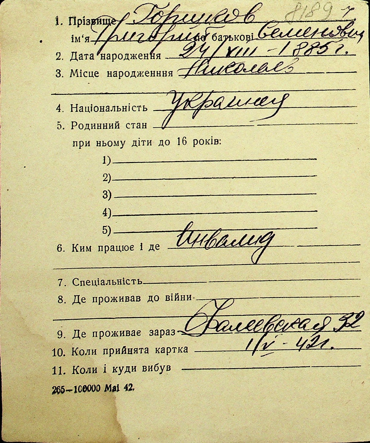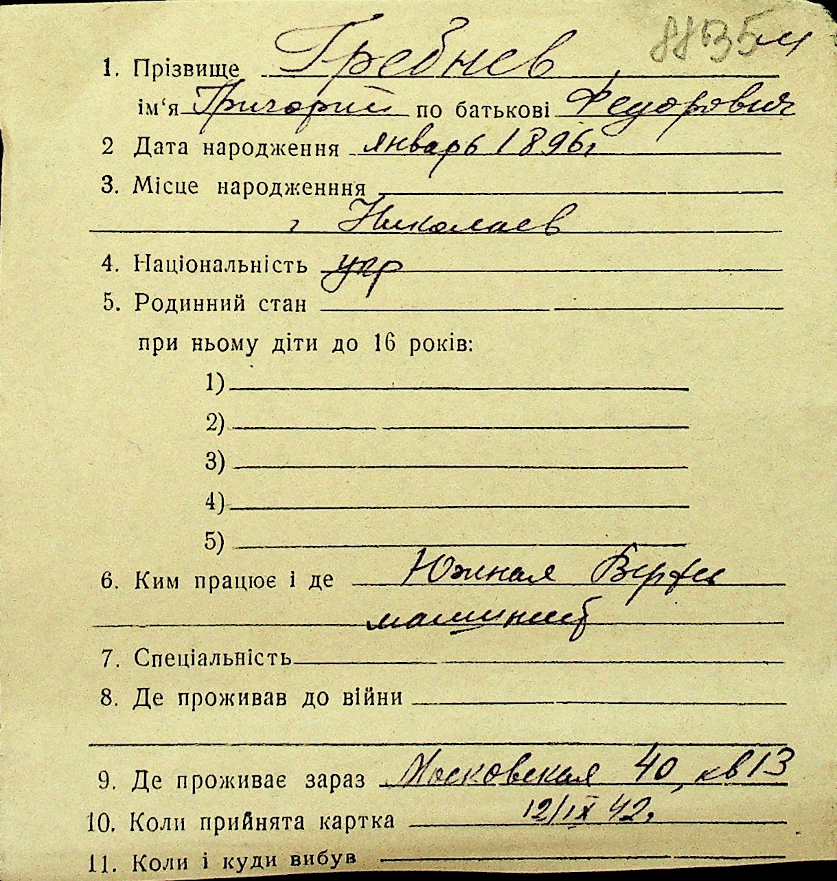 • • Перелік карток до фонду № Н-1016