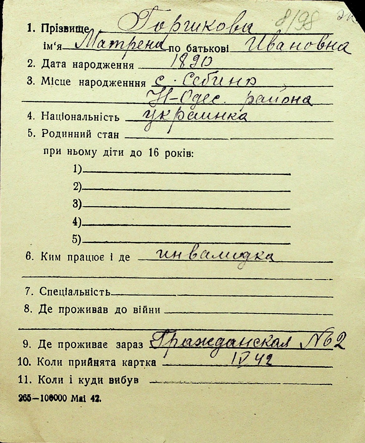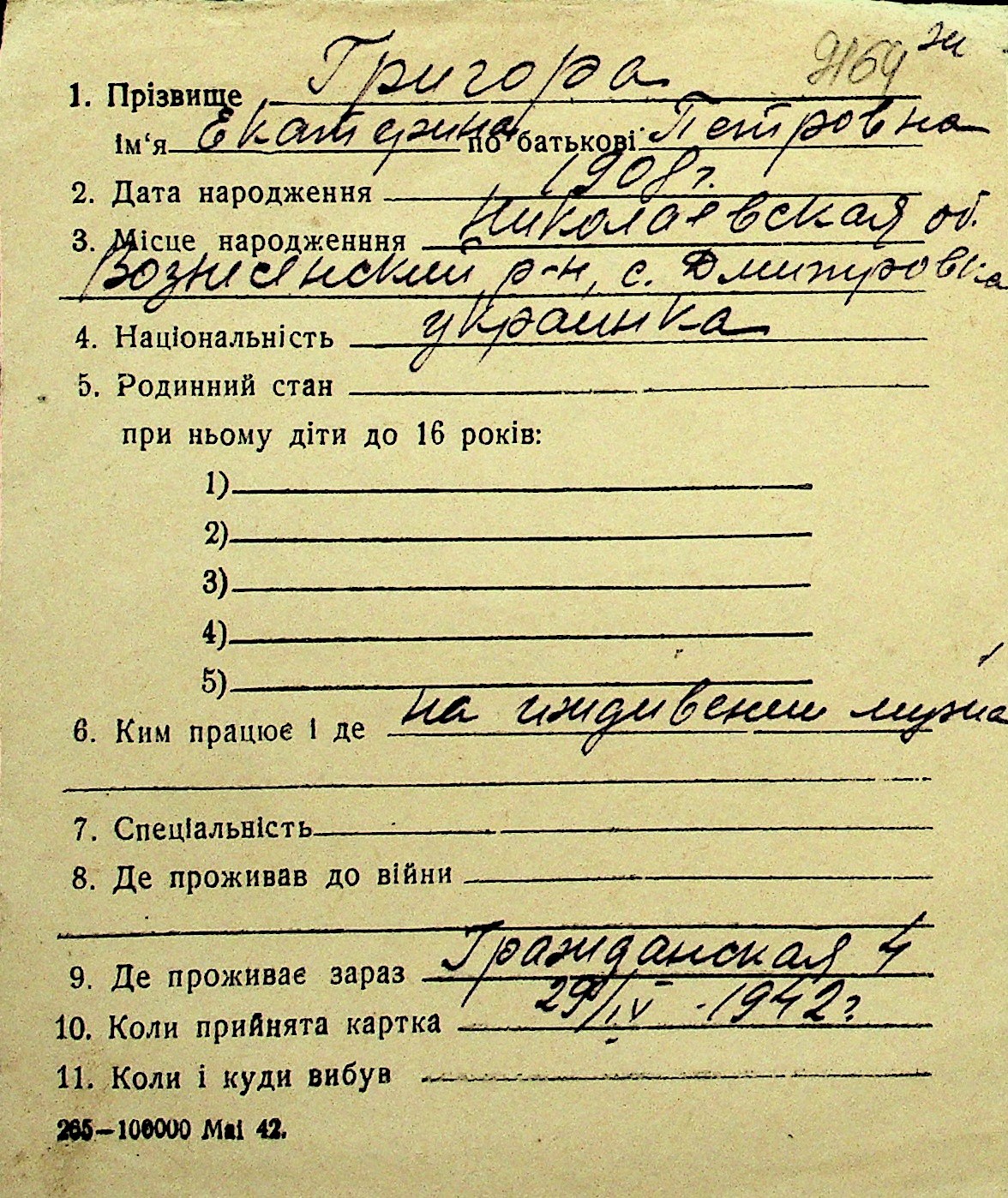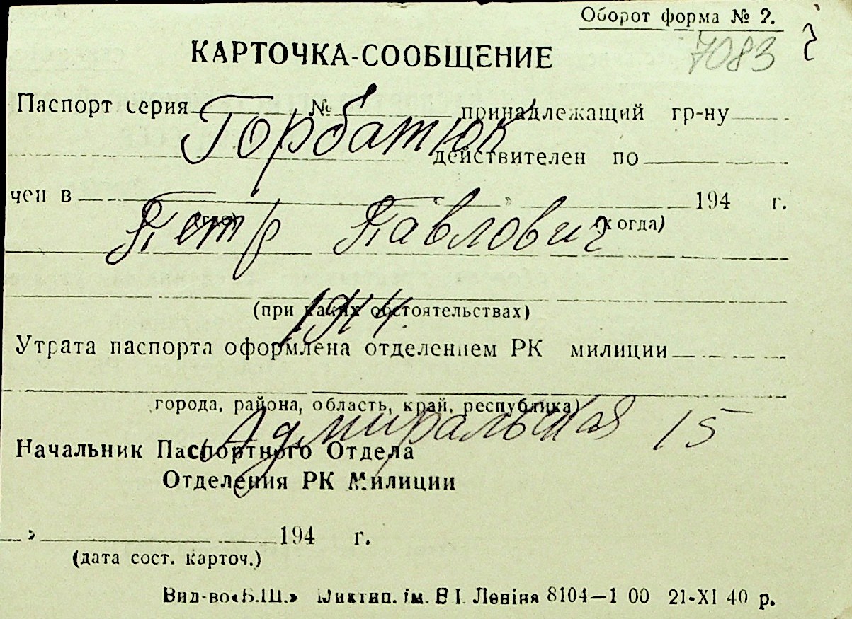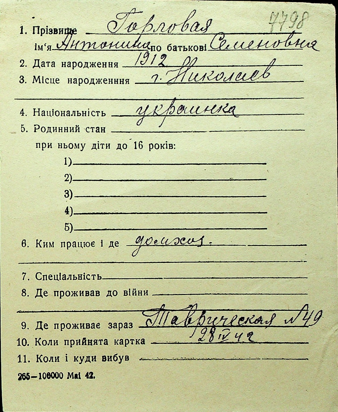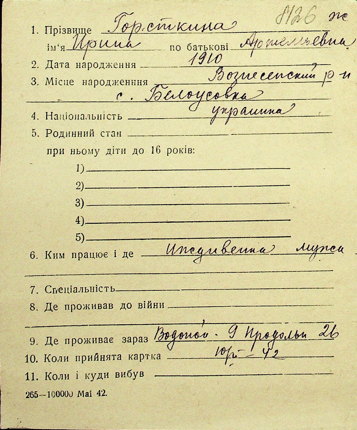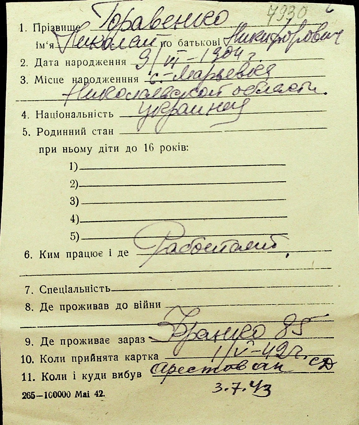 • • Перелік карток до фонду № Н-1016