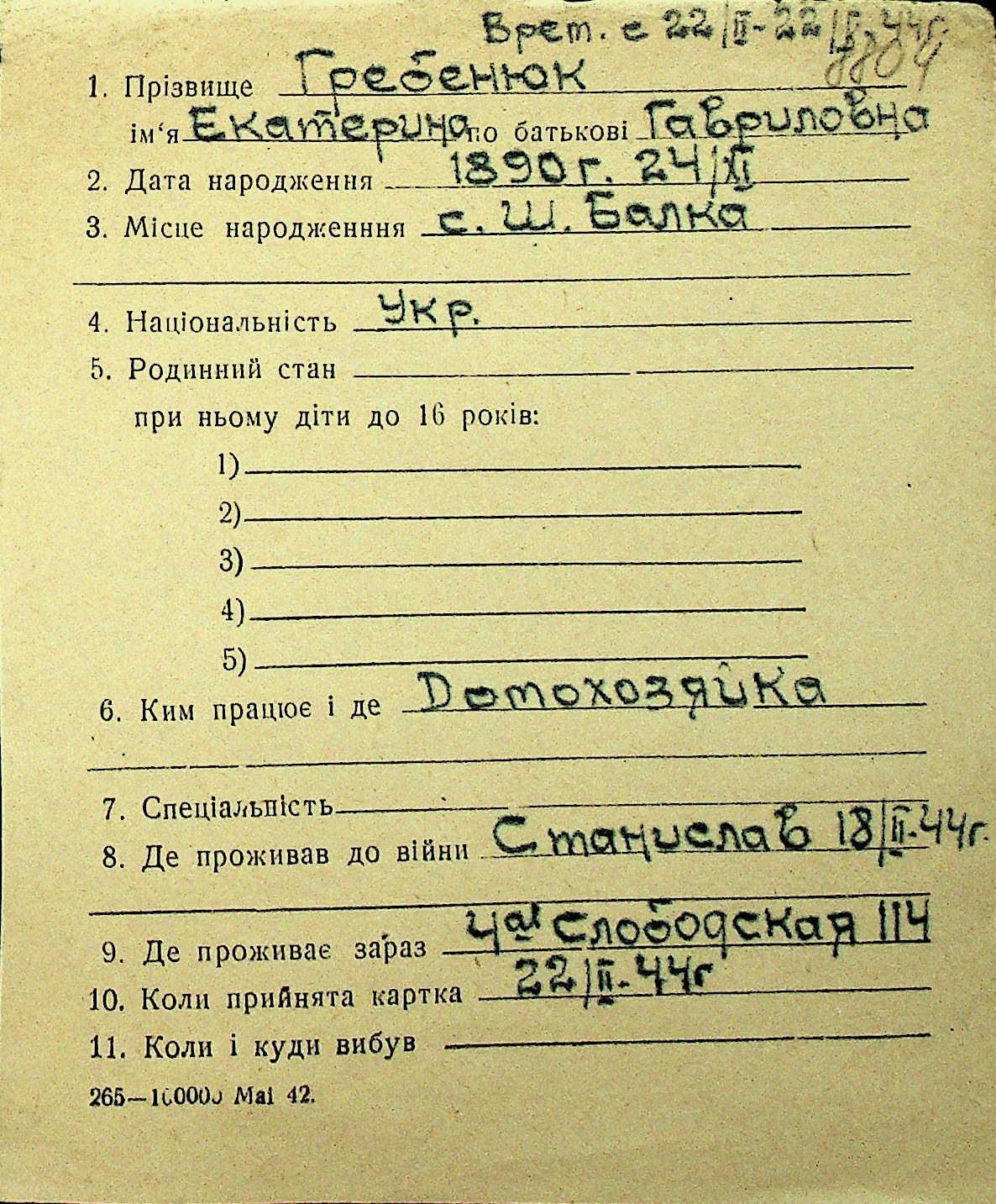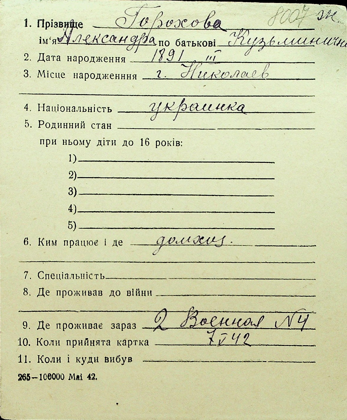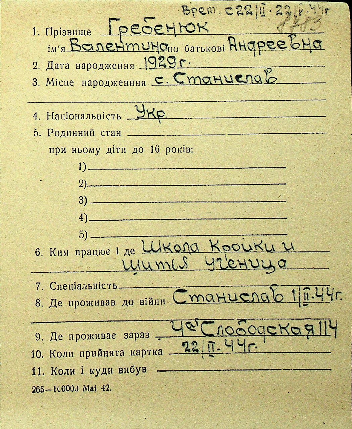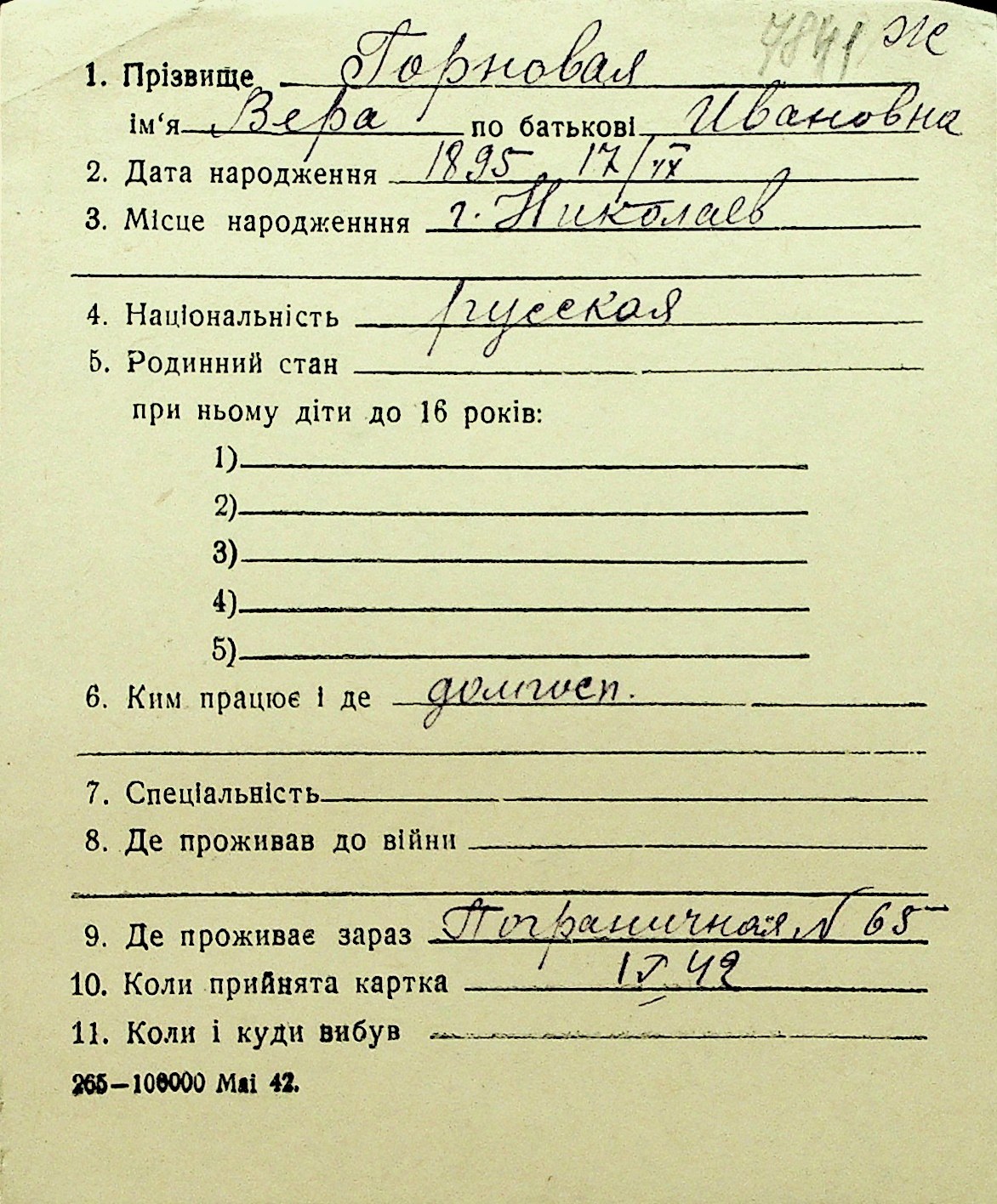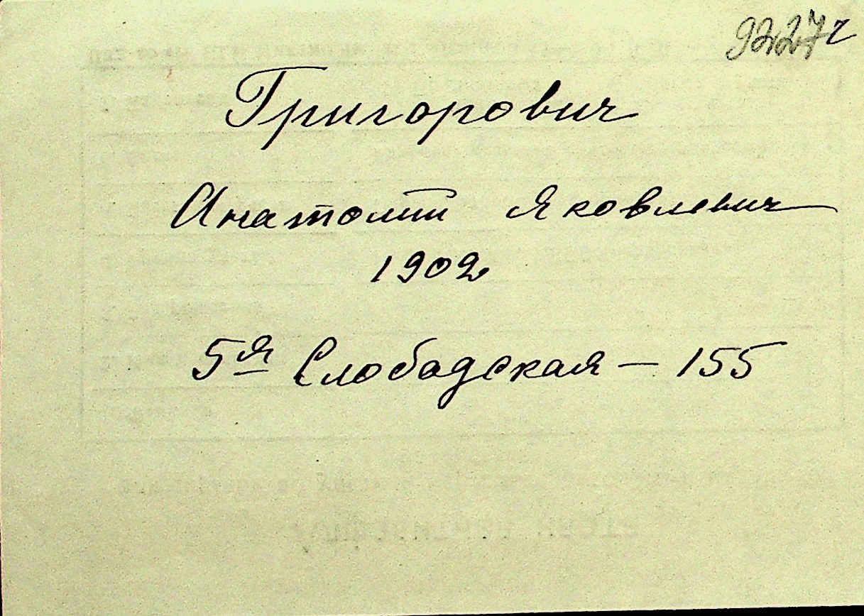 • • Перелік карток до фонду № Н-1016