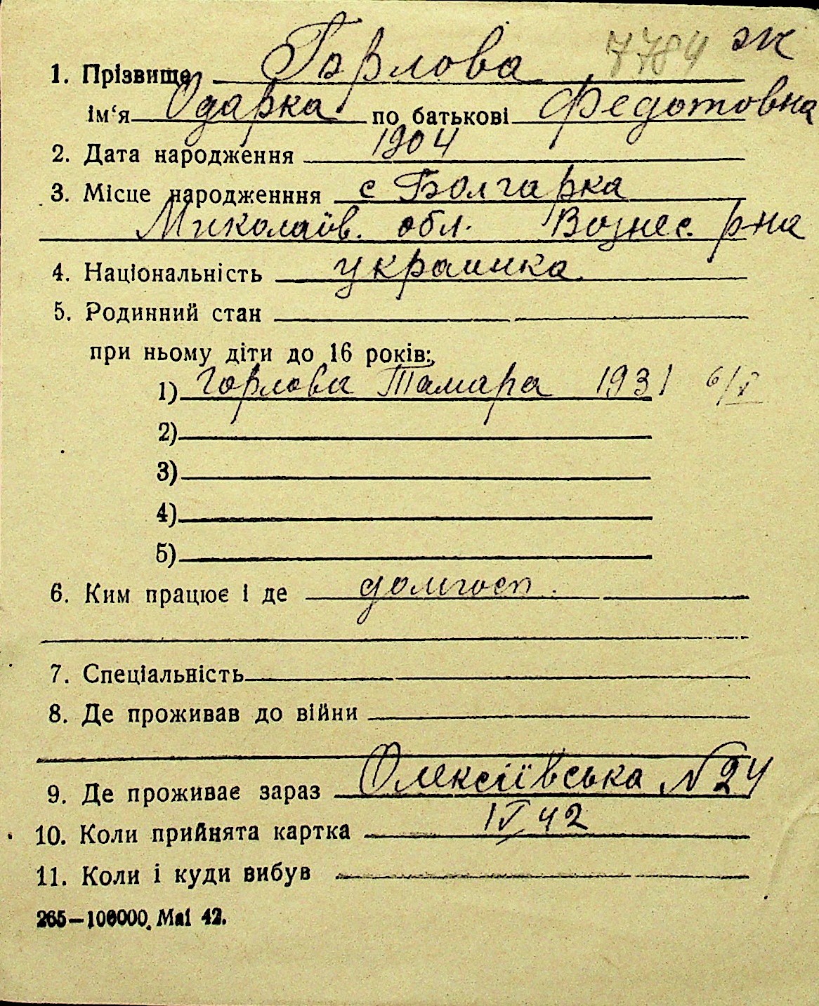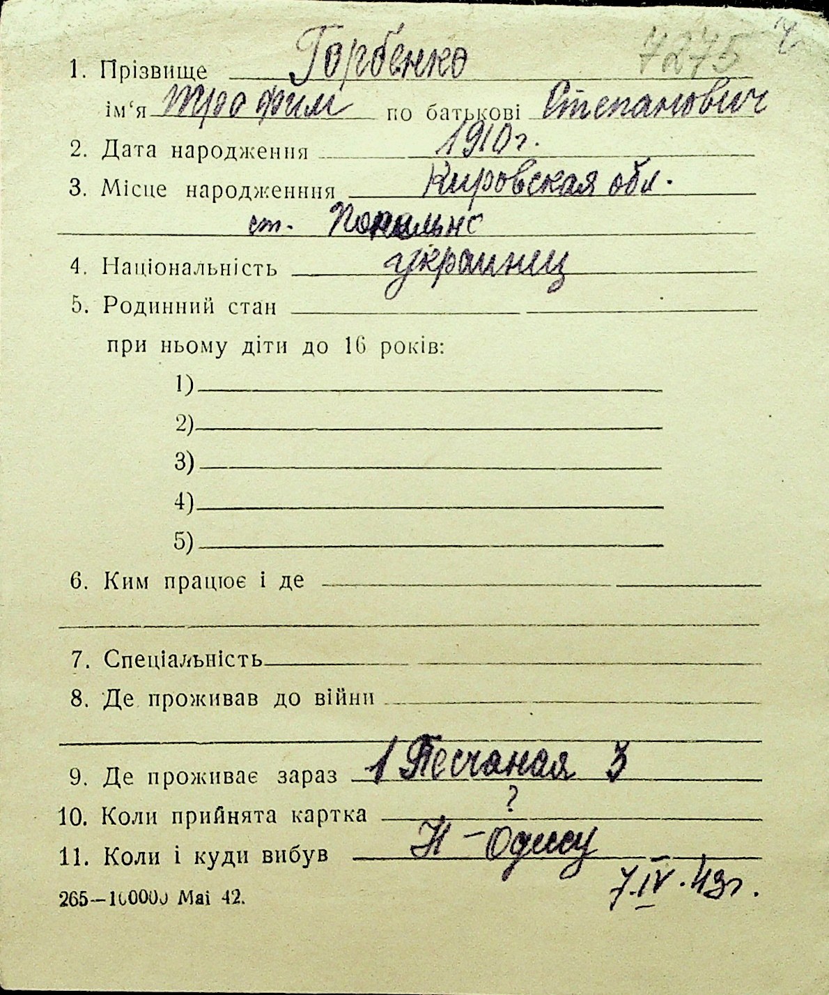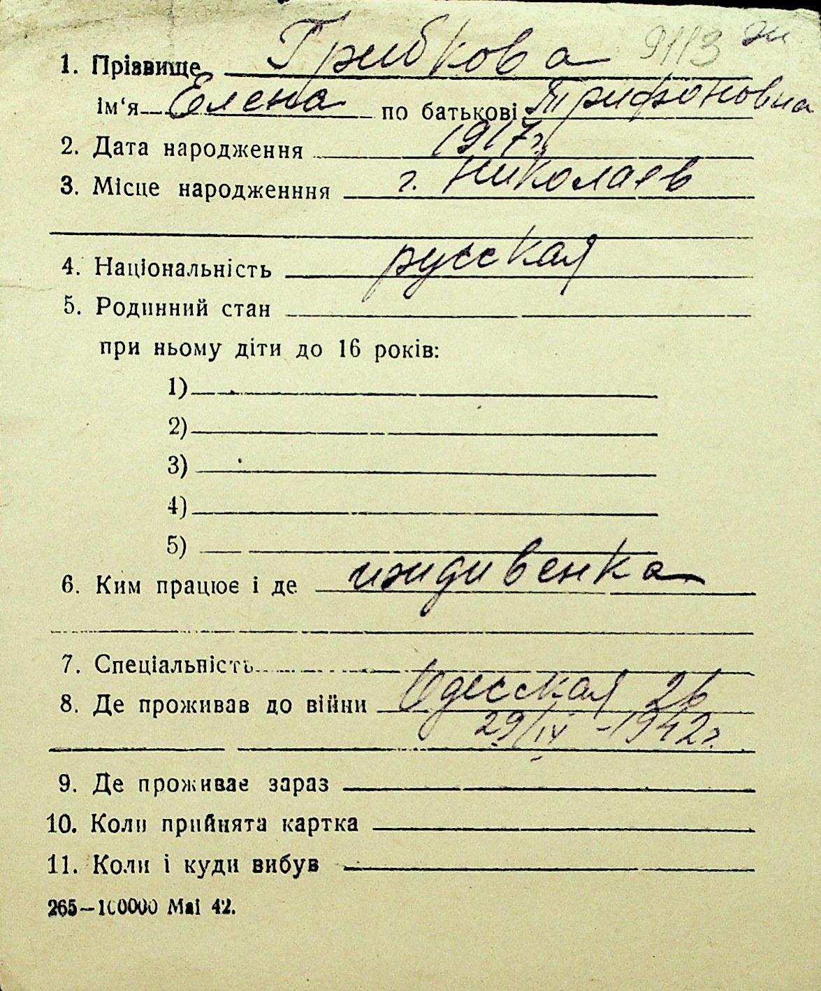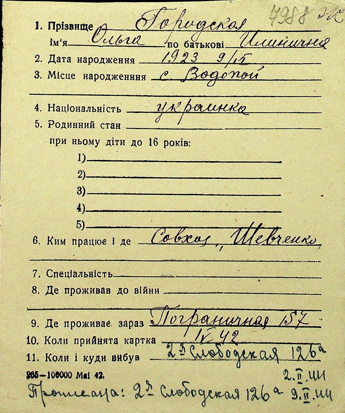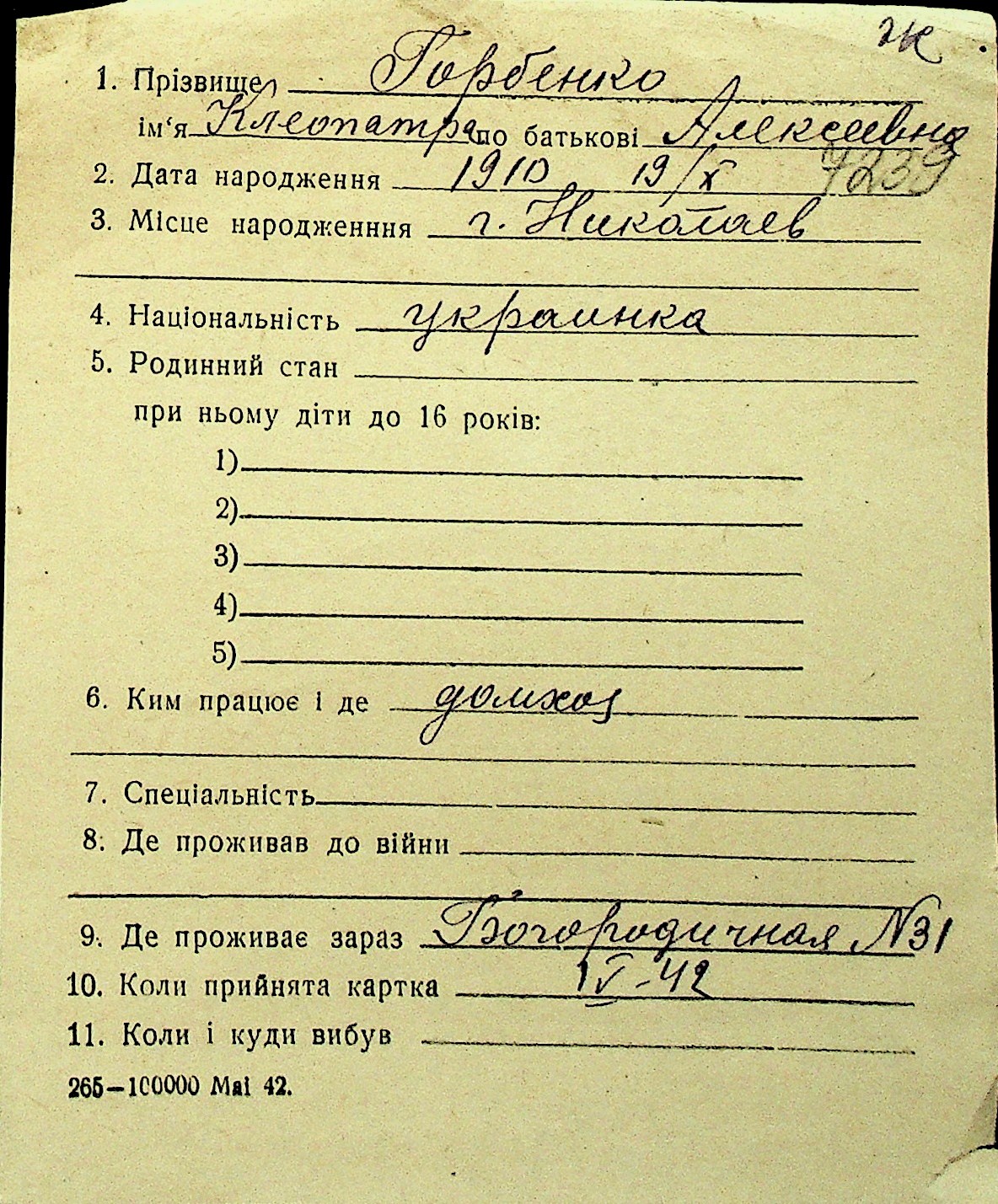 • • Перелік карток до фонду № Н-1016