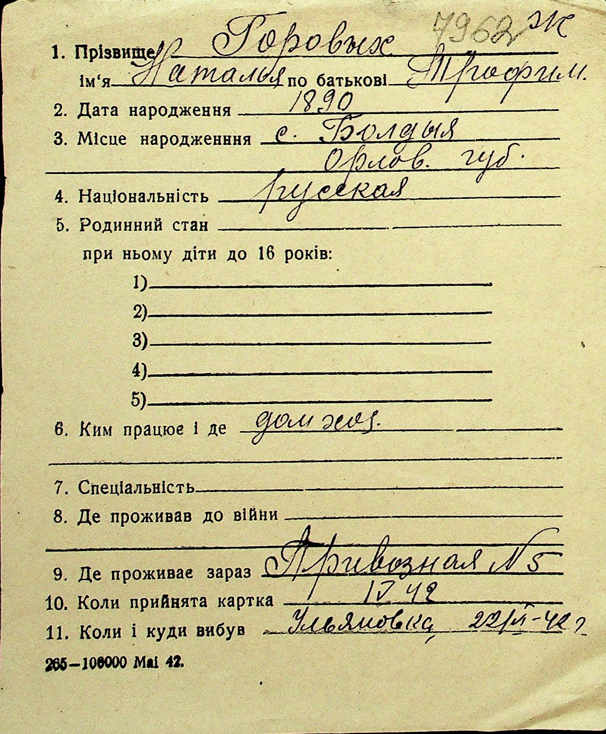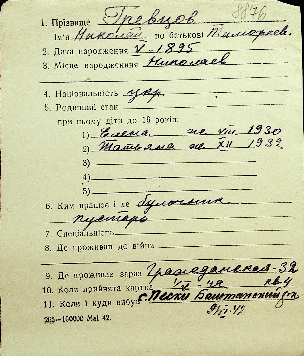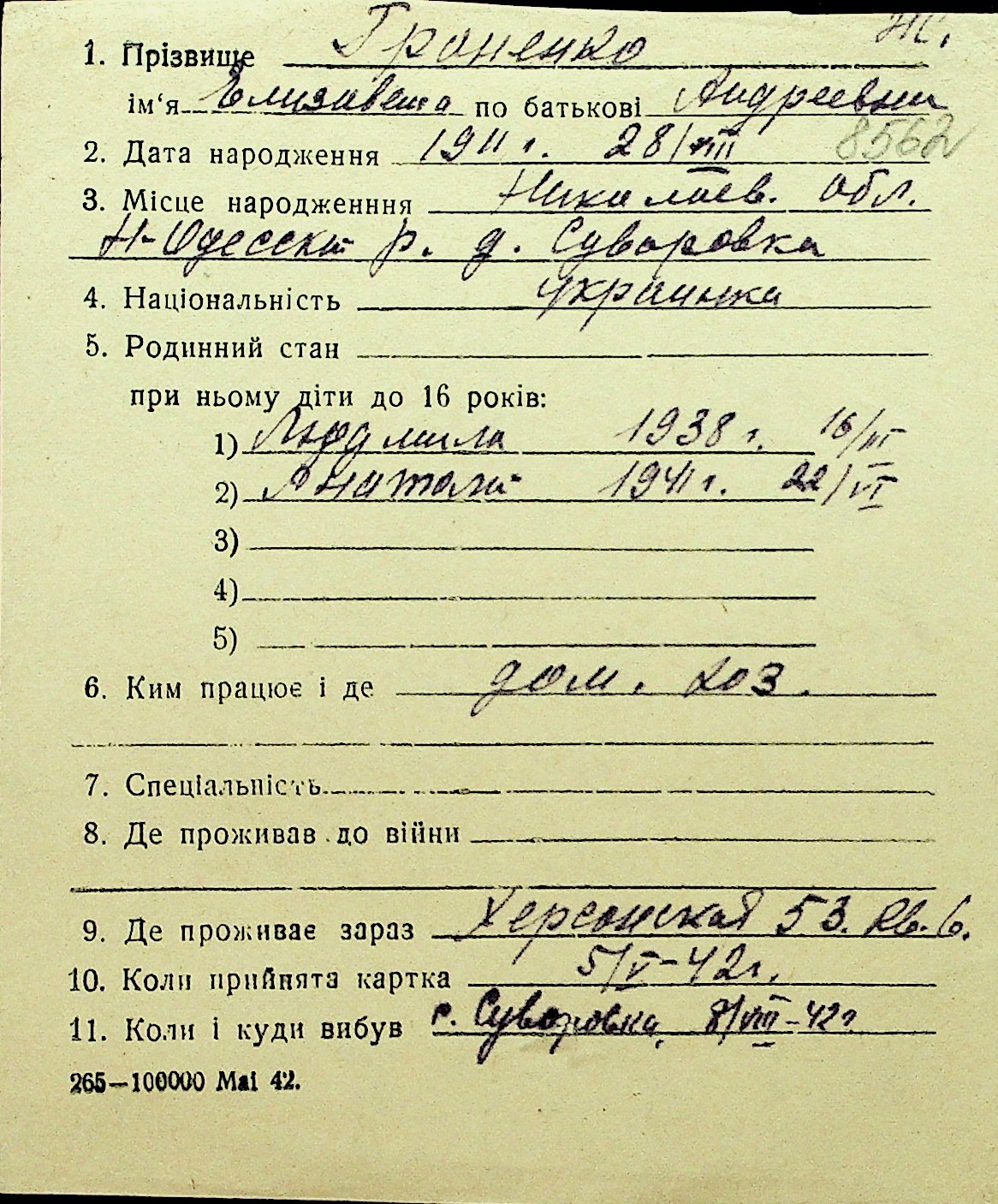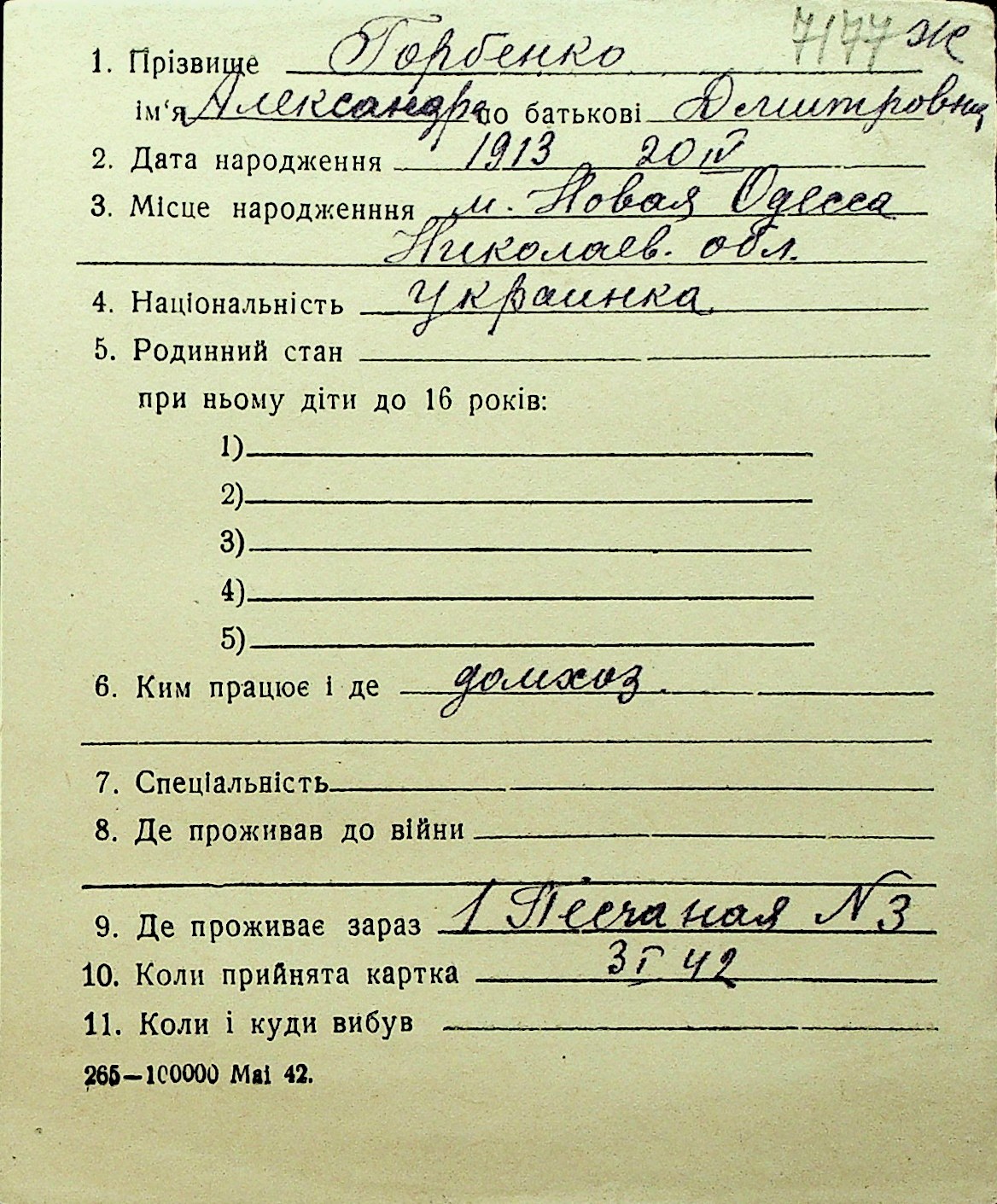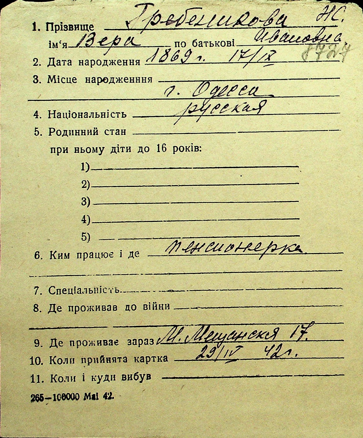 • • Перелік карток до фонду № Н-1016