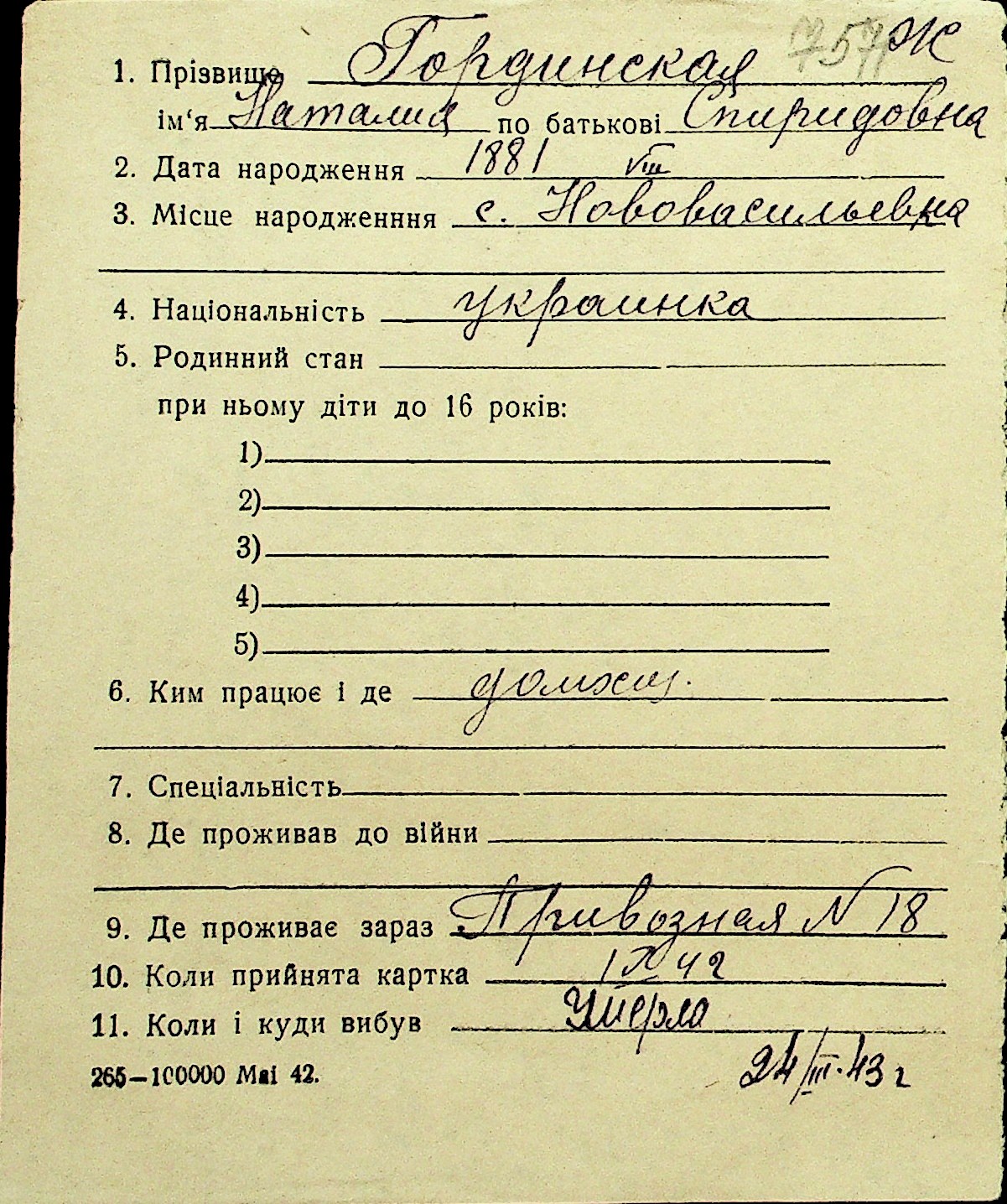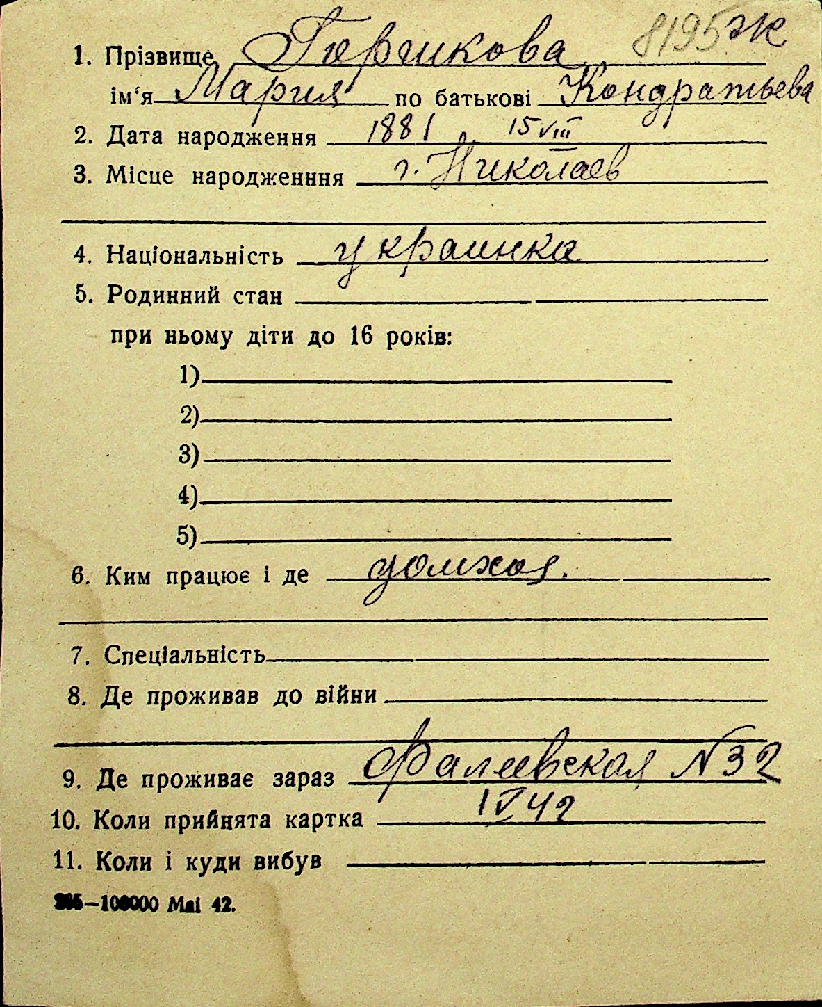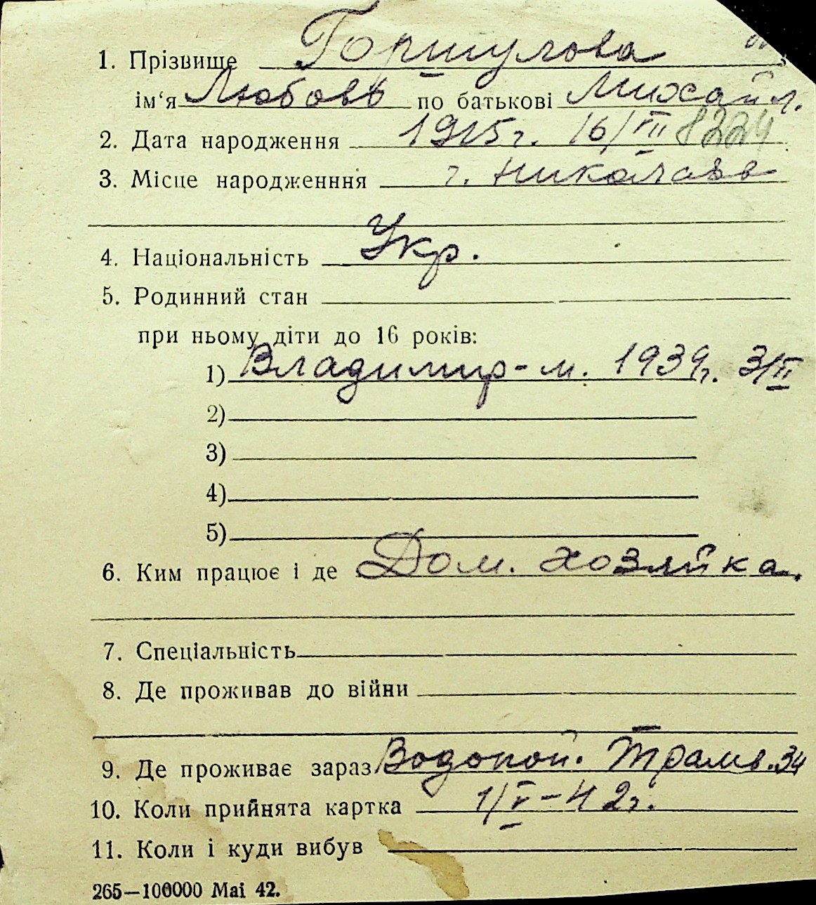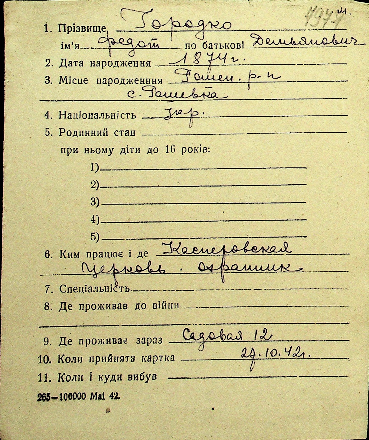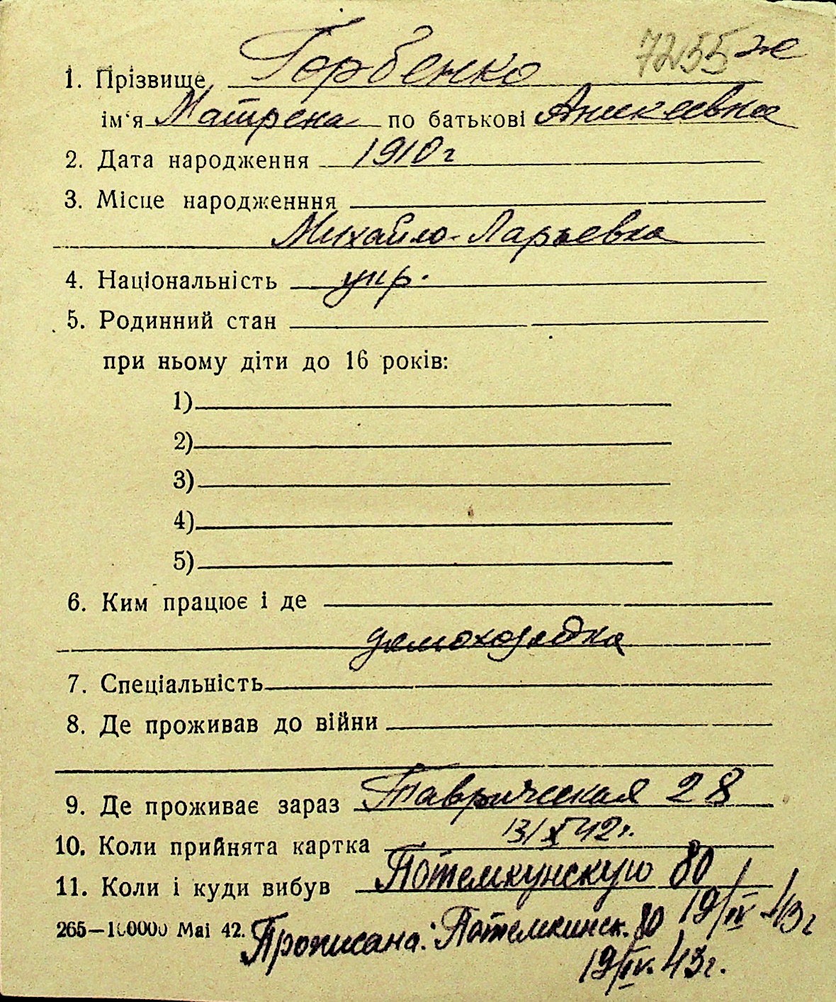• • Перелік карток до фонду № Н-1016