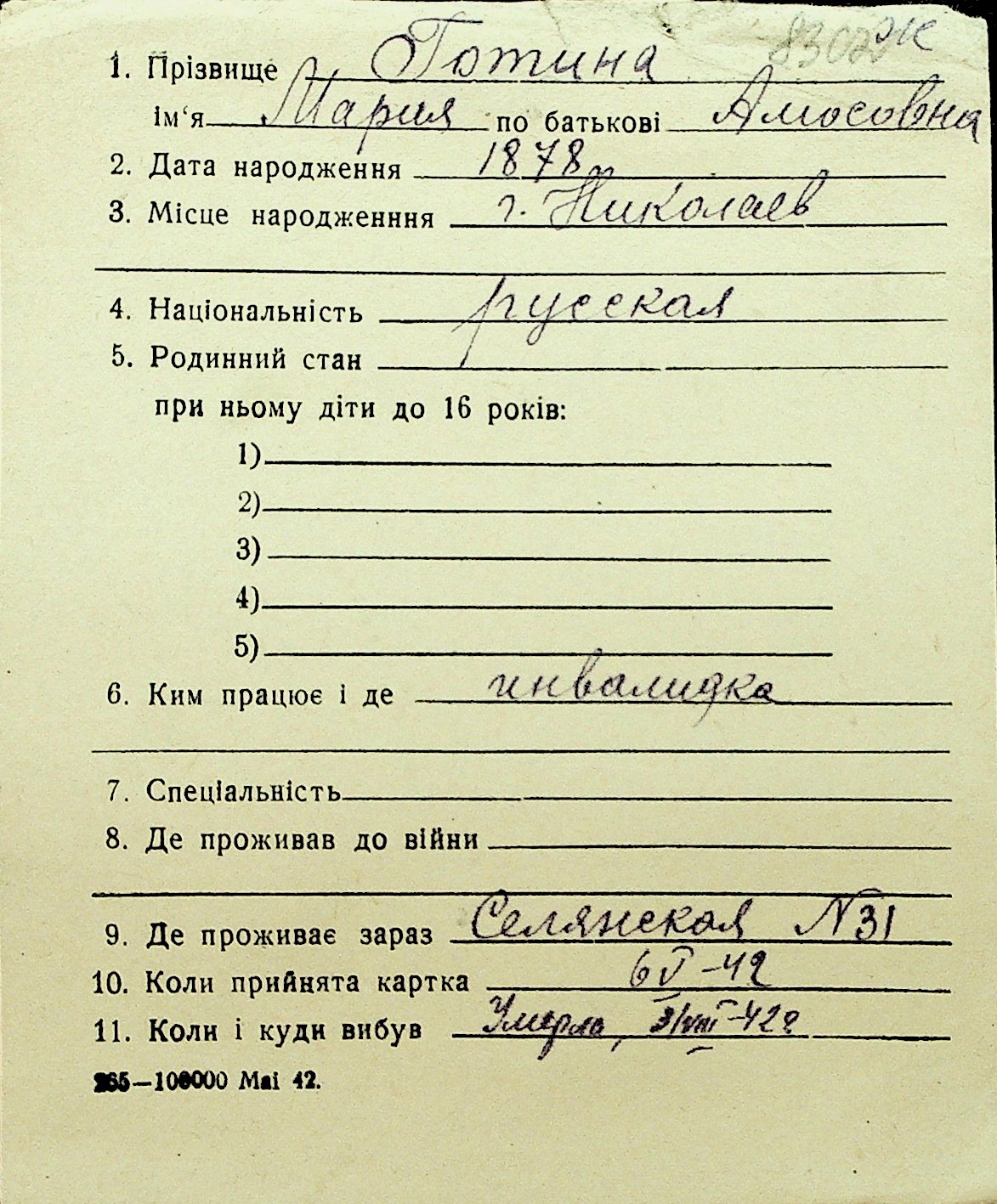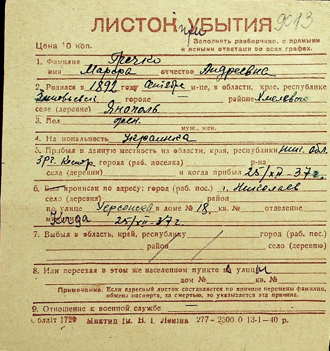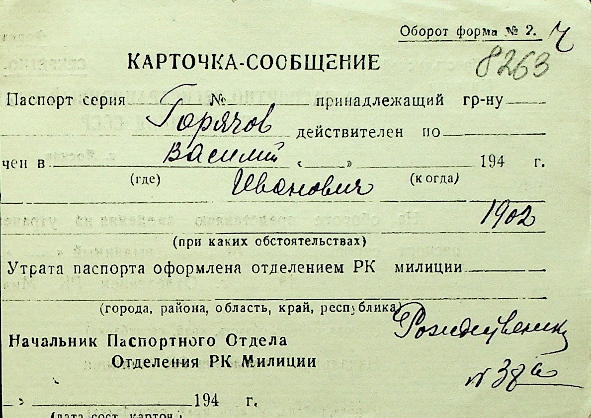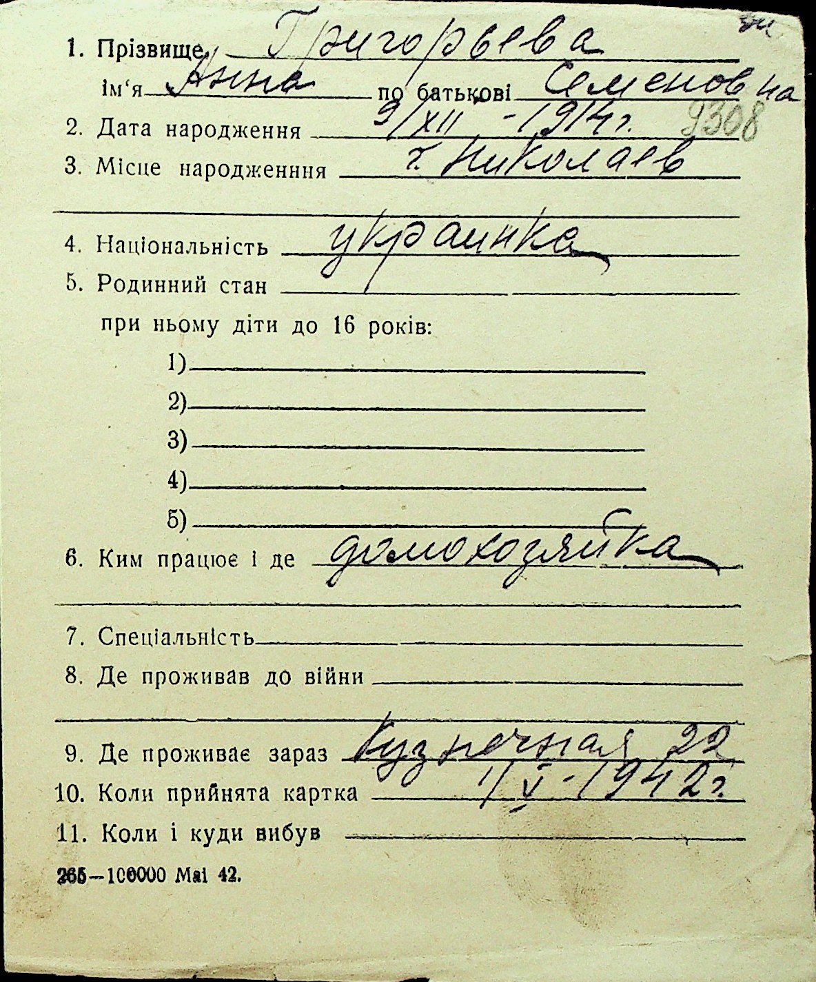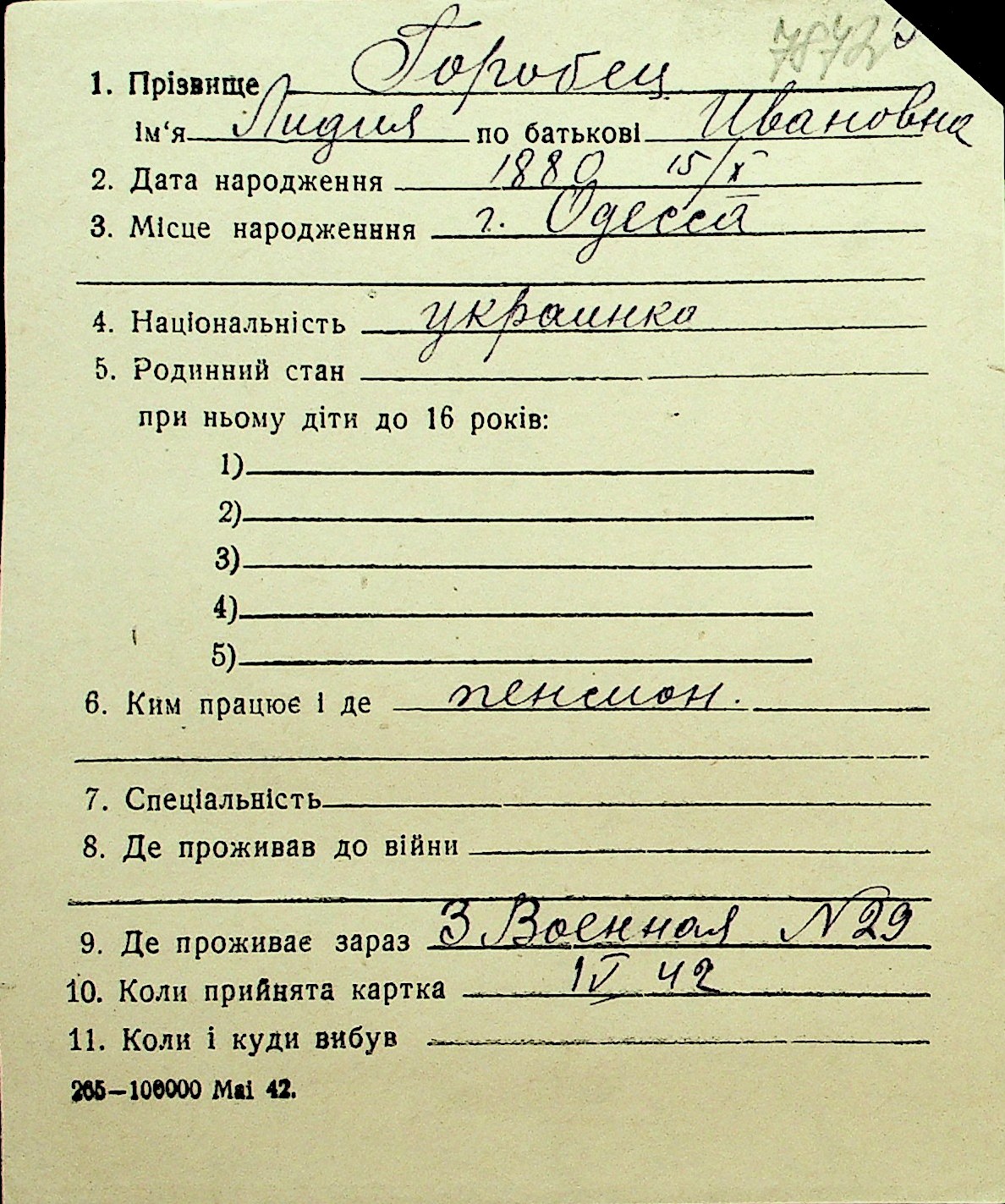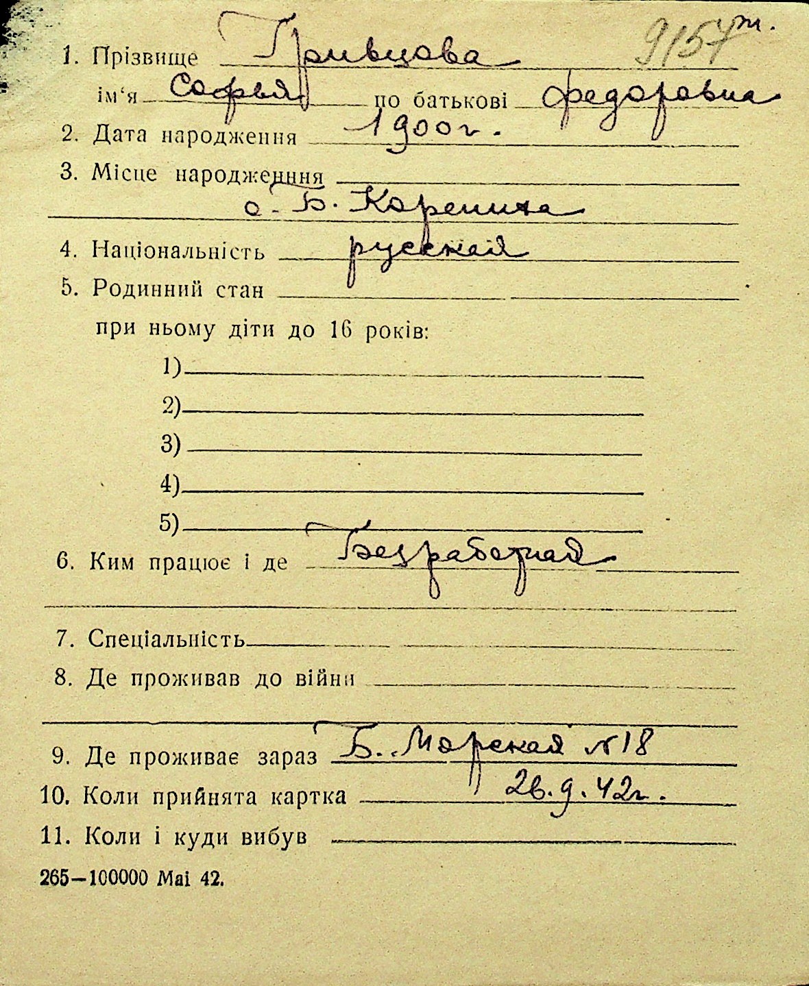 • • Перелік карток до фонду № Н-1016