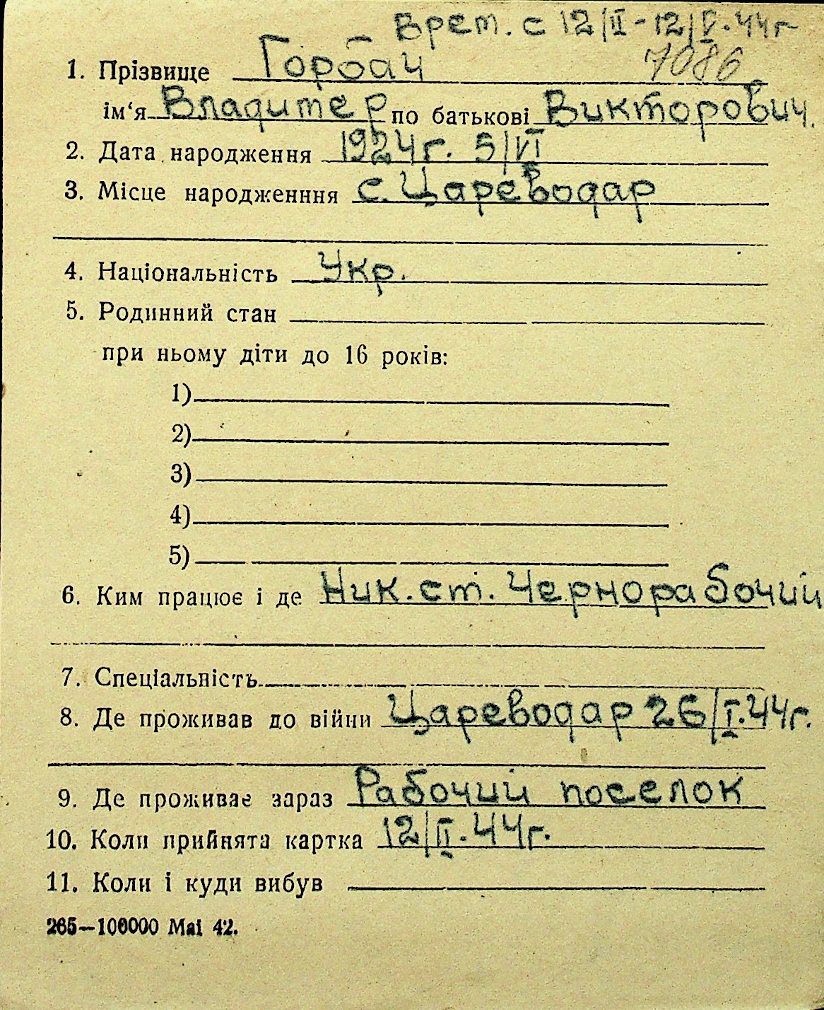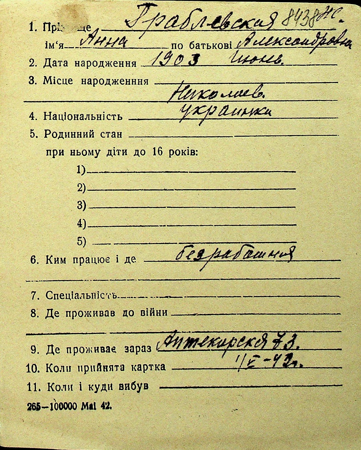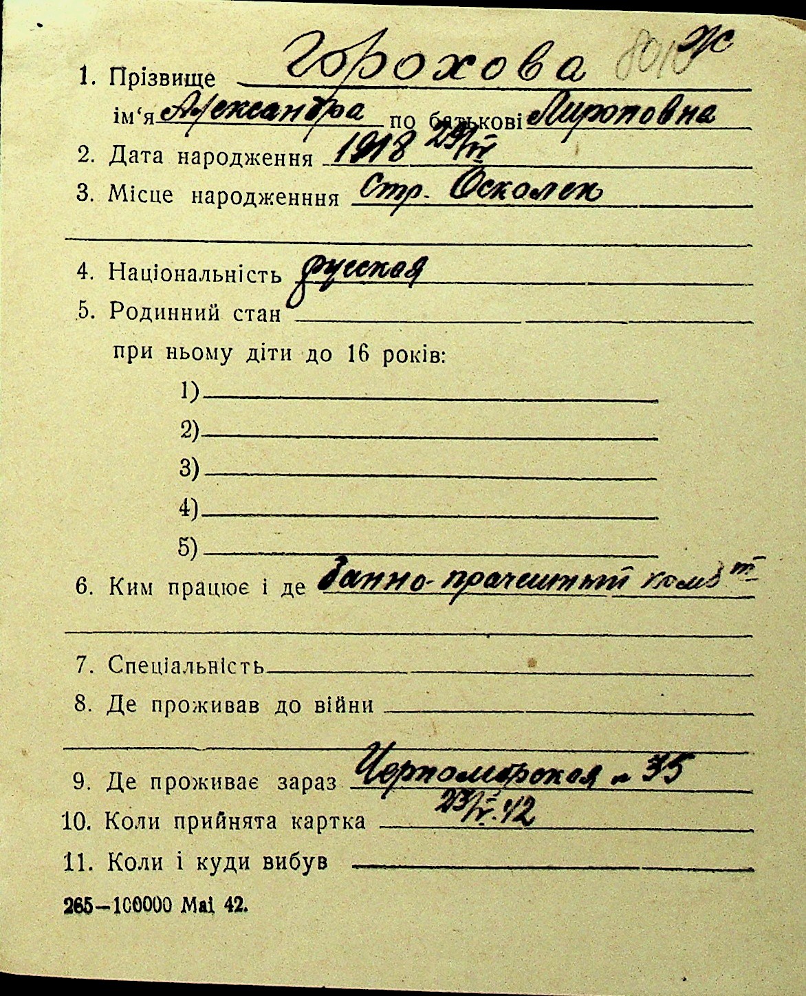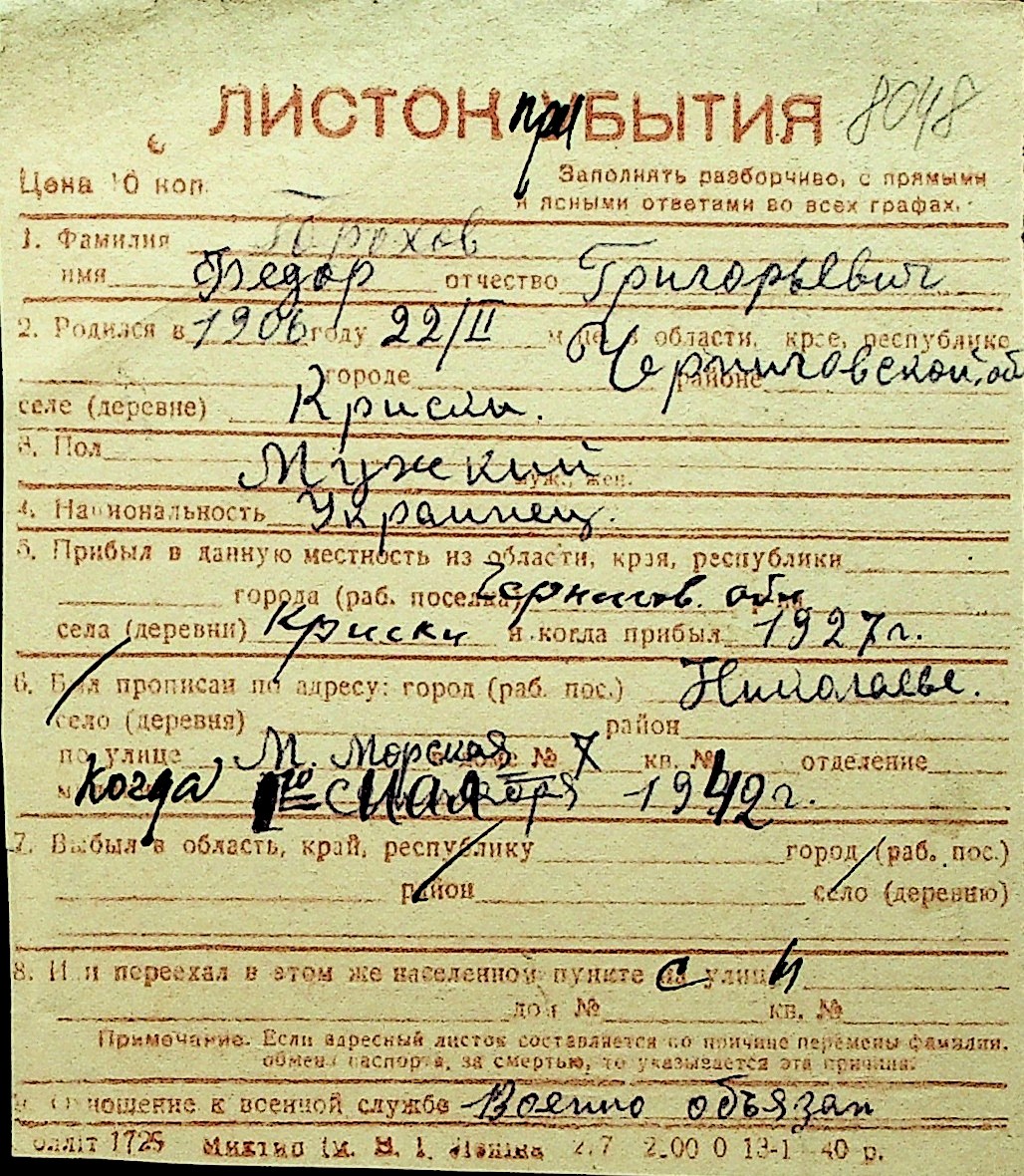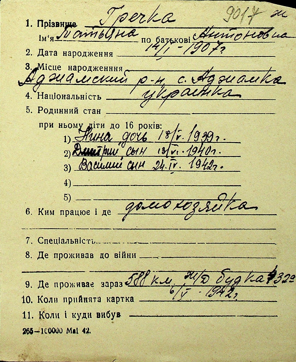 • • Перелік карток до фонду № Н-1016