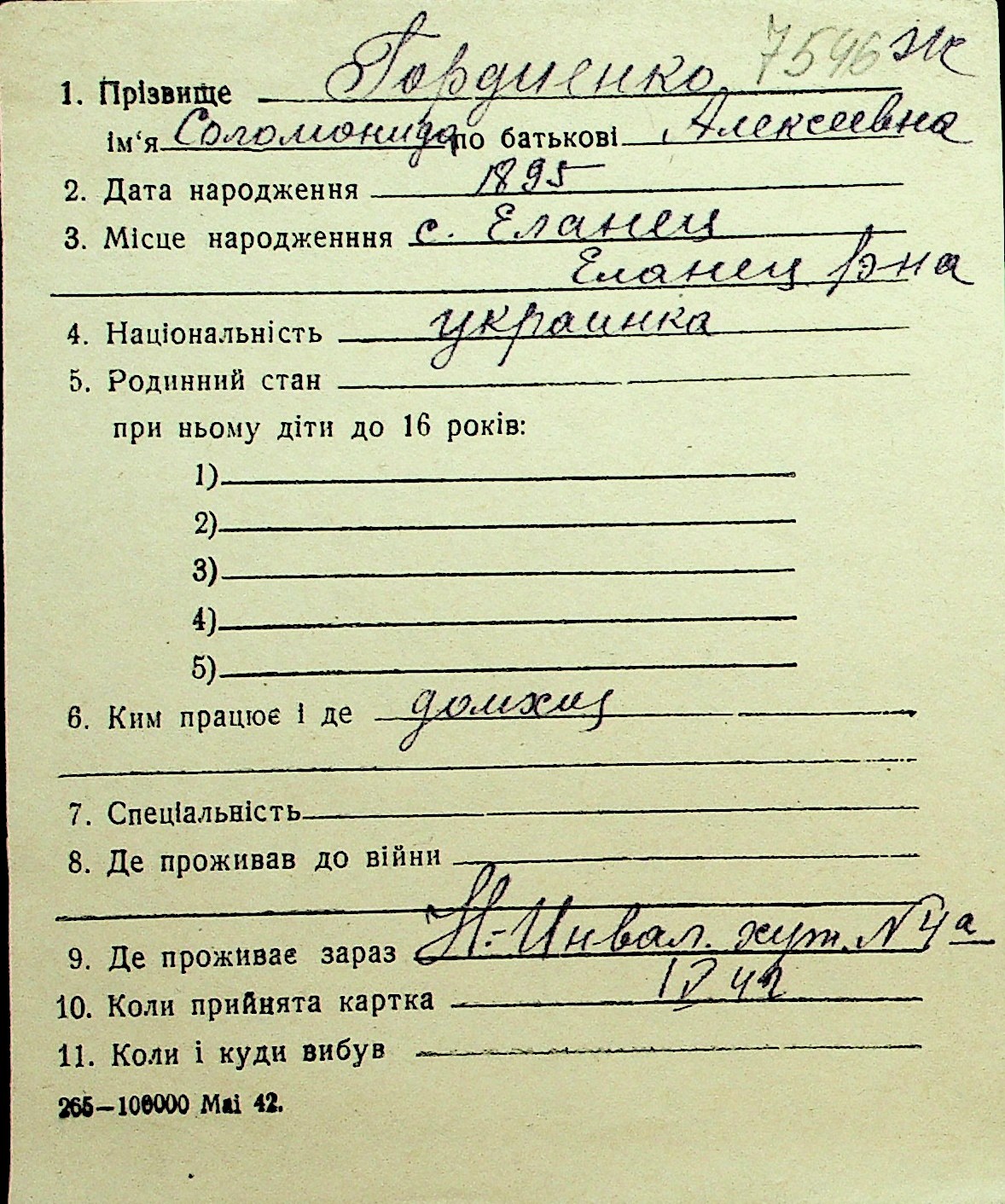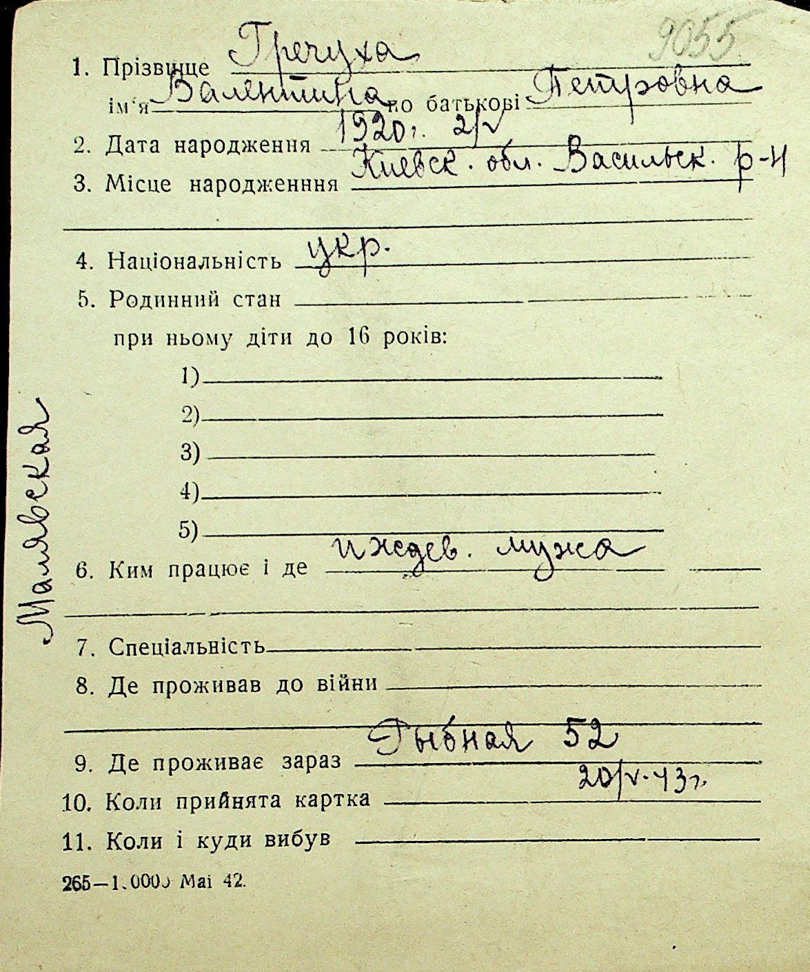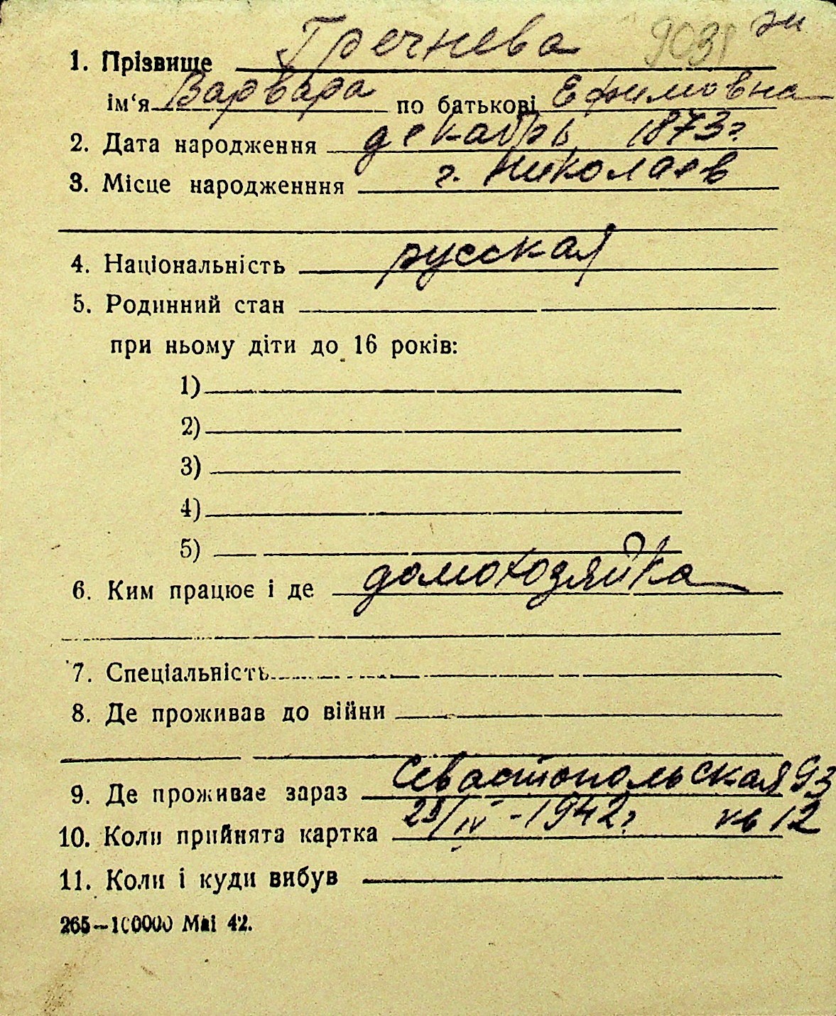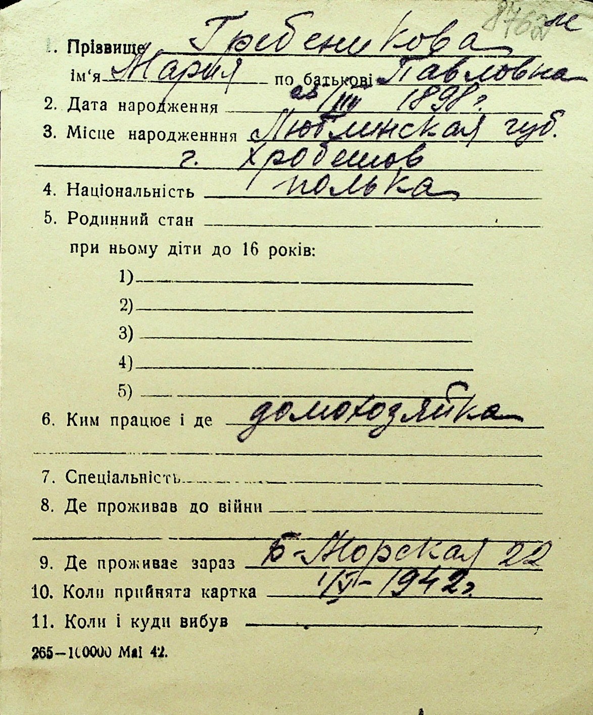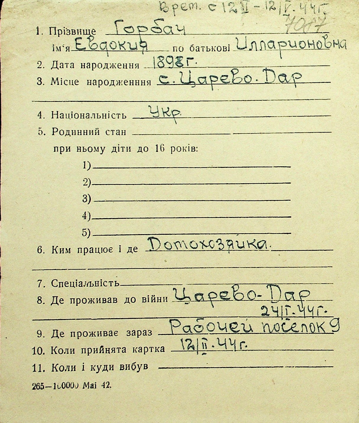 • • Перелік карток до фонду № Н-1016