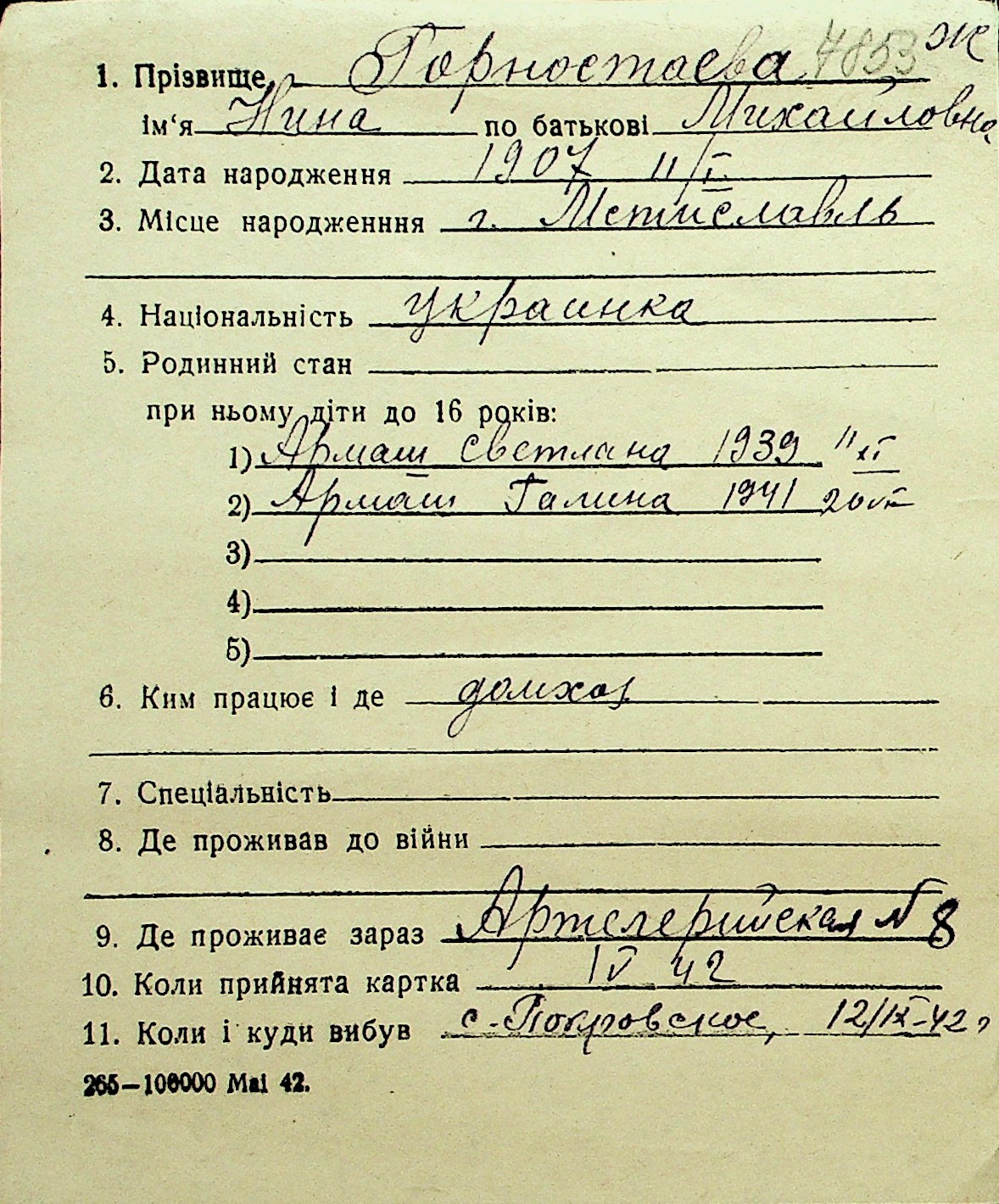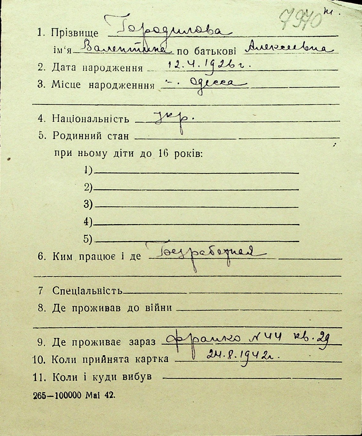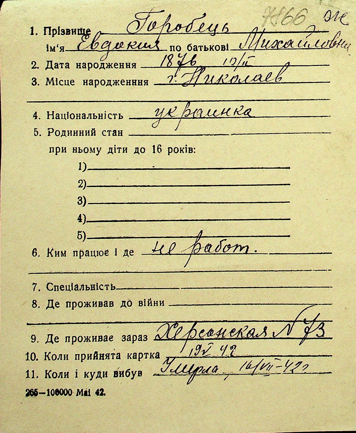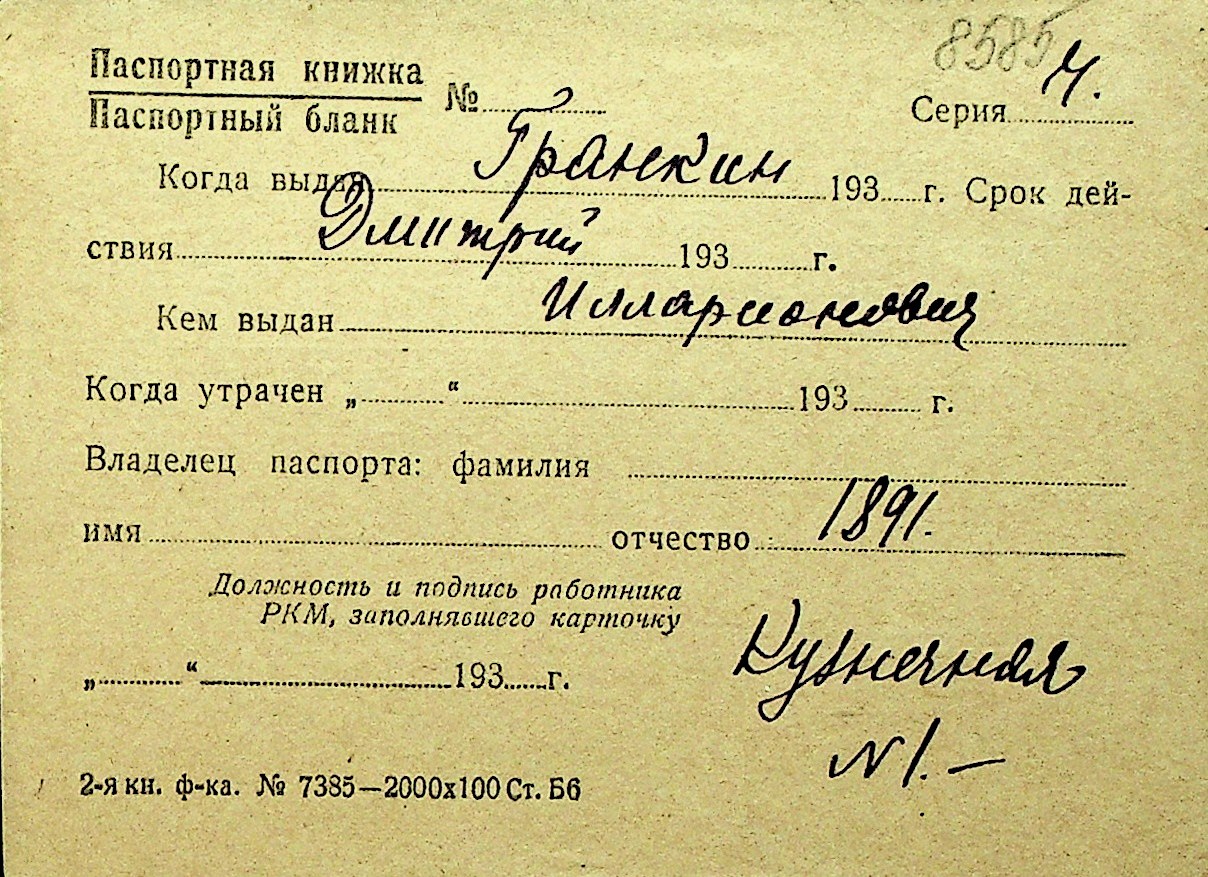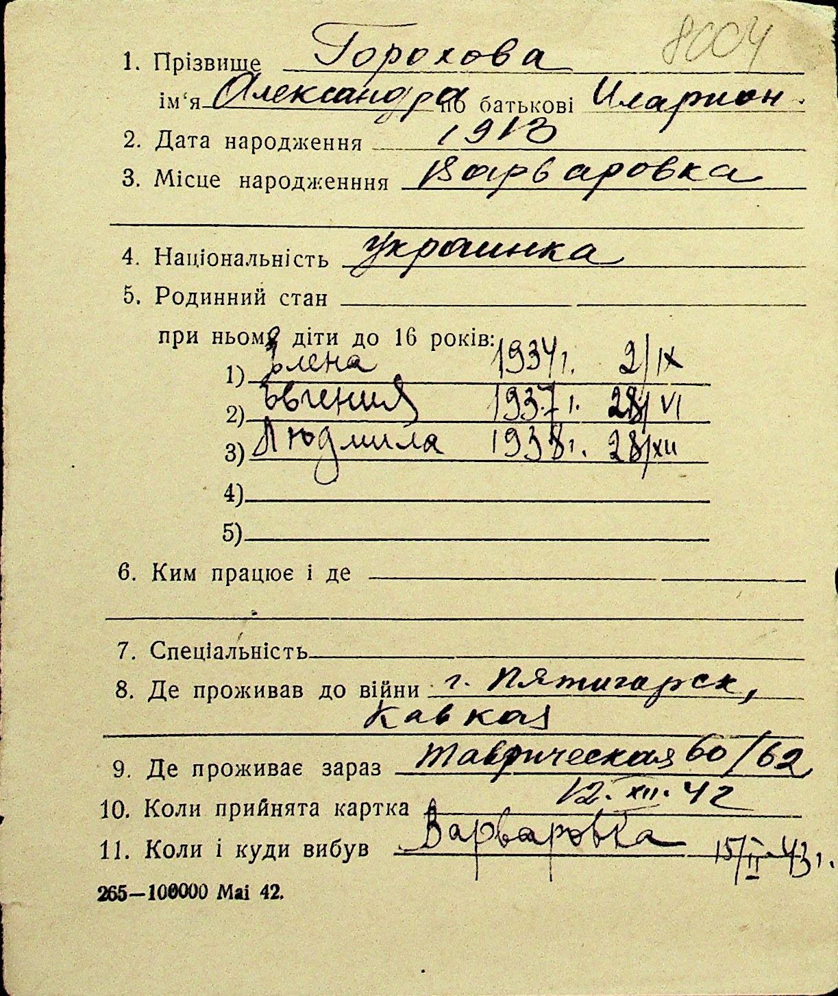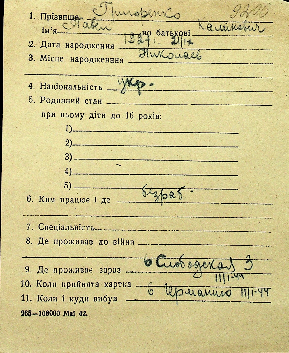 • • Перелік карток до фонду № Н-1016