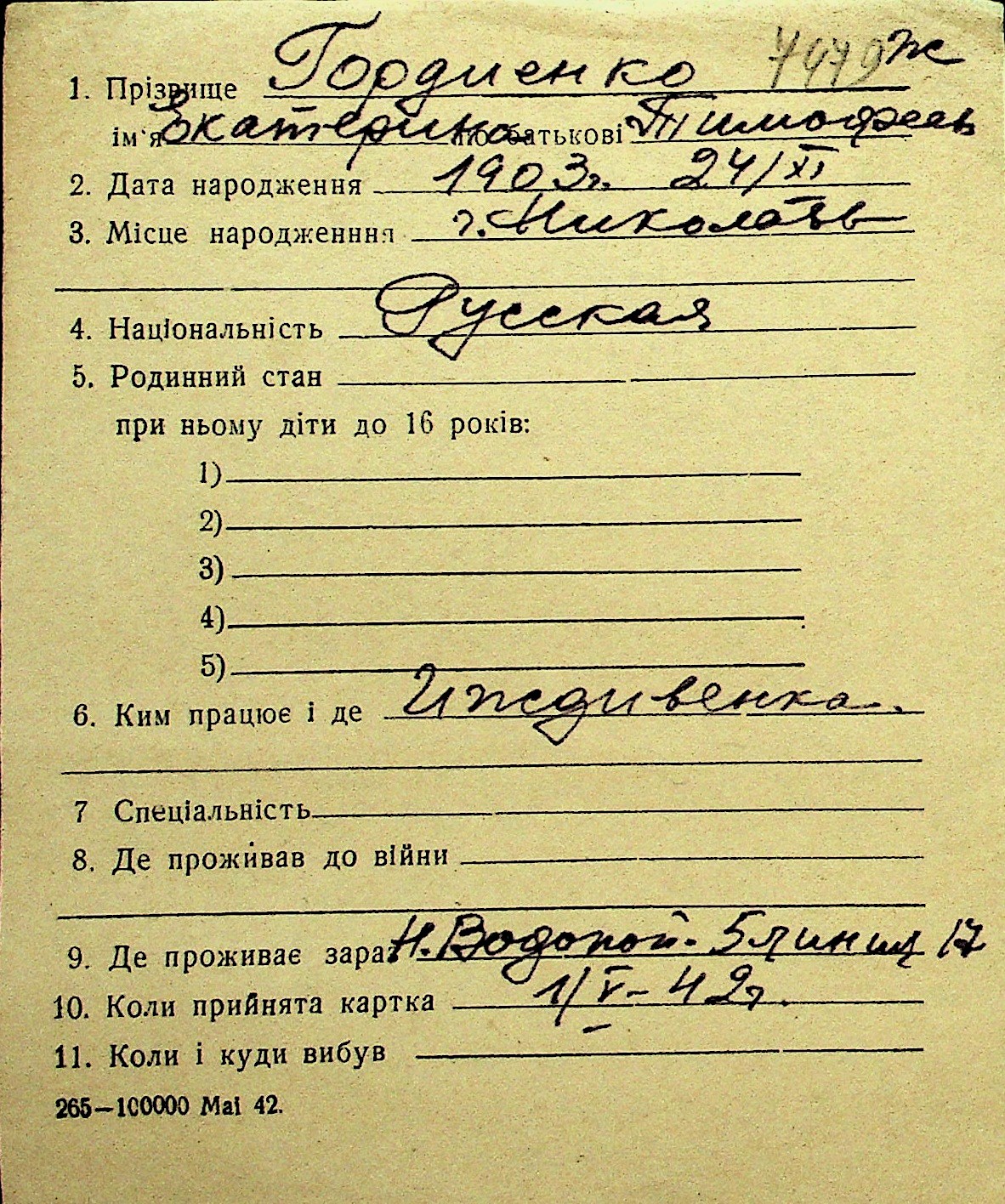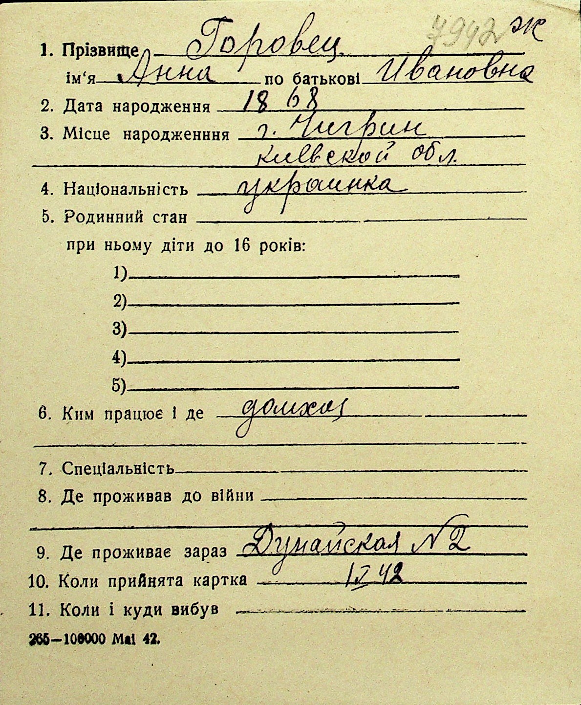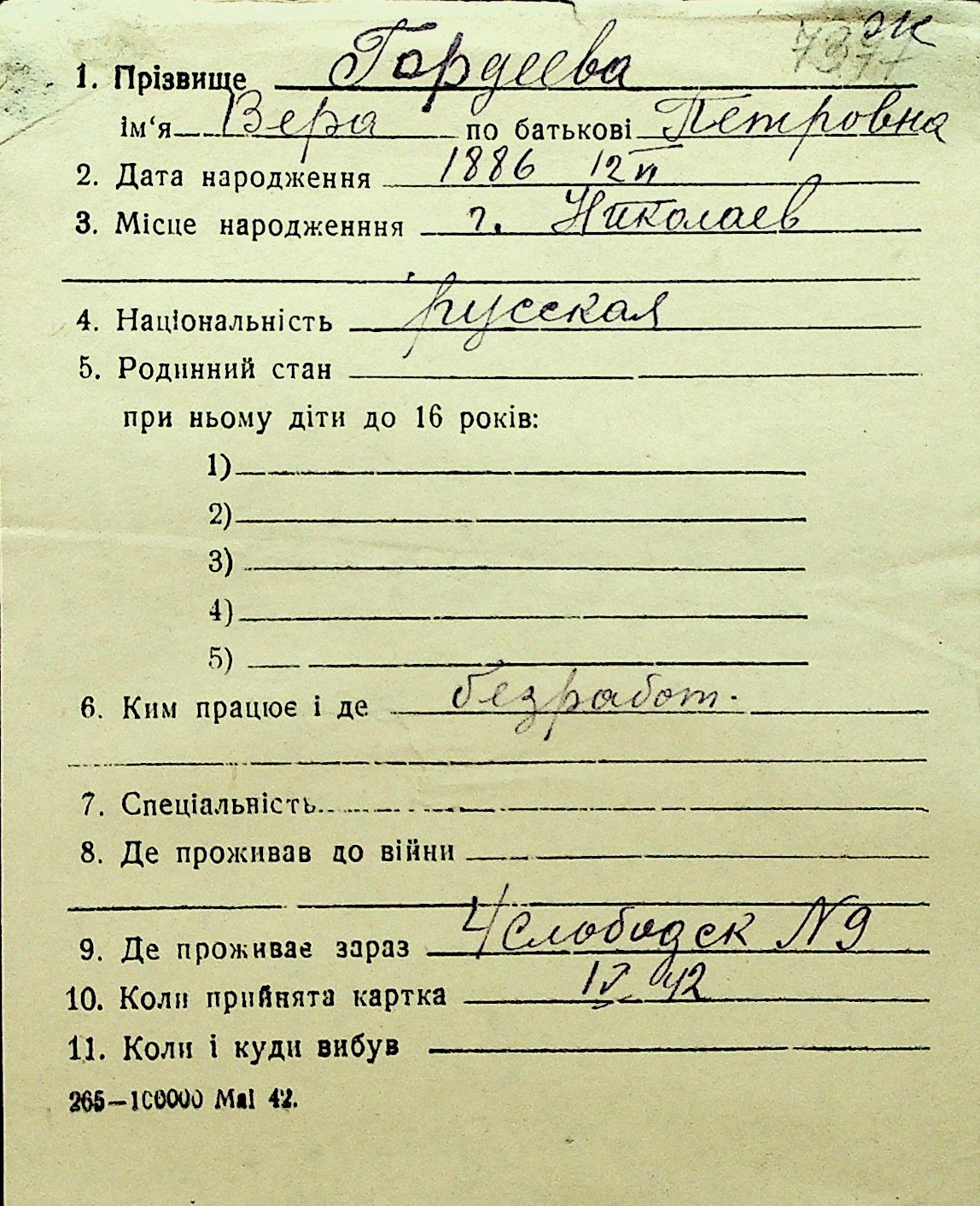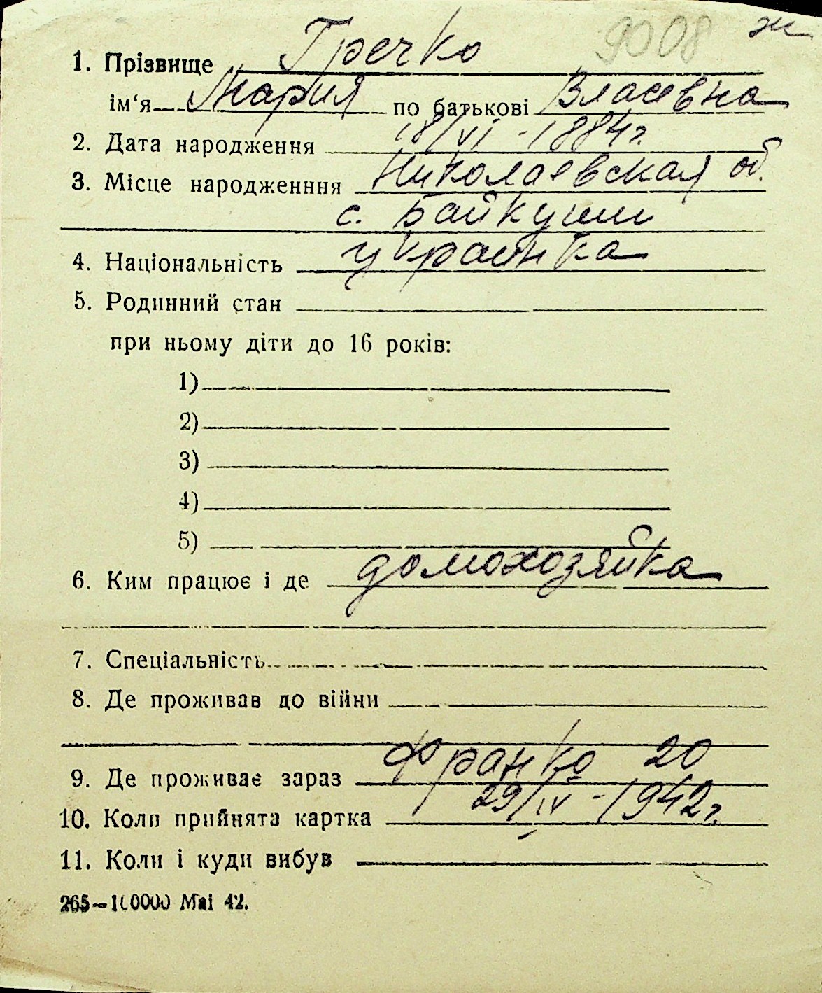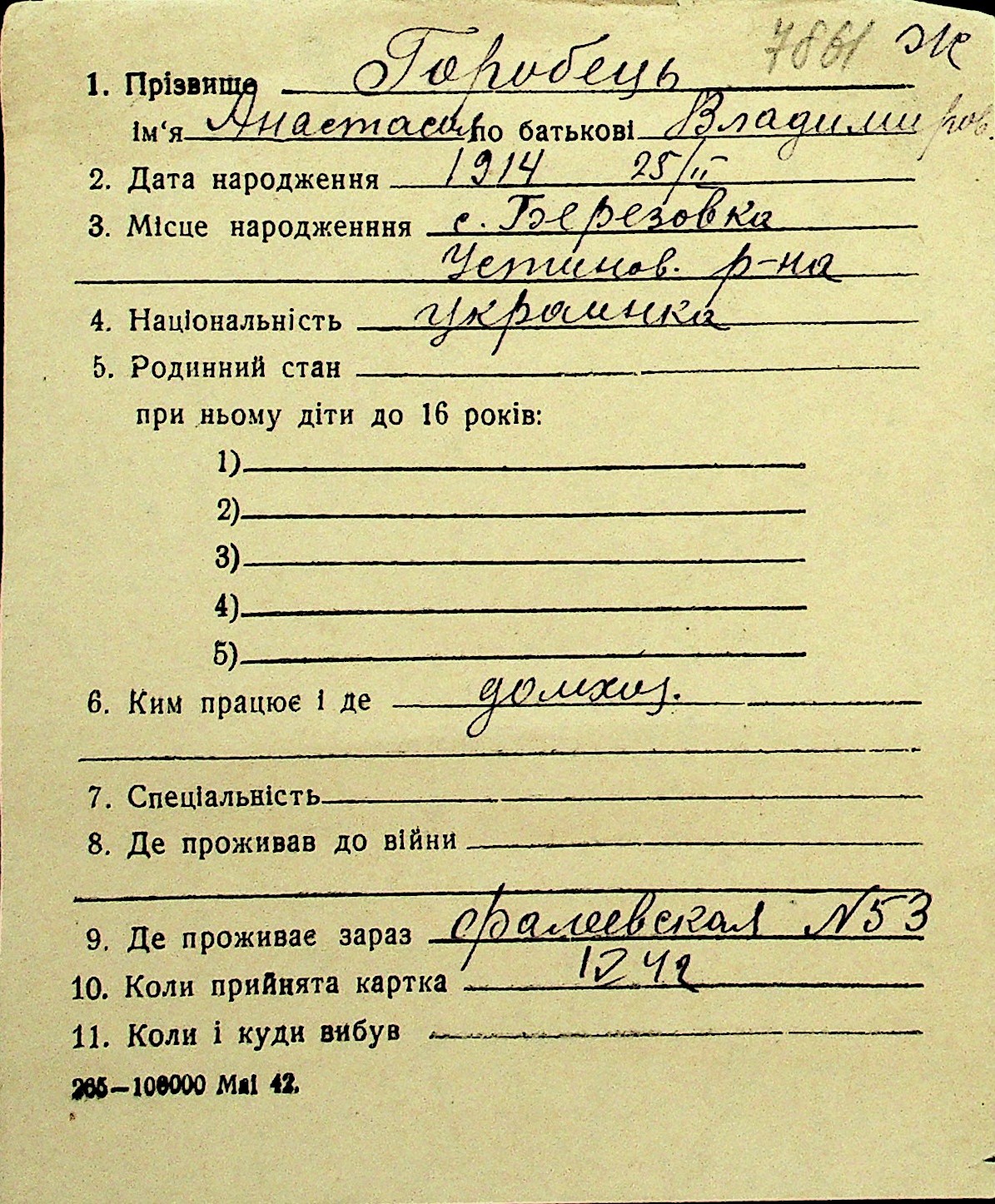 • • Перелік карток до фонду № Н-1016