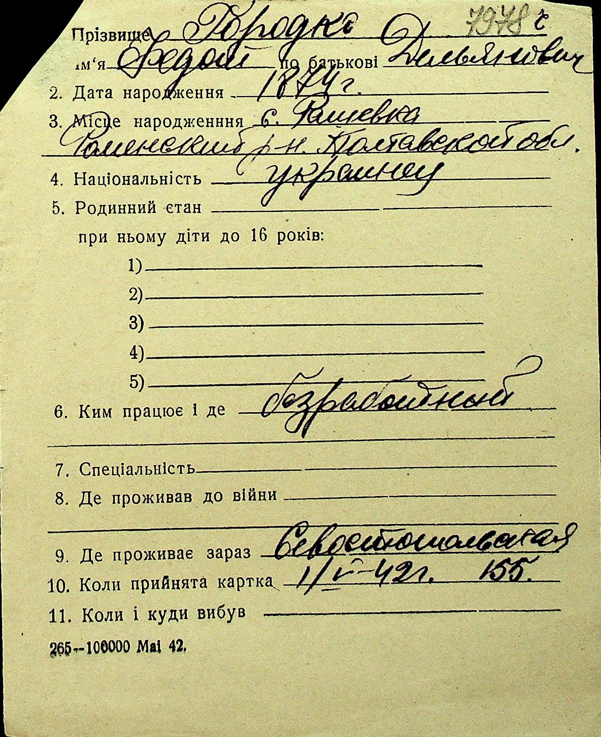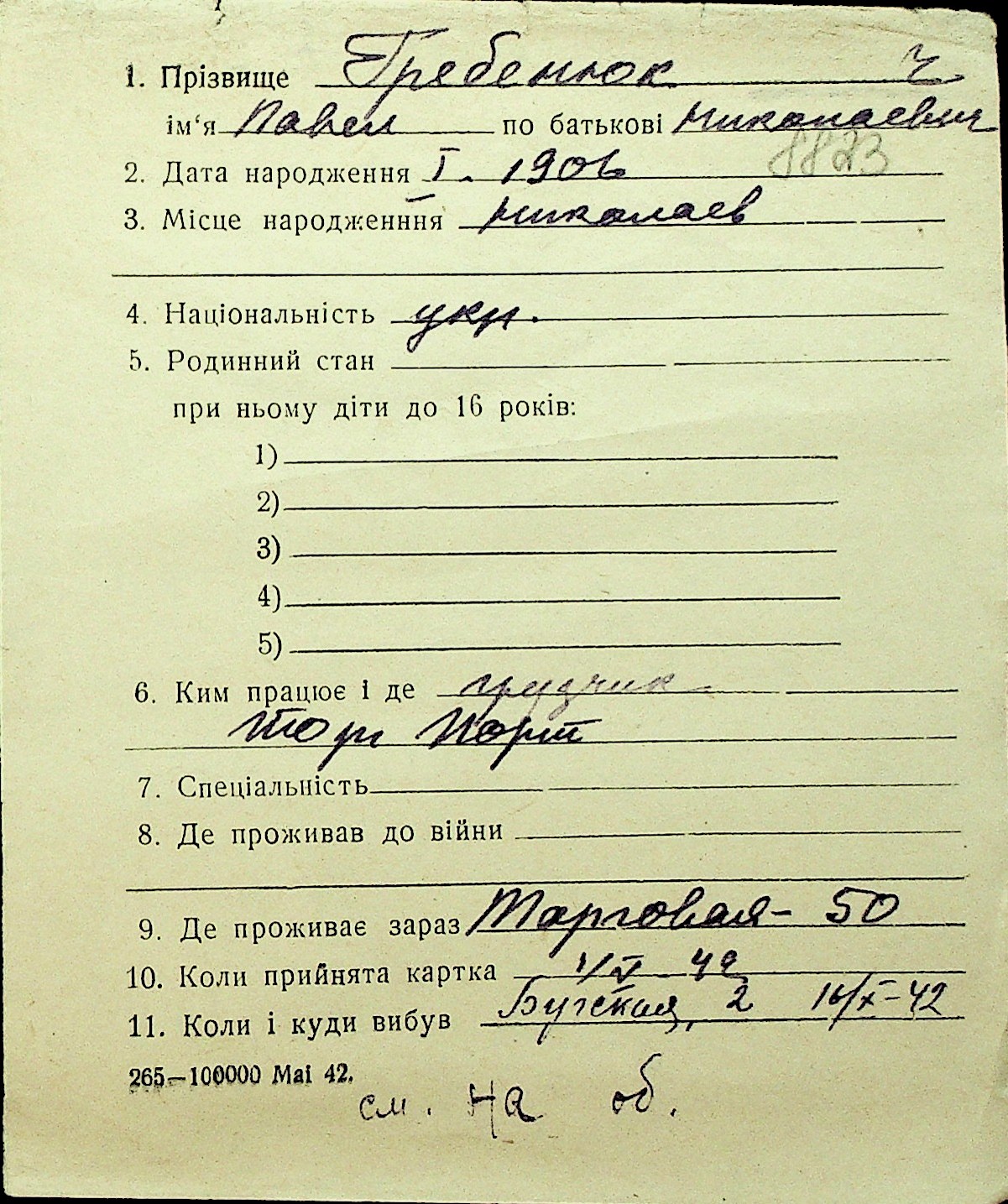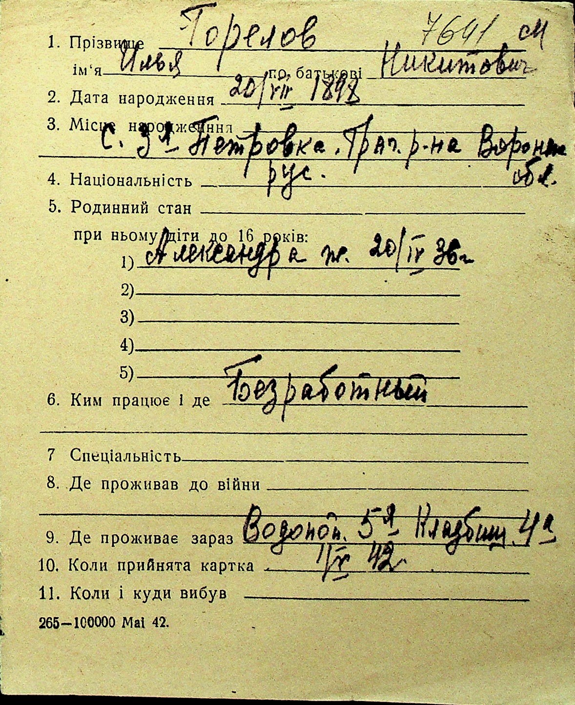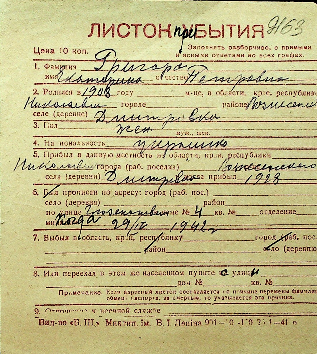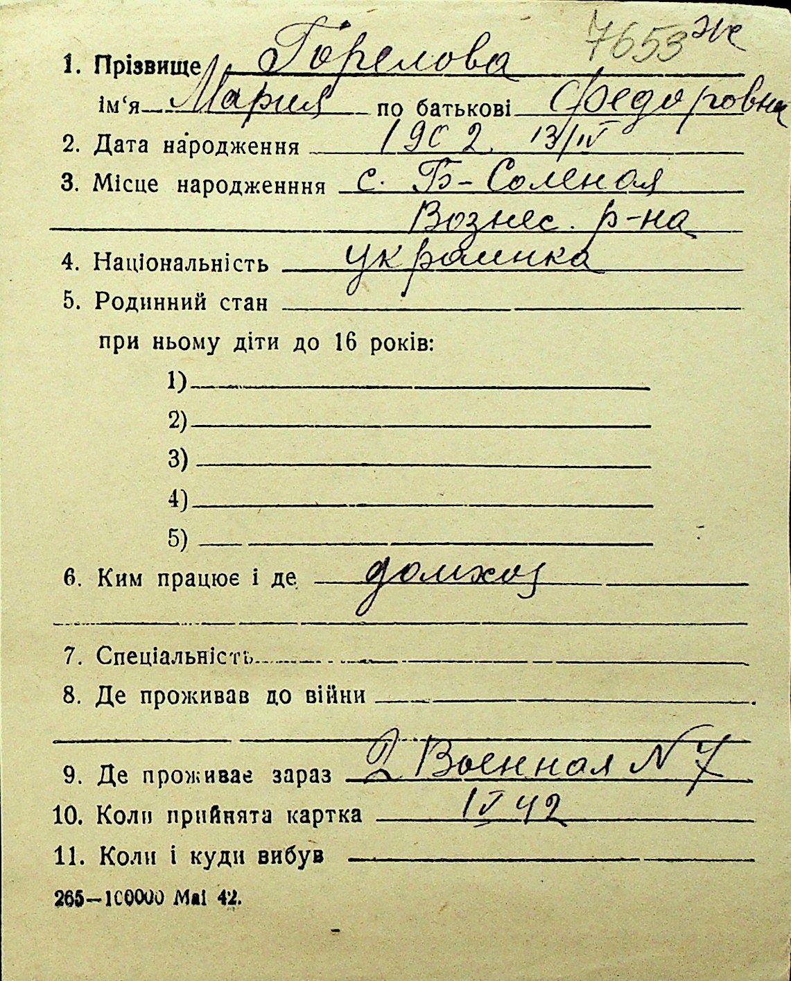 • • Перелік карток до фонду № Н-1016