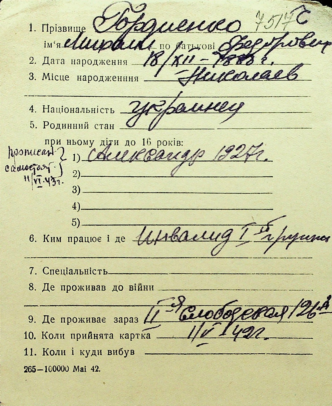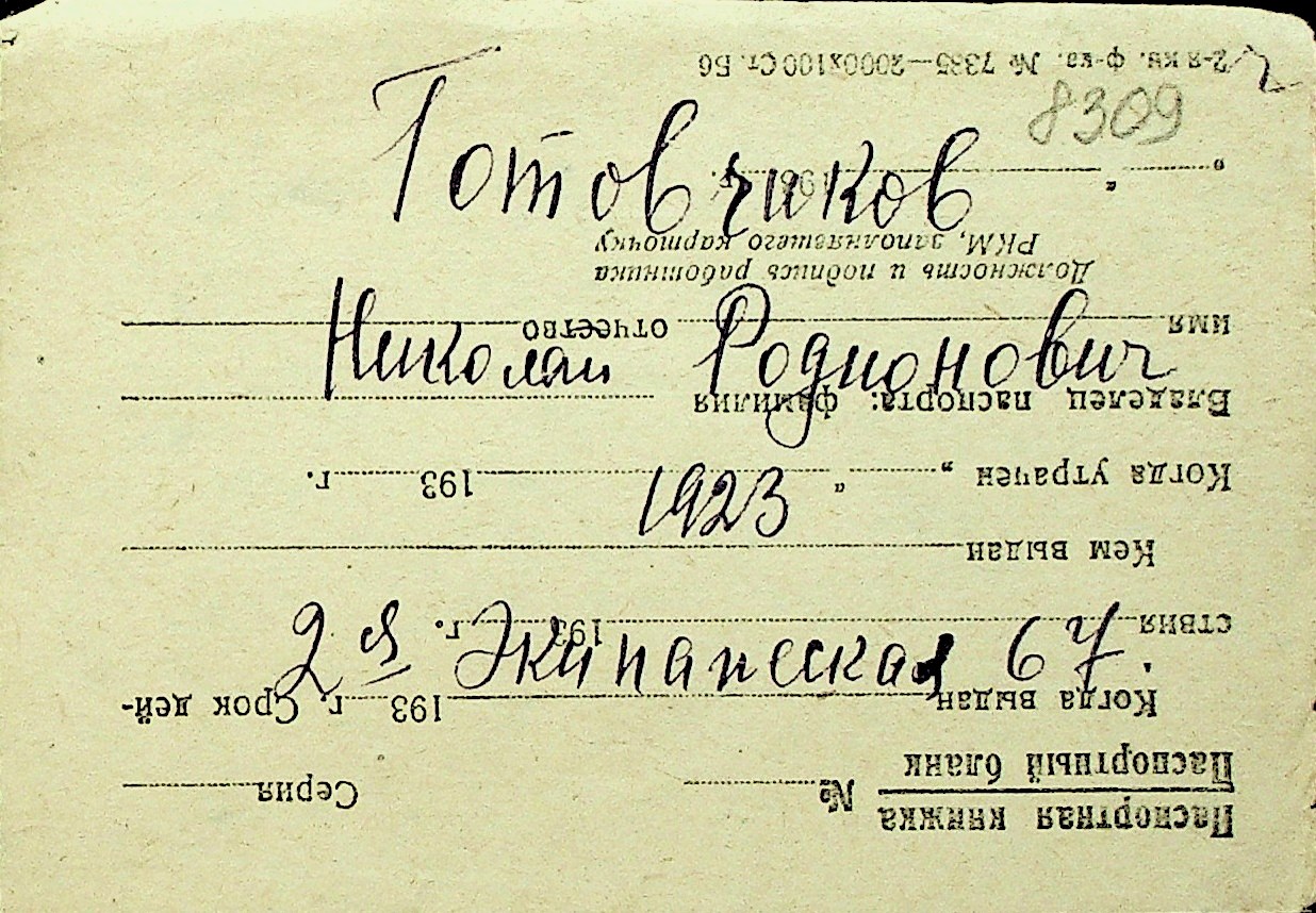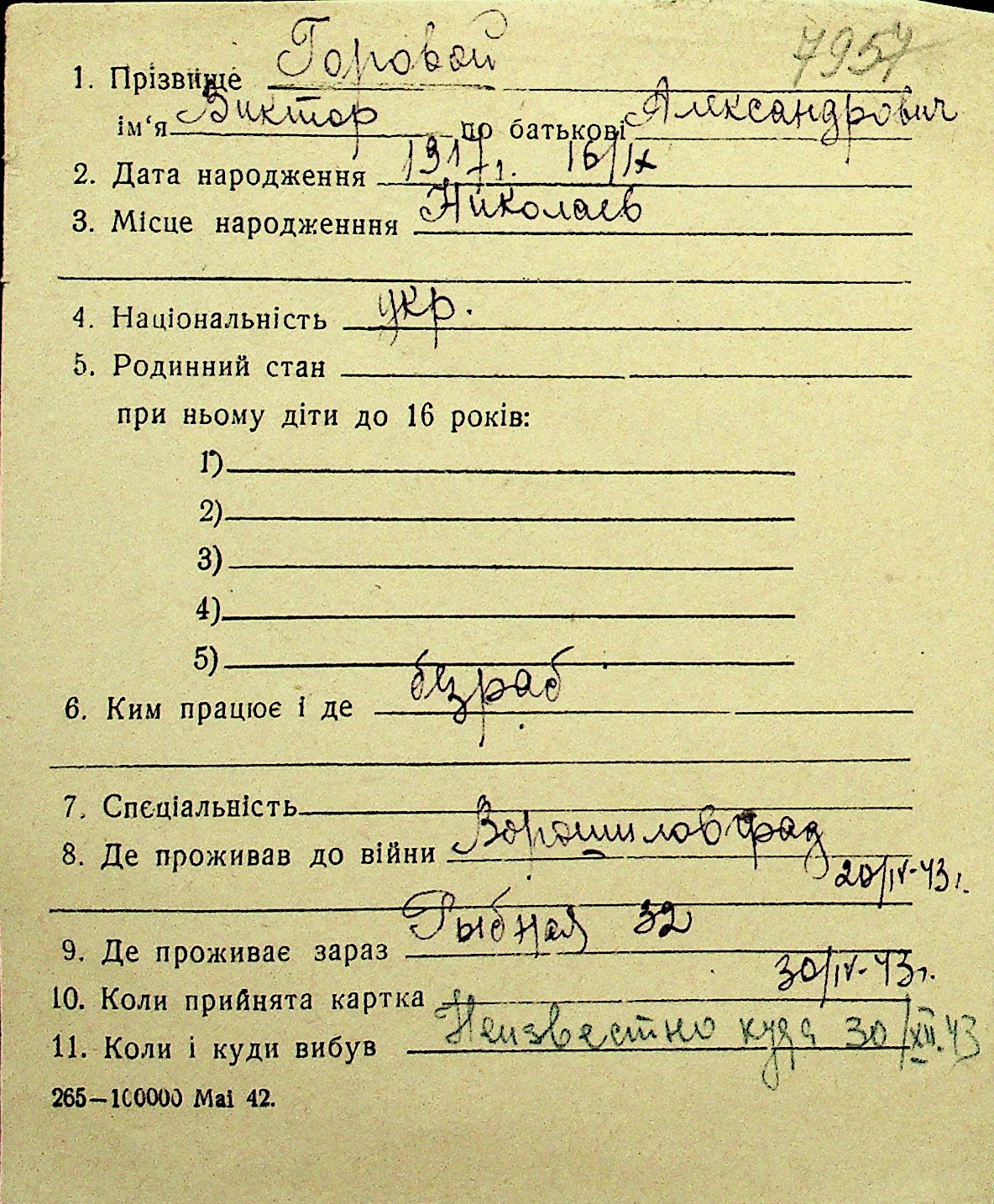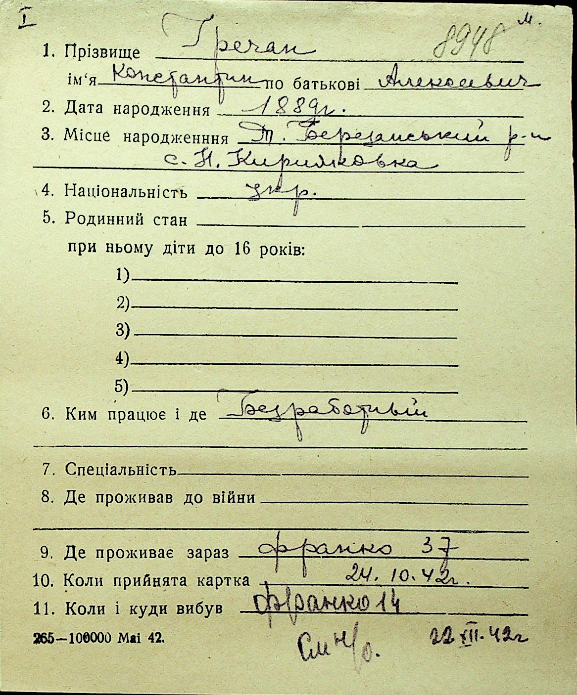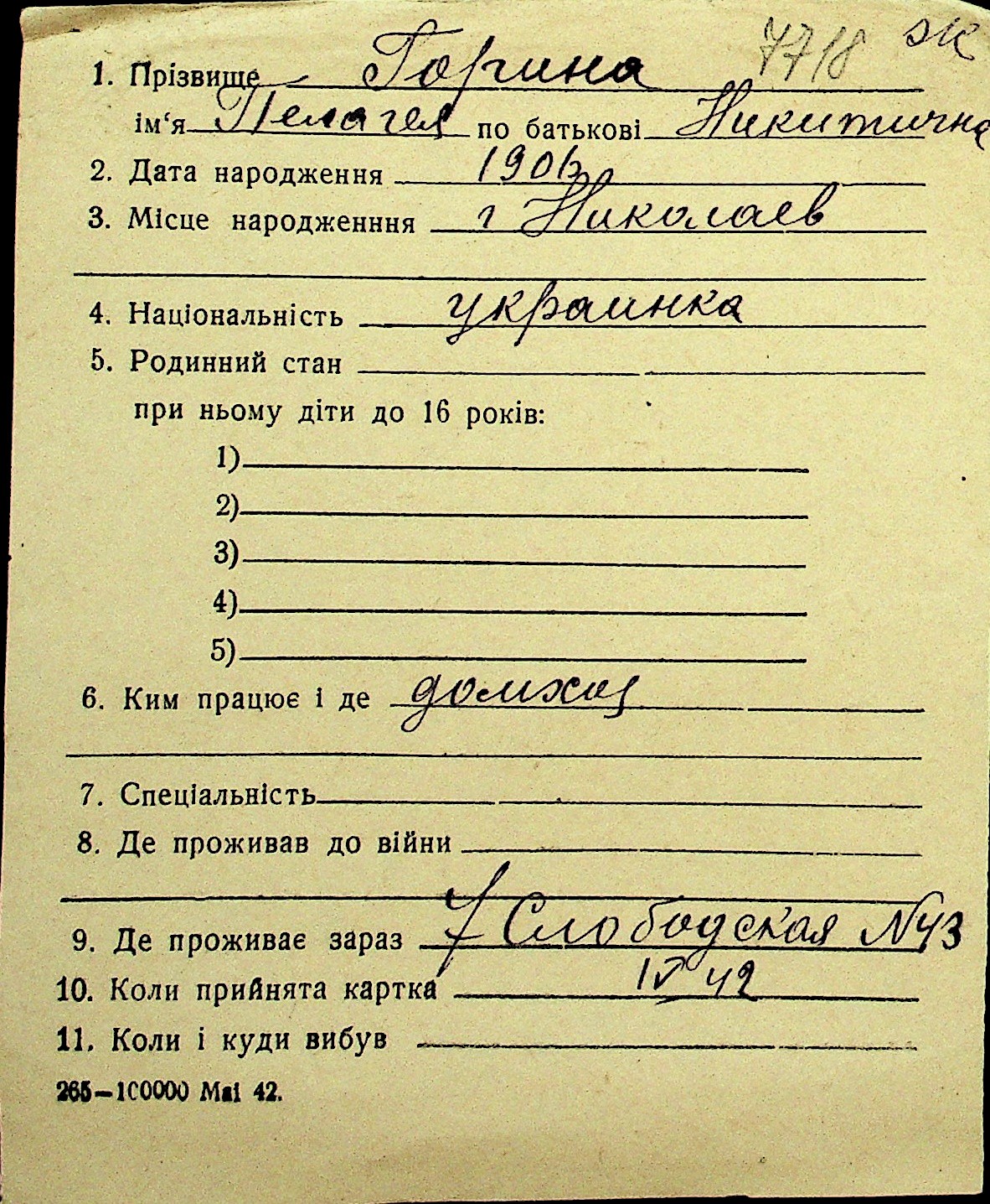 • • Перелік карток до фонду № Н-1016