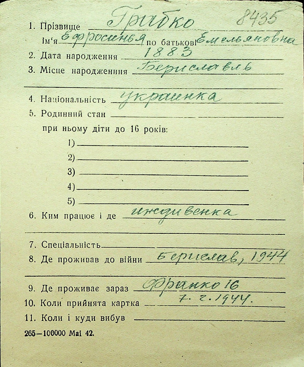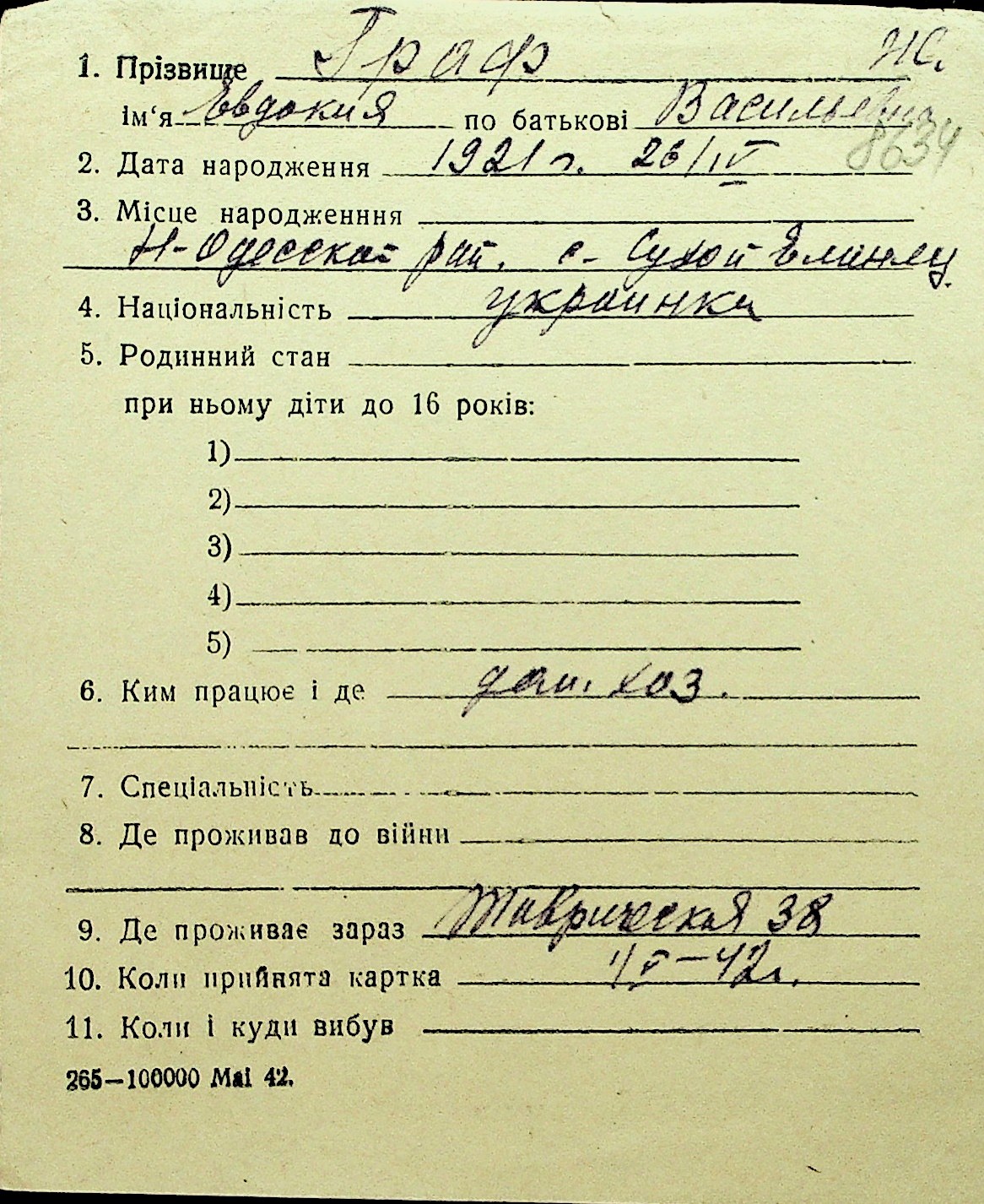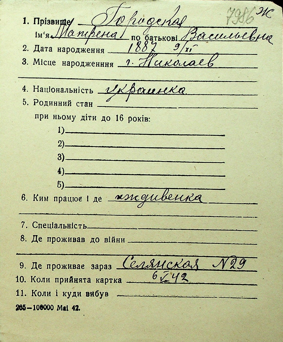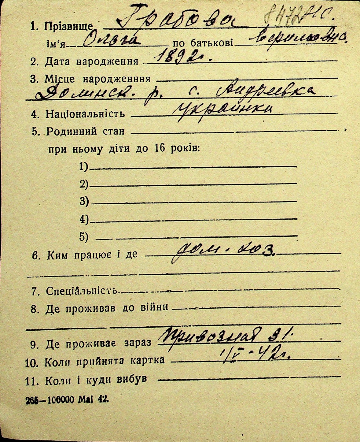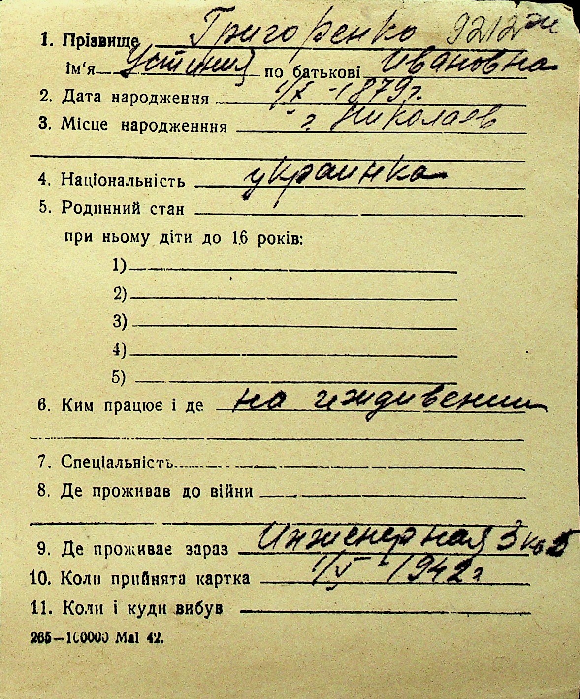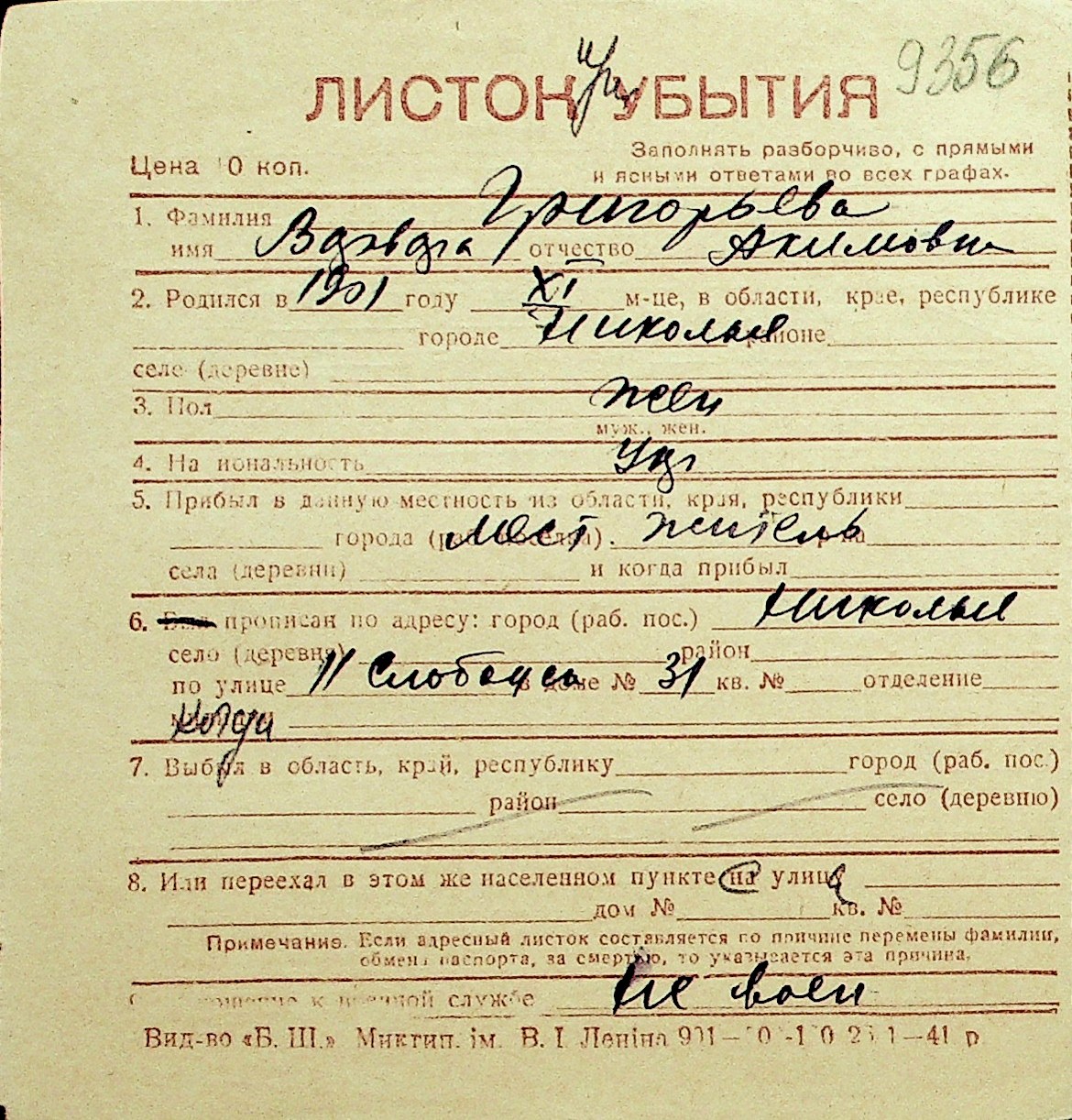 • • Перелік карток до фонду № Н-1016