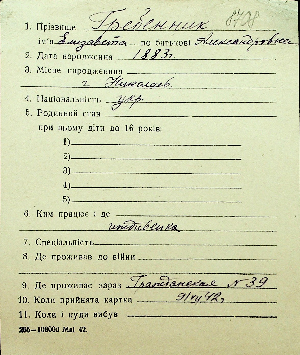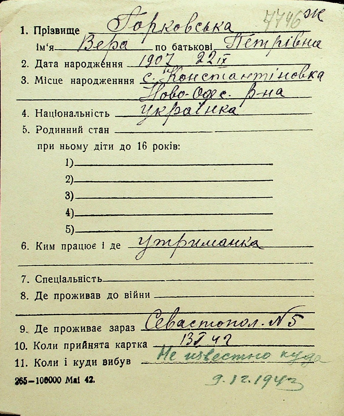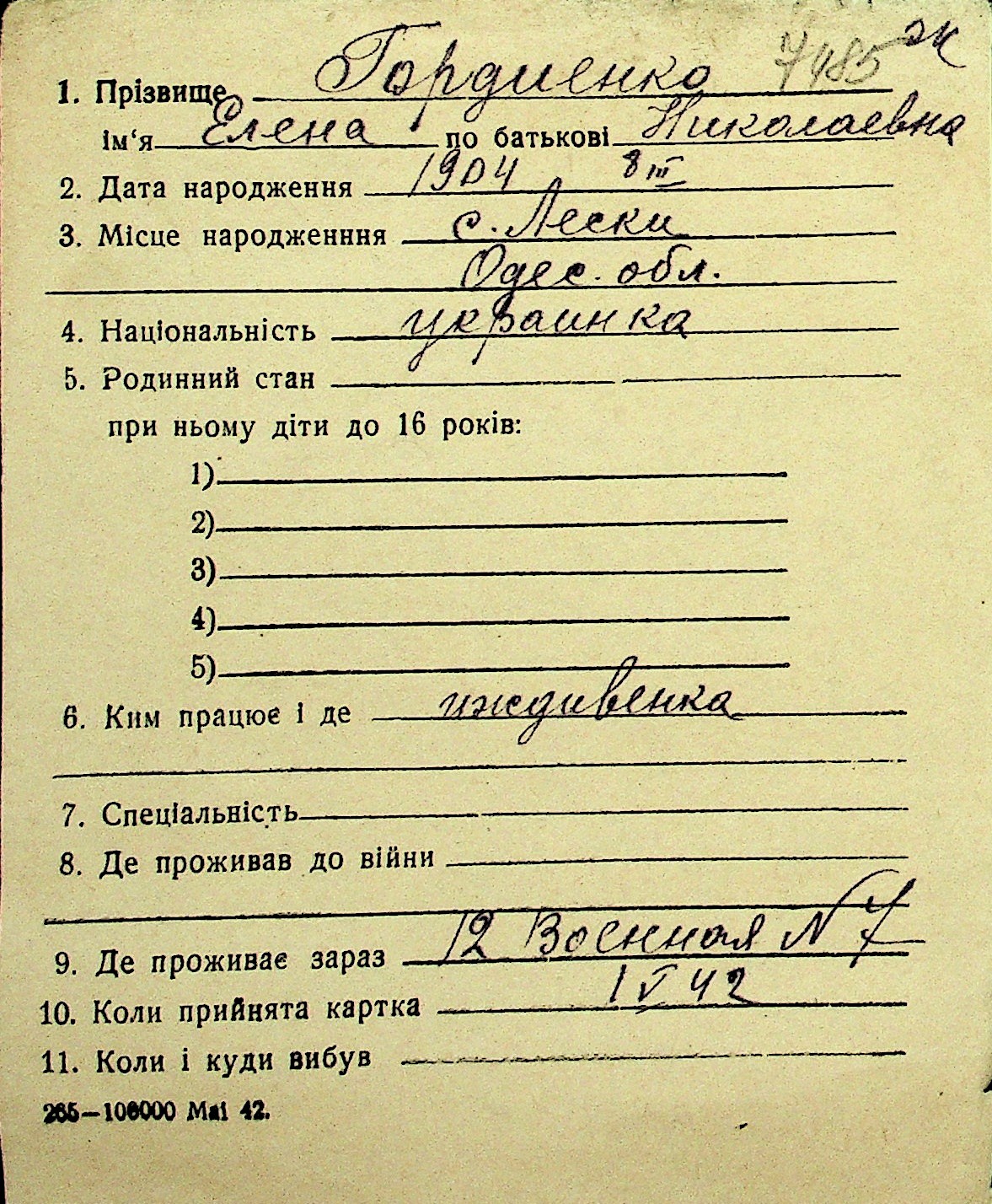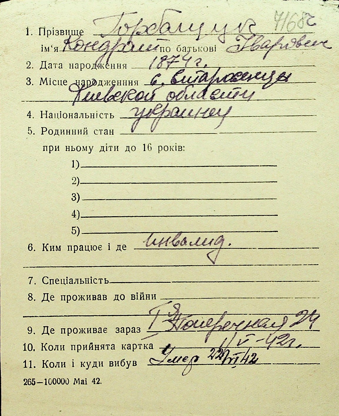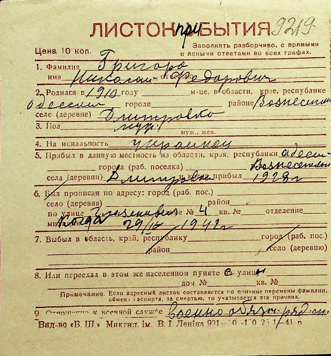 • • Перелік карток до фонду № Н-1016