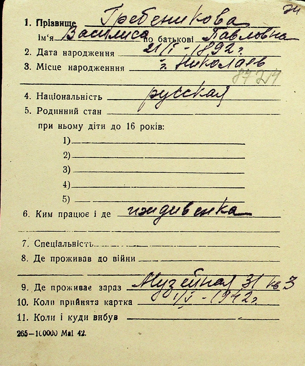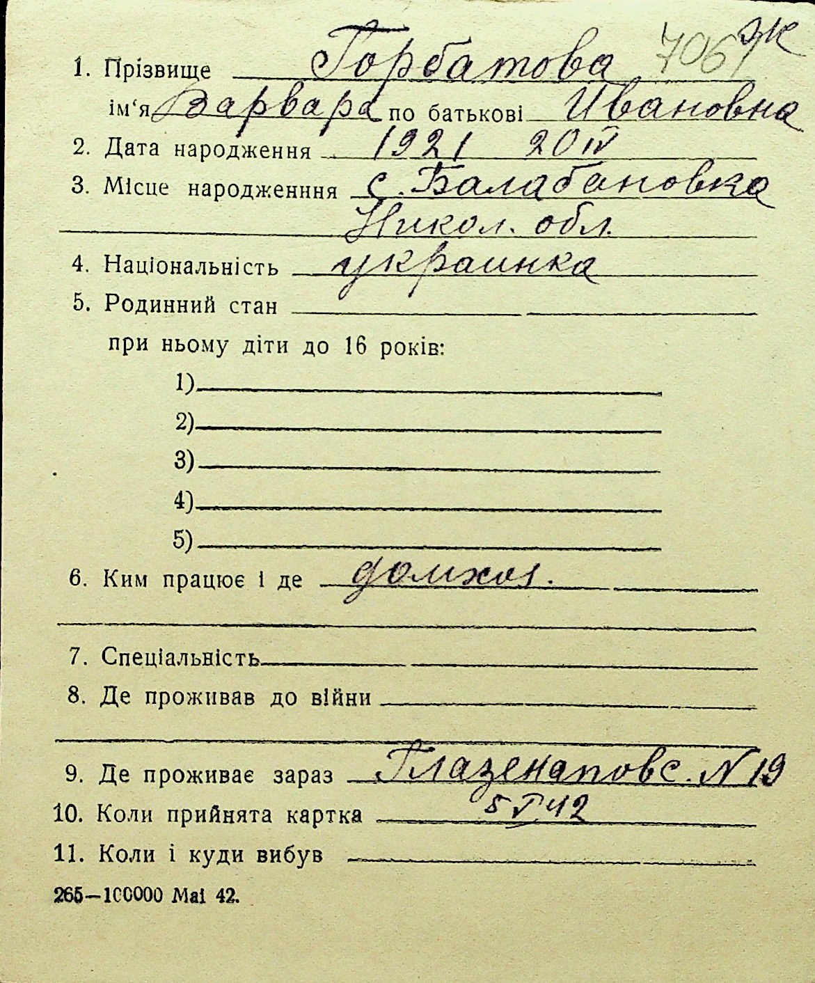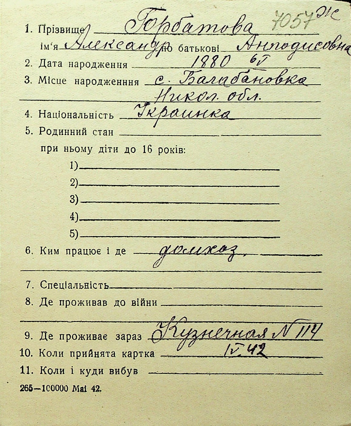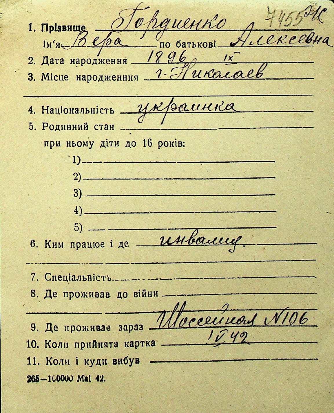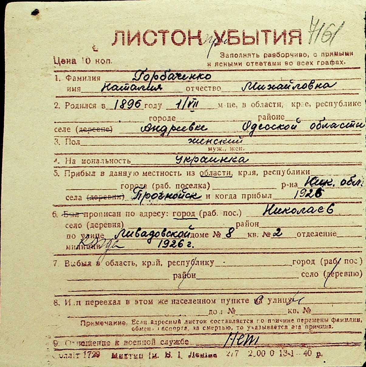 • • Перелік карток до фонду № Н-1016