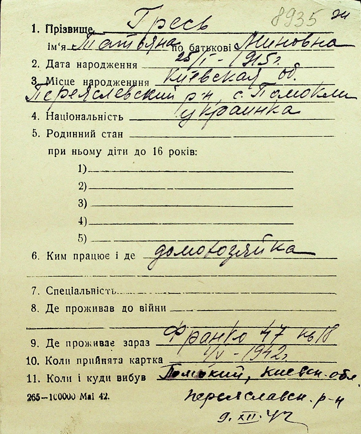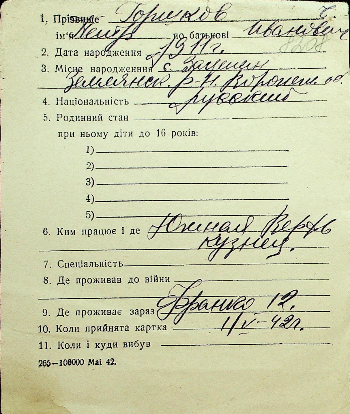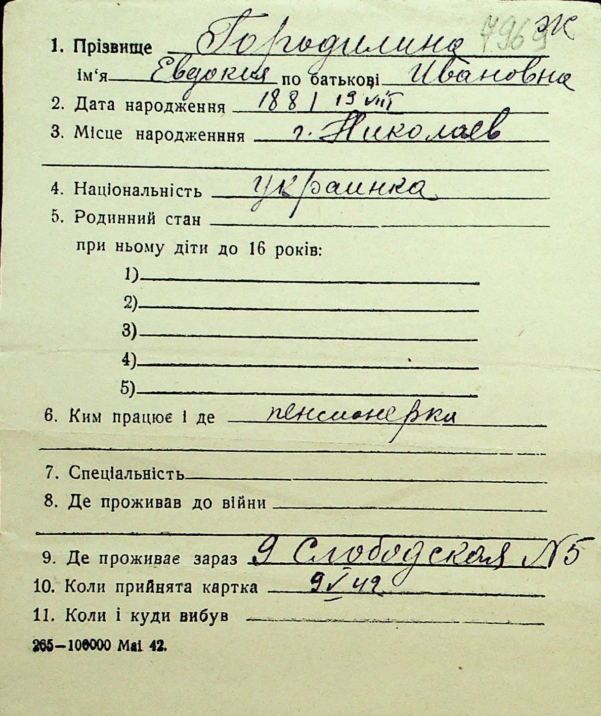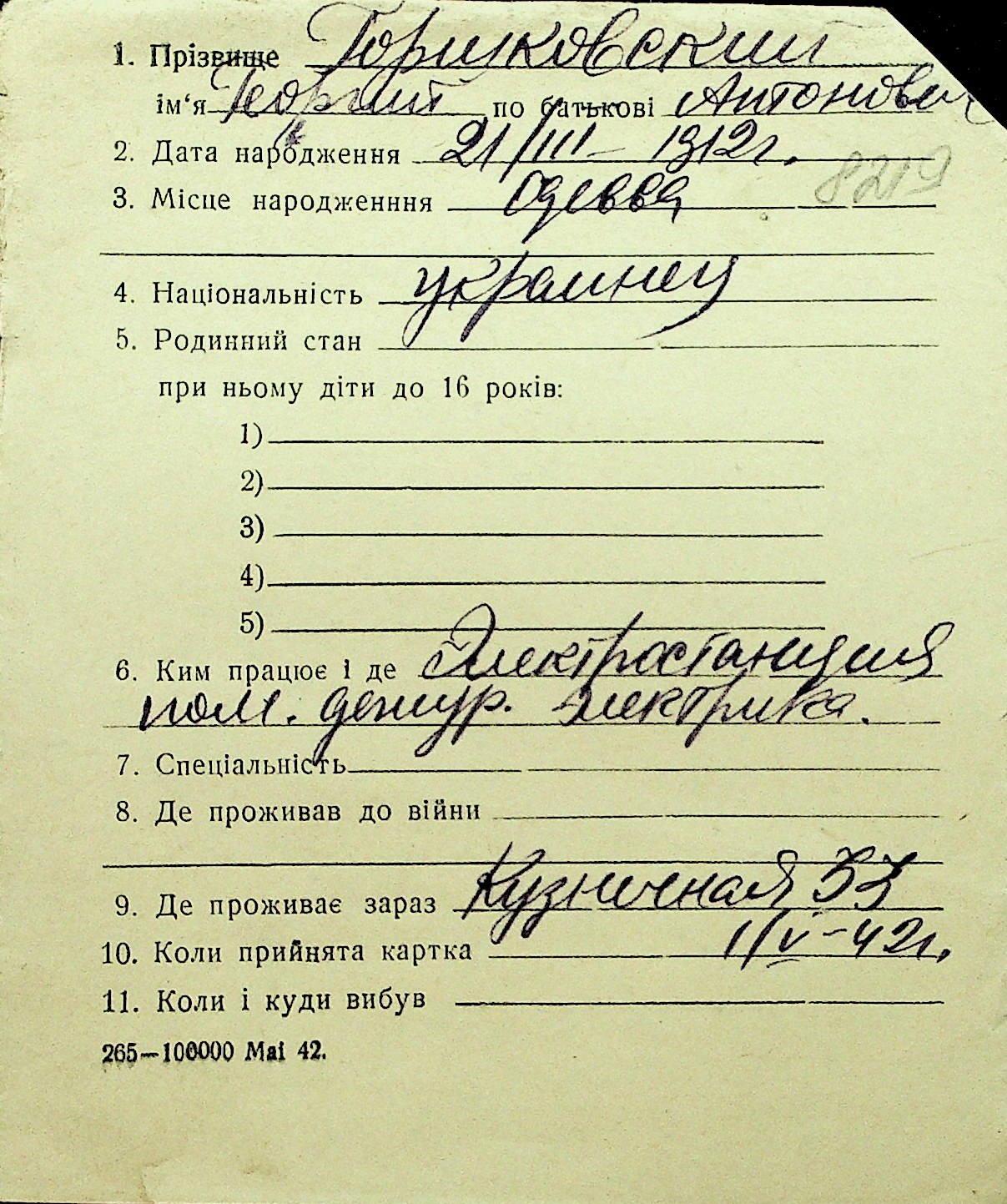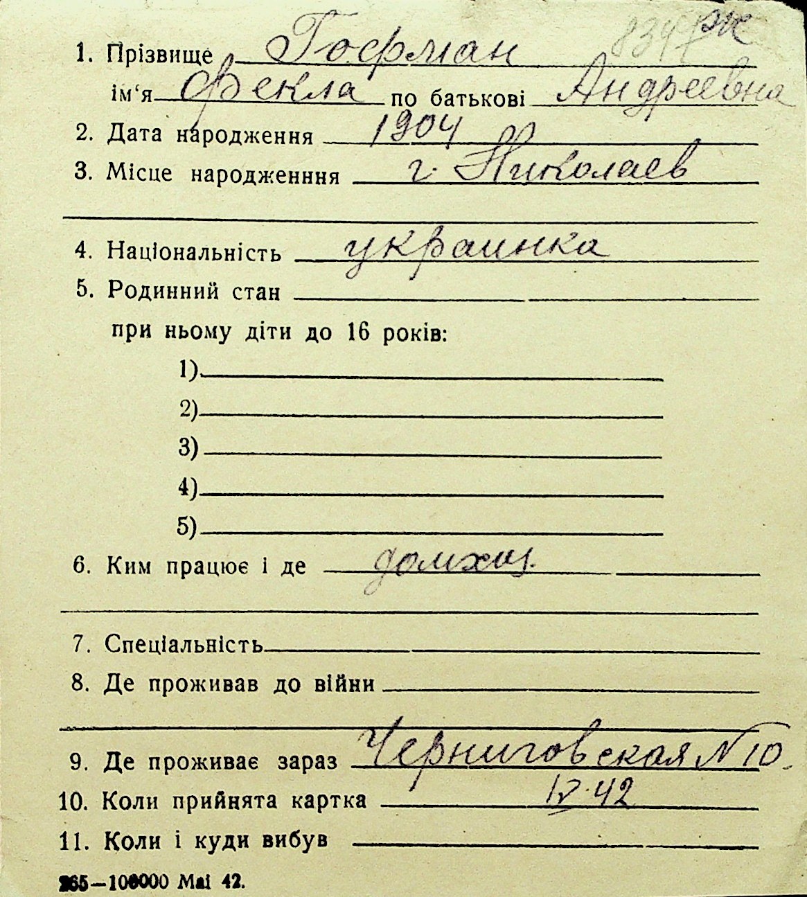 • • Перелік карток до фонду № Н-1016