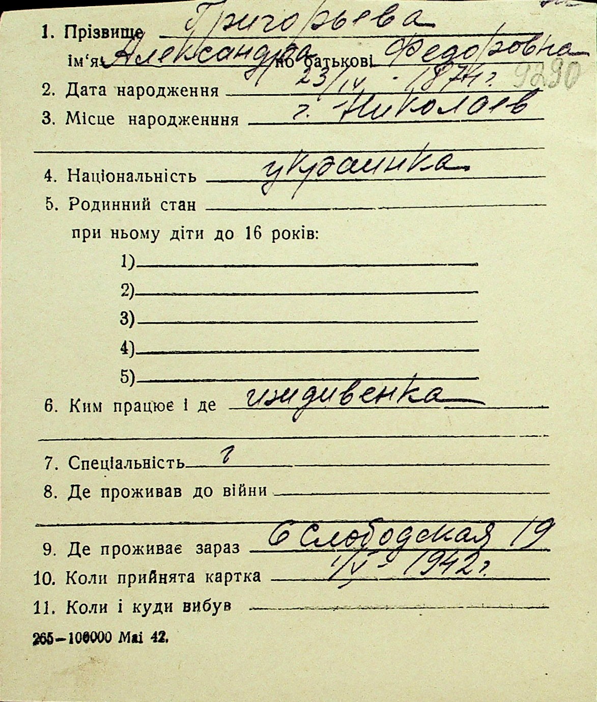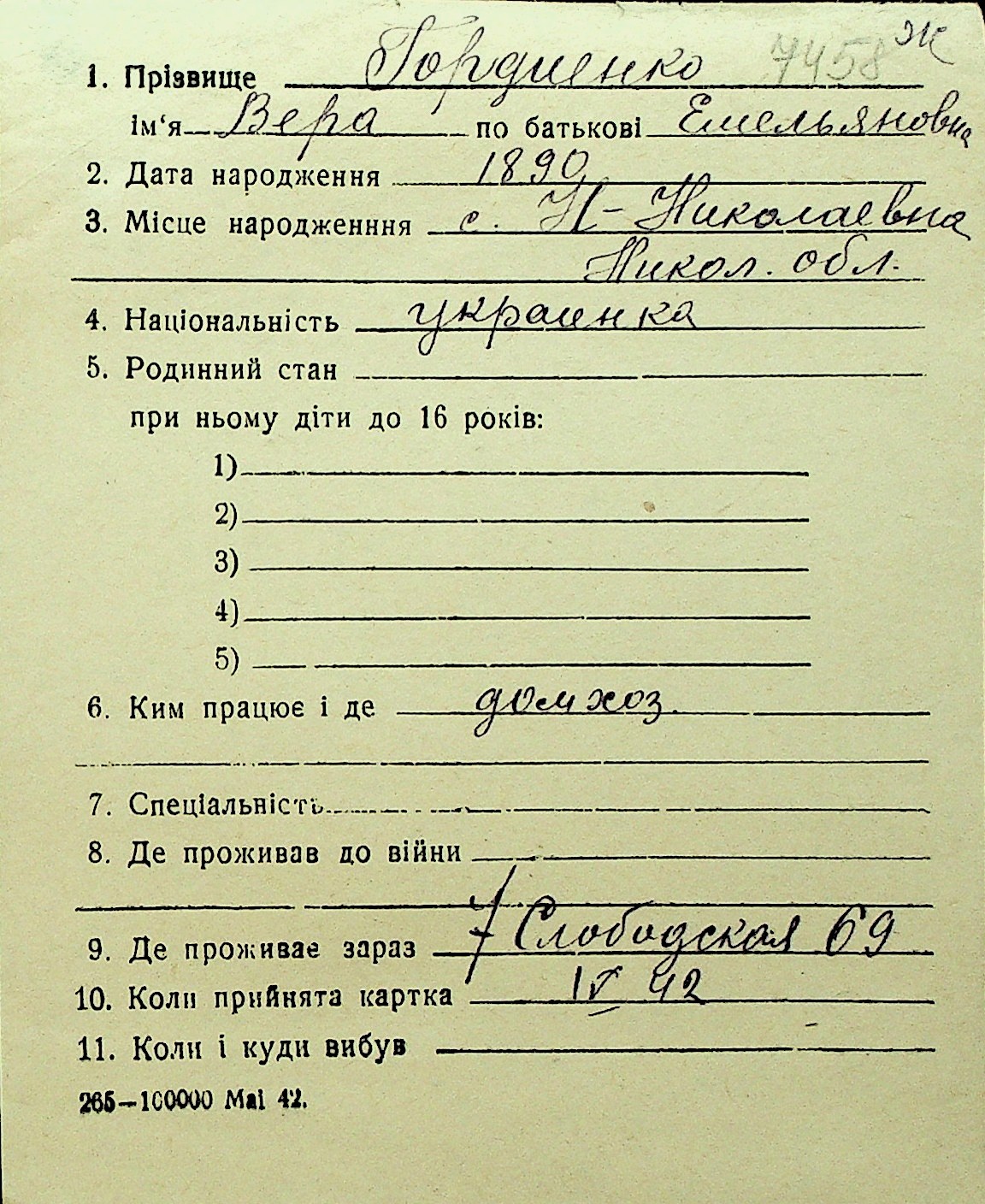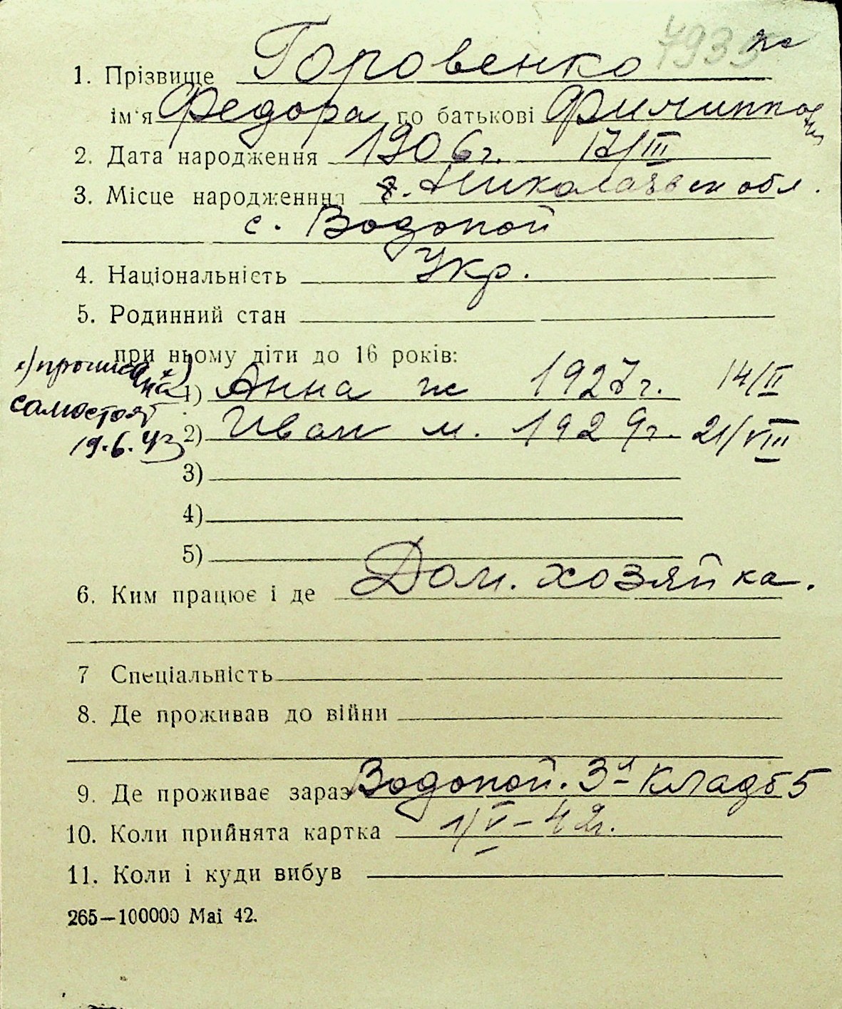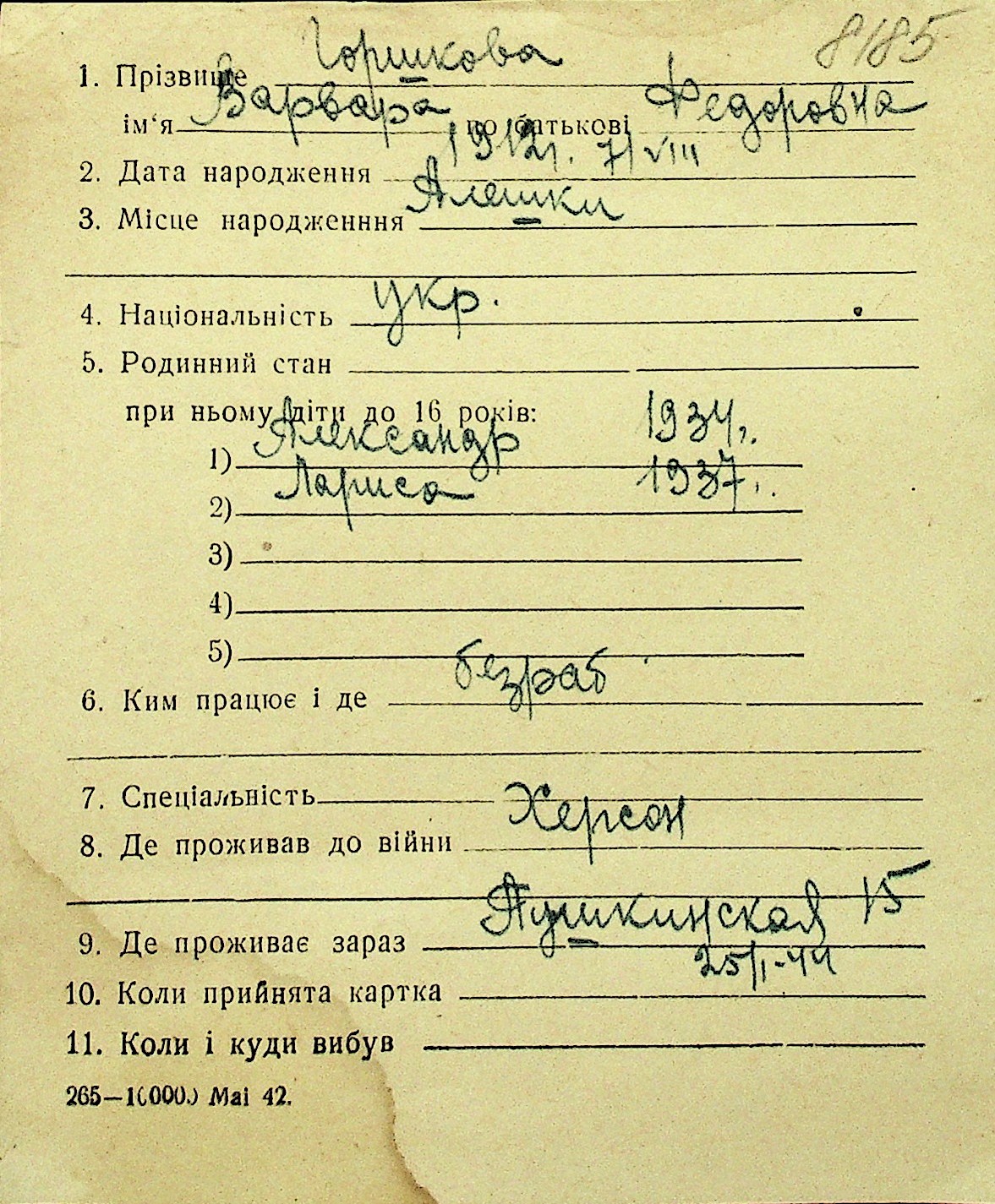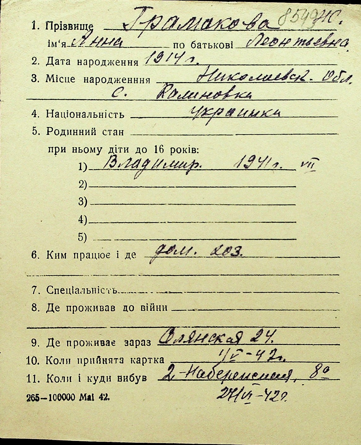 • • Перелік карток до фонду № Н-1016