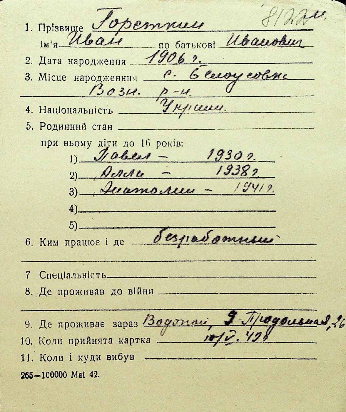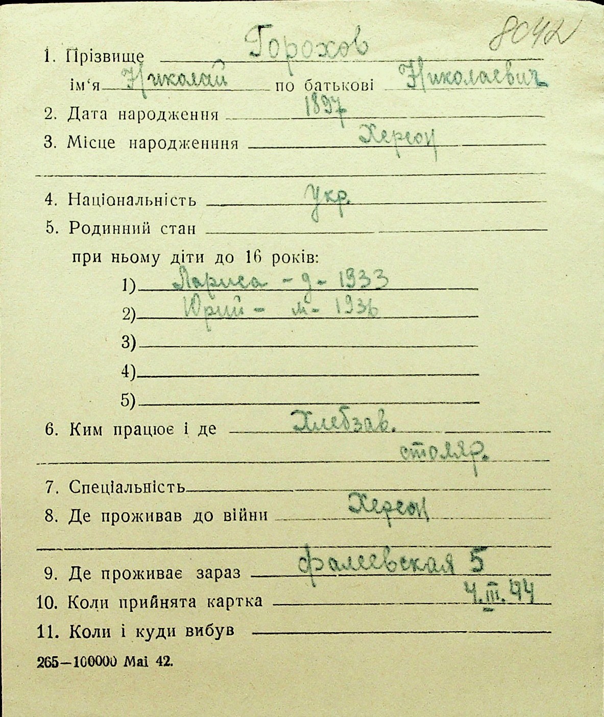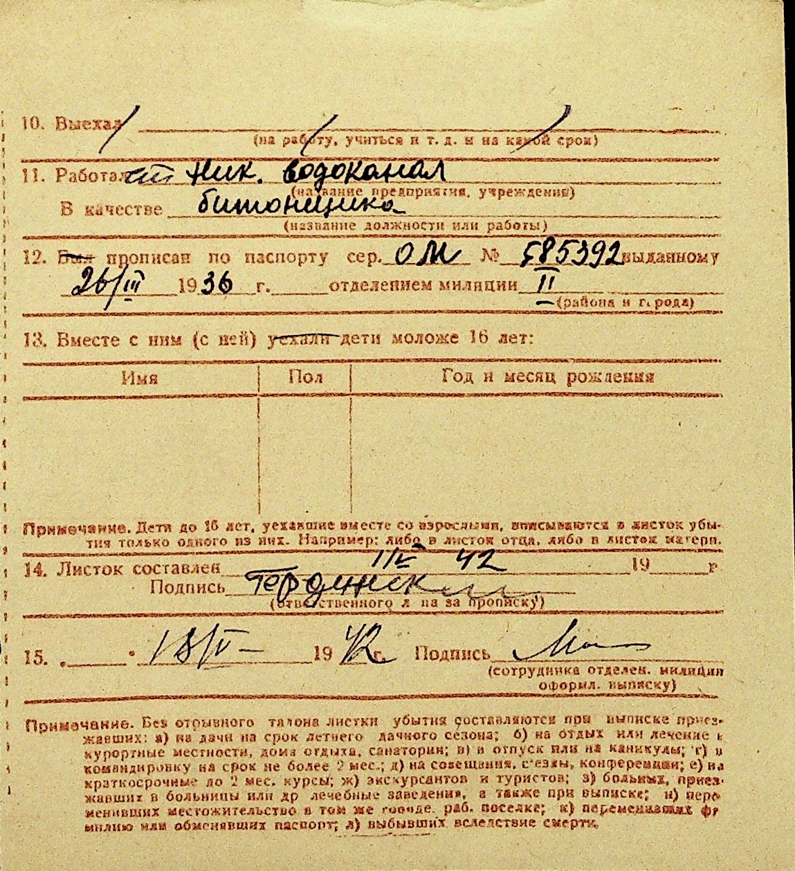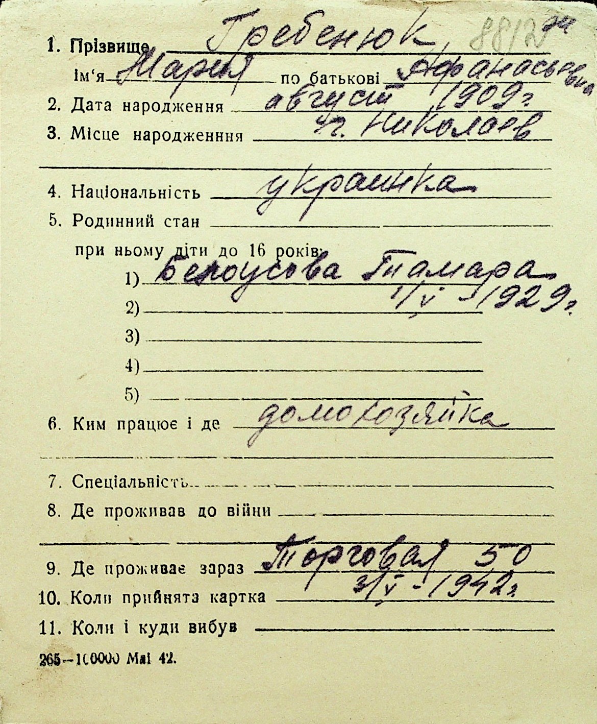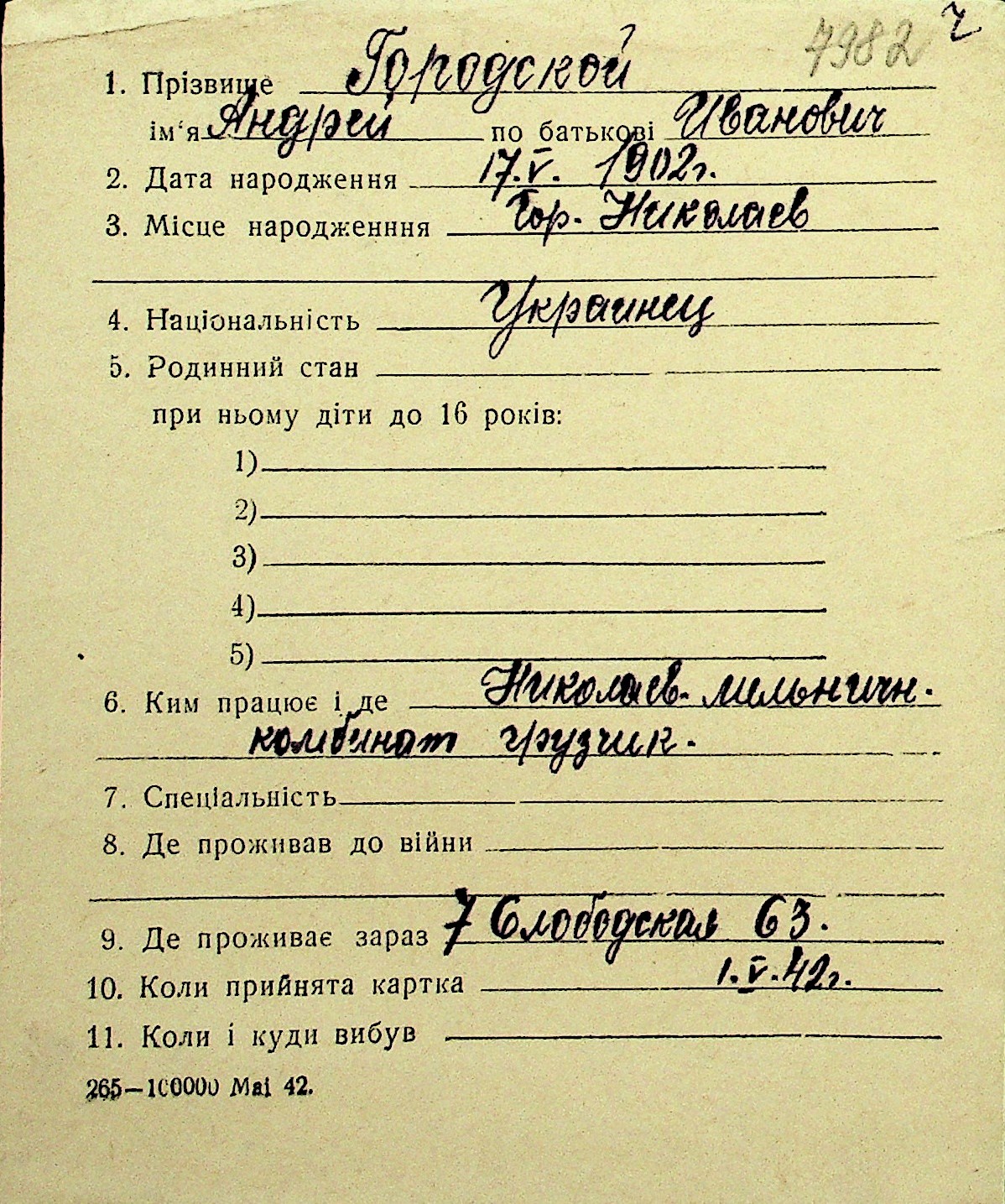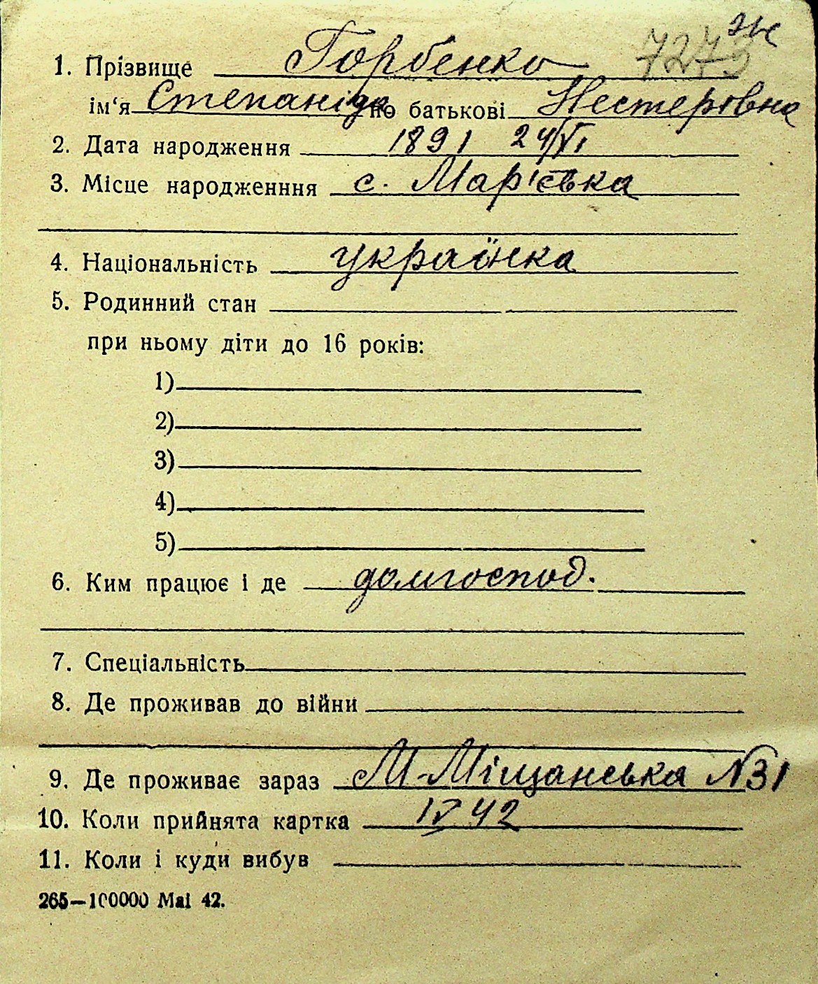 • • Перелік карток до фонду № Н-1016