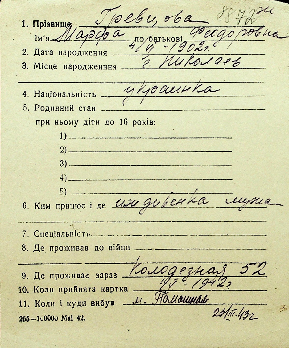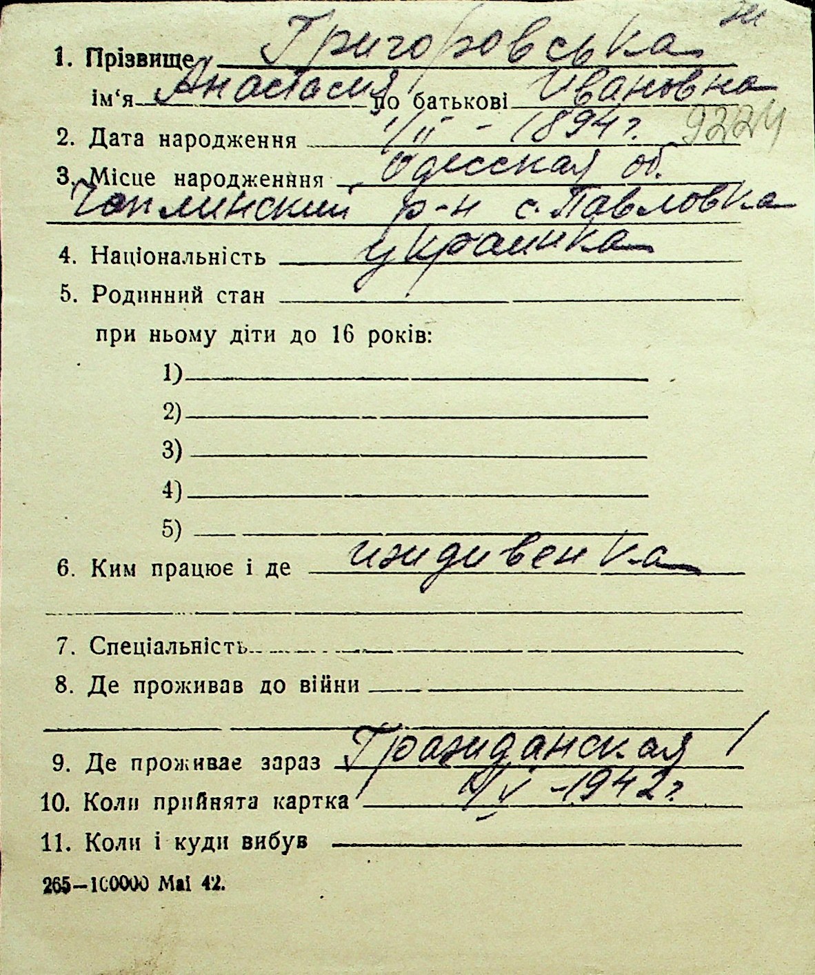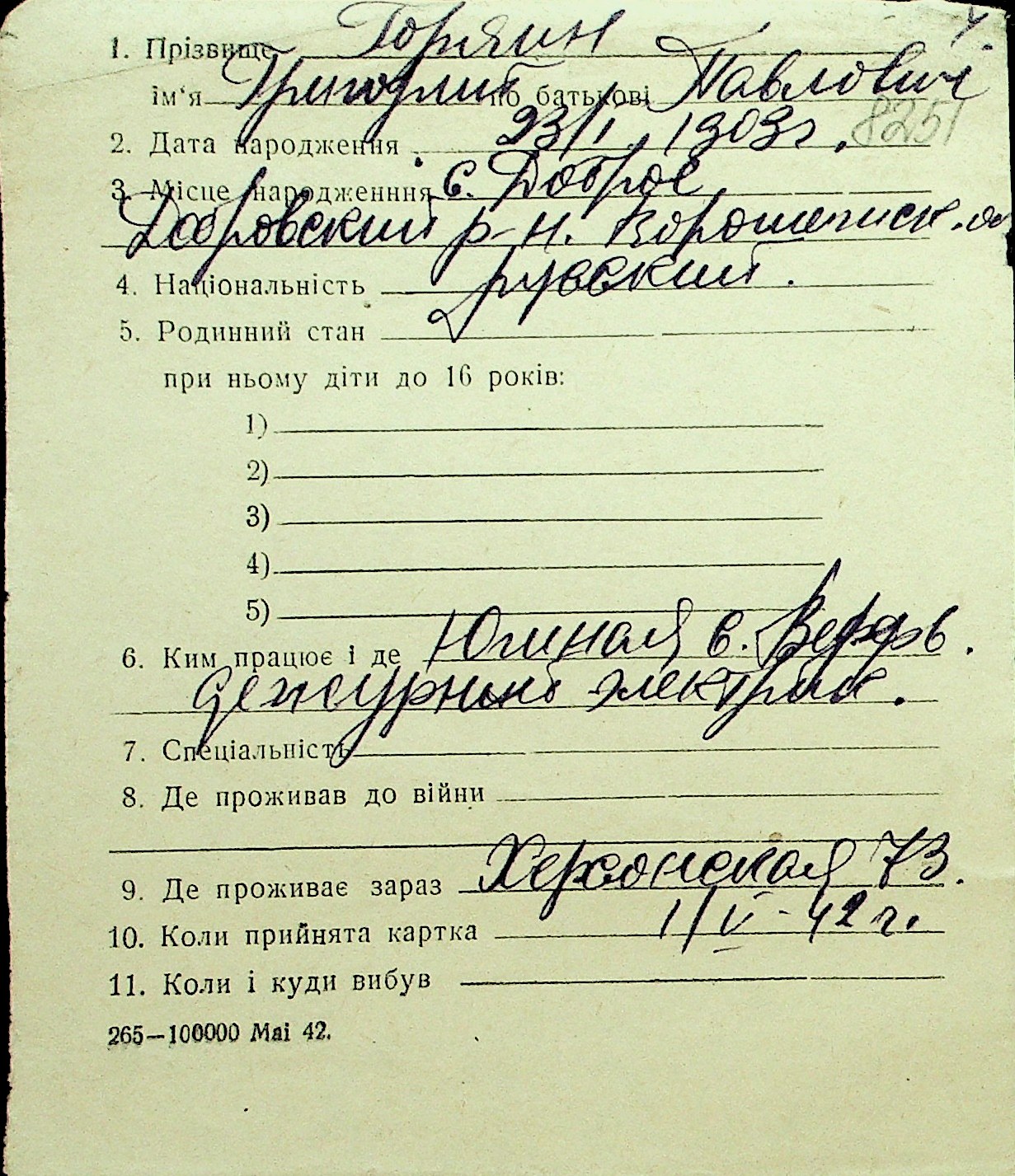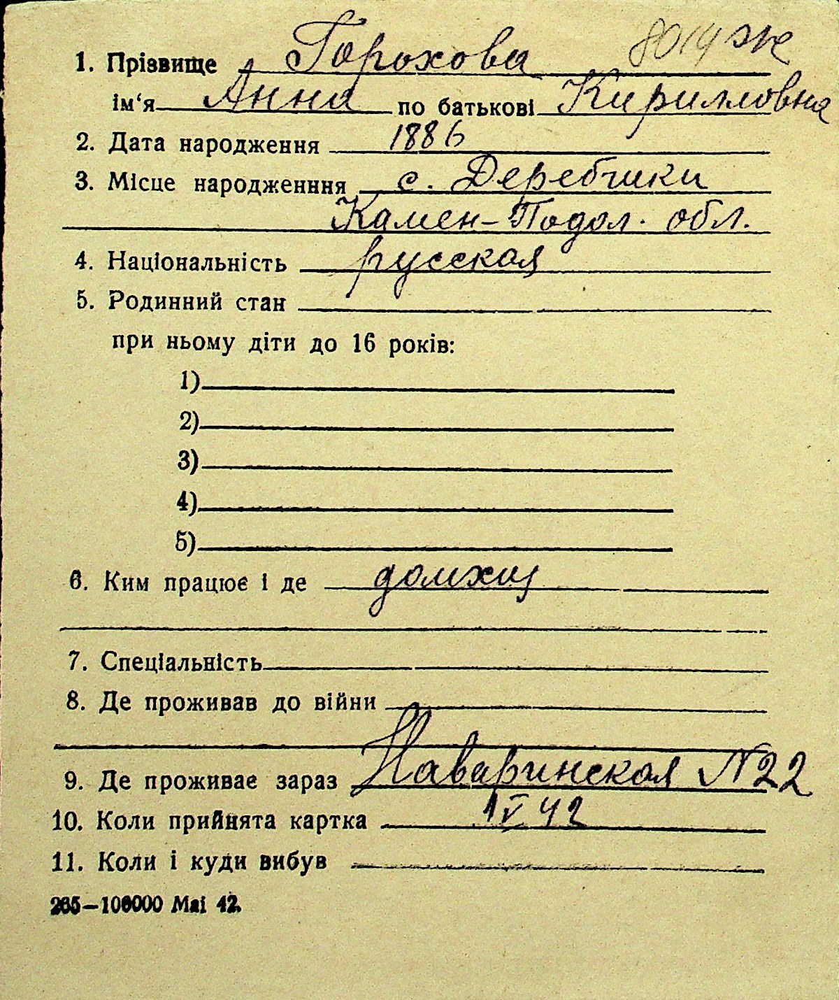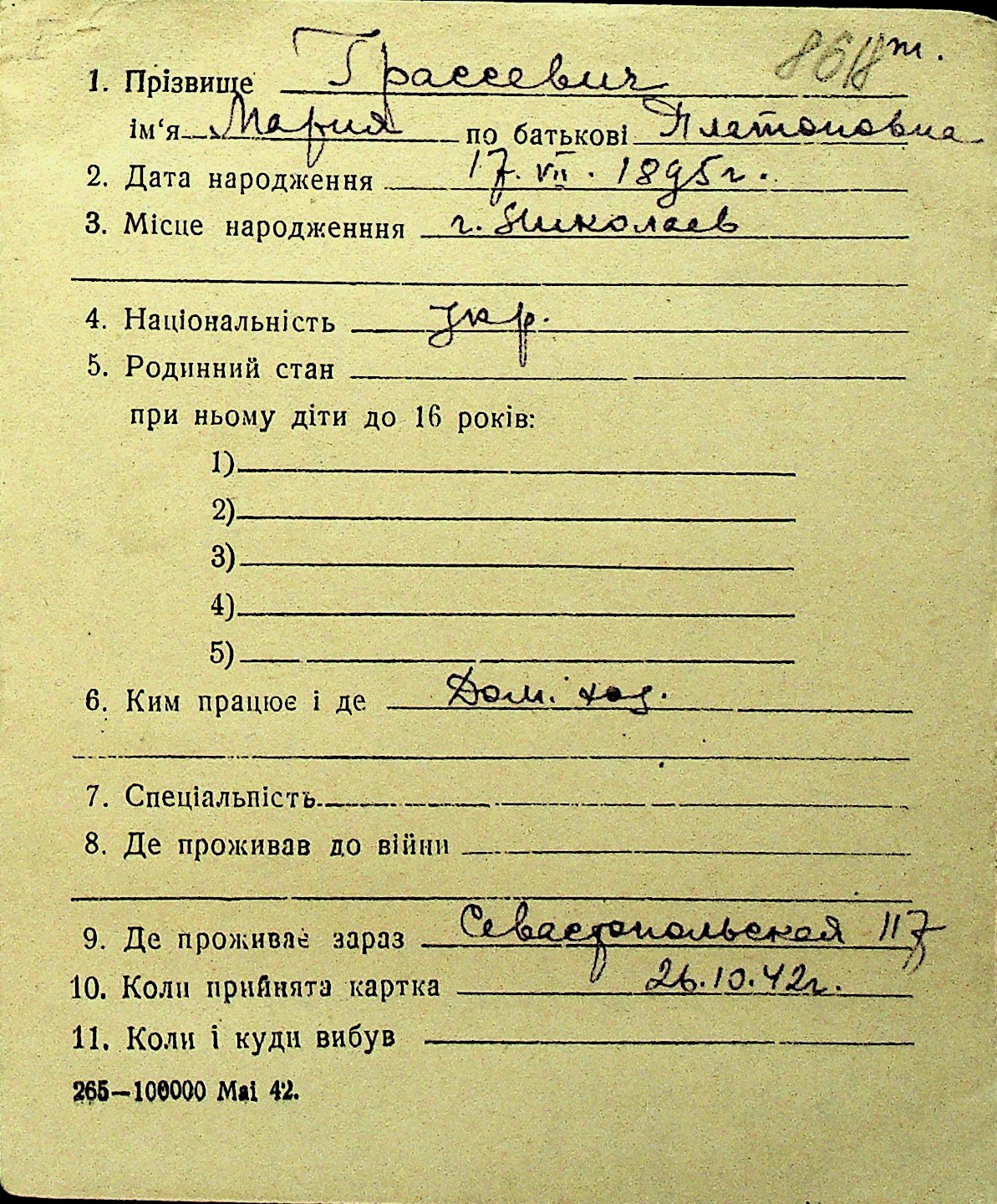 • • Перелік карток до фонду № Н-1016