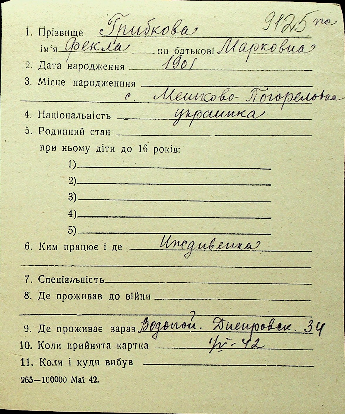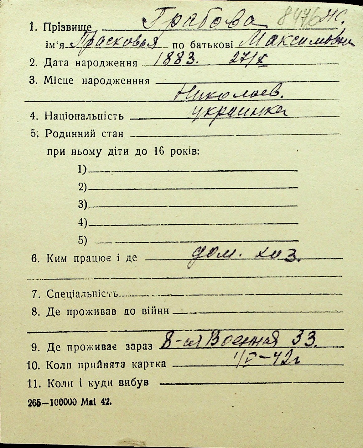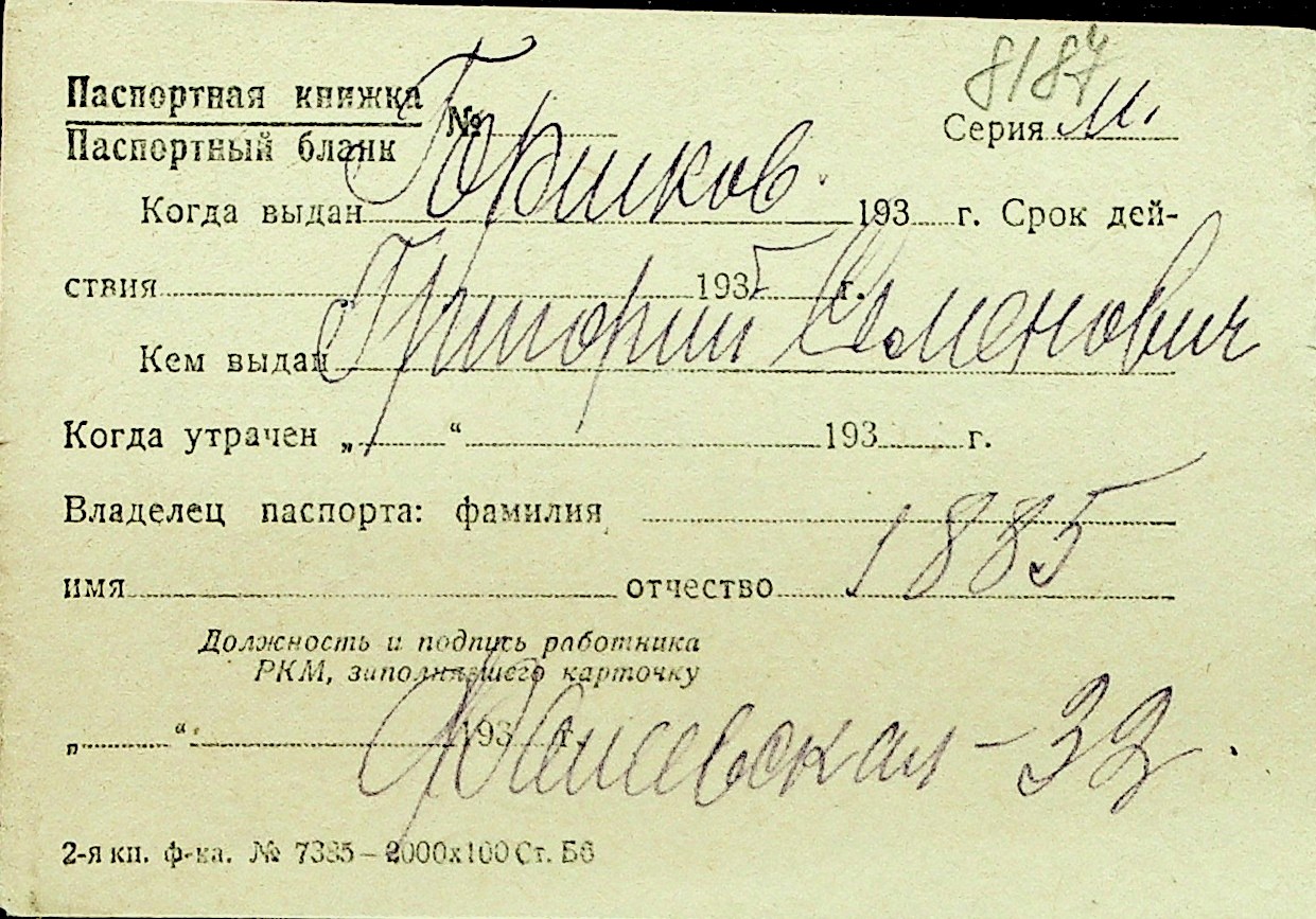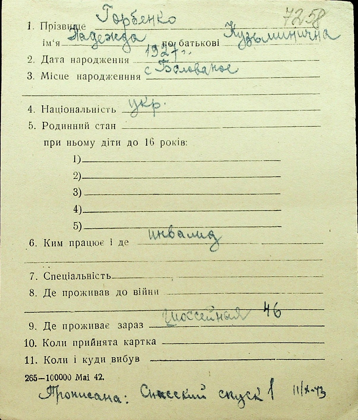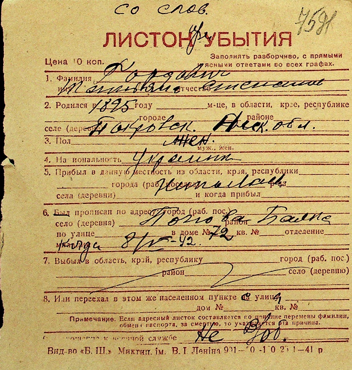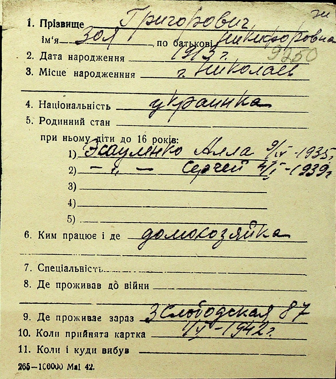 • • Перелік карток до фонду № Н-1016