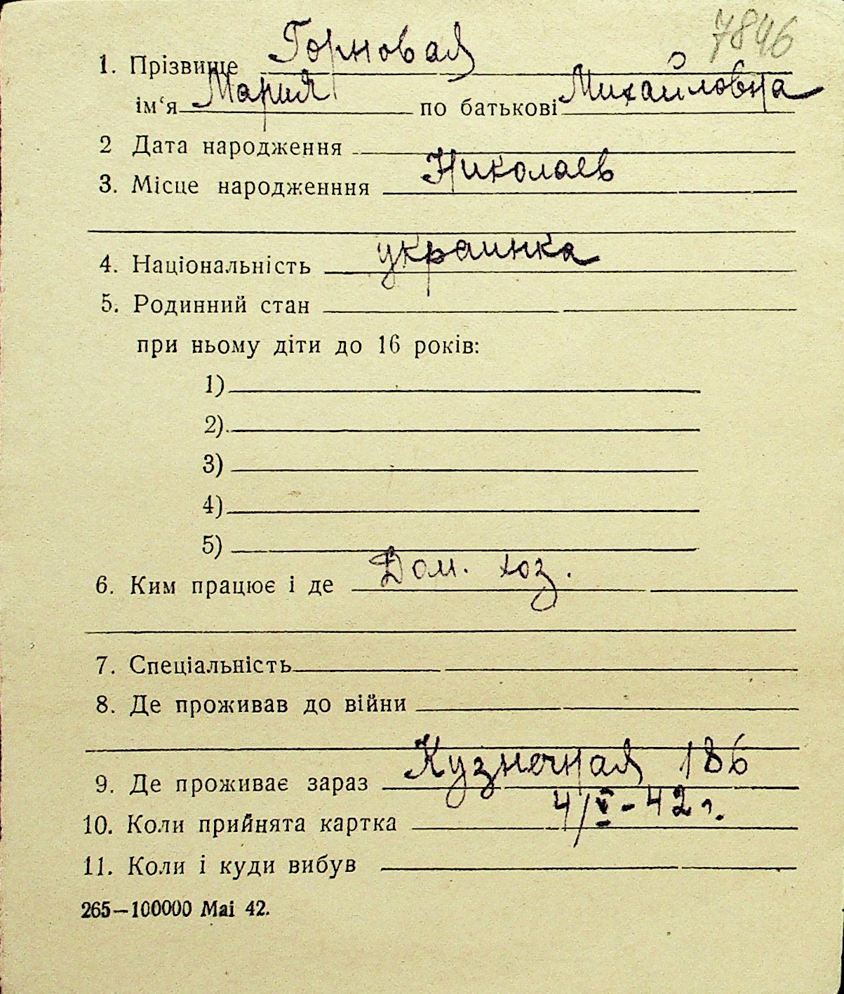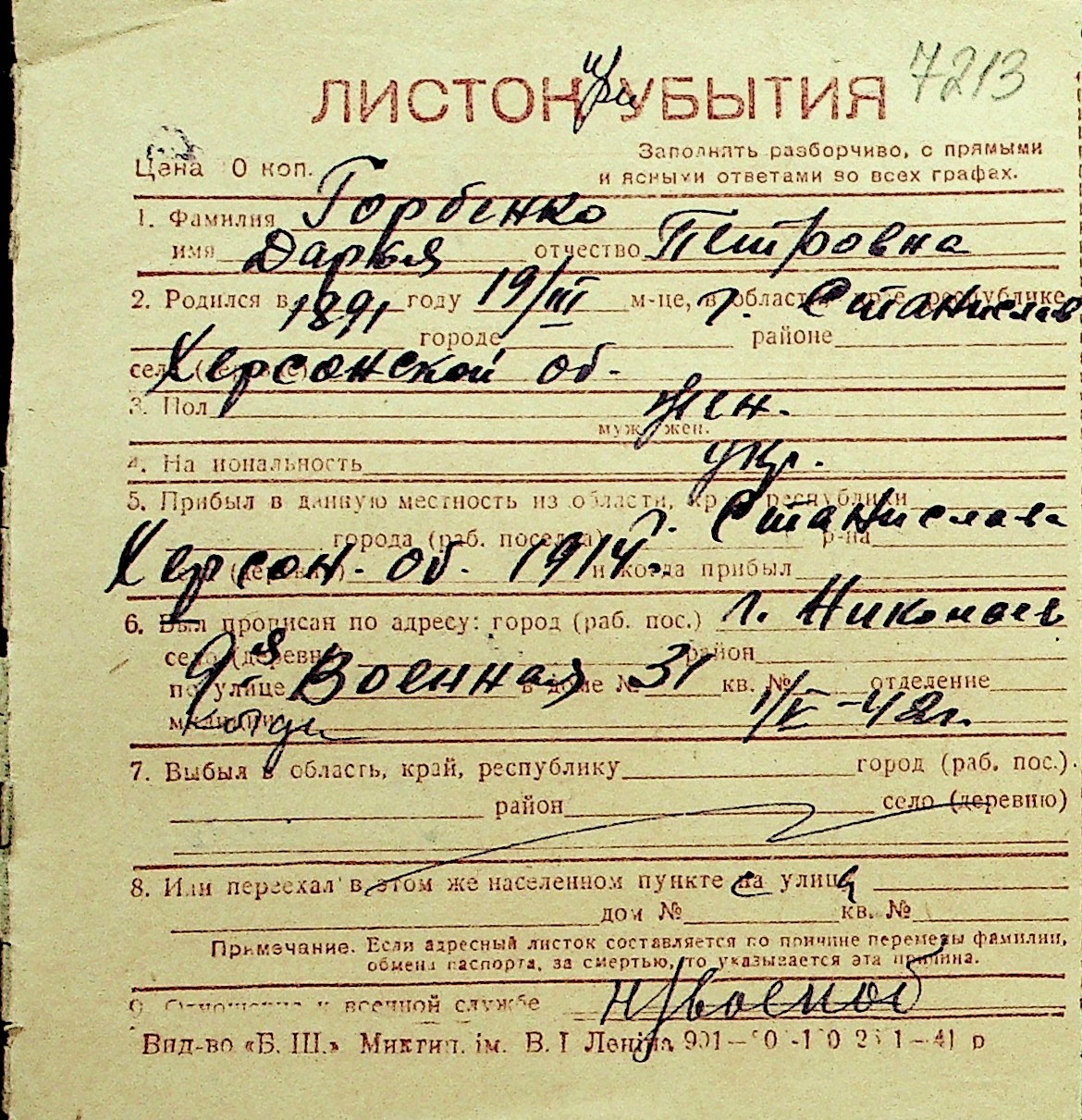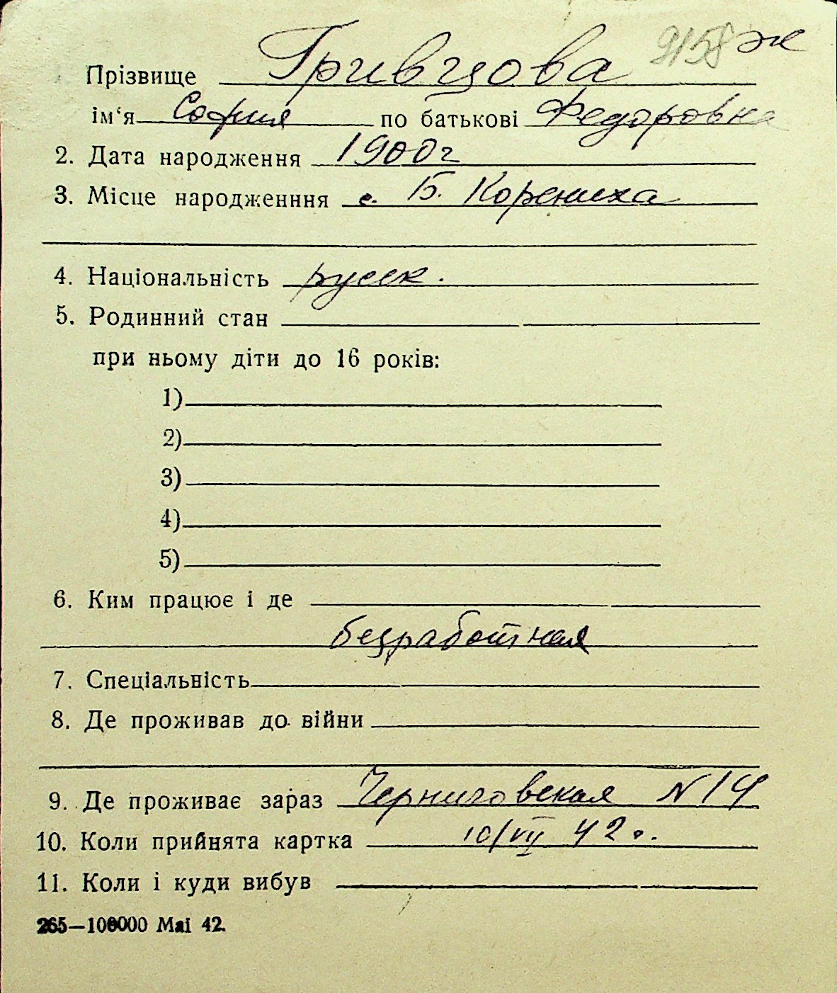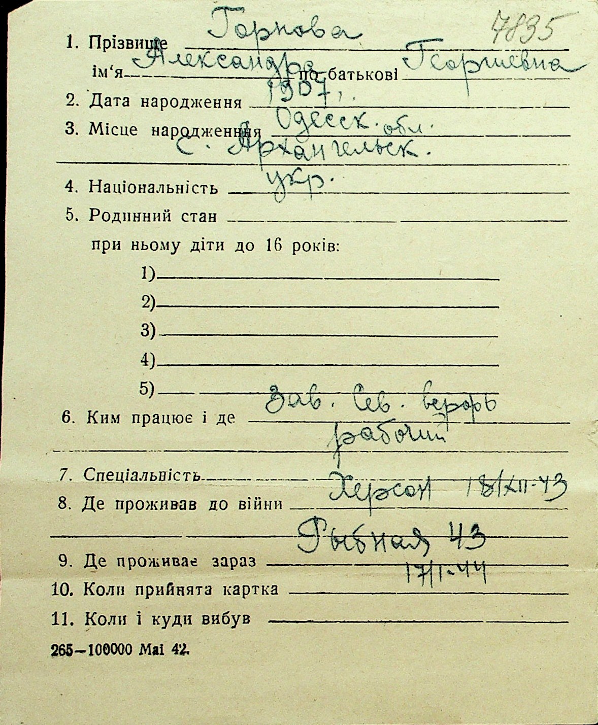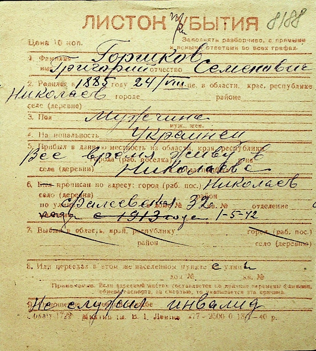 • • Перелік карток до фонду № Н-1016