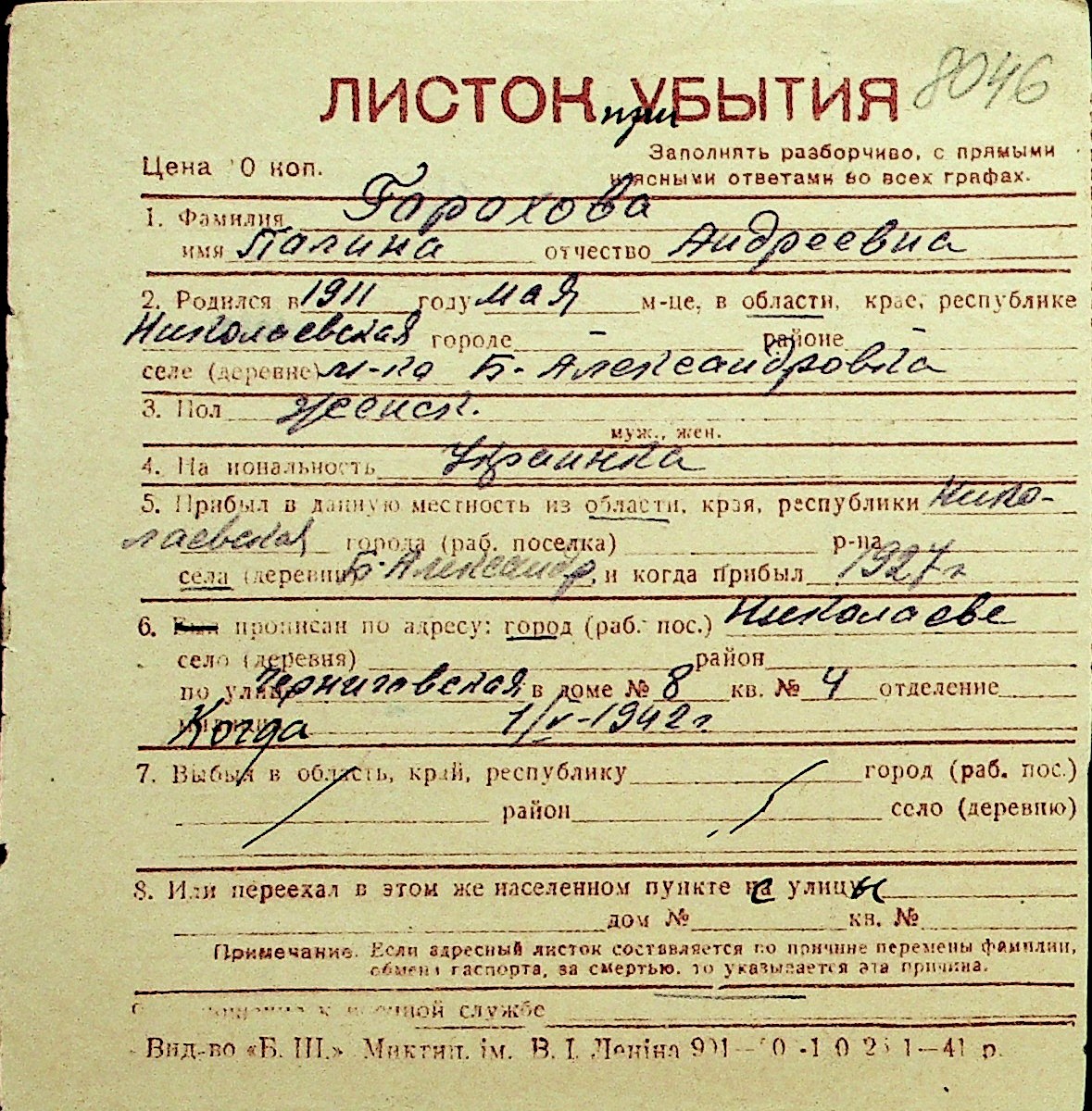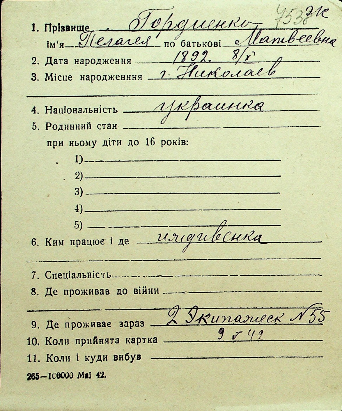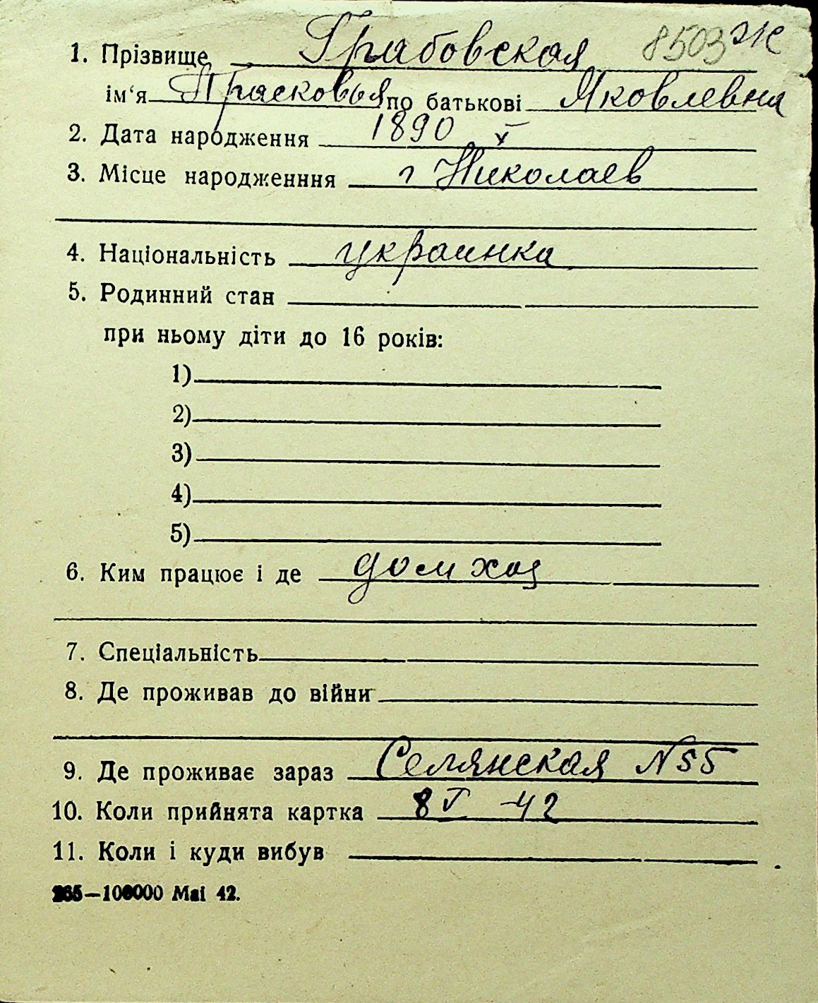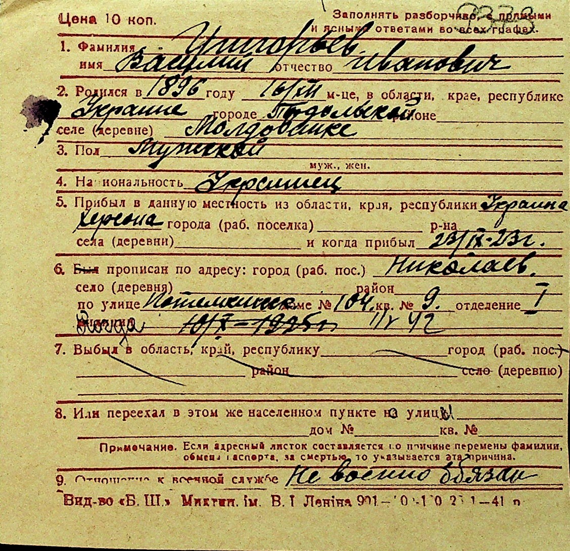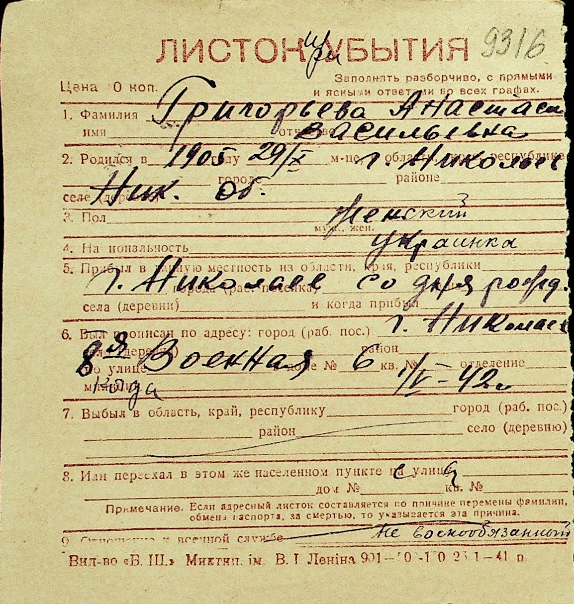 • • Перелік карток до фонду № Н-1016