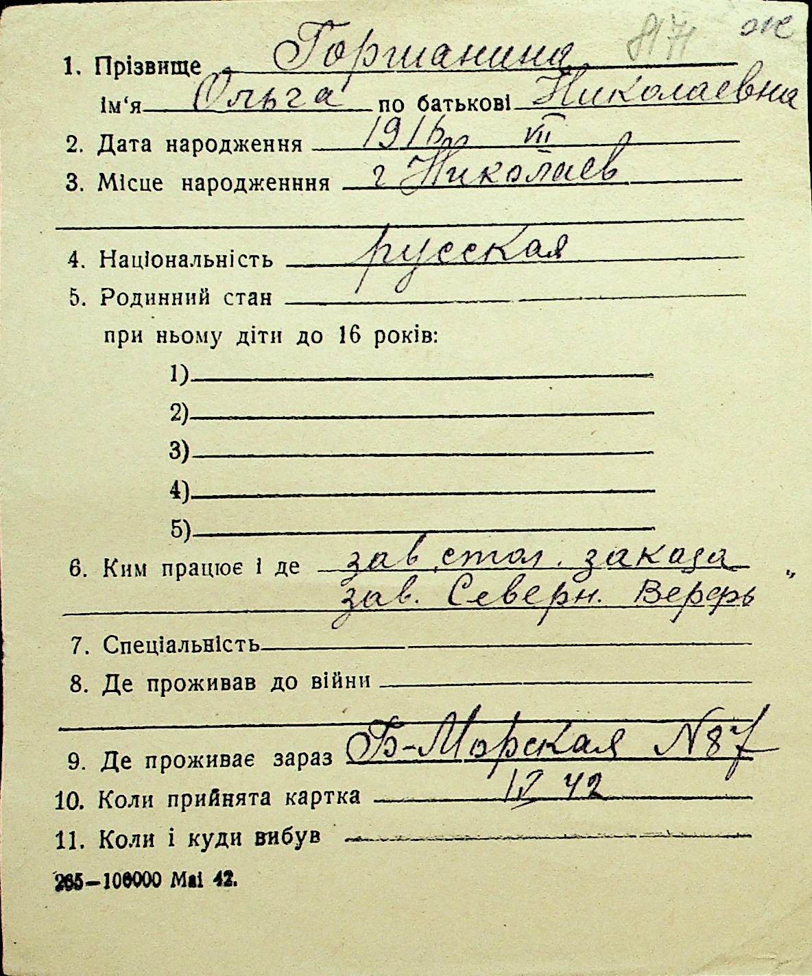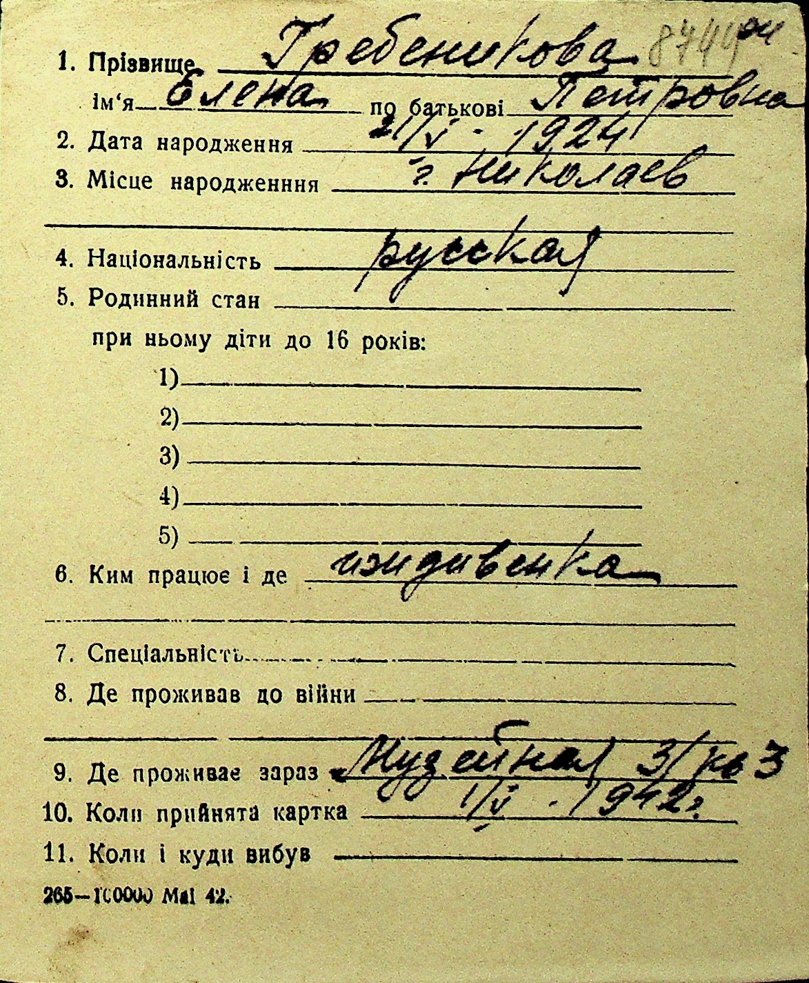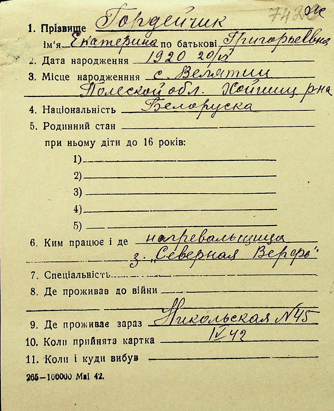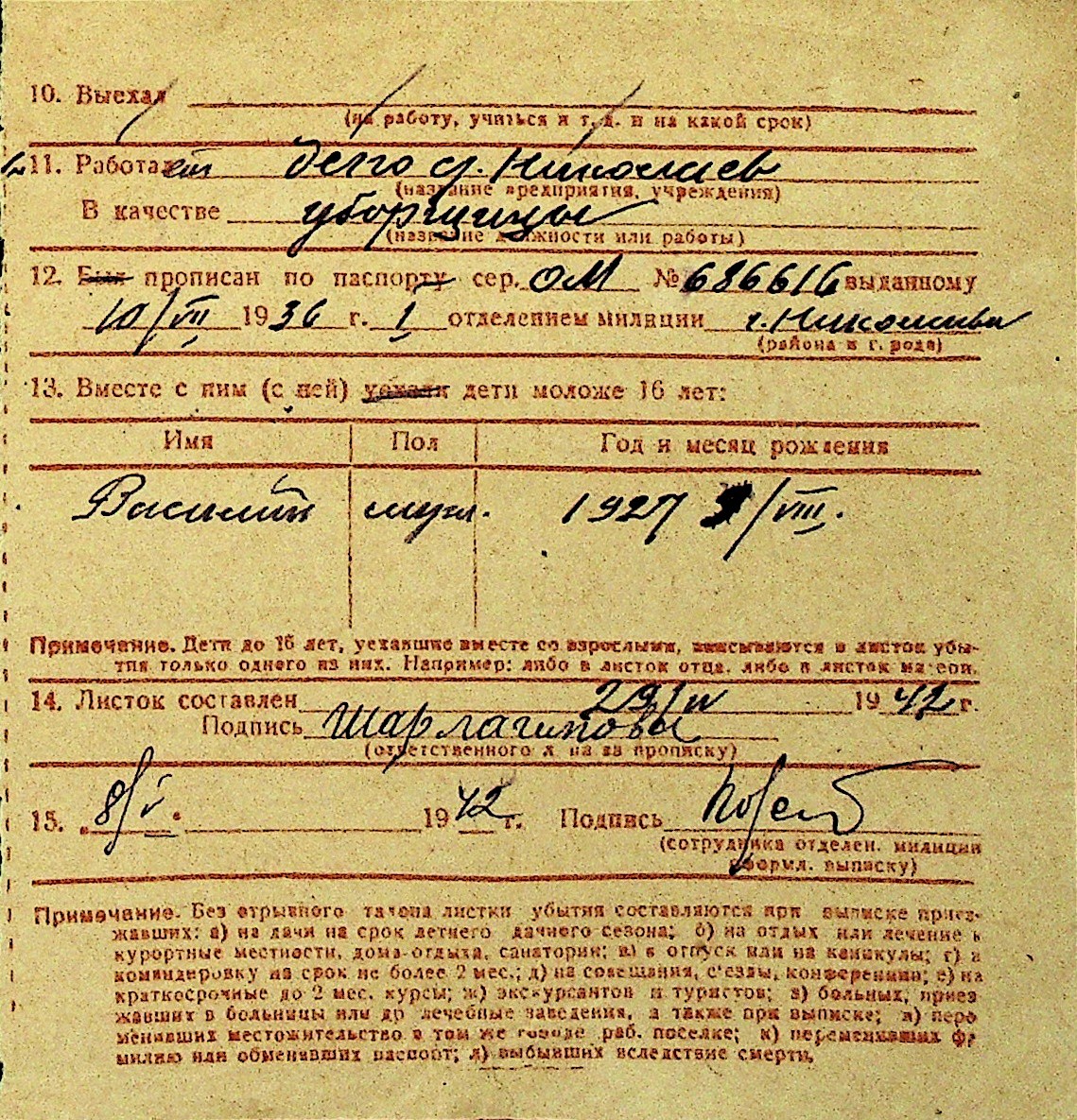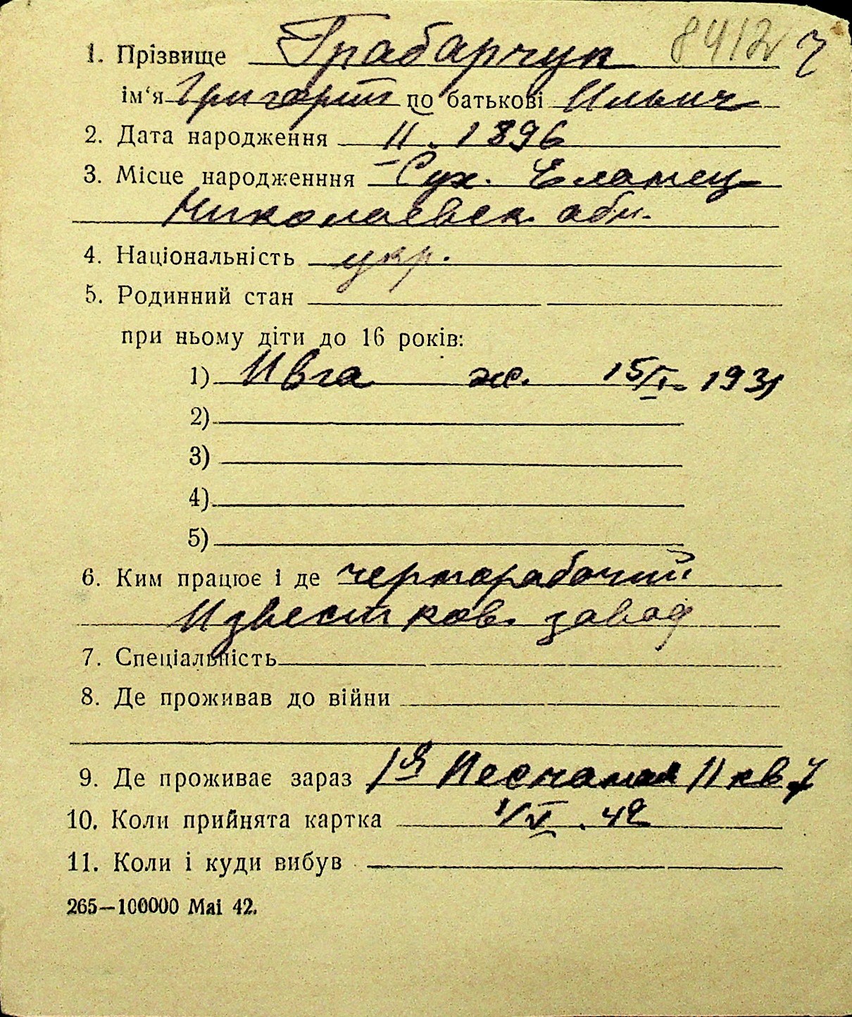 • • Перелік карток до фонду № Н-1016