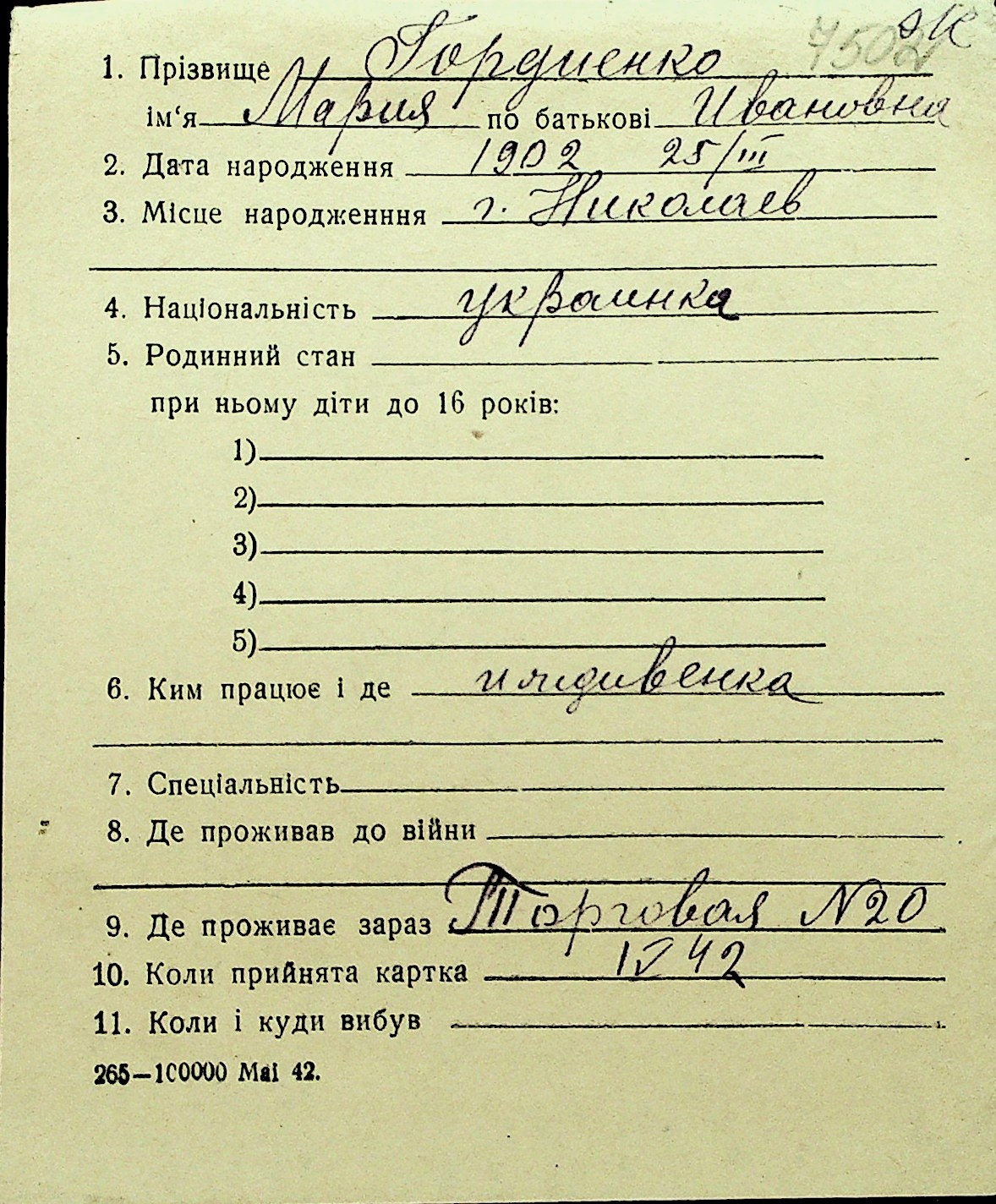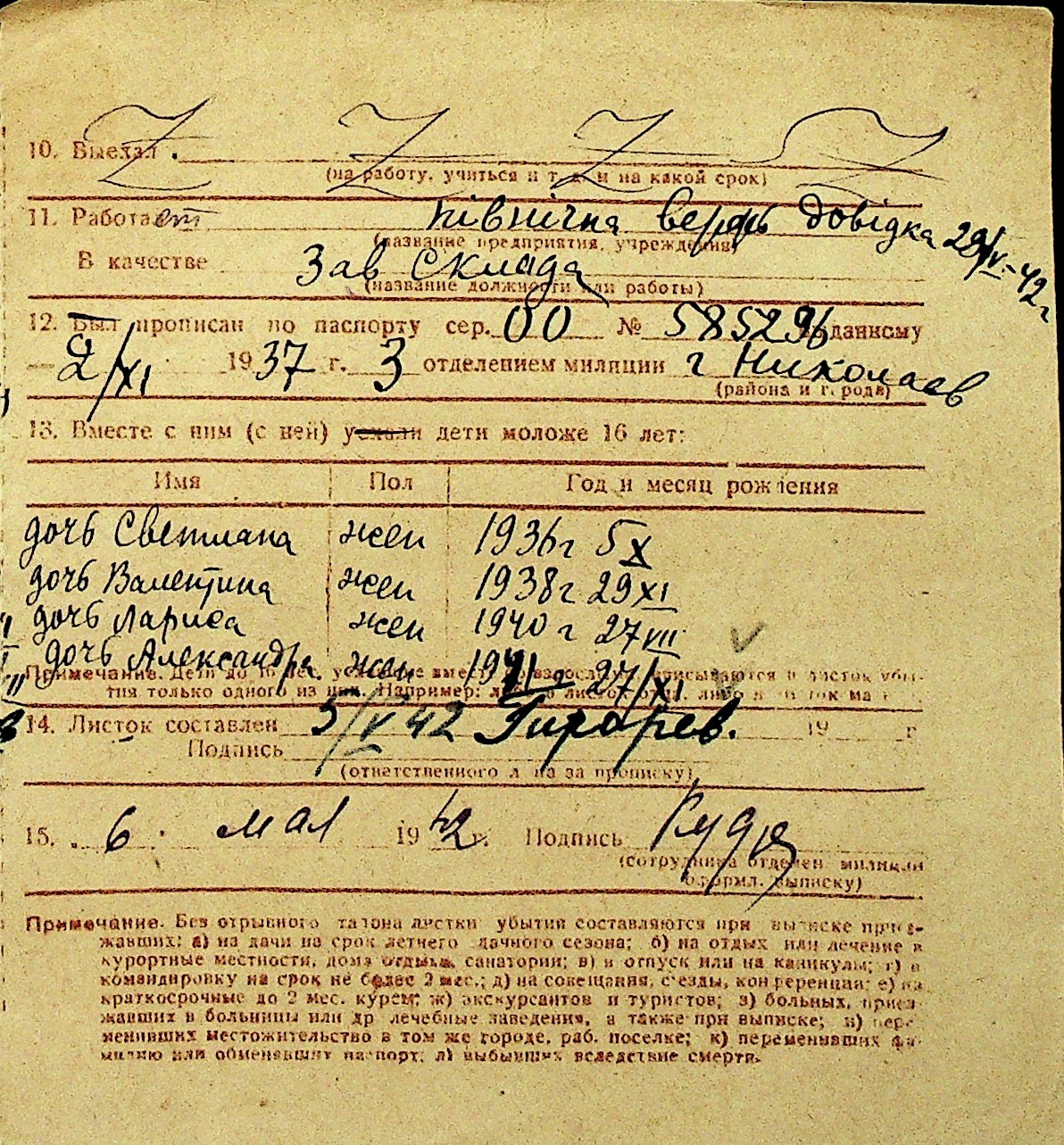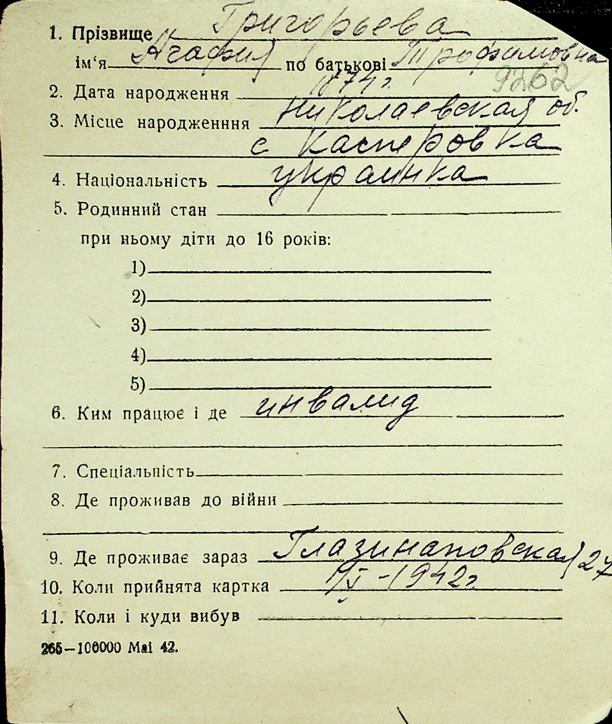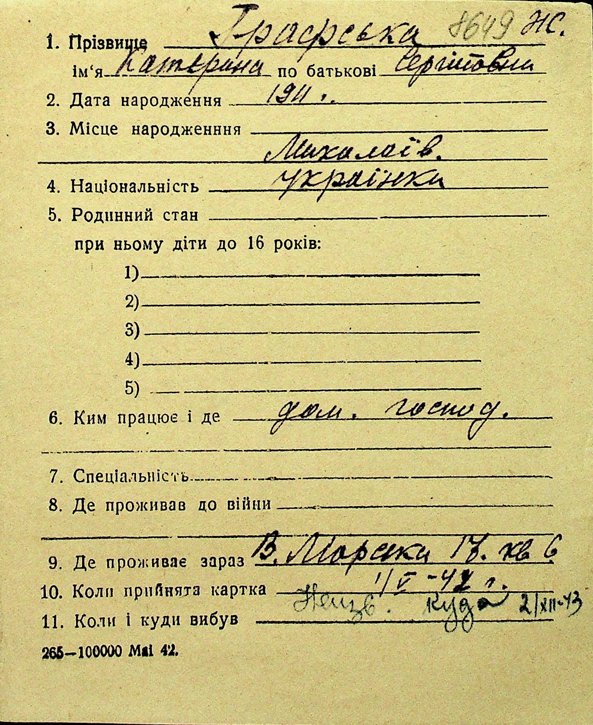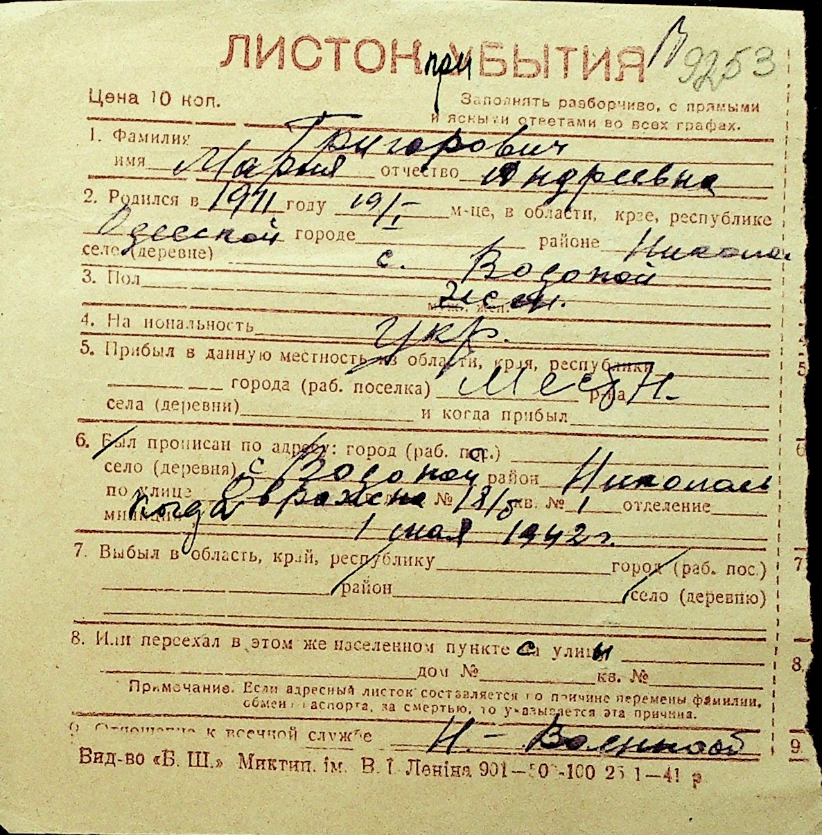 • • Перелік карток до фонду № Н-1016