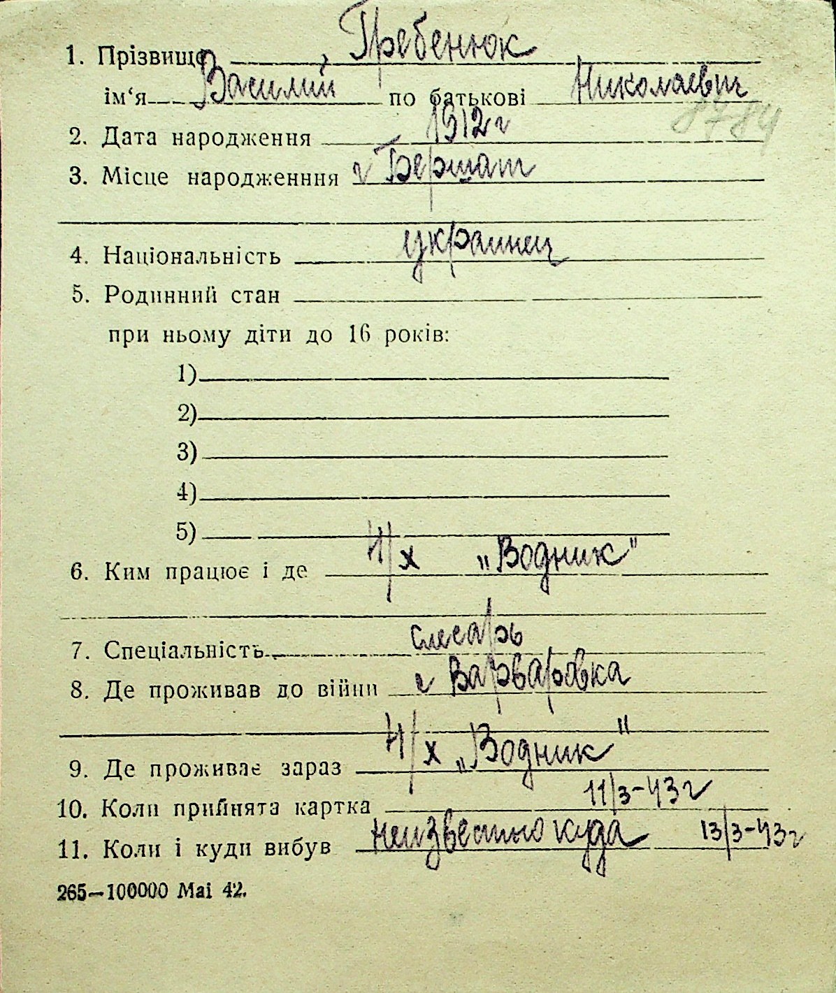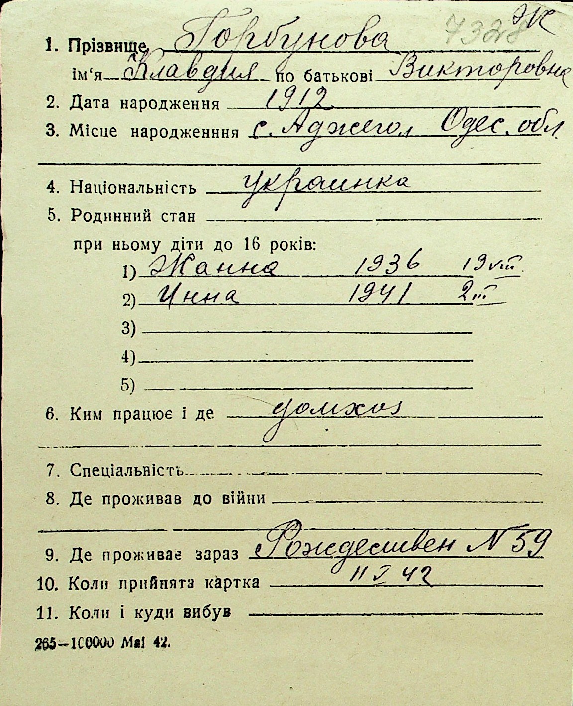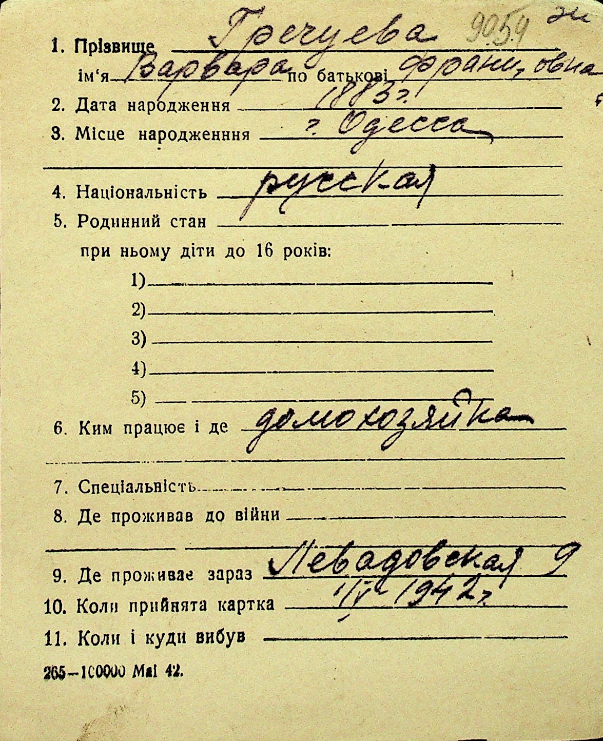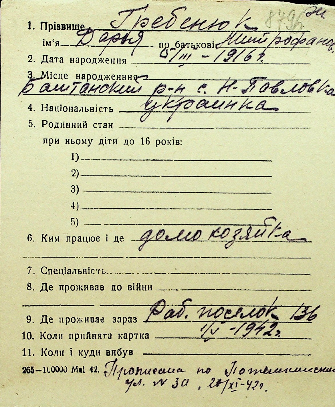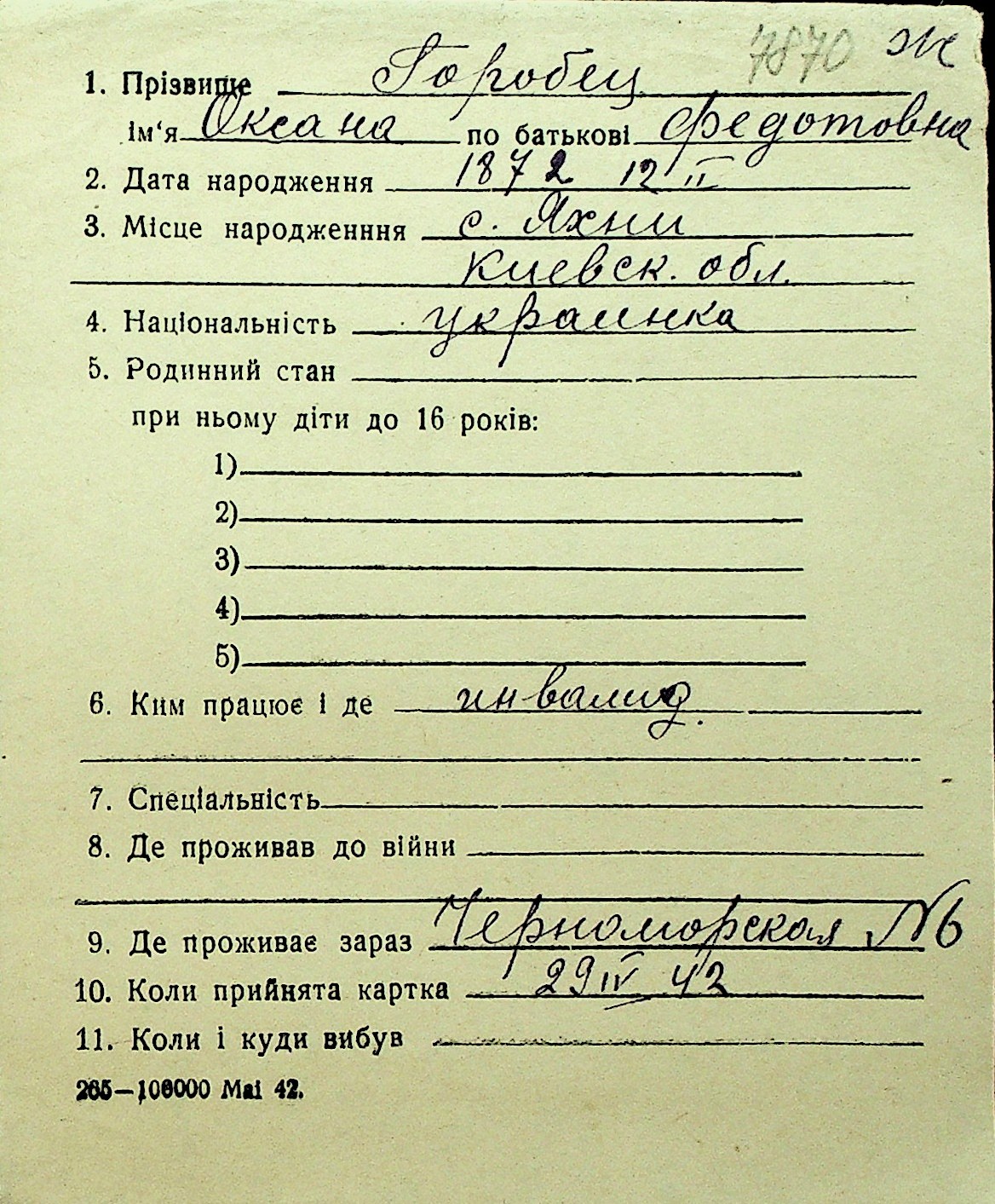 • • Перелік карток до фонду № Н-1016