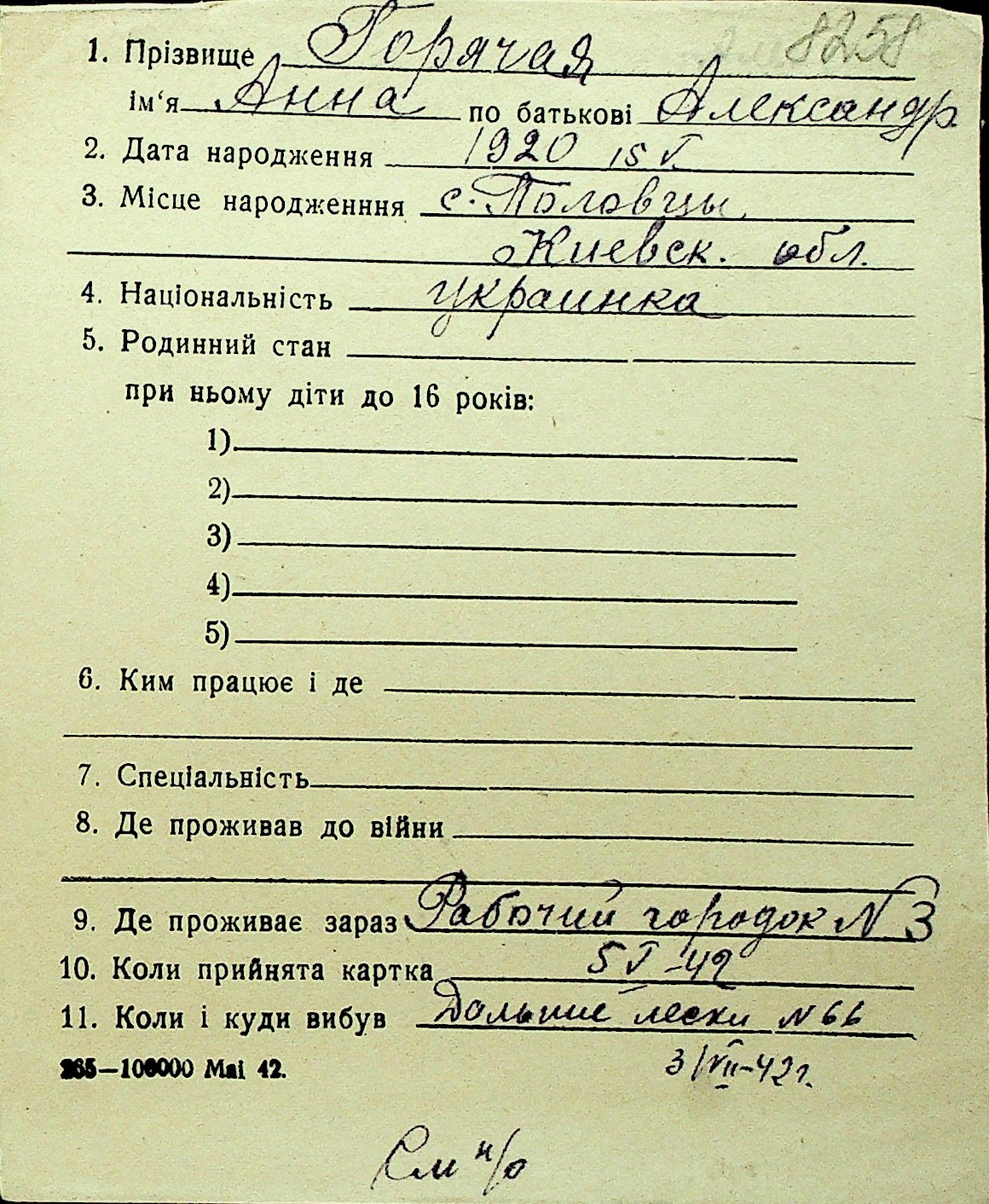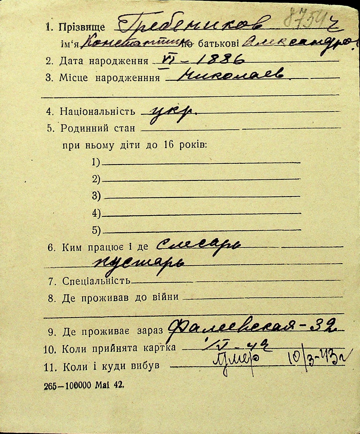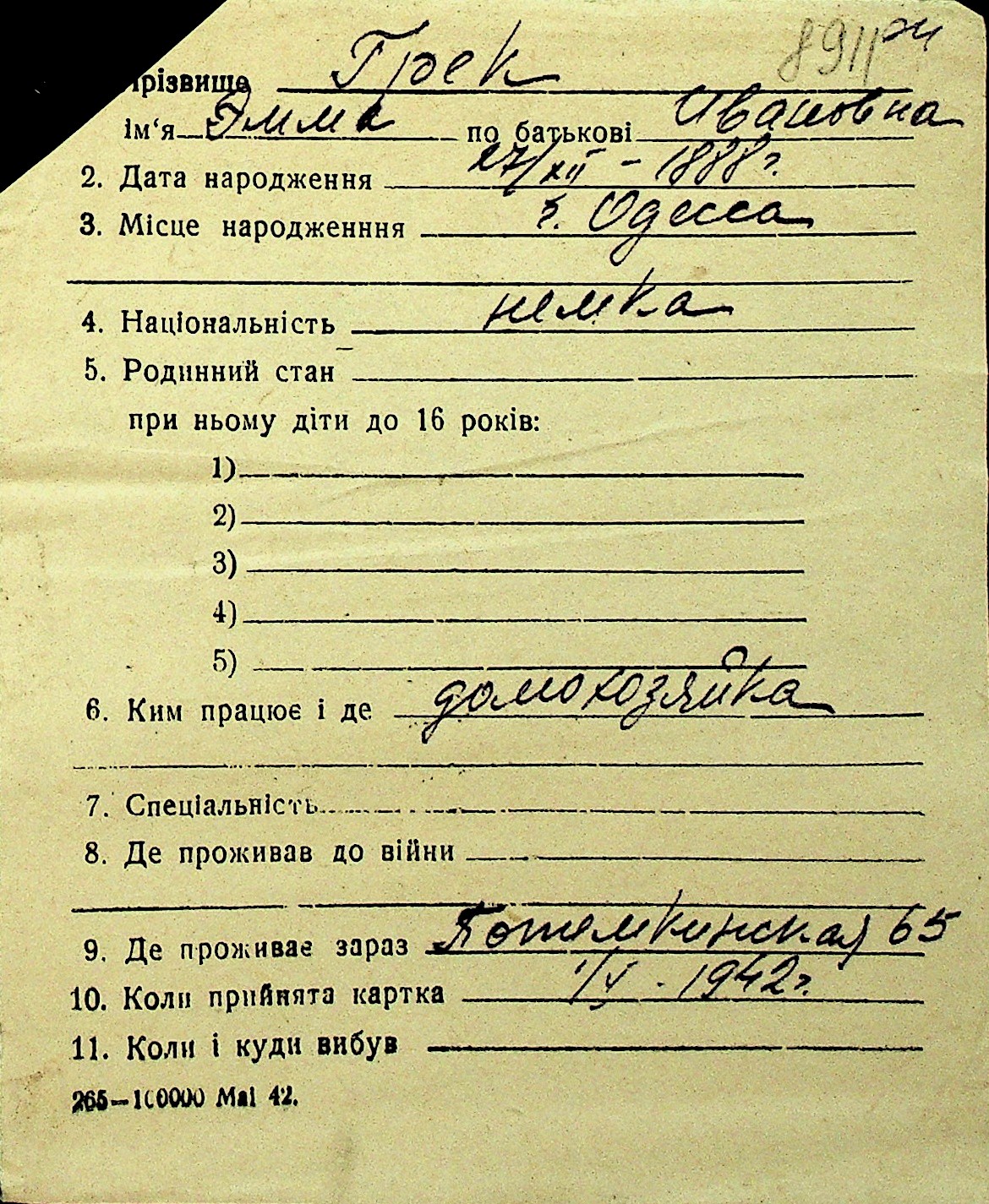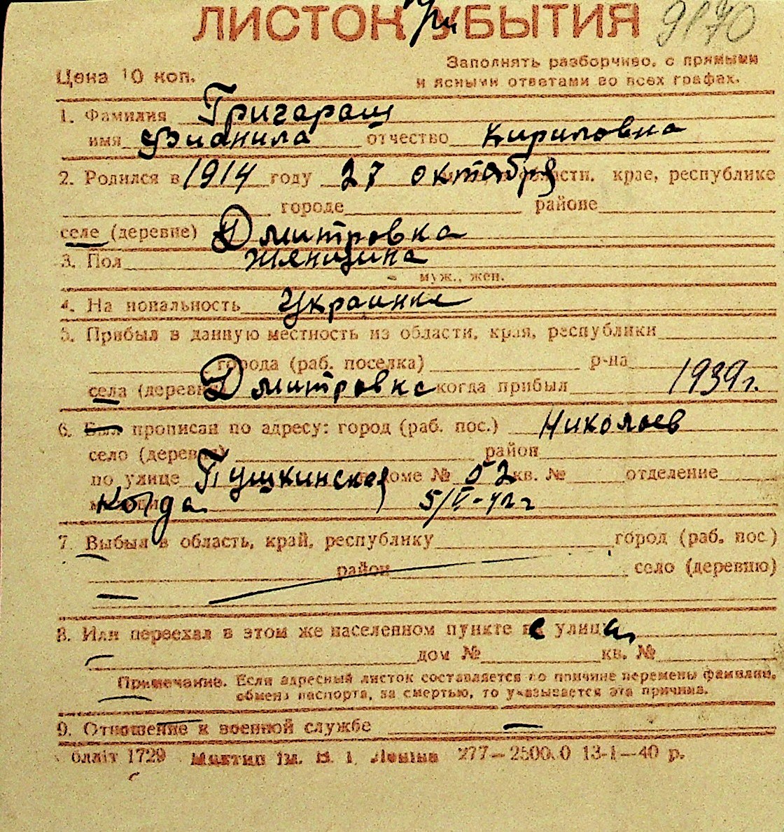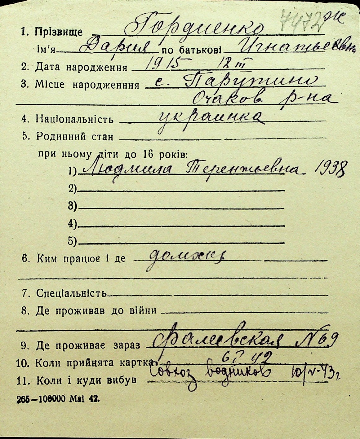 • • Перелік карток до фонду № Н-1016