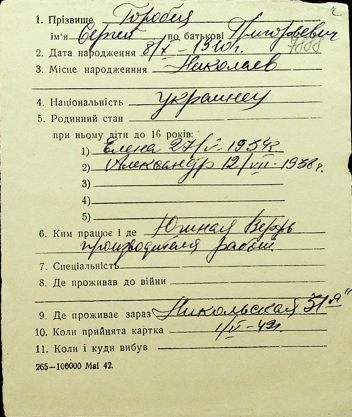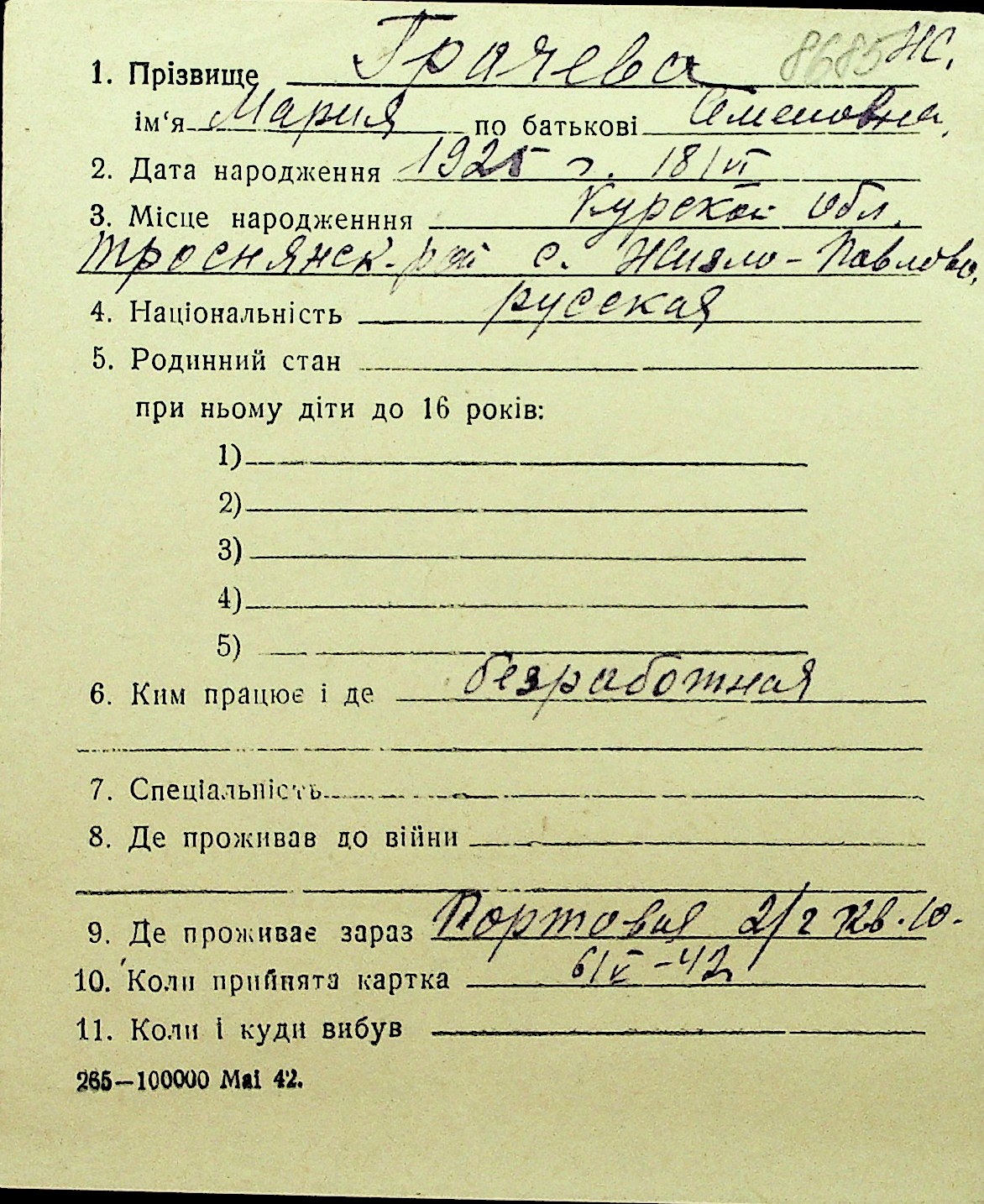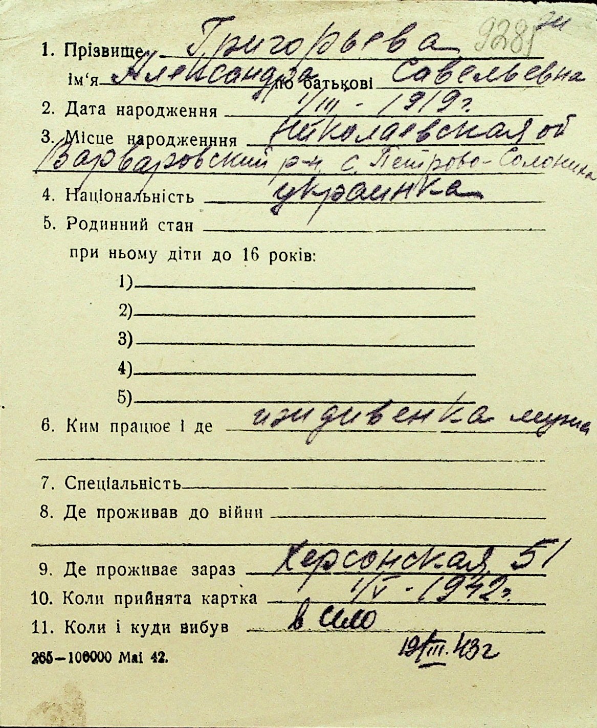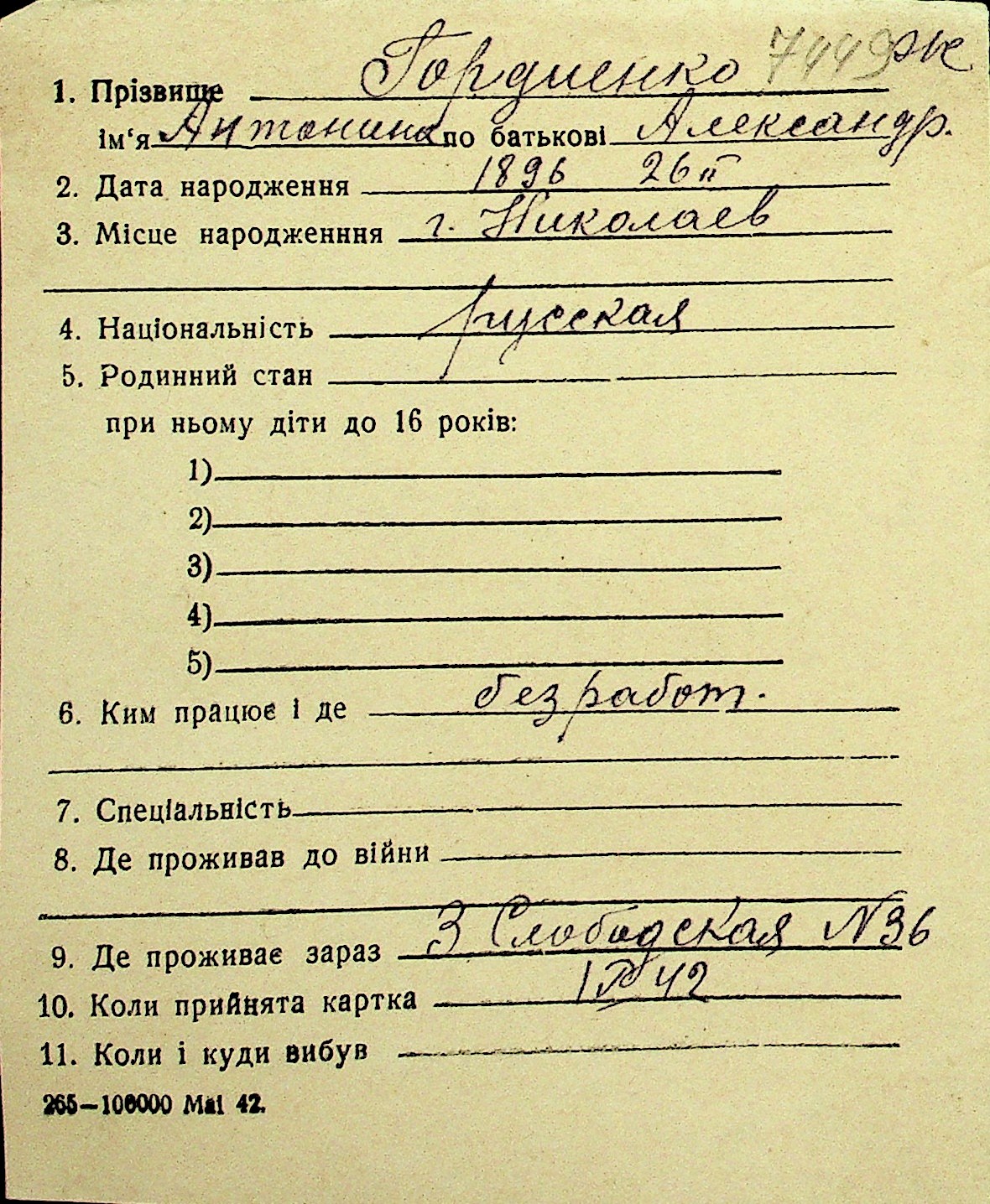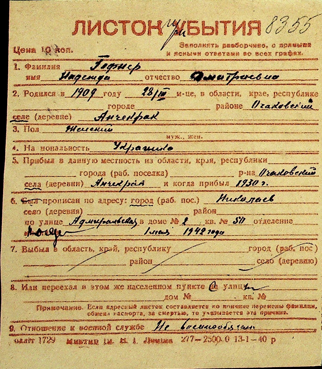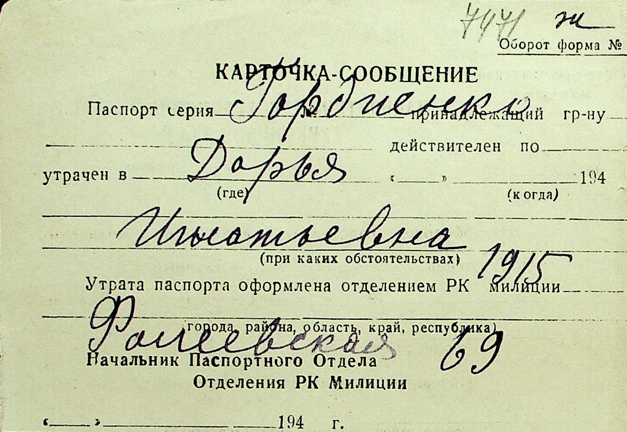 • • Перелік карток до фонду № Н-1016