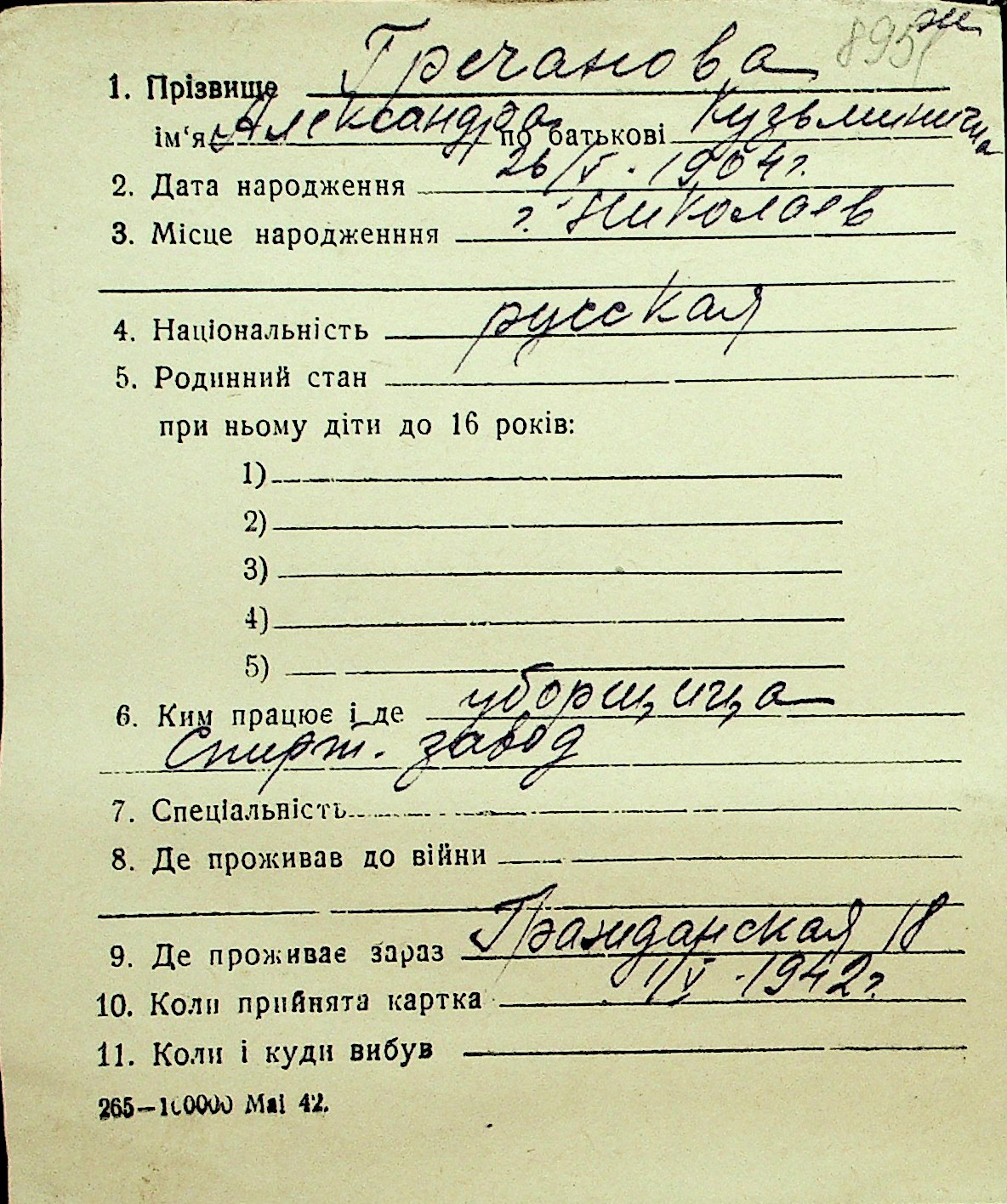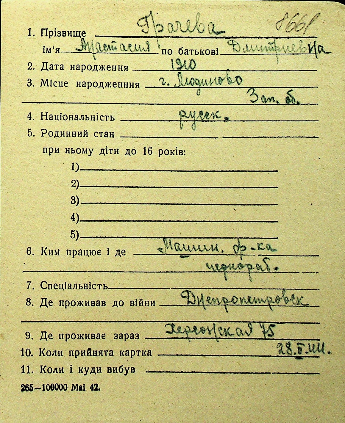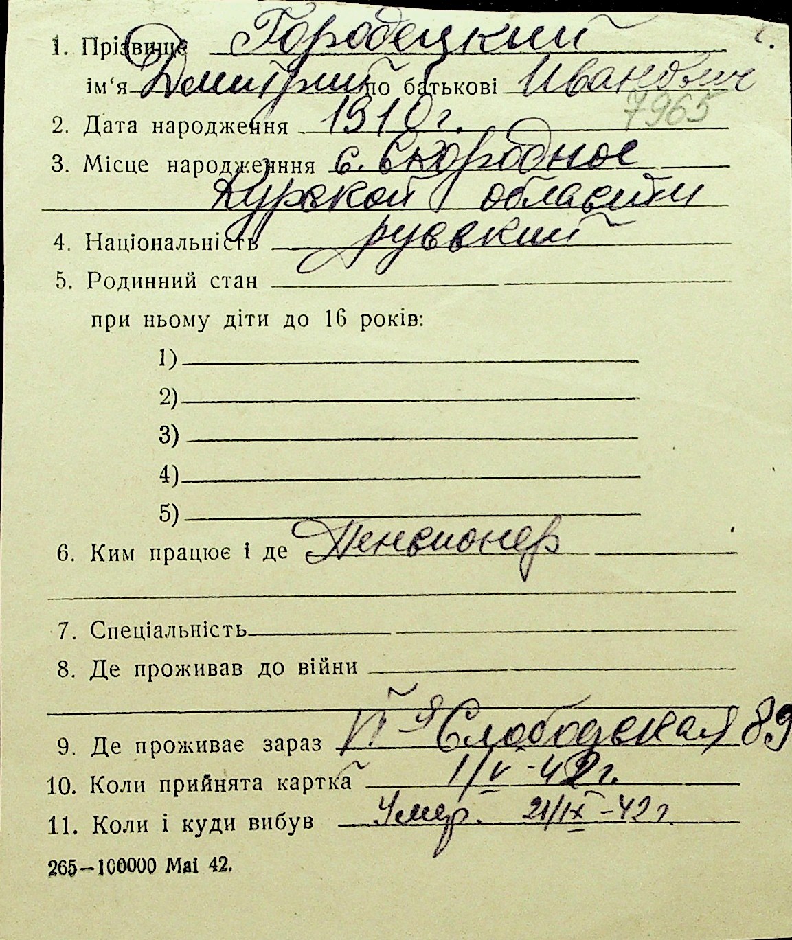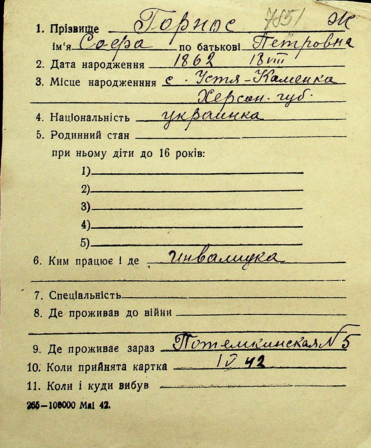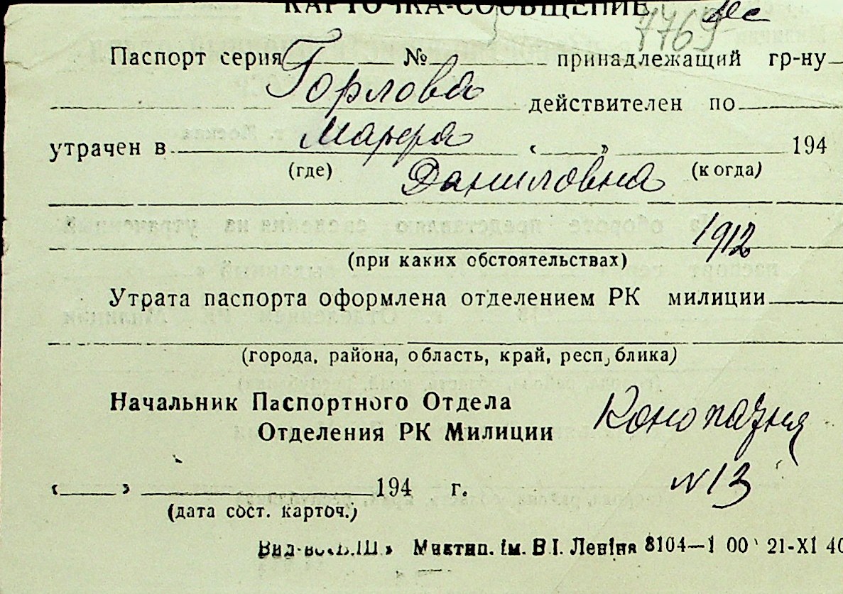 • • Перелік карток до фонду № Н-1016