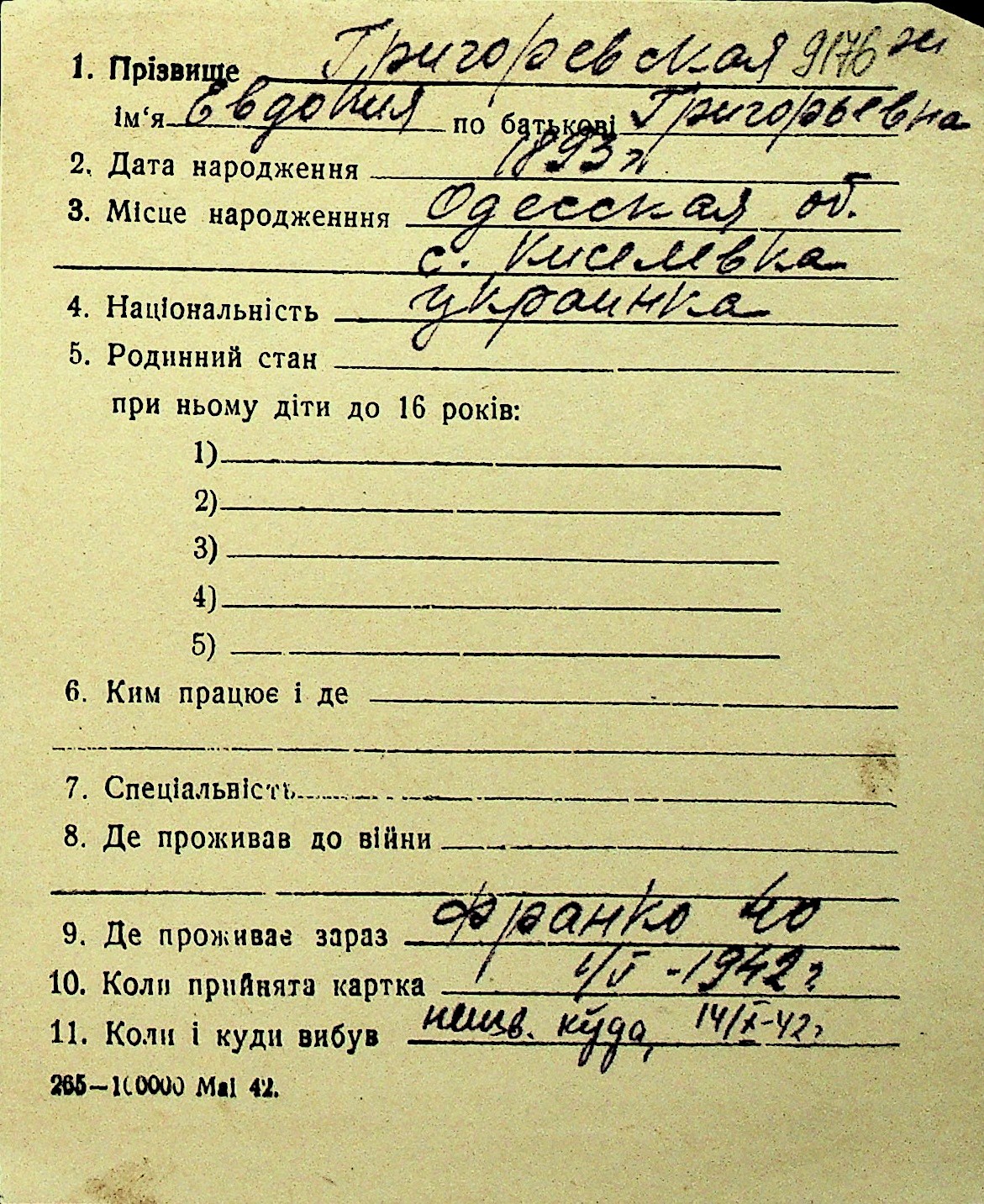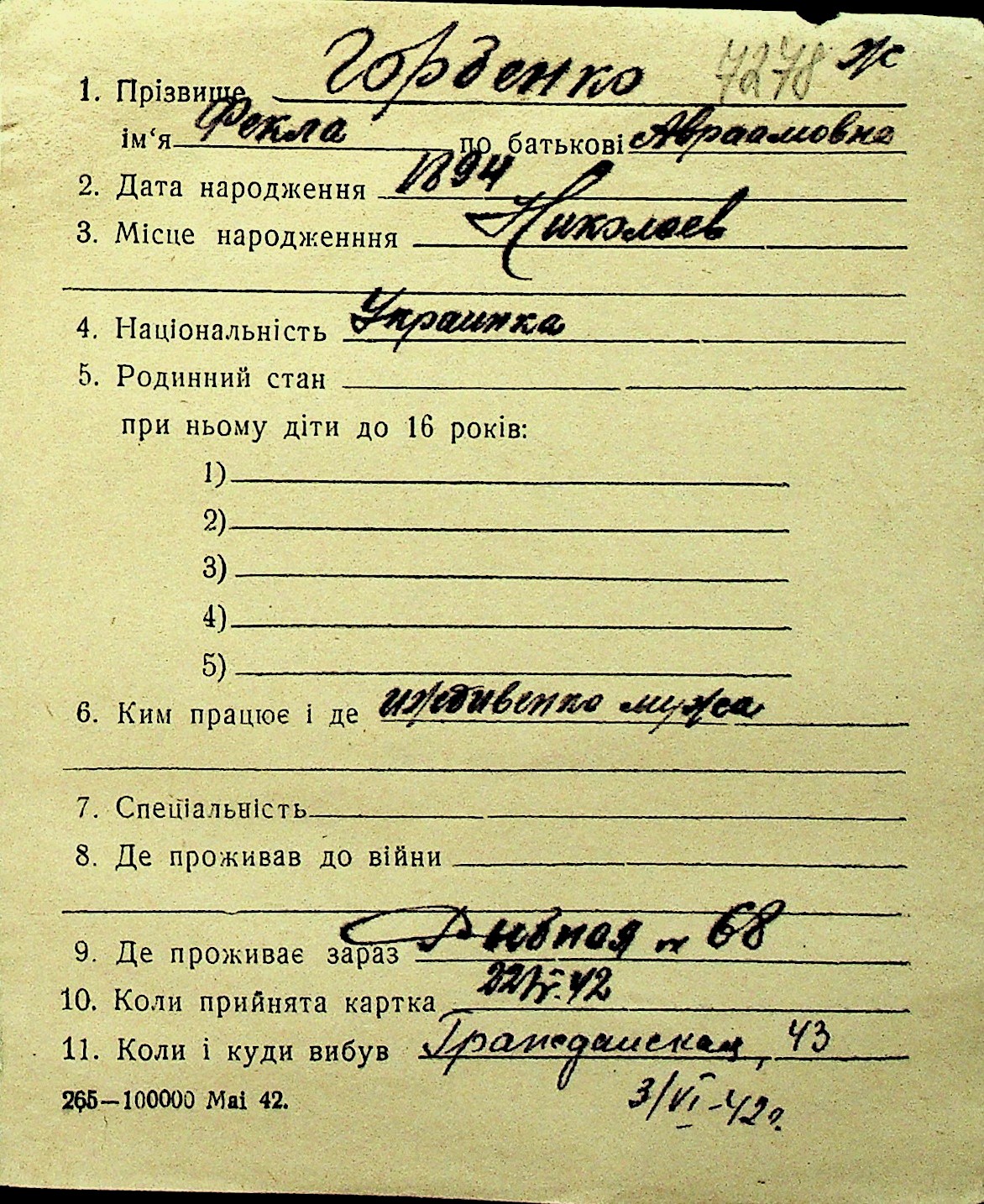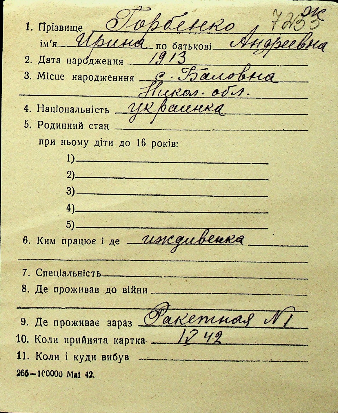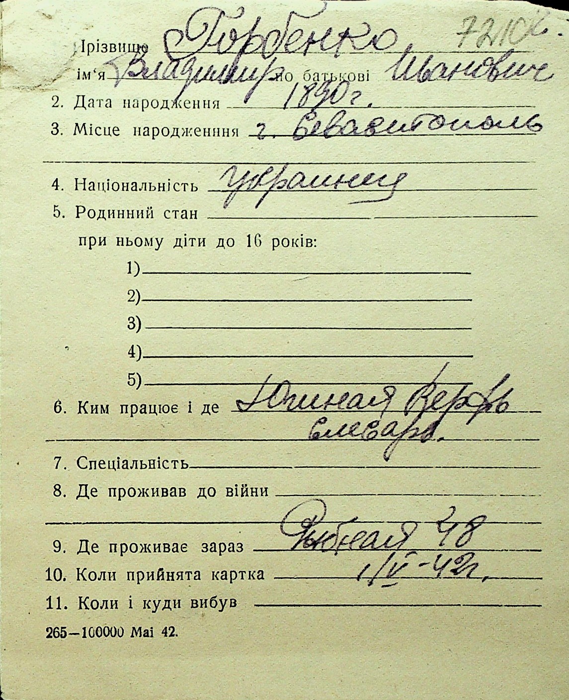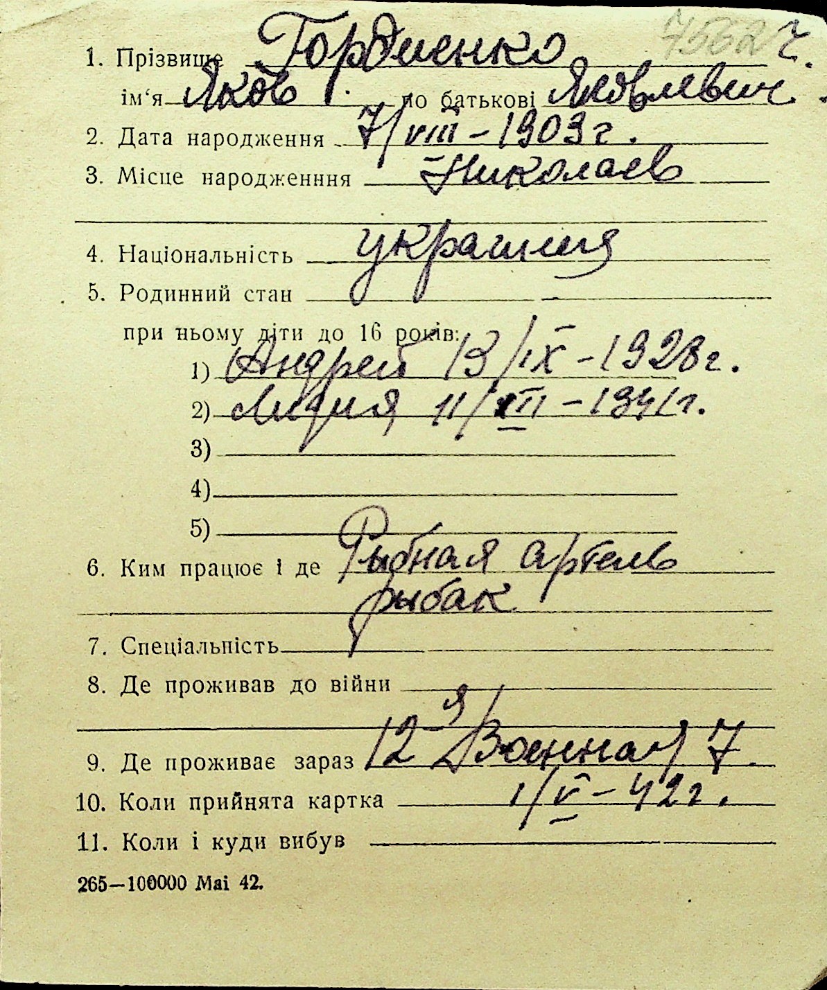 • • Перелік карток до фонду № Н-1016