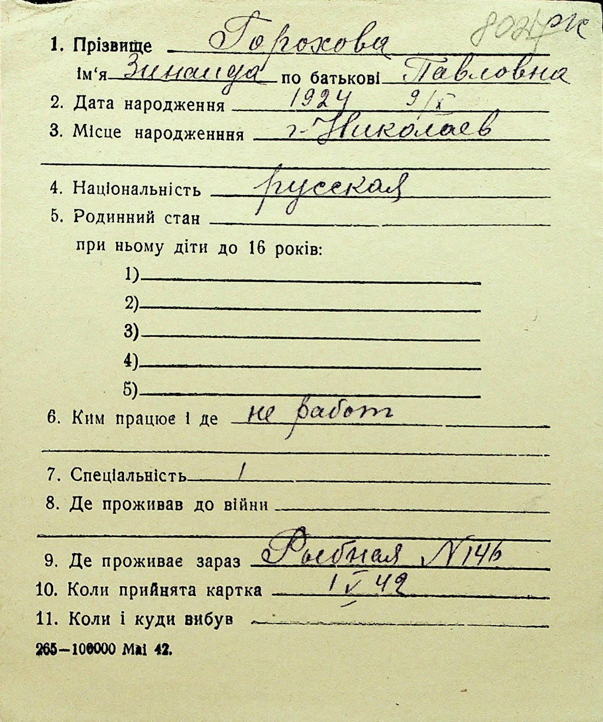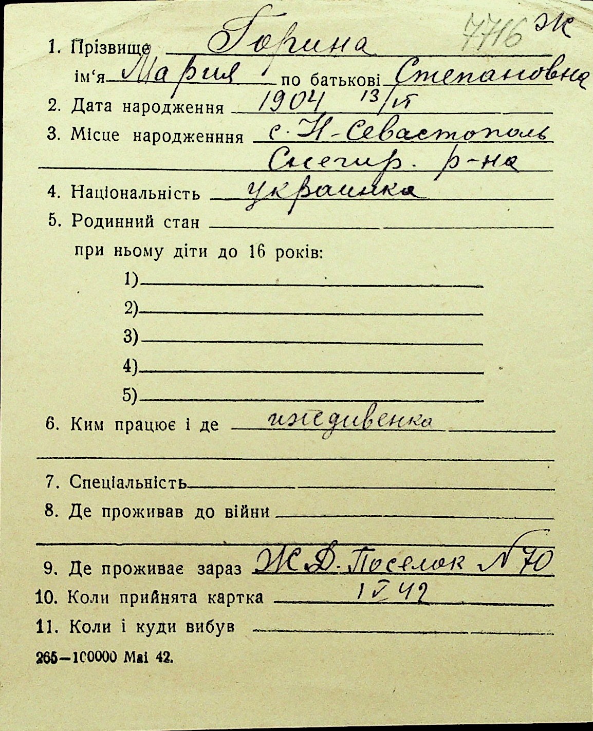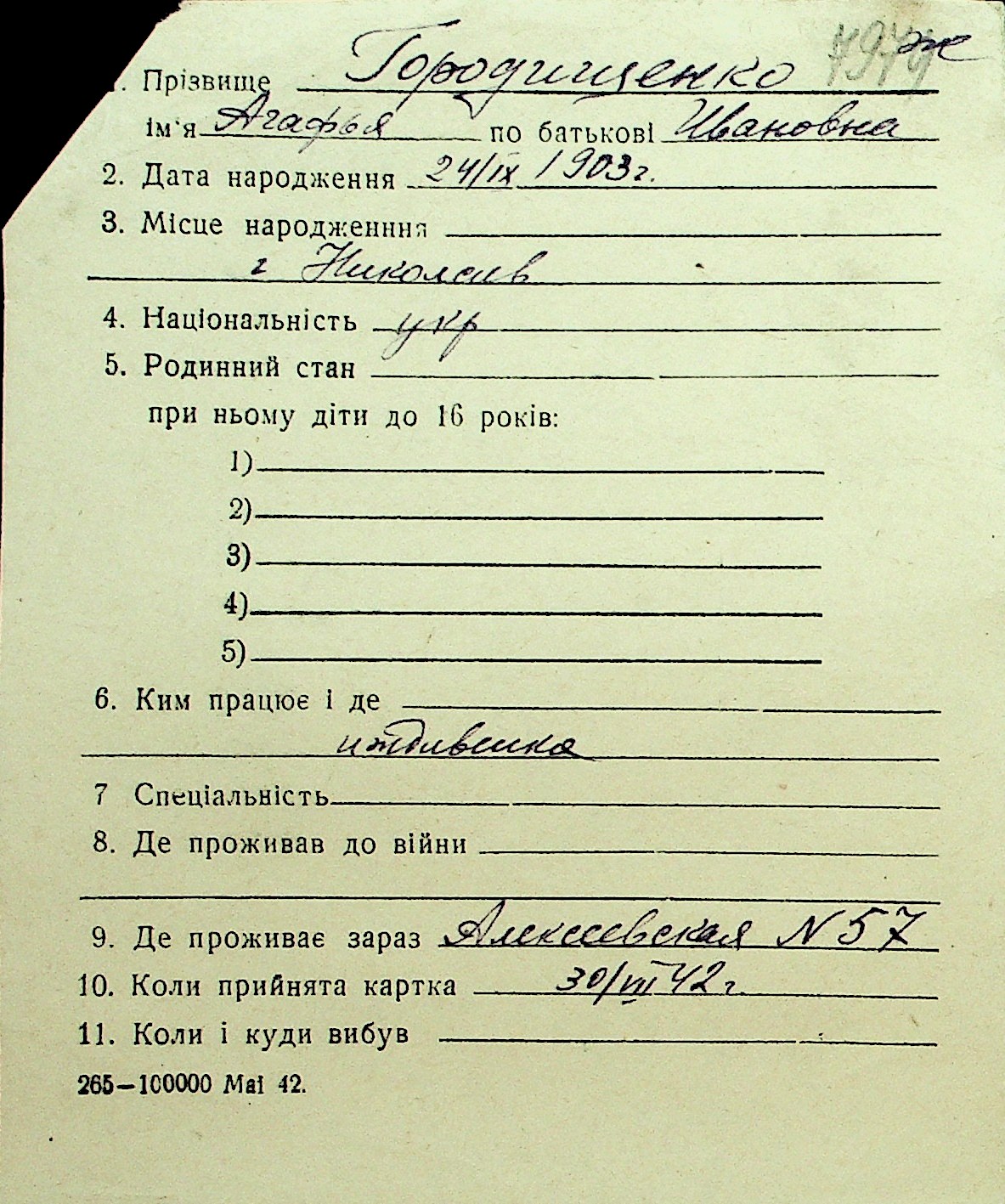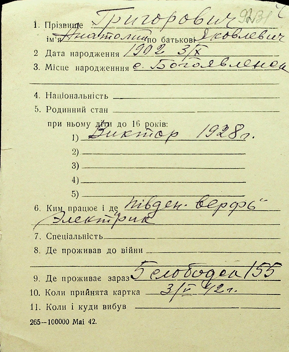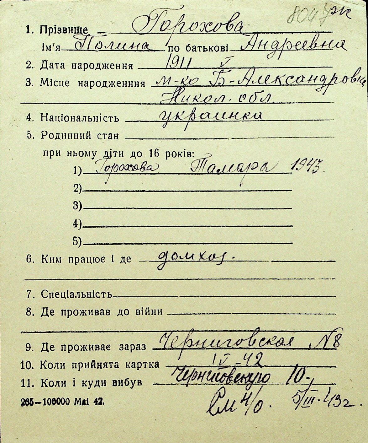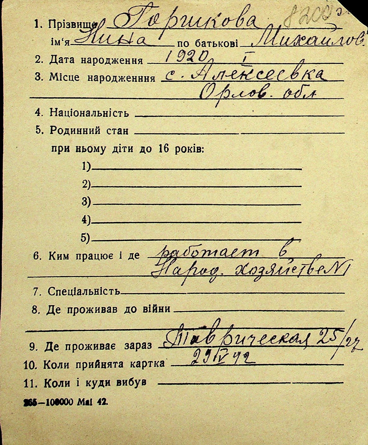 • • Перелік карток до фонду № Н-1016