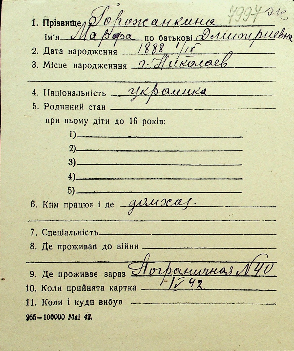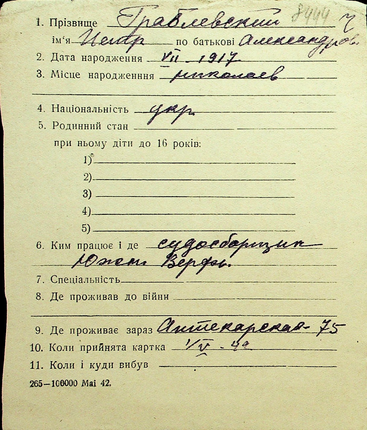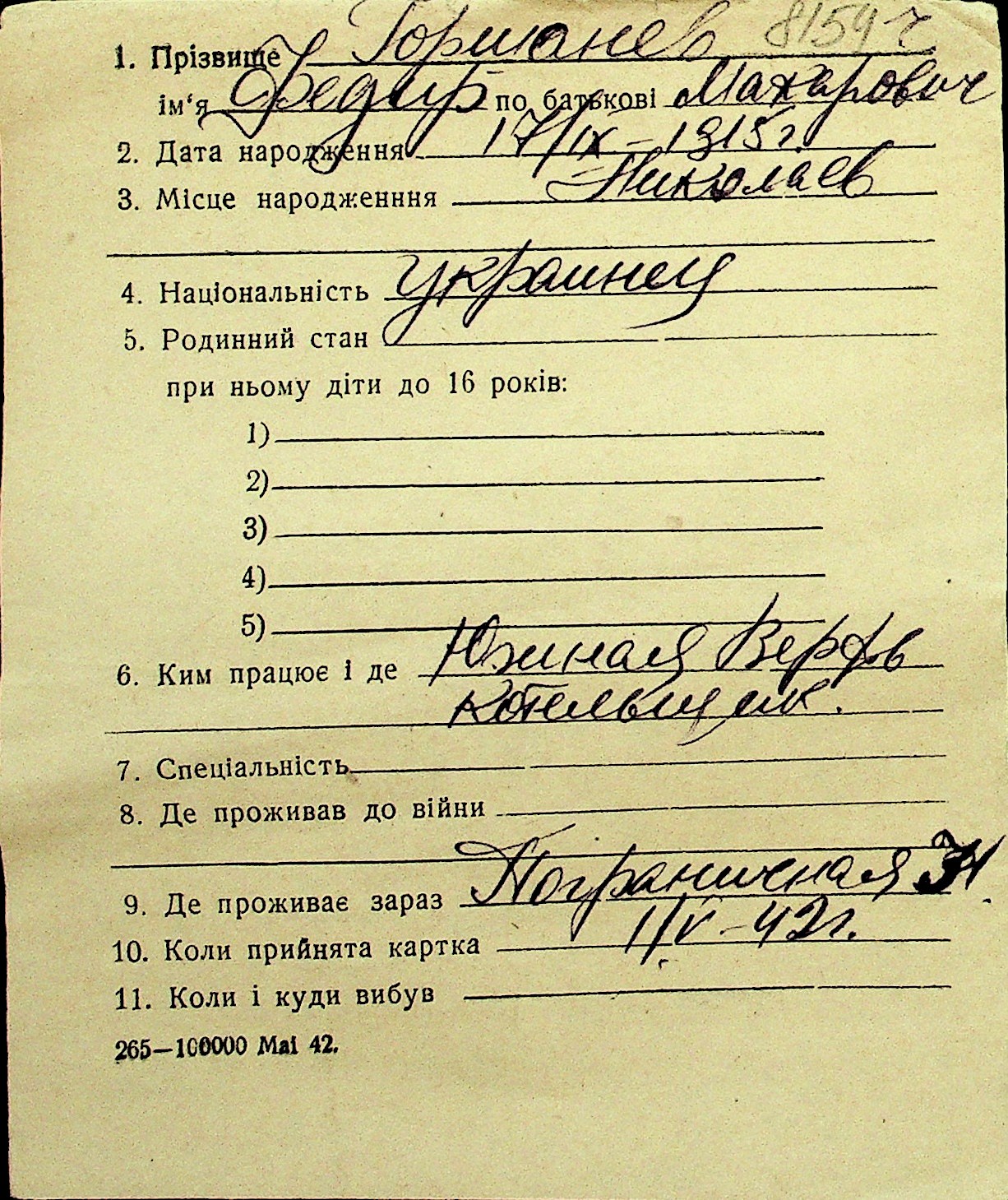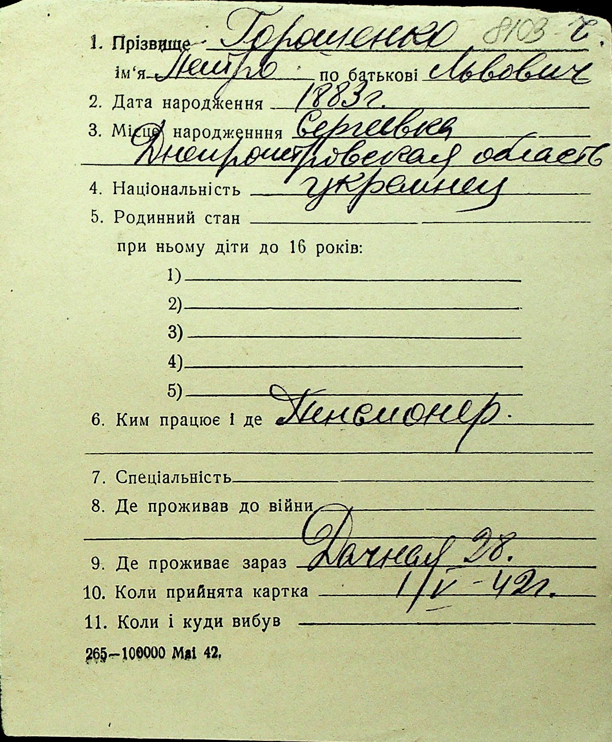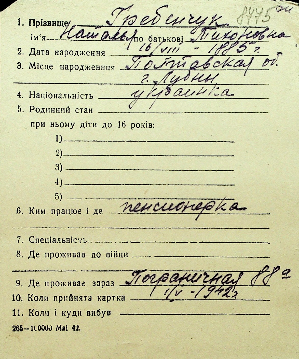 • • Перелік карток до фонду № Н-1016