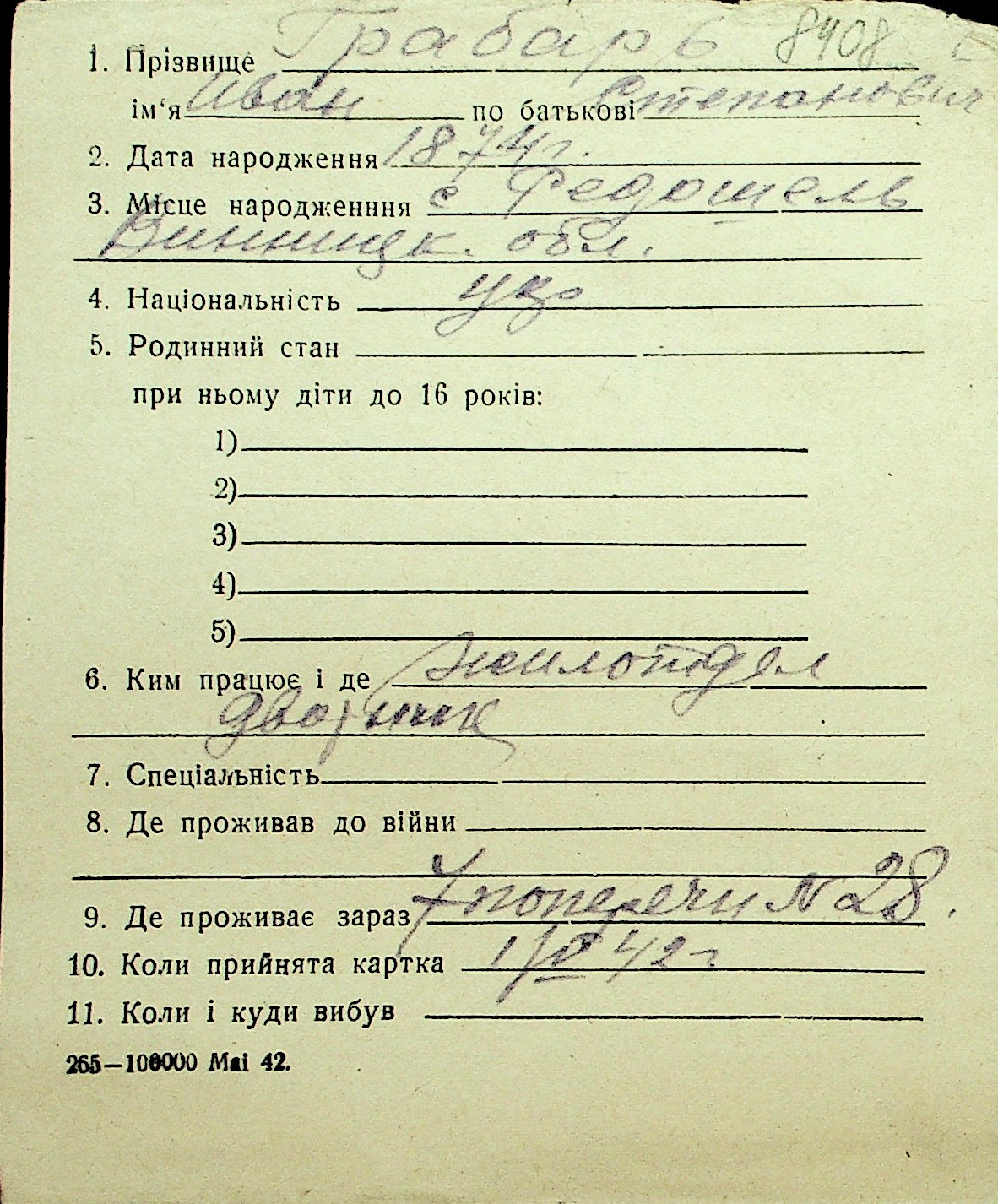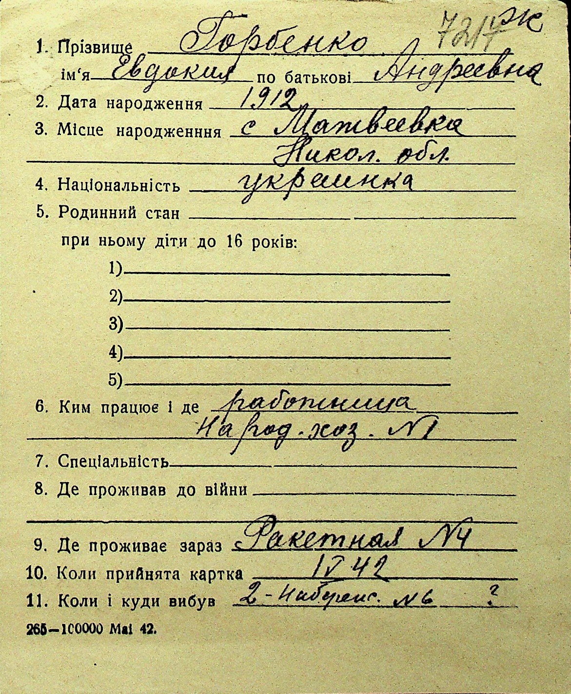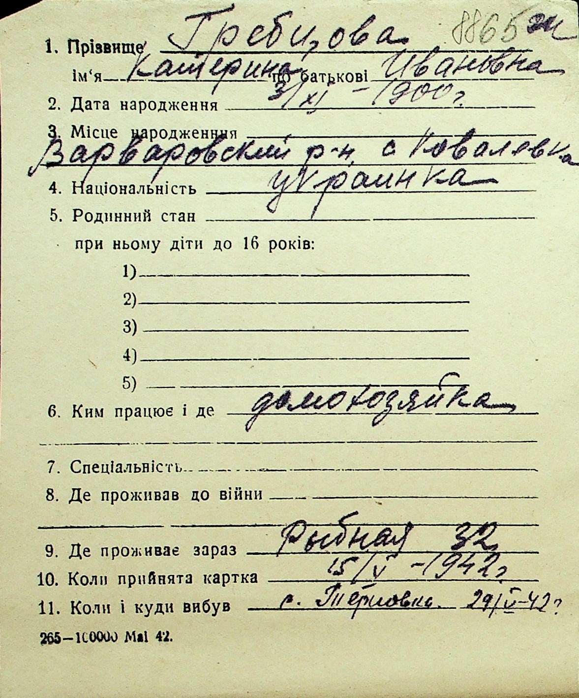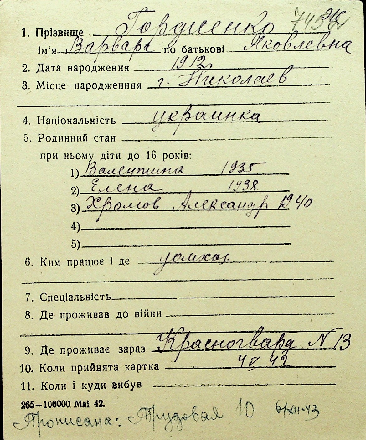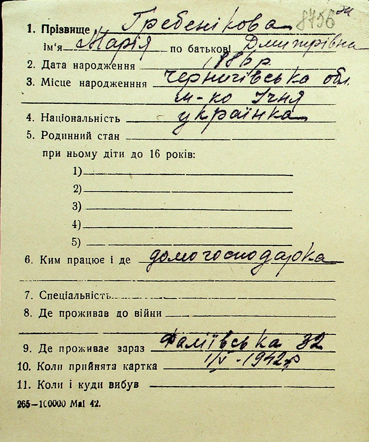 • • Перелік карток до фонду № Н-1016