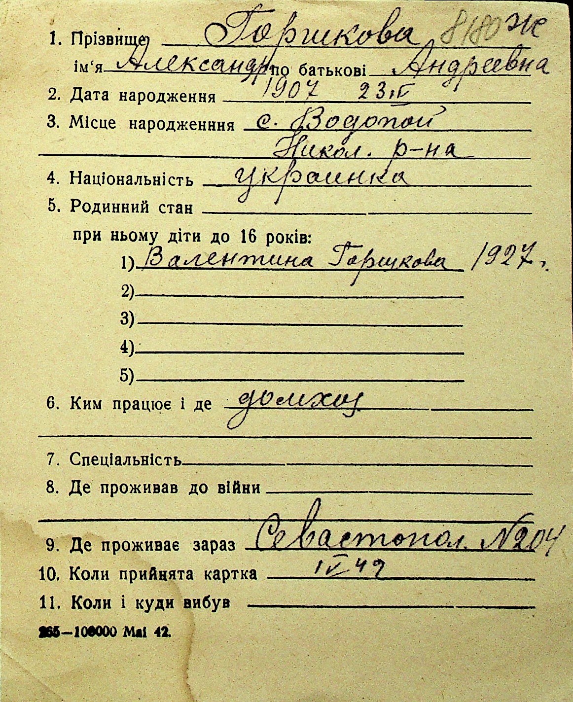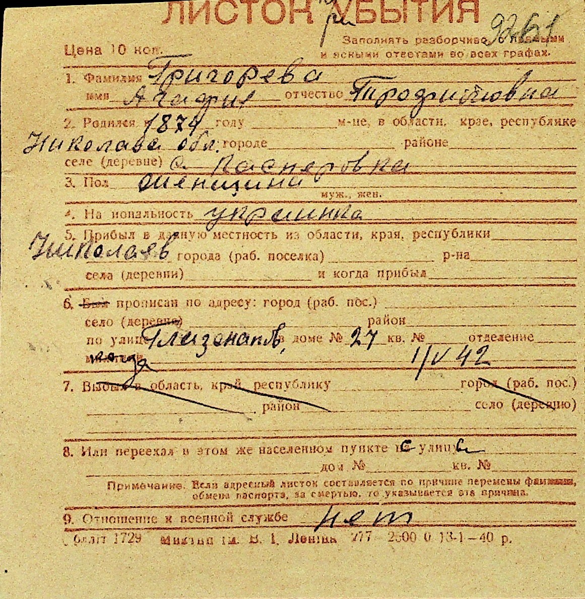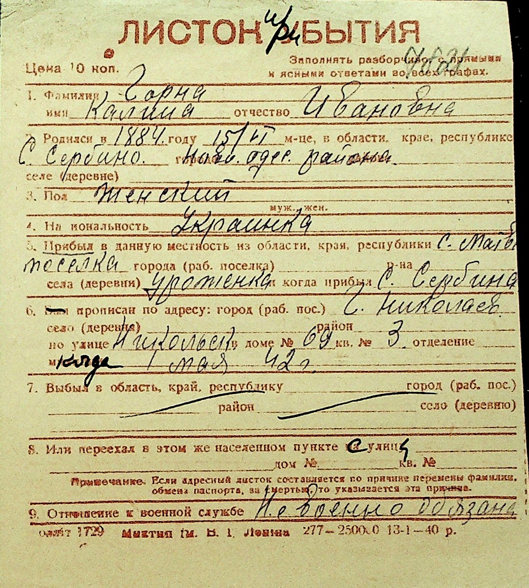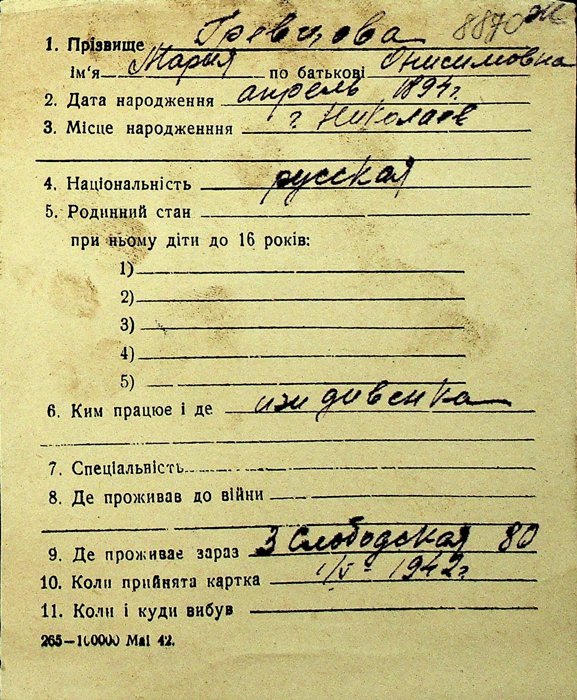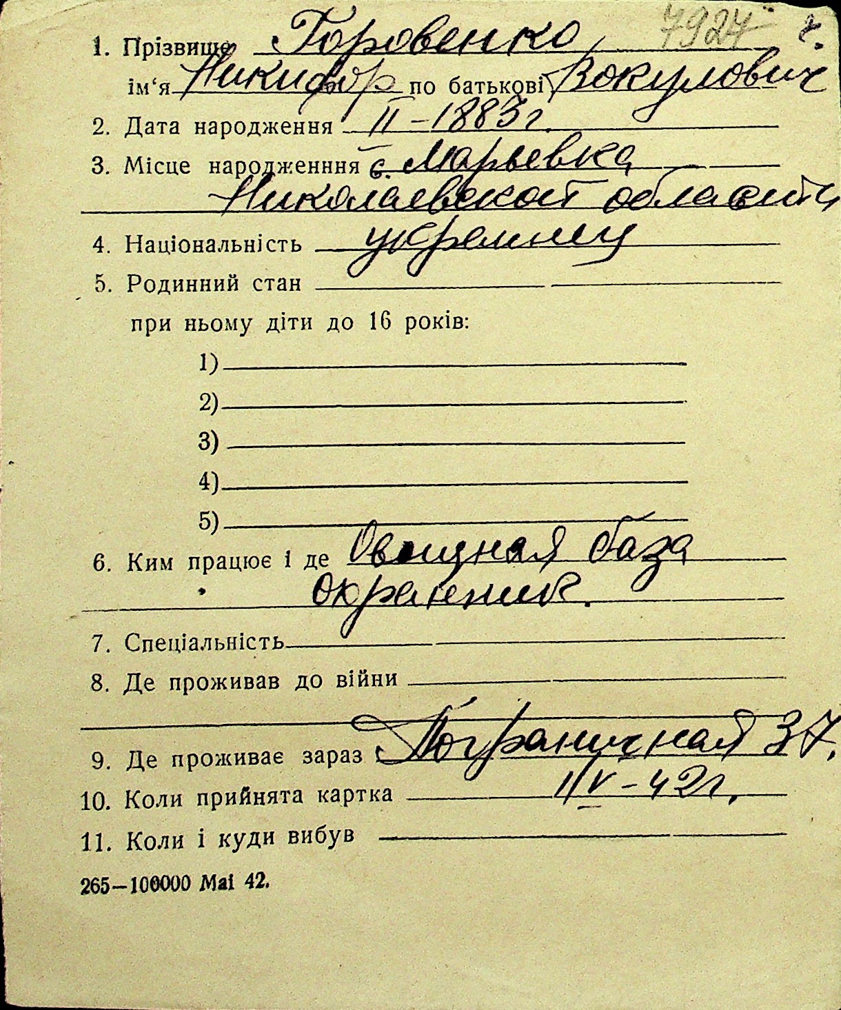 • • Перелік карток до фонду № Н-1016
